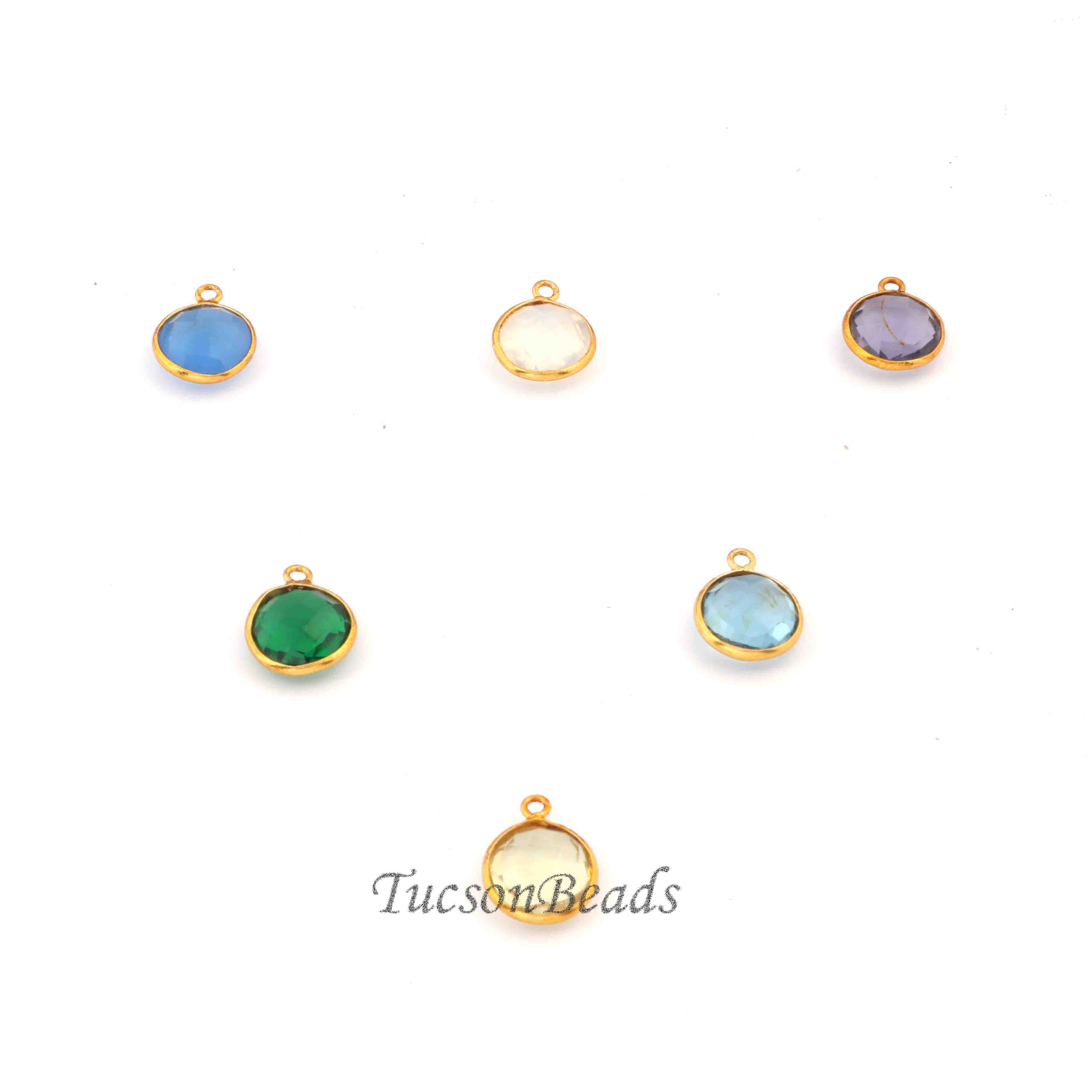 5 Pcs Mix Stone Faceted 925 Sterling Vermeil Round Shape Pendant , Mix Stone Colors Add- On Charm As Pendant 14mmx11mm SS0011