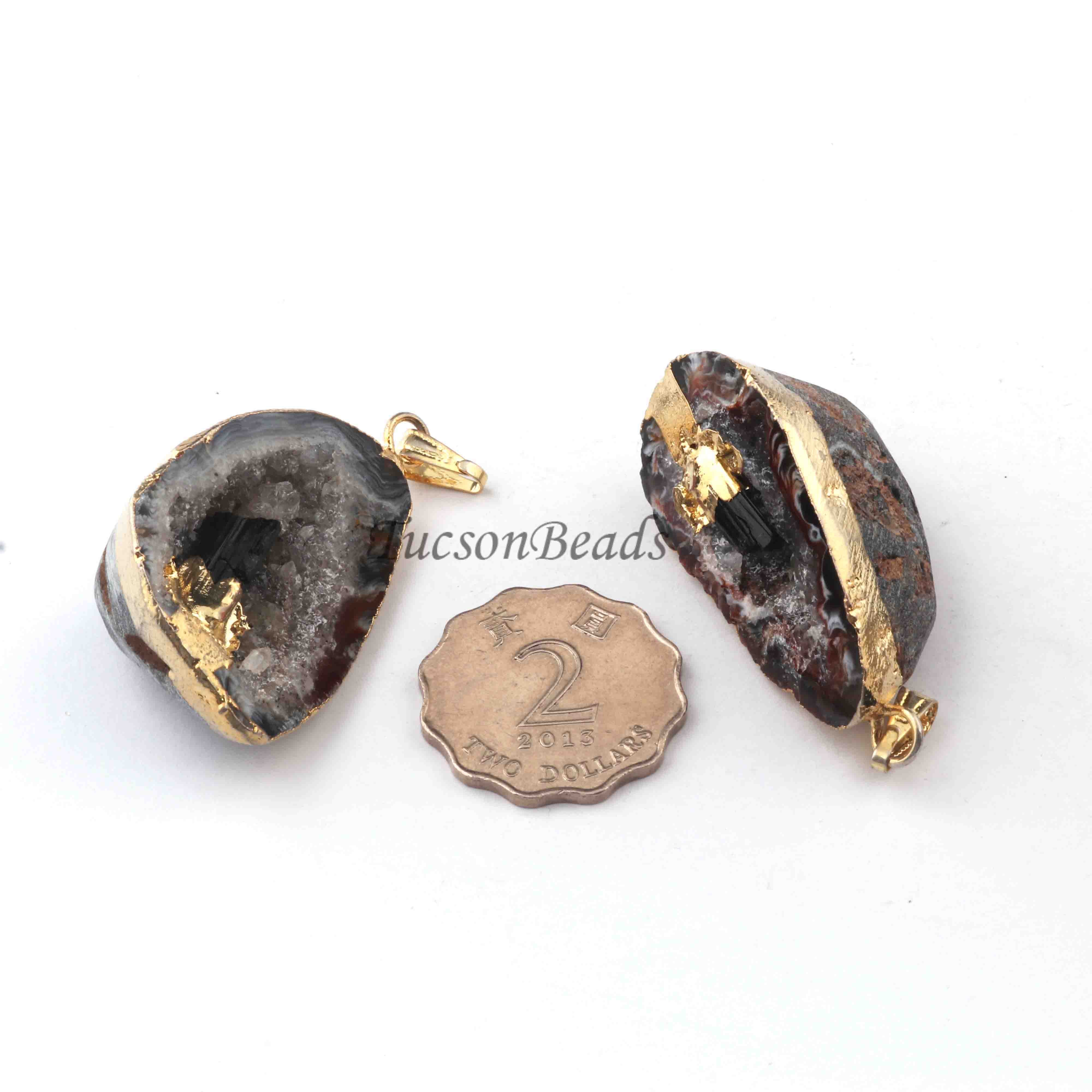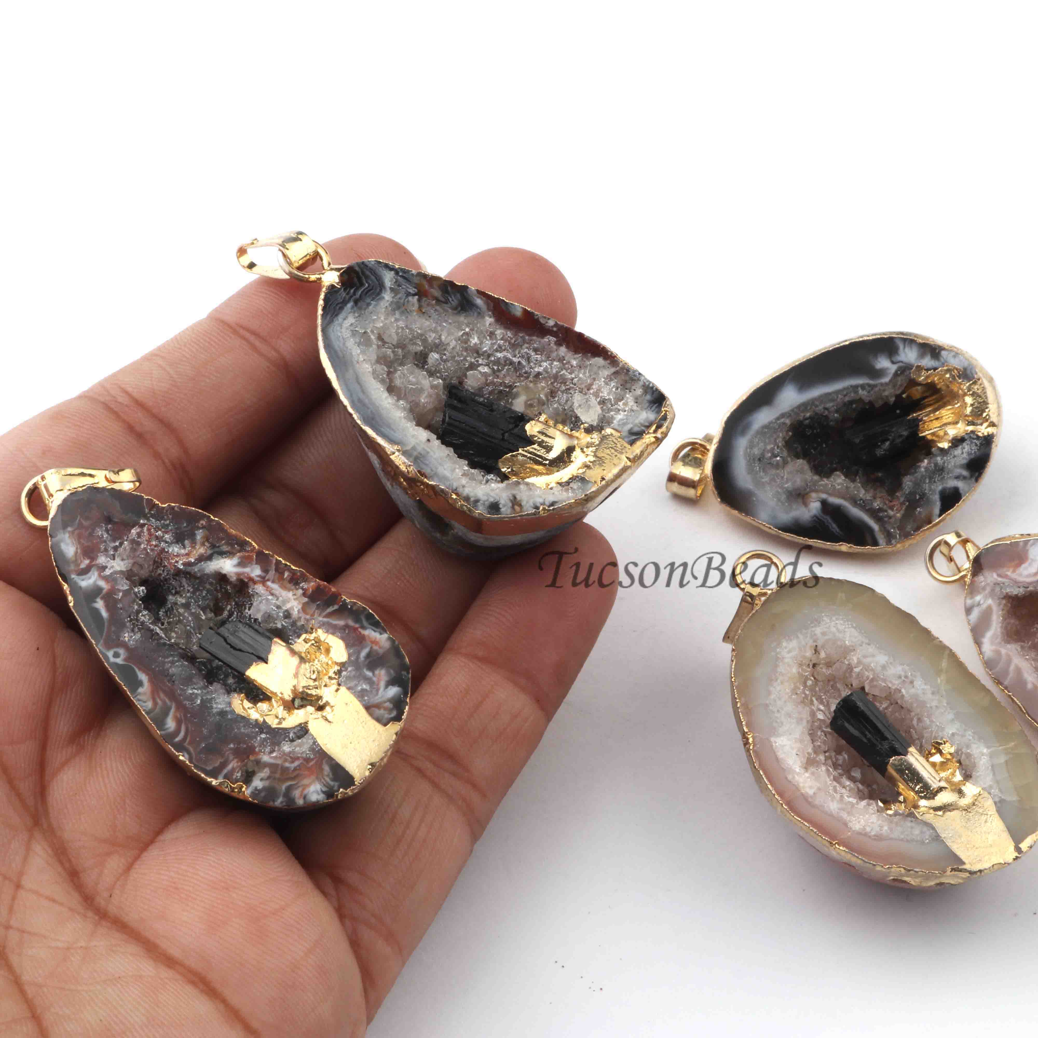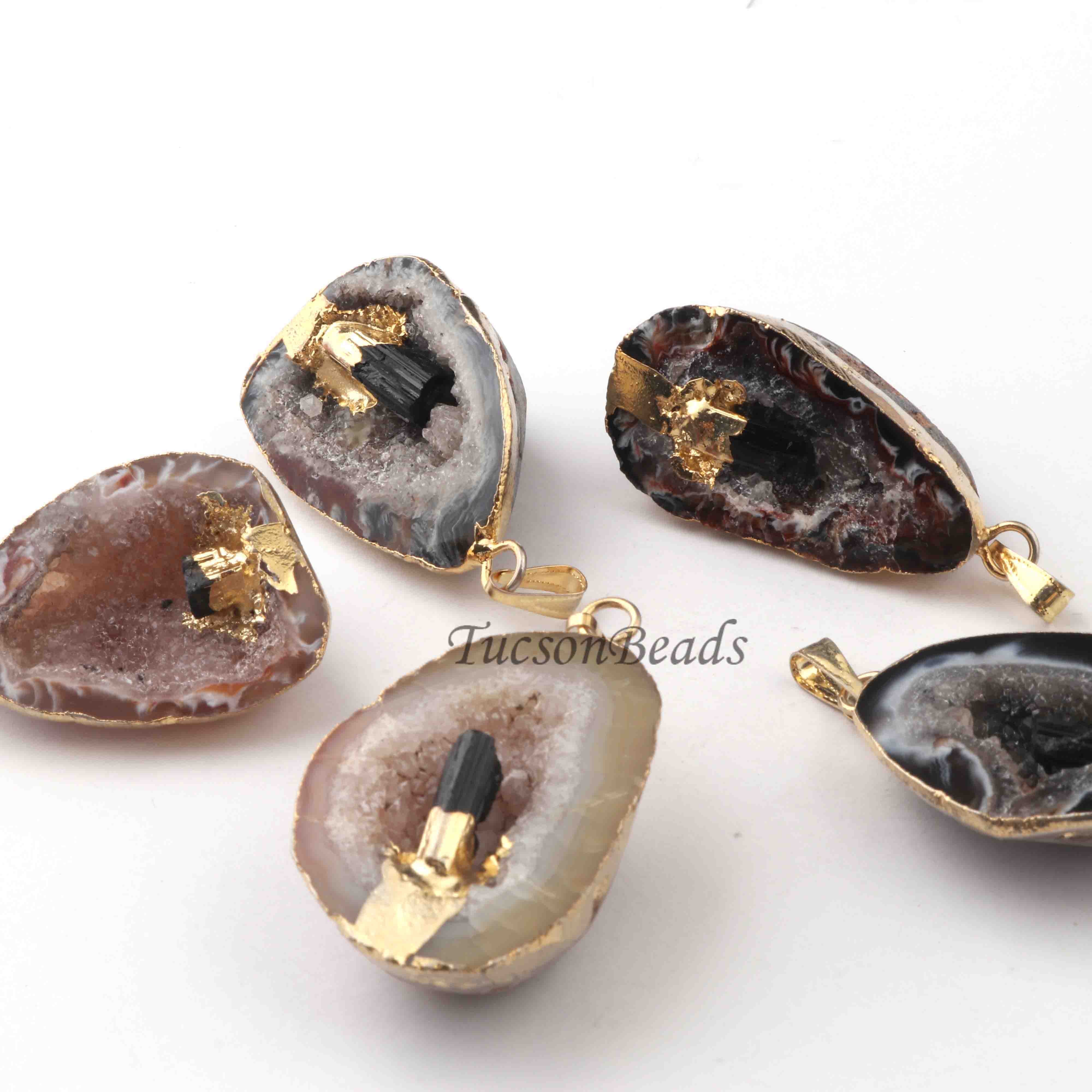5 Pcs Natural Gray Geode Druzzy 24k Gold Plated Pendant - Electroplated Gold Druzy -49mmx23mm-41mmx27mm DRZ264