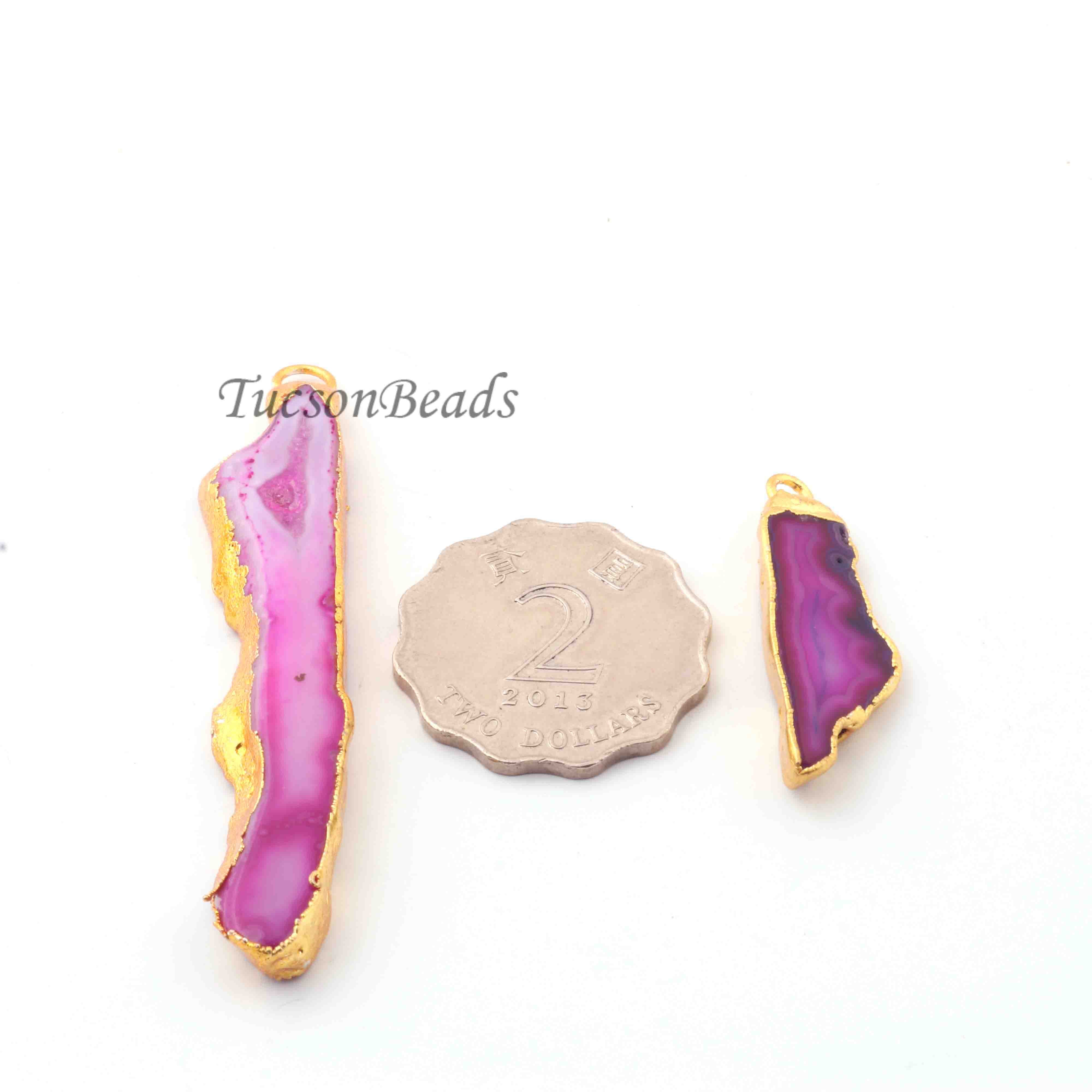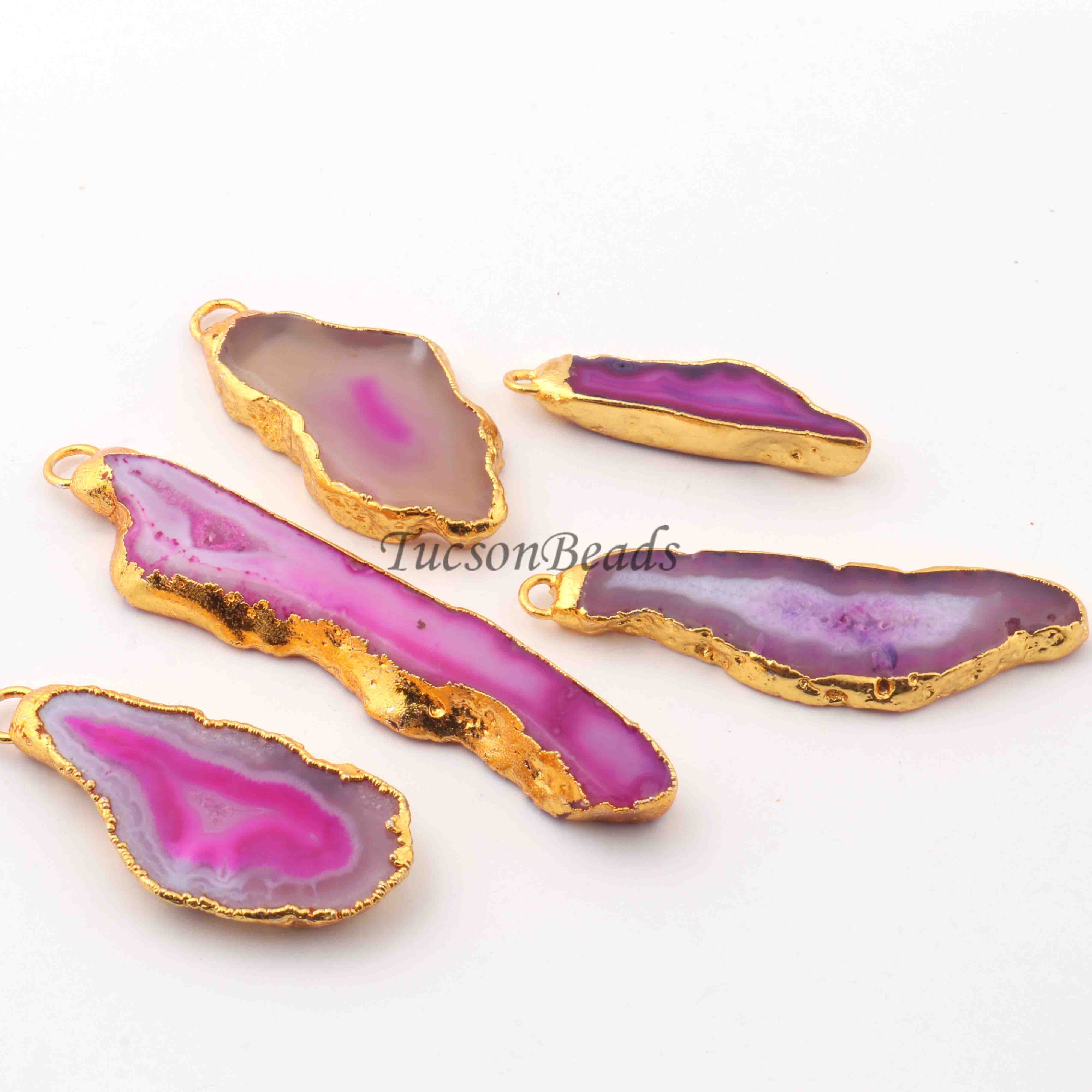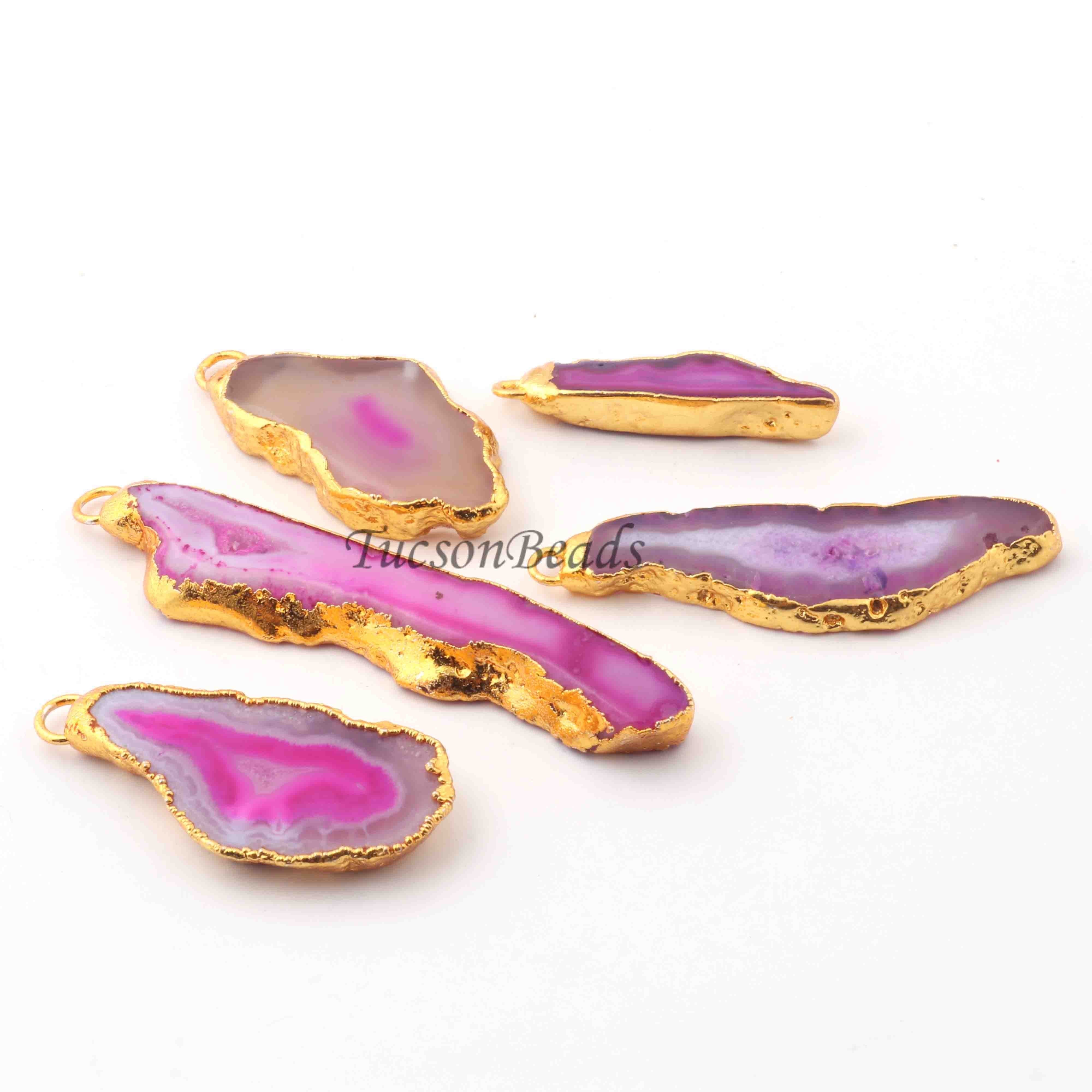 5 Pcs Pink Druzzy Geode Raw Drusy 24k Gold Plated Pendant - Electroplated Gold Druzy Pendant 68mmx12mm-35mmx11mm DRZ189