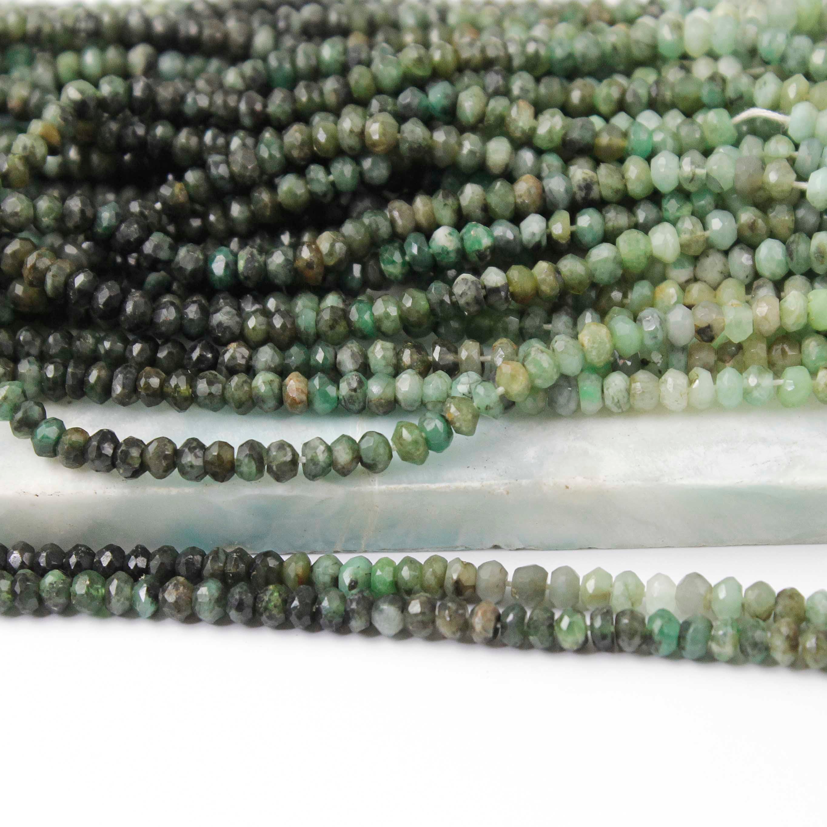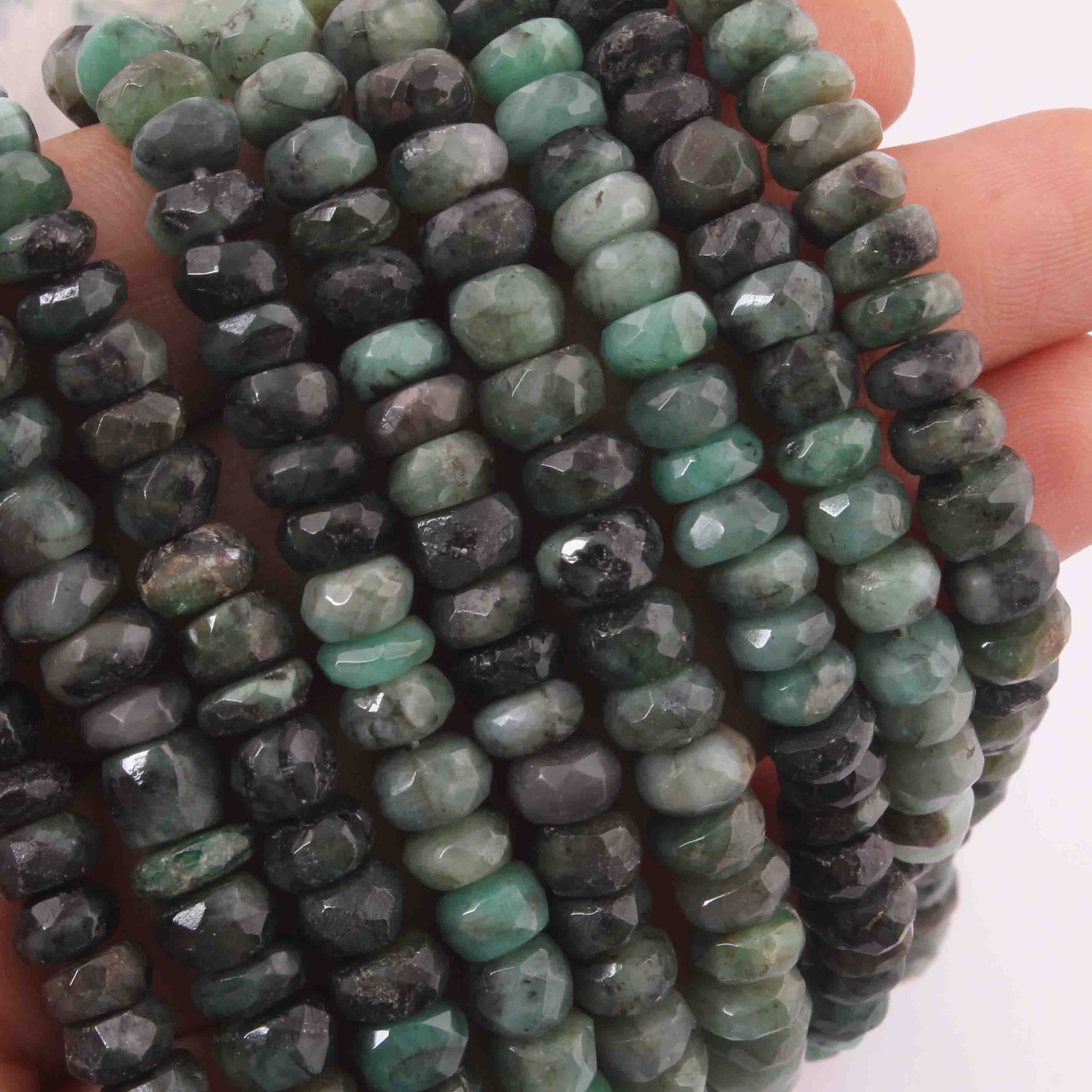 1 Strand Shaded Emerald Faceted Rondelles- Emerald Roundle Beads - 4mm-9mm 14 Inch BR1673