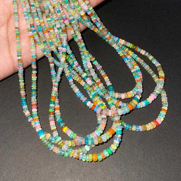 1 Long Strand Amazing Mix Ethiopian Welo Opal Smooth Rondelles -Mix Ethiopian Rondelles Beads 3mm-5mm 16 Inches BR03237