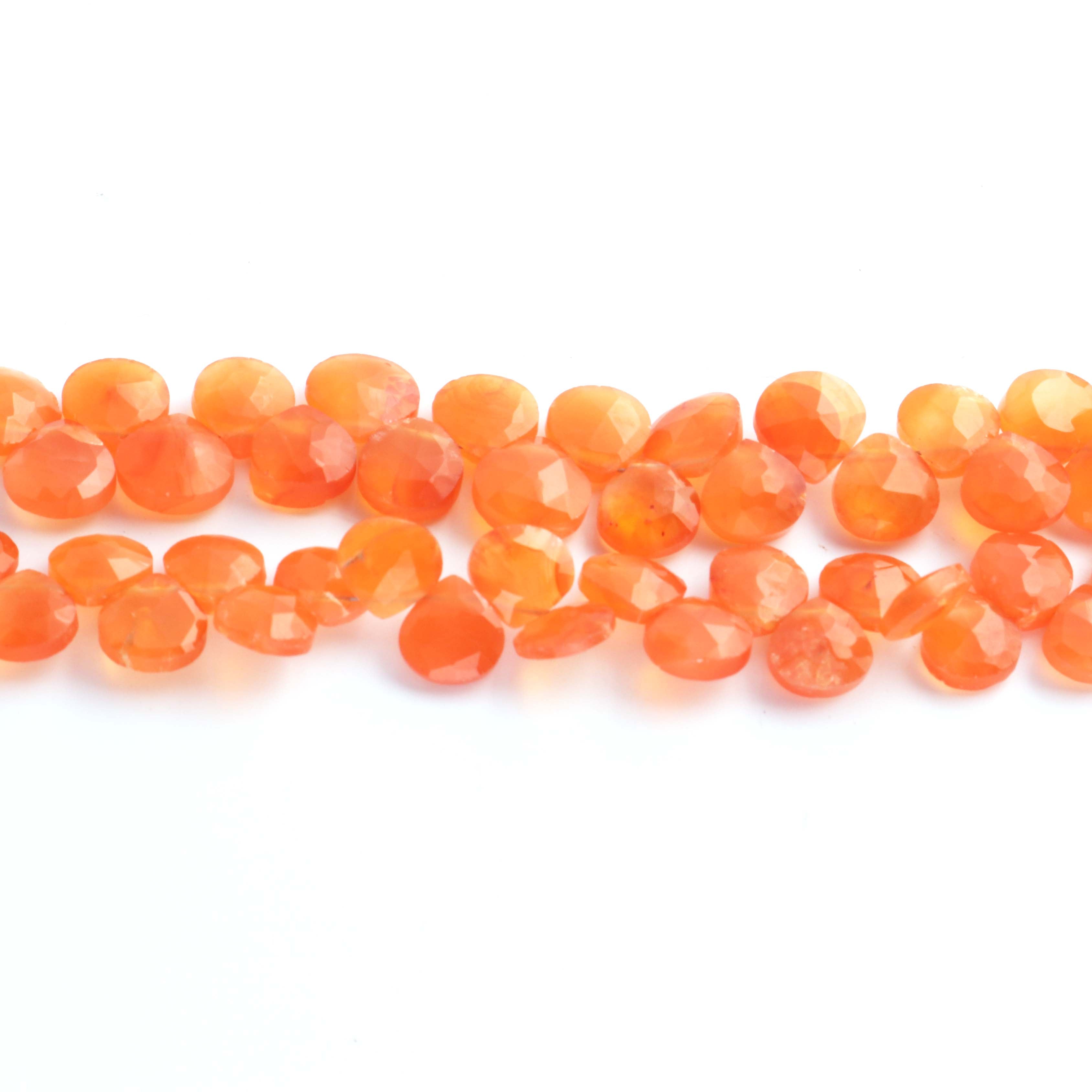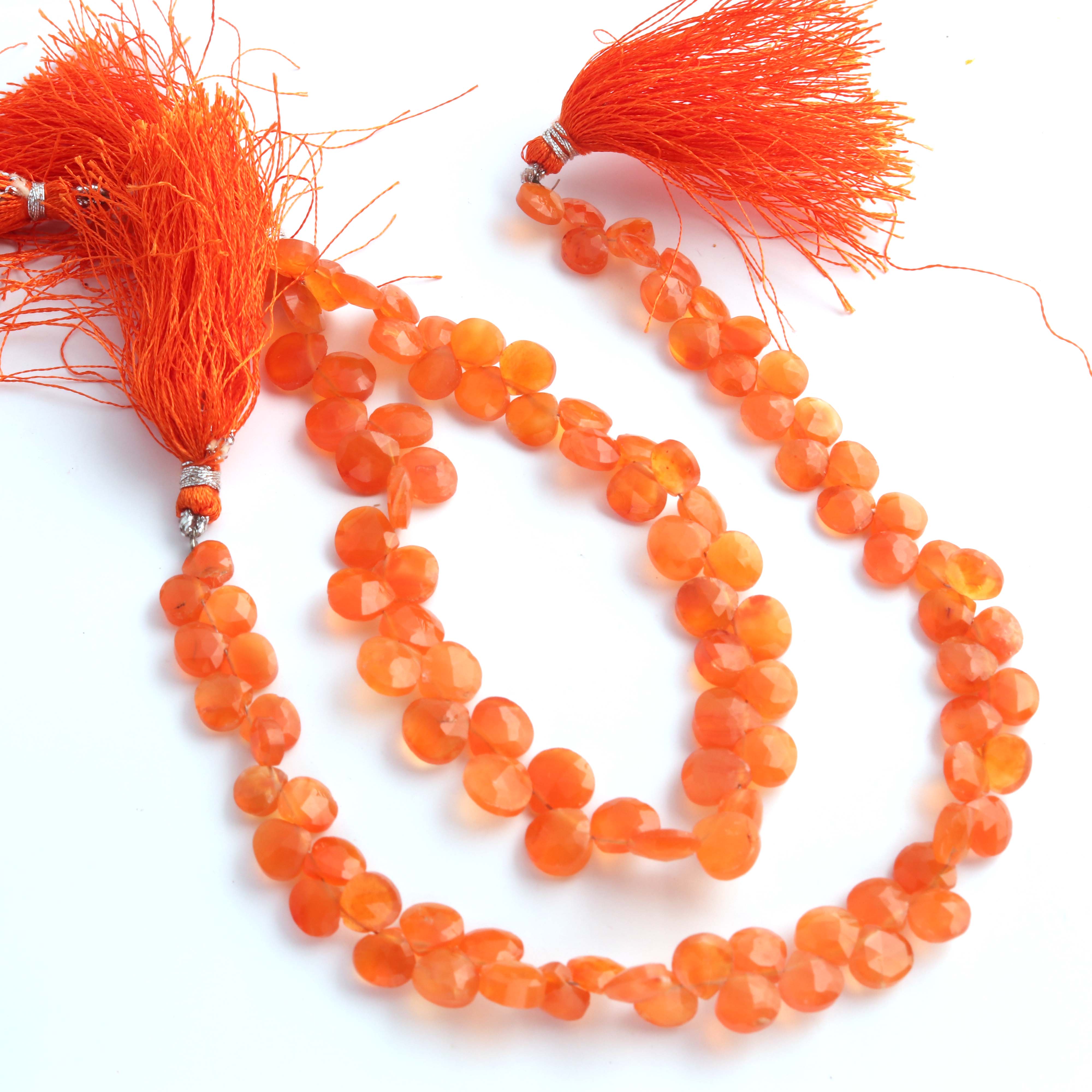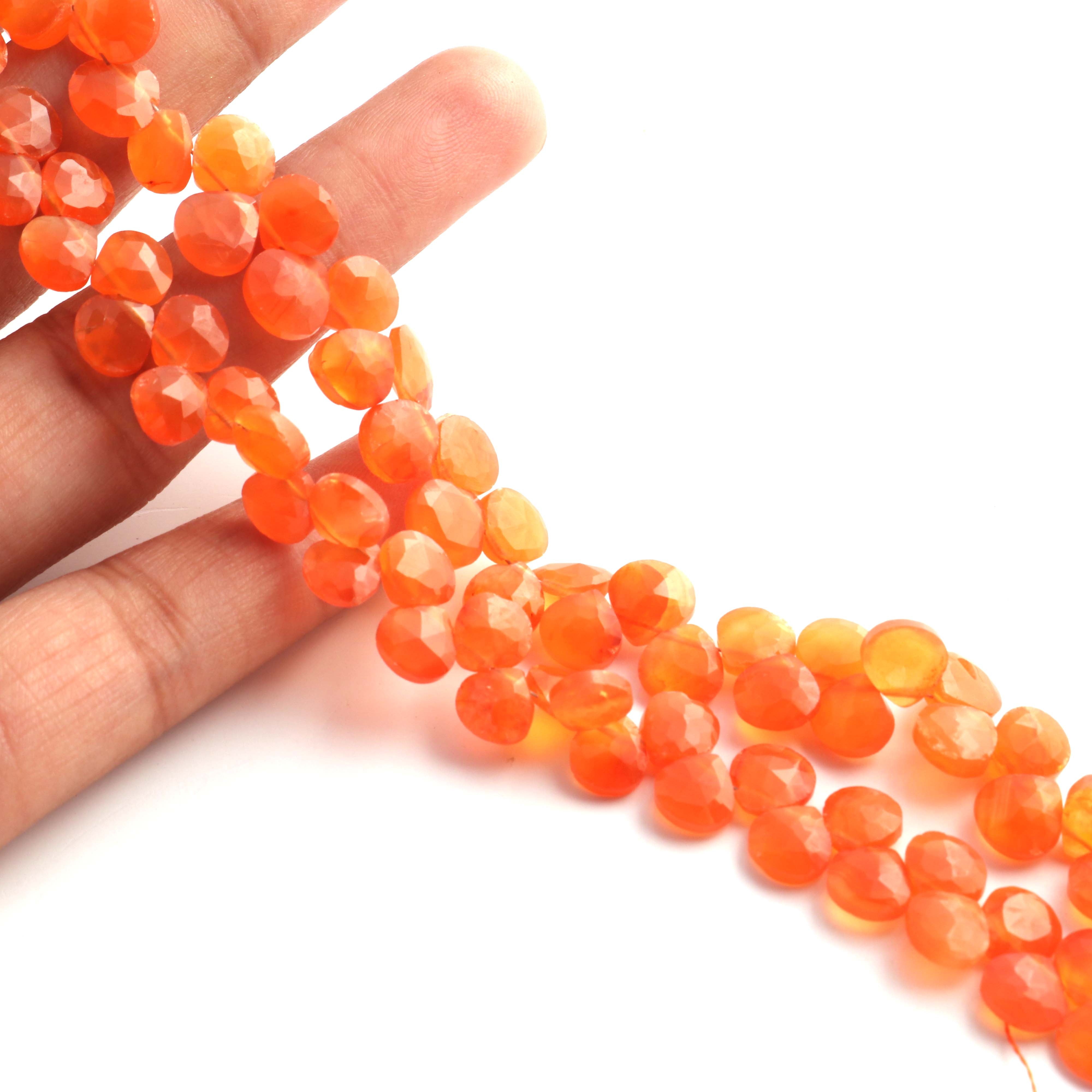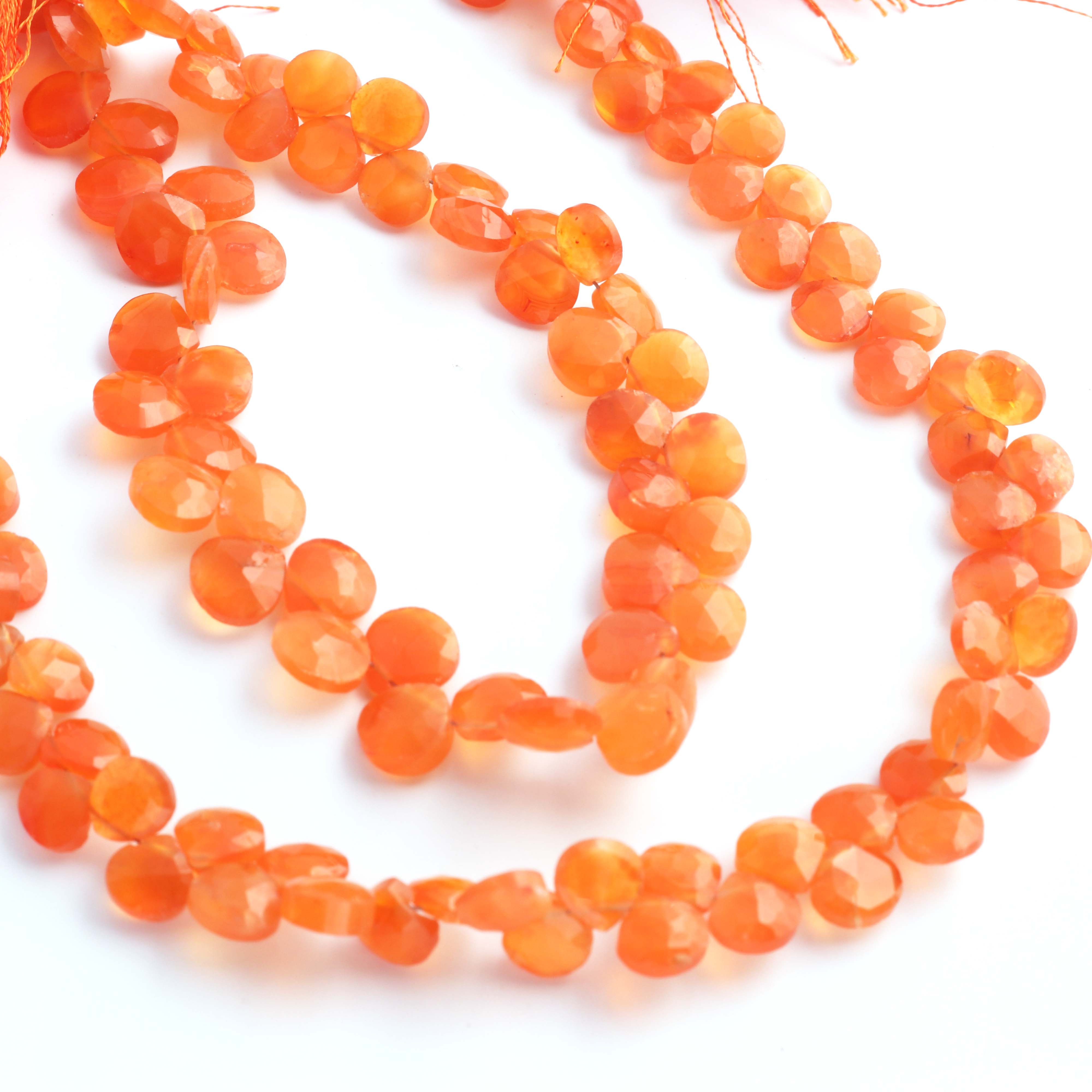 1 Long Strand Carnelian Faceted Briolettes -Heart Shape Briolettes - 6mm-9mm 9.5 inch BR0022