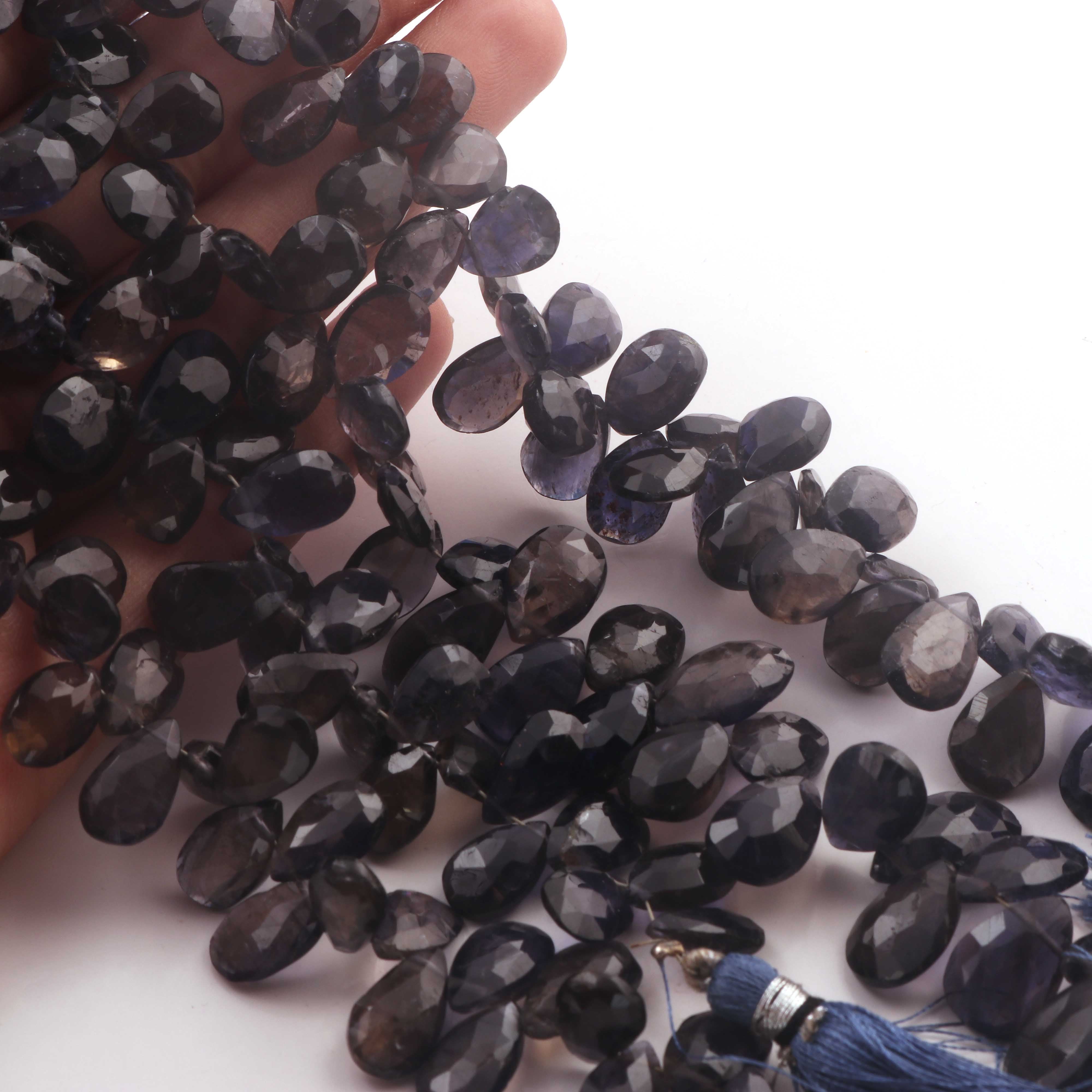 1 Long Strand Iolite Faceted Briolettes -Pear Shape Briolettes 5mmX10mm-15mmx8mm 8 Inches BR02325