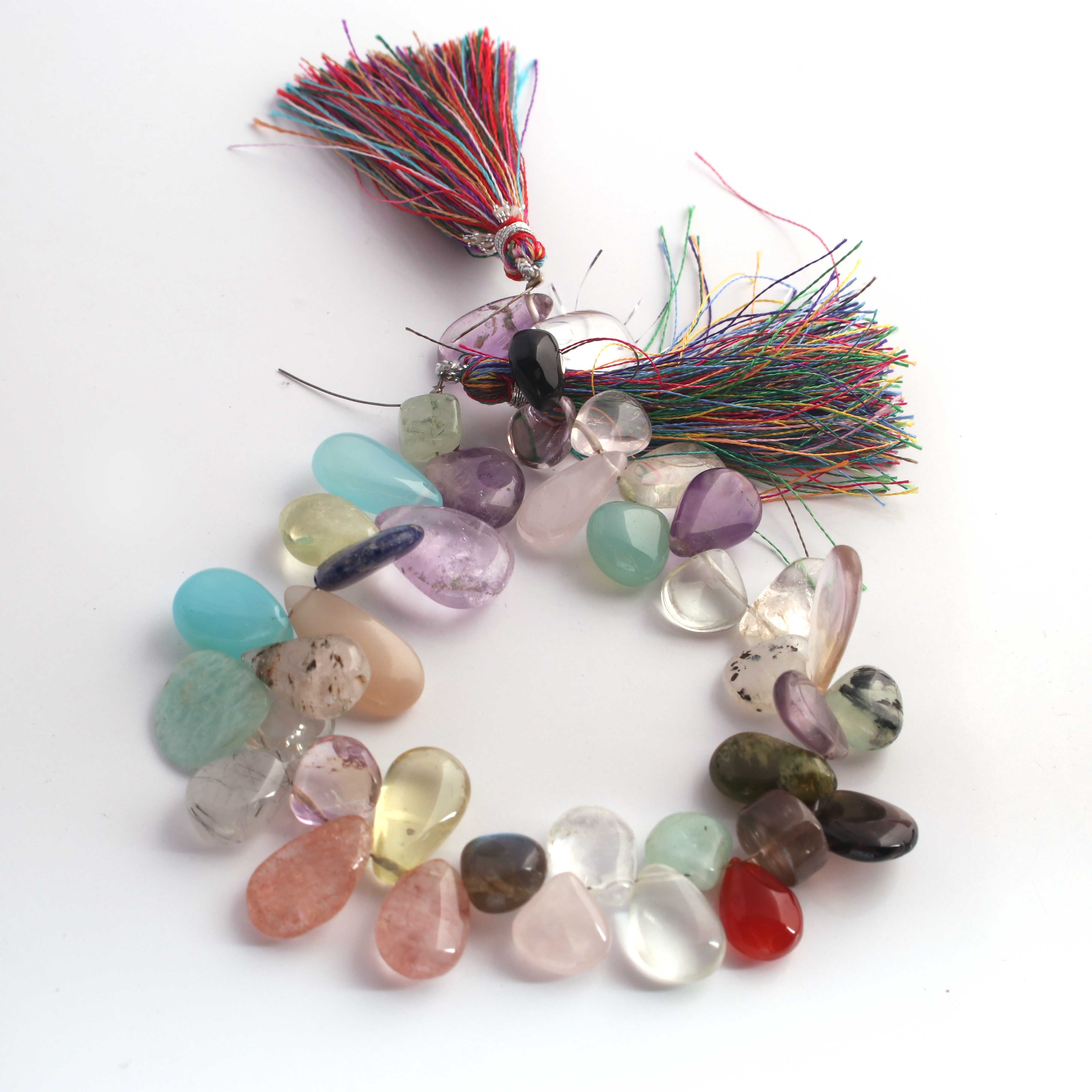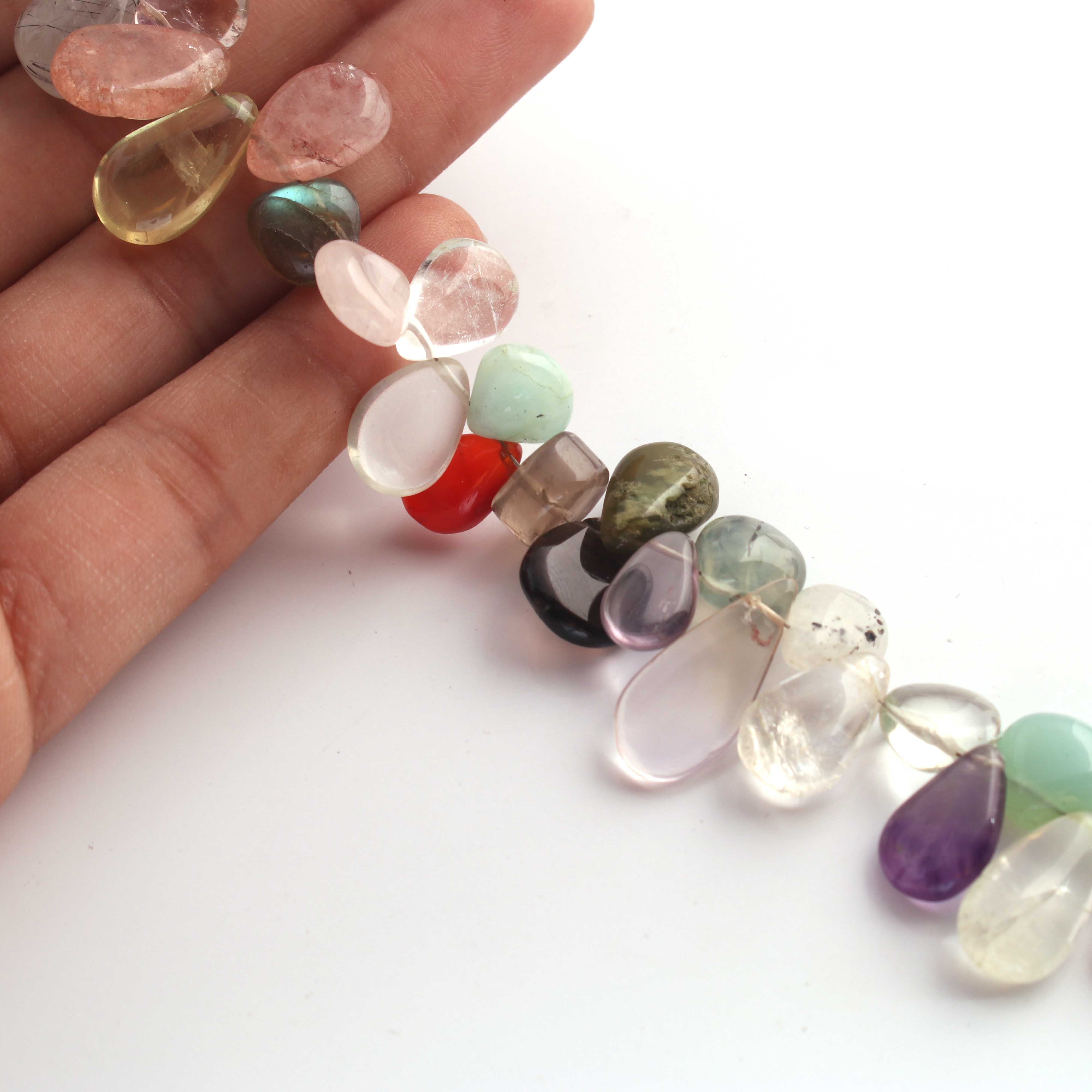 1 Long Strand Multi Stone Smooth Briolettes - Pear Shape Mix Stone Briolettes - 8mmx9mm-21mmx10mm -8 Inches BR2360