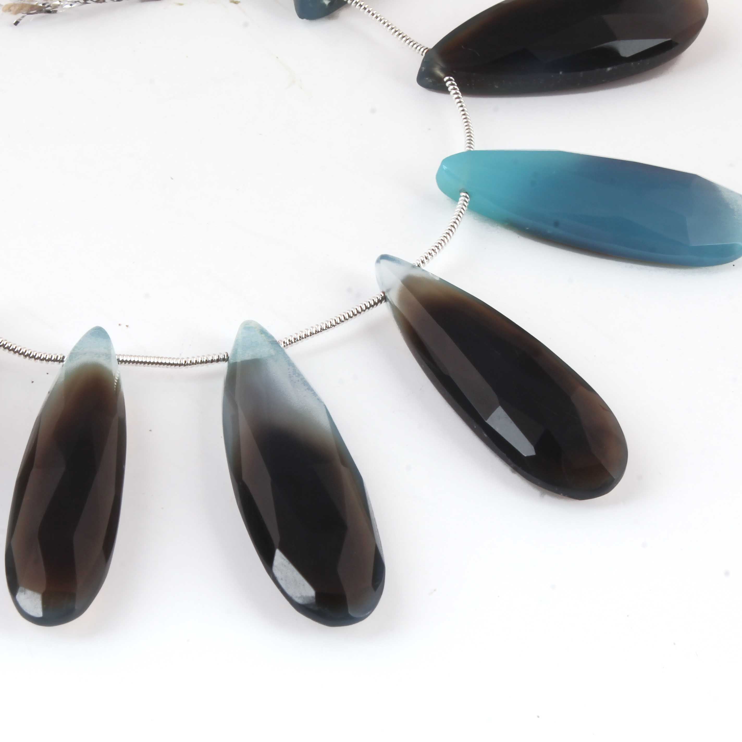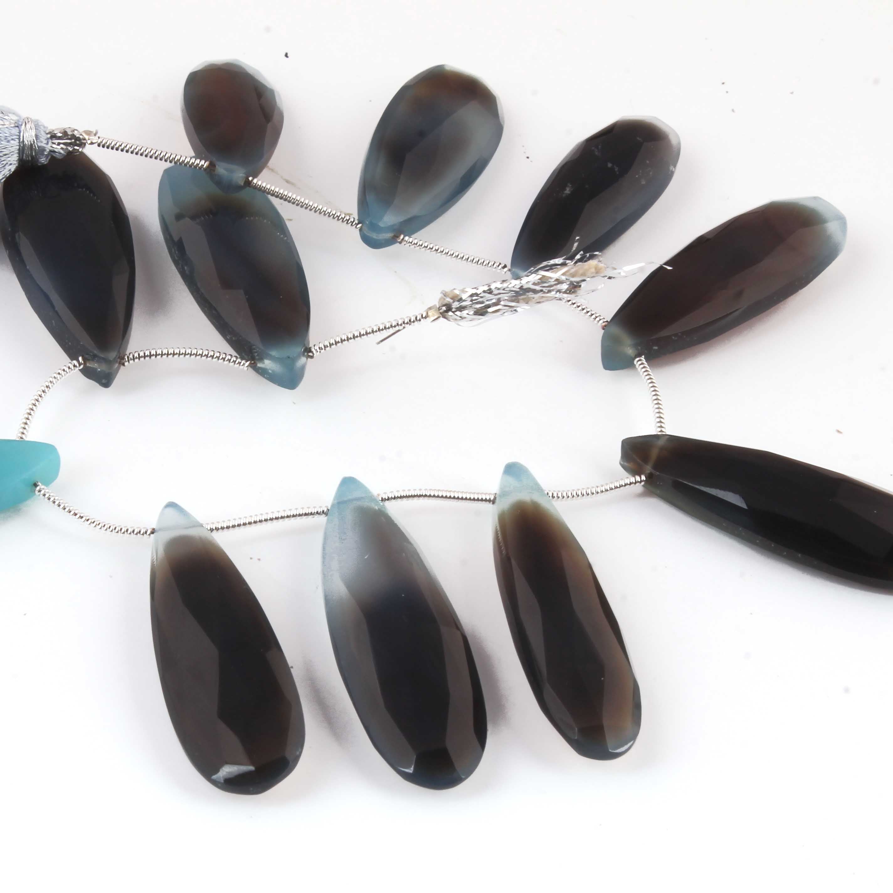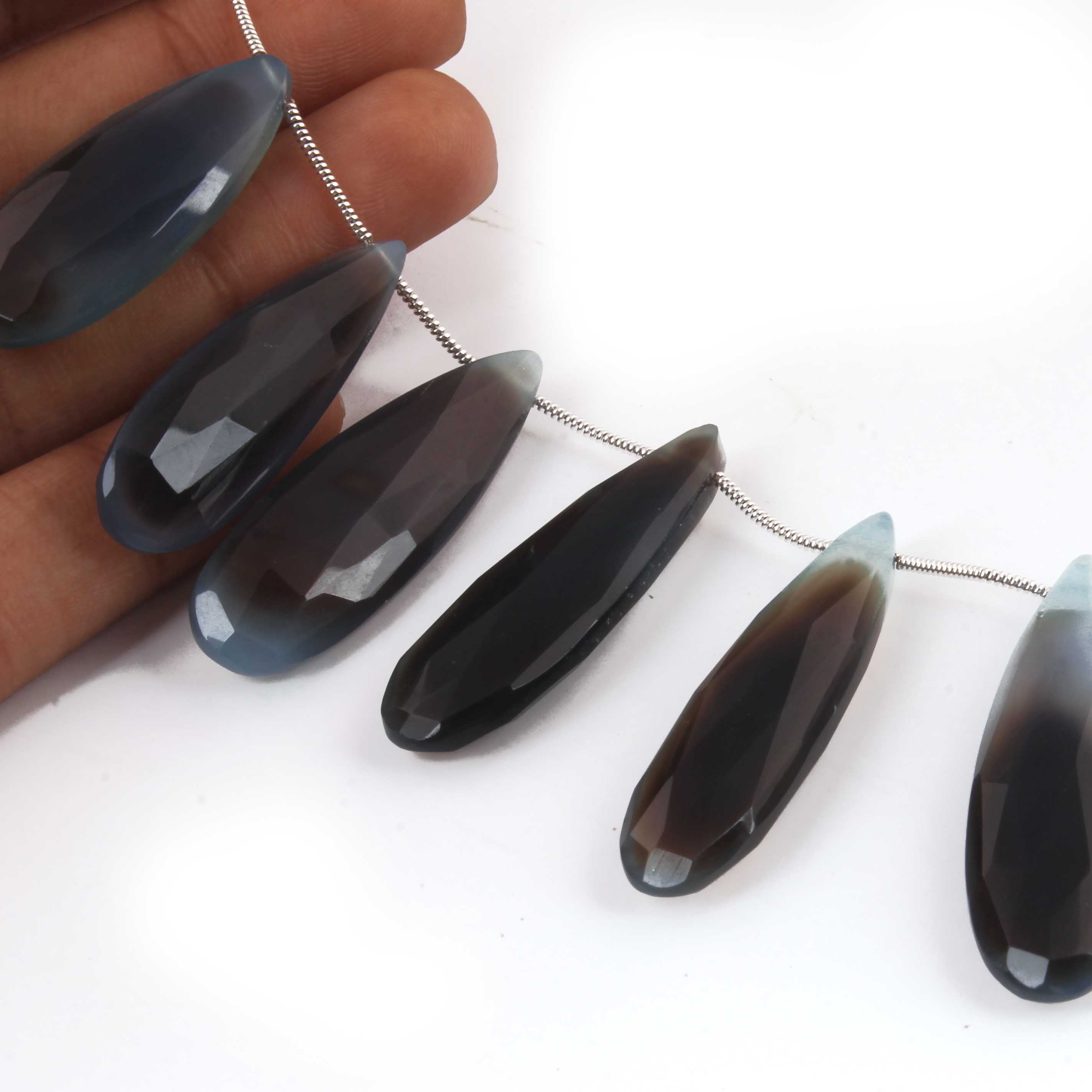 1 Long Strand Shaded Blue Chalcedony Faceted Briolettes - Pear Shape , Jewelry Making Supplies - 39mmx13mm-32mmx12mm 8 Inches BR2717