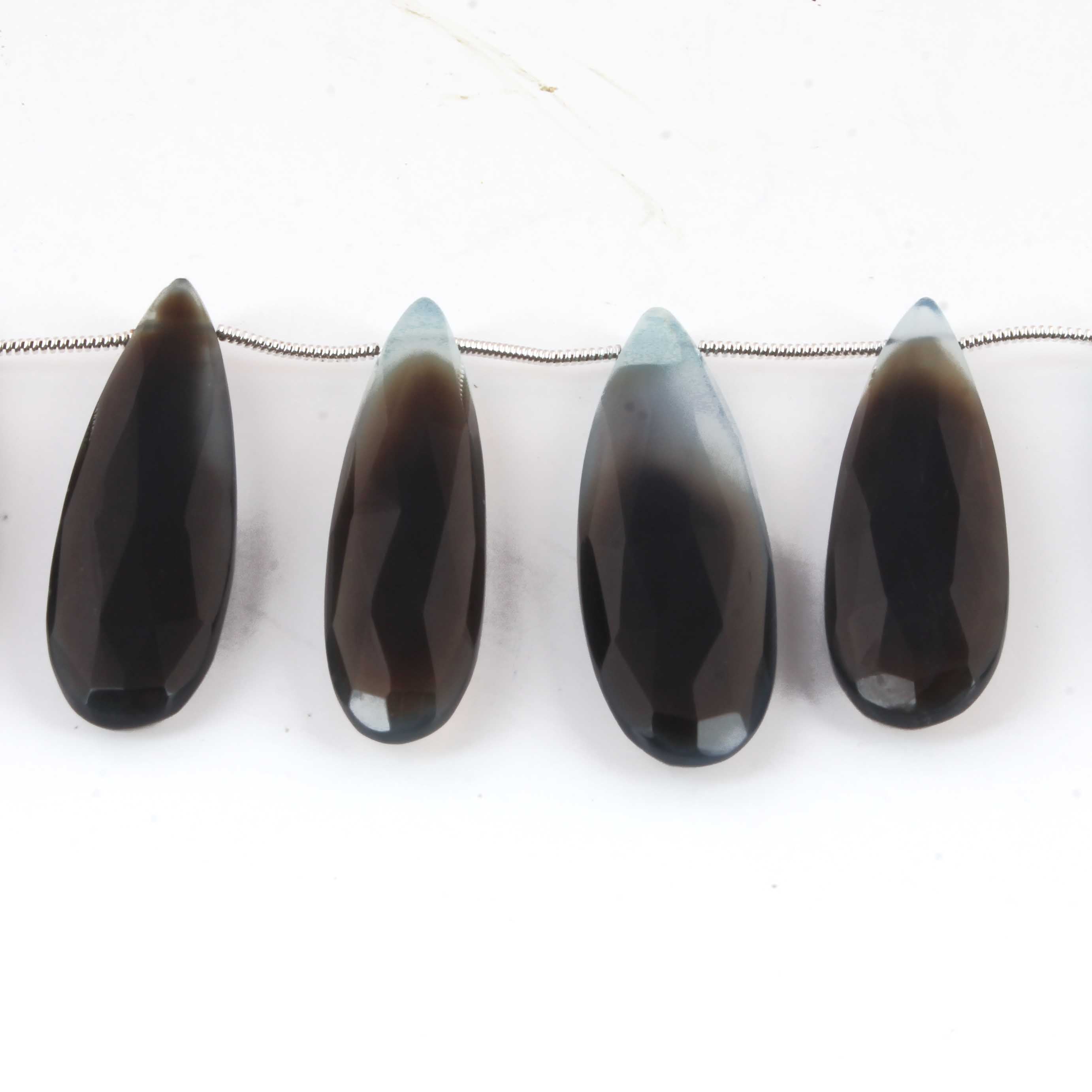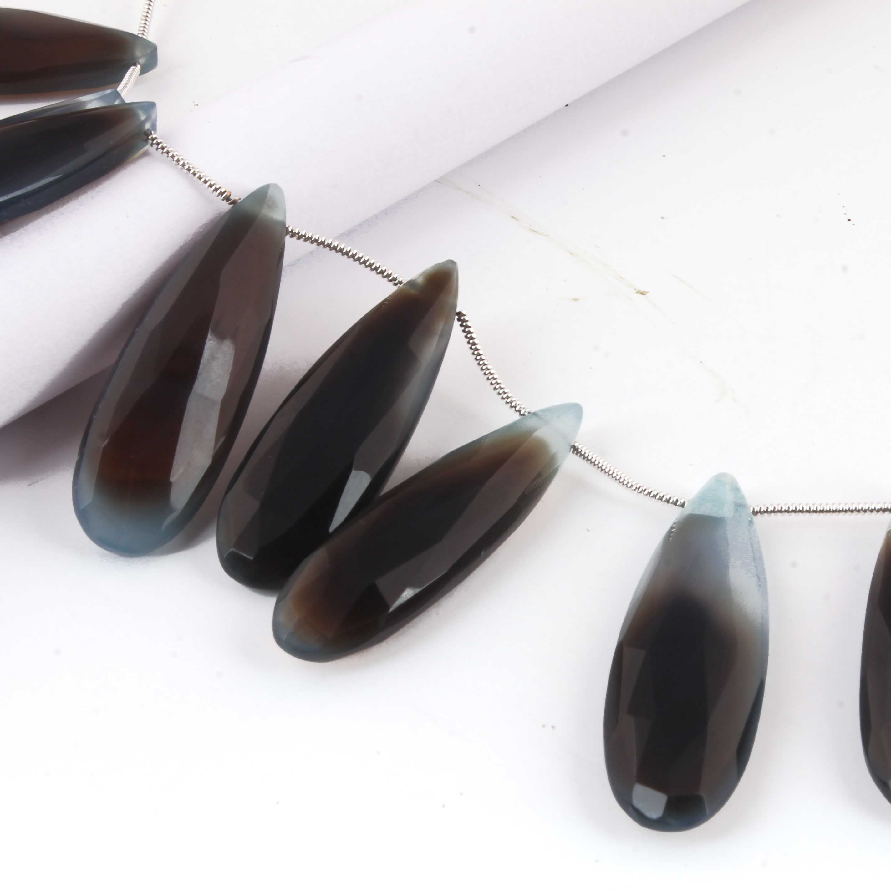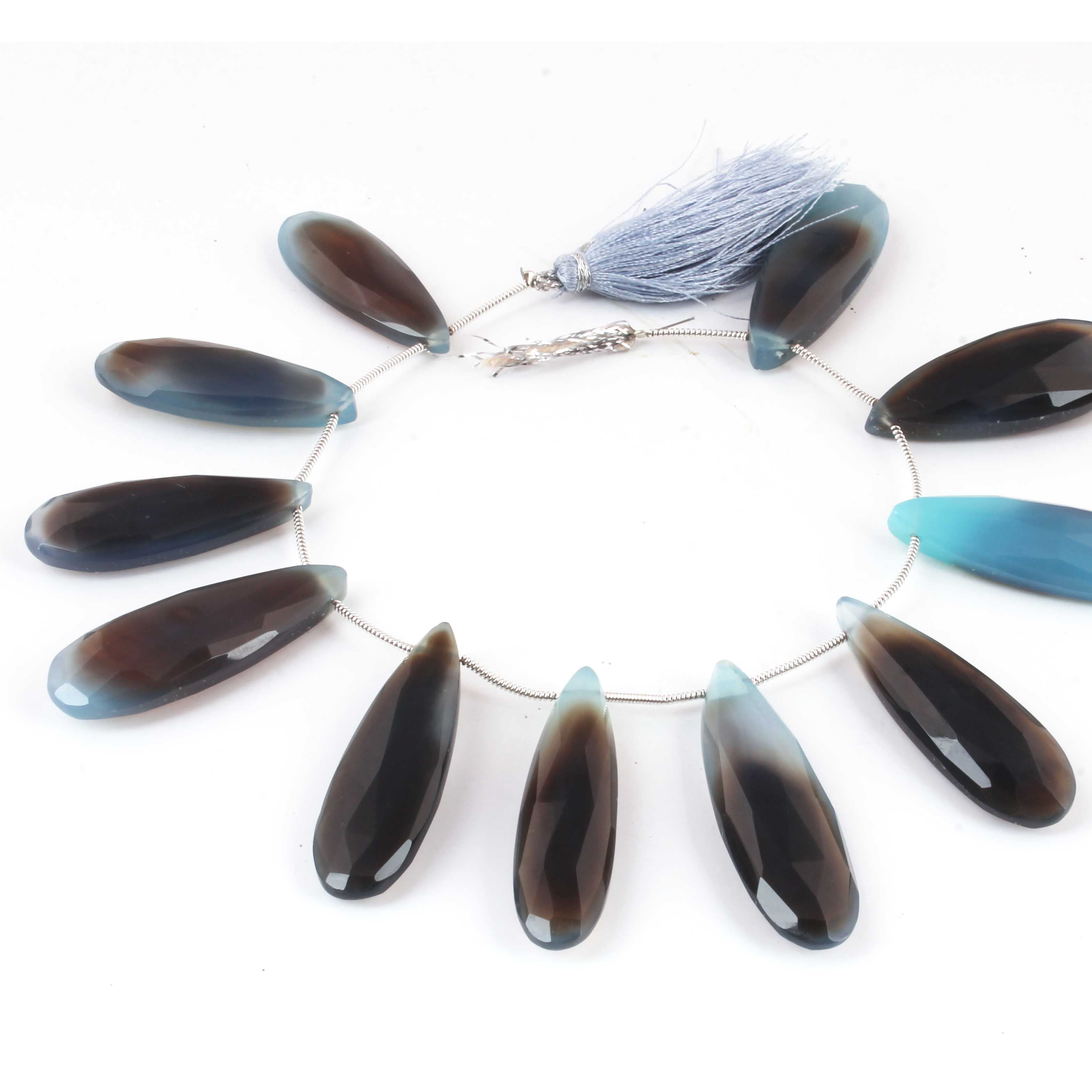 1 Long Strand Shaded Blue Chalcedony Faceted Briolettes - Pear Shape , Jewelry Making Supplies - 39mmx13mm-32mmx12mm 8 Inches BR2717