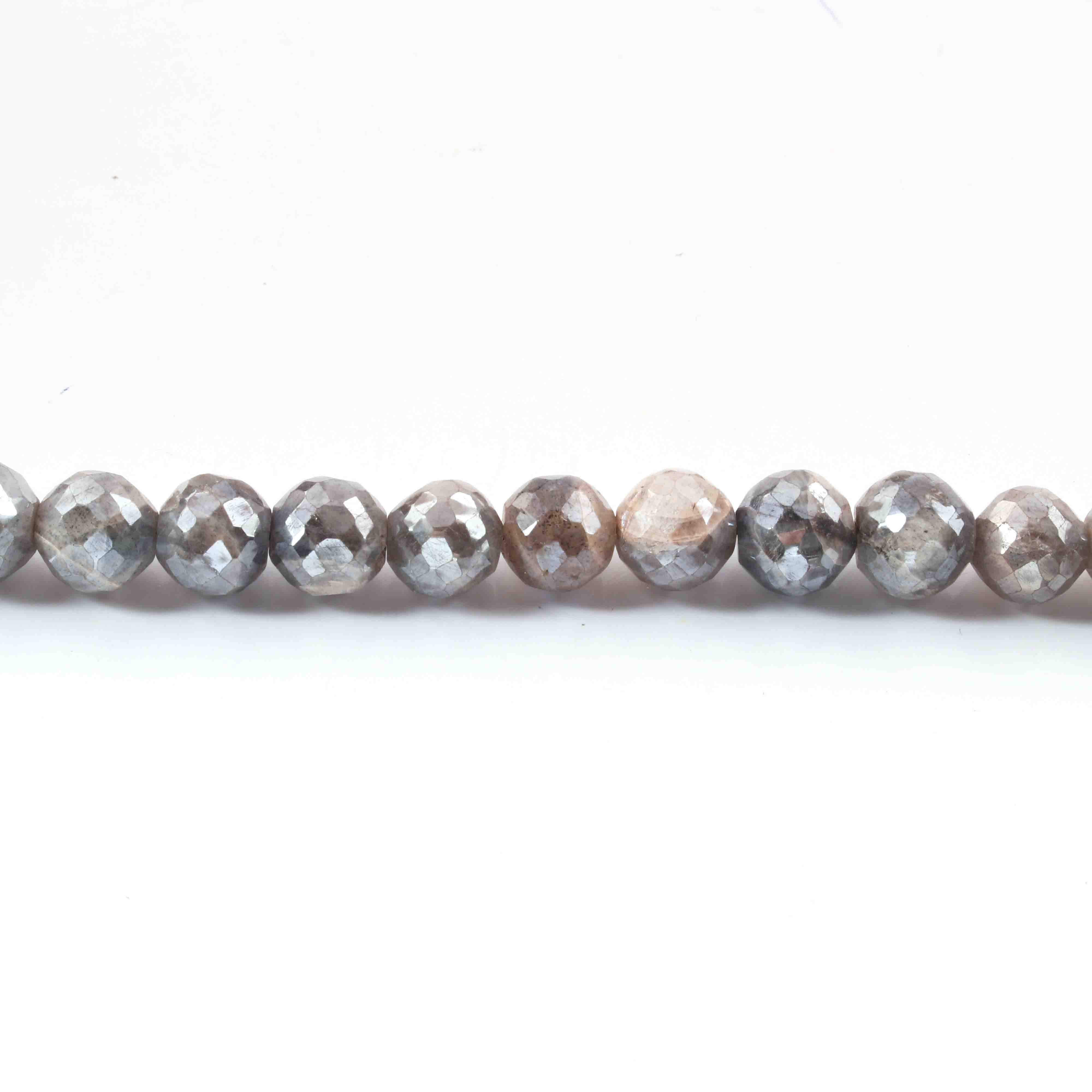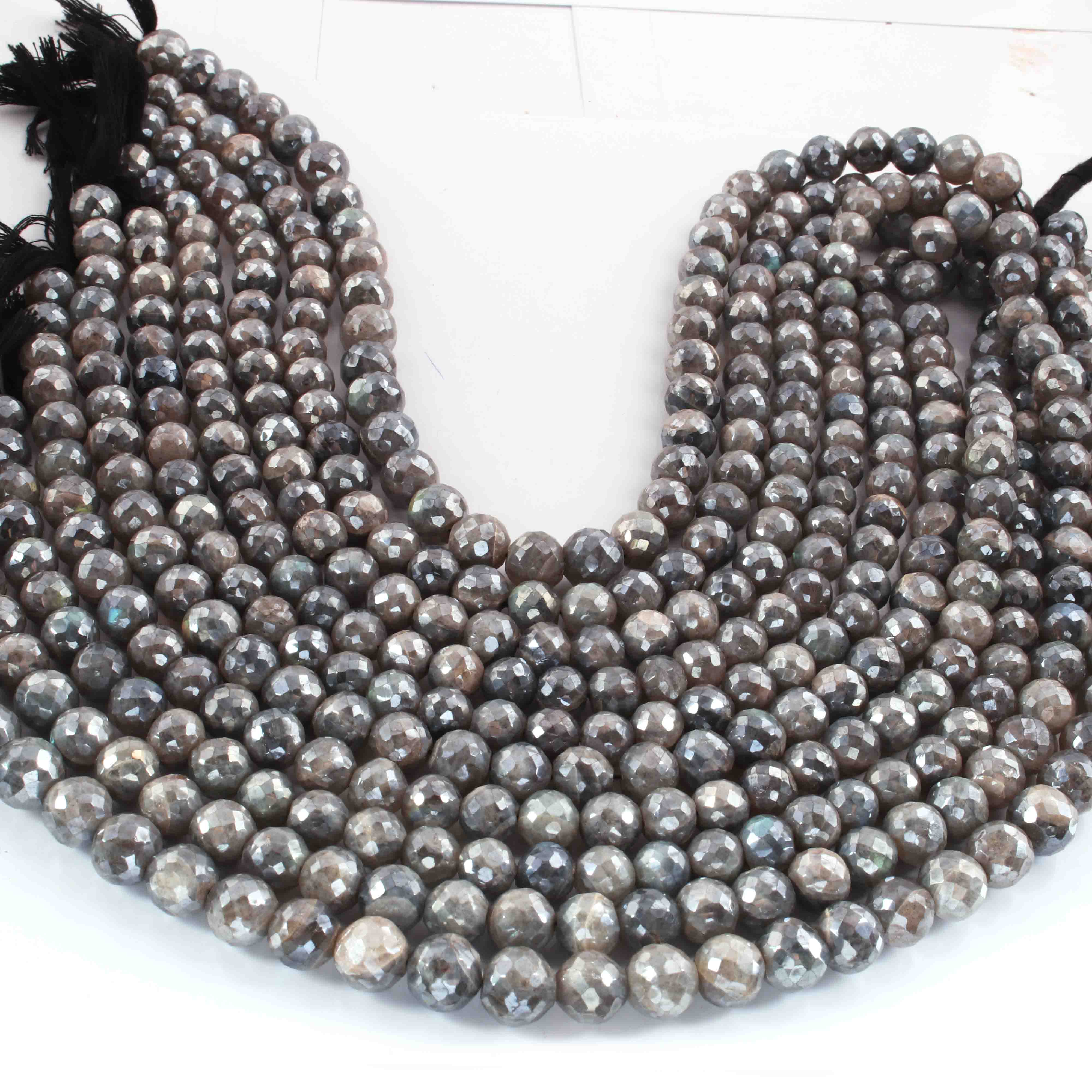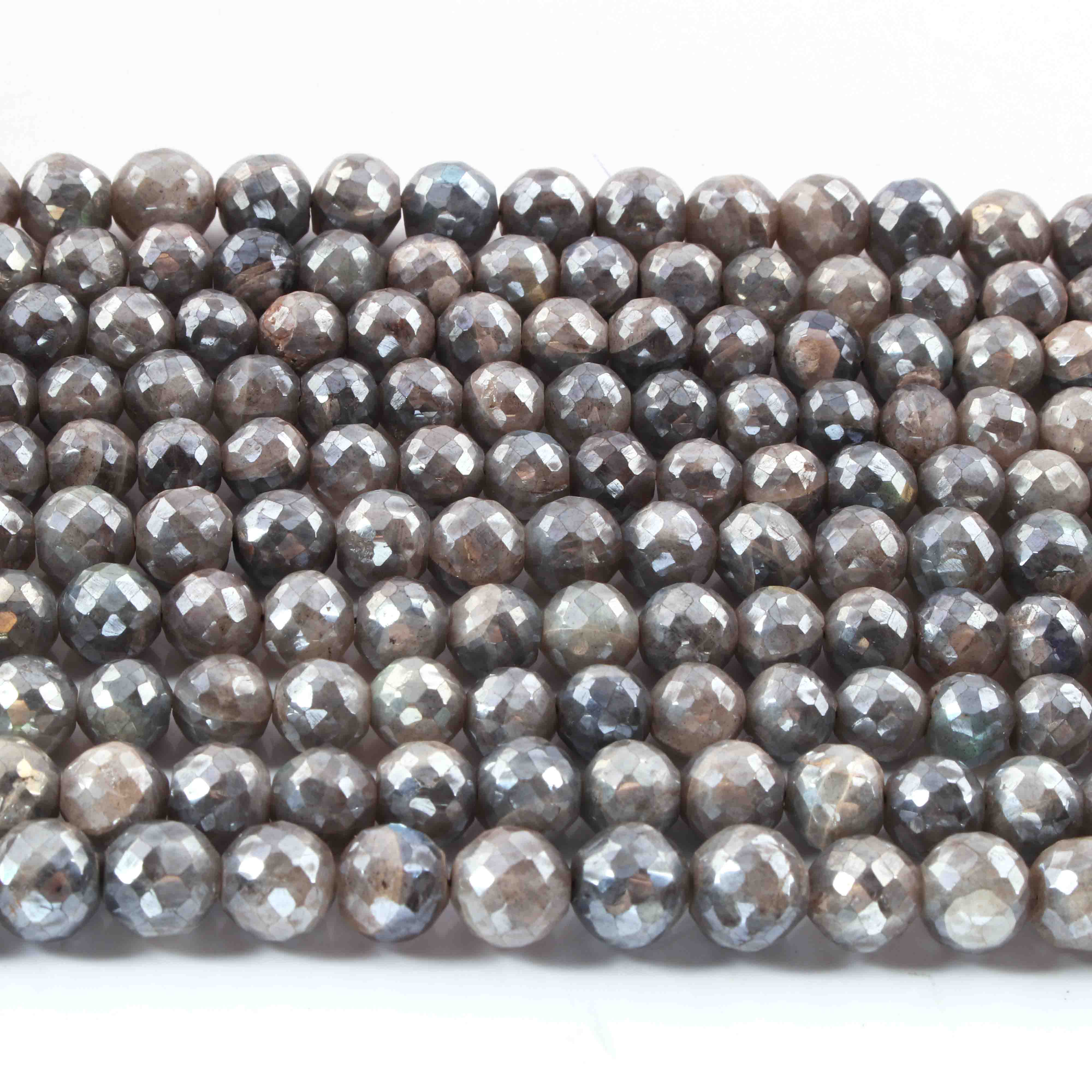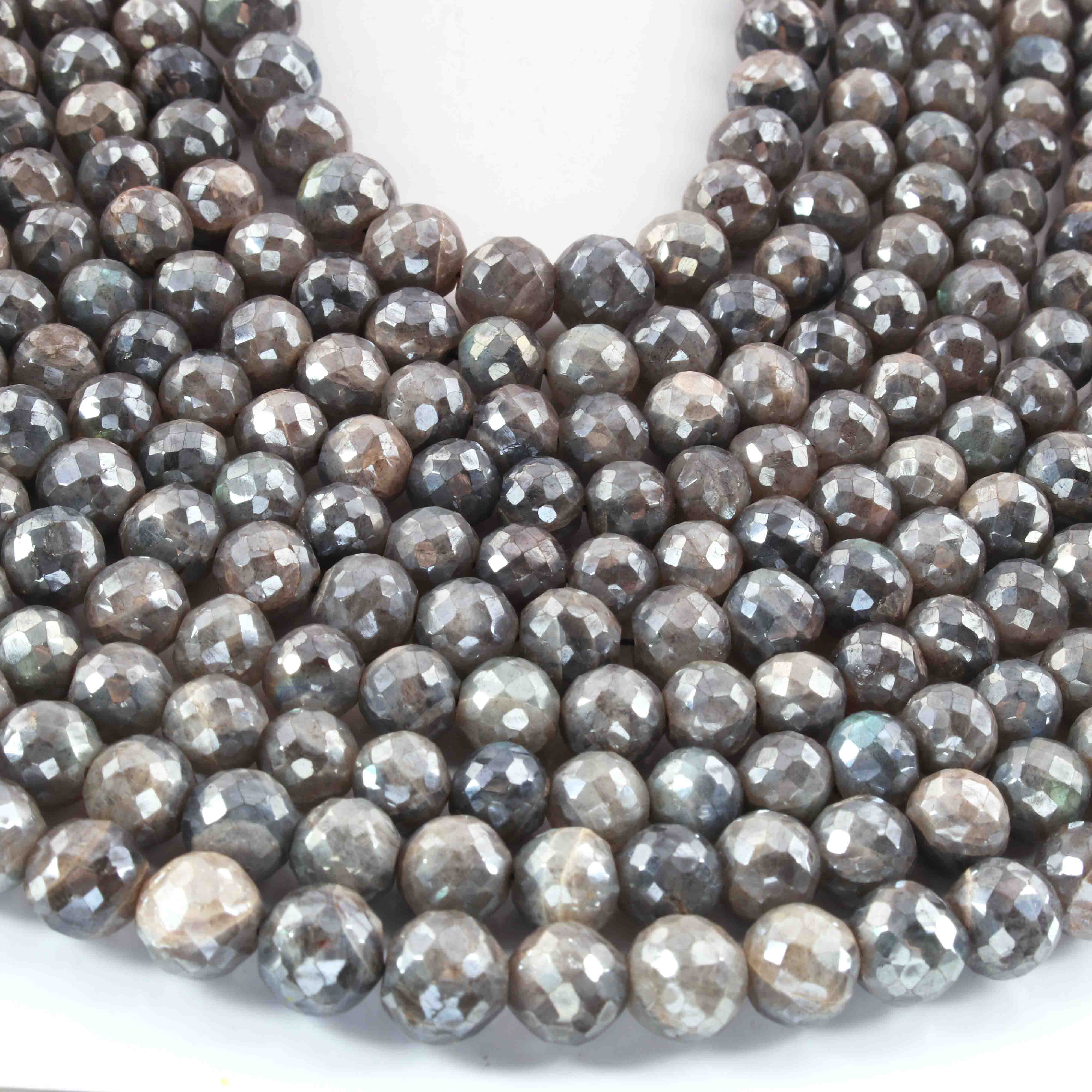 1 Long Strand Labradorite Silver Coated Faceted Round Ball - Round Ball Beads 8mm-10mm 13 Inches BR01859