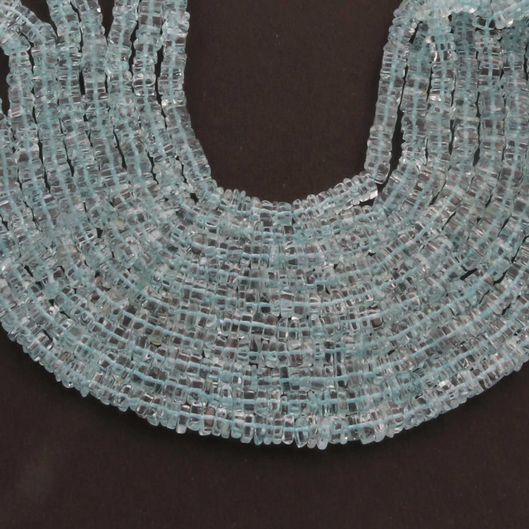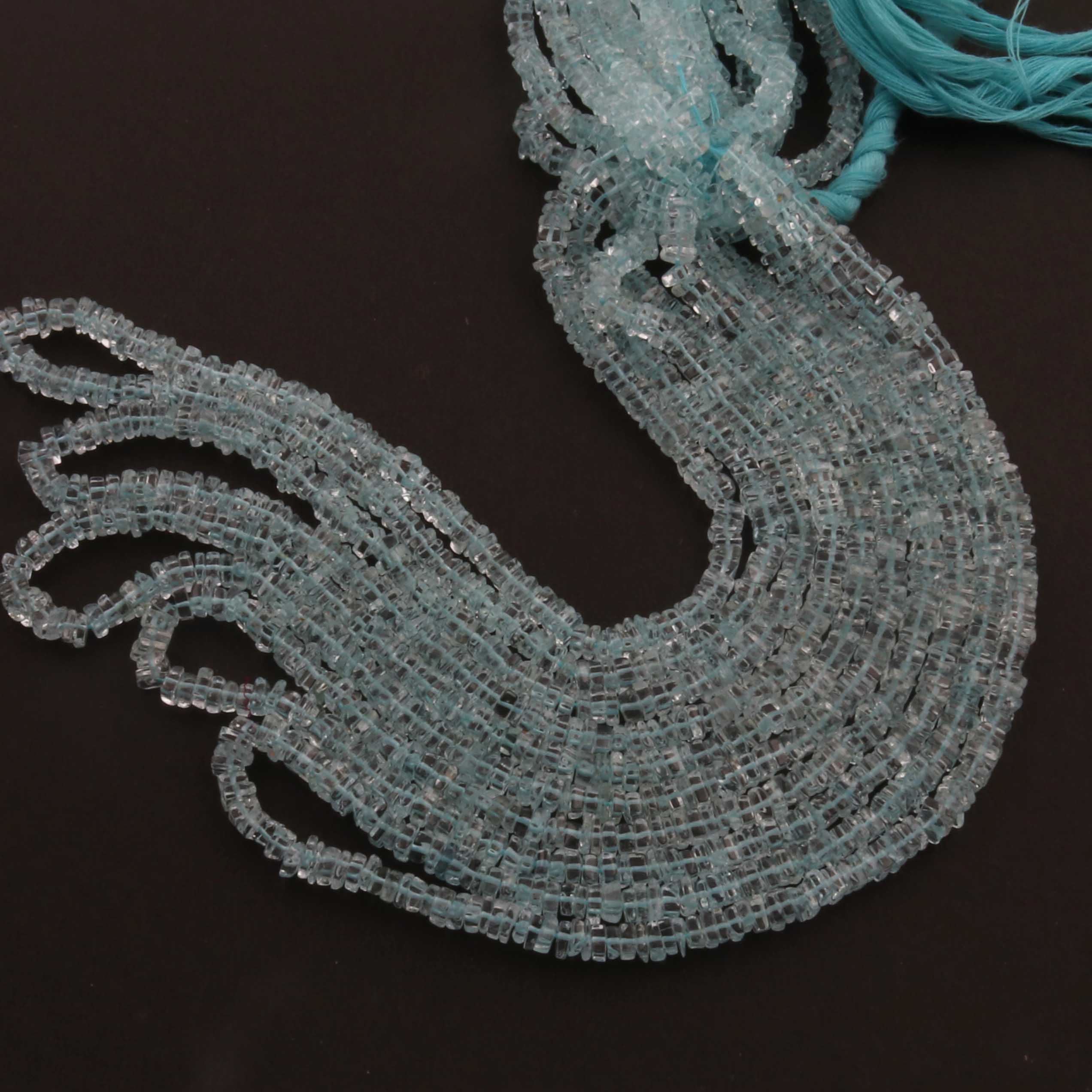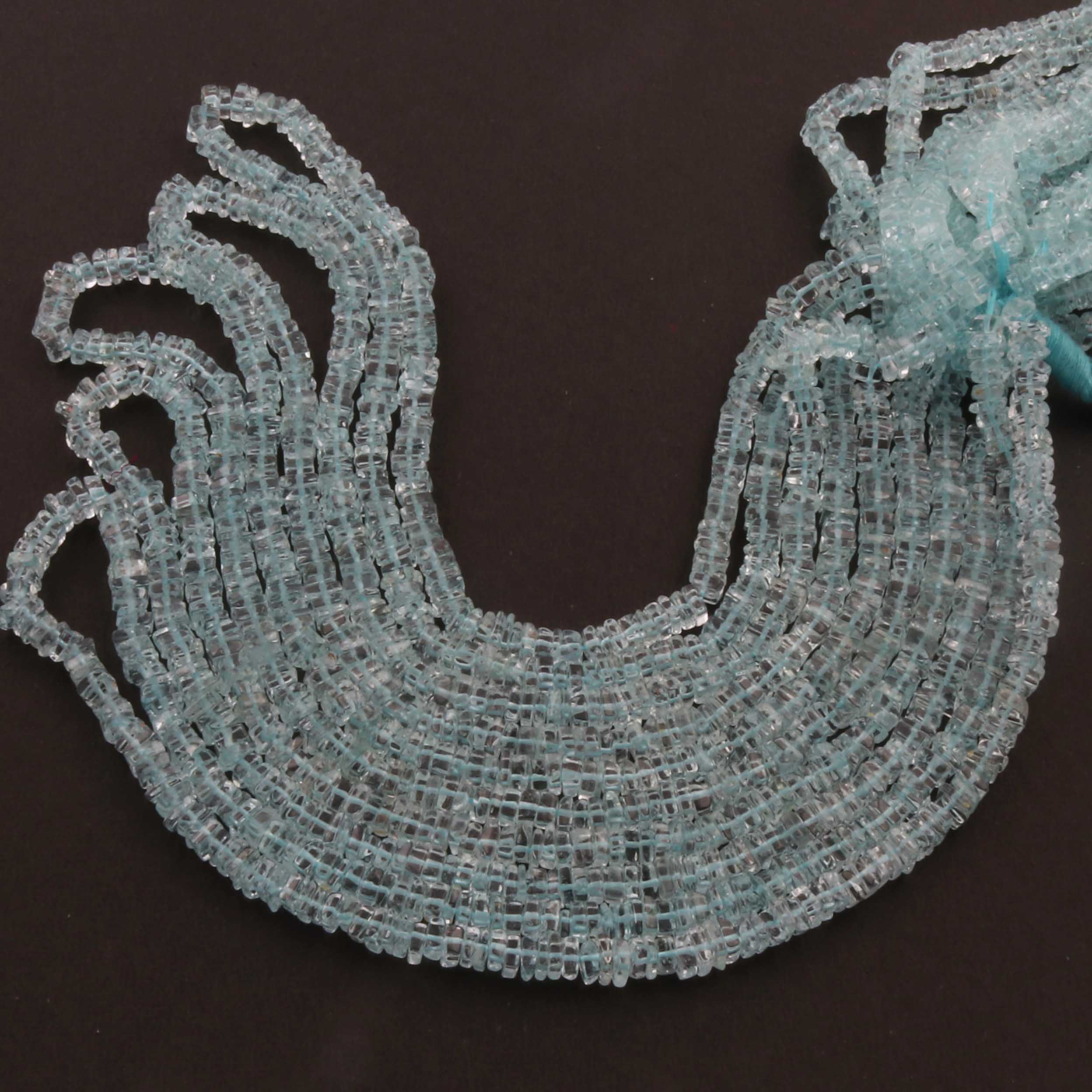 1 Strand AAA+ Aquamarine Smooth Tyre, Wheel Shape Beads - Square Heishi Shape Gemstone Beads 4mm-16 Inches BR03927