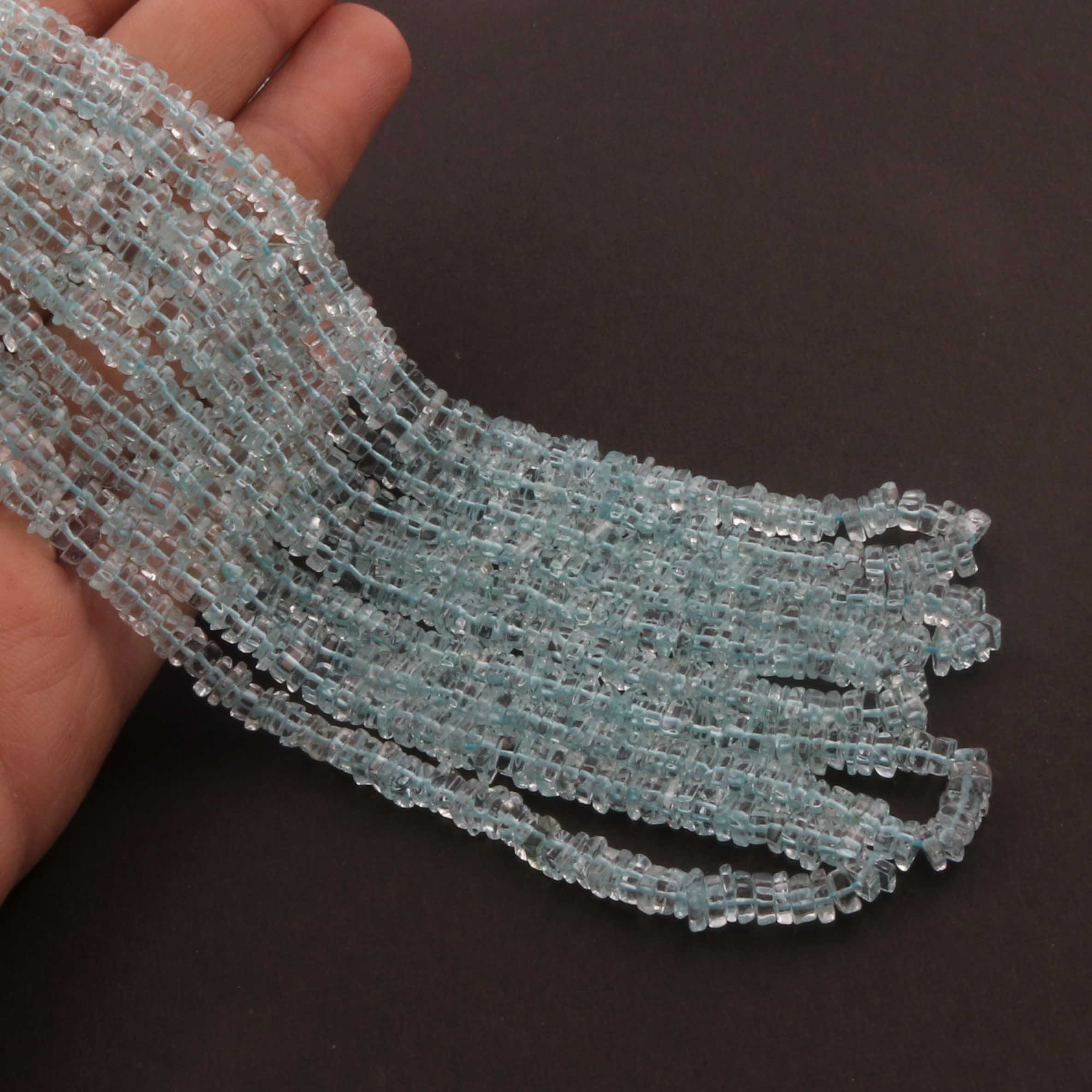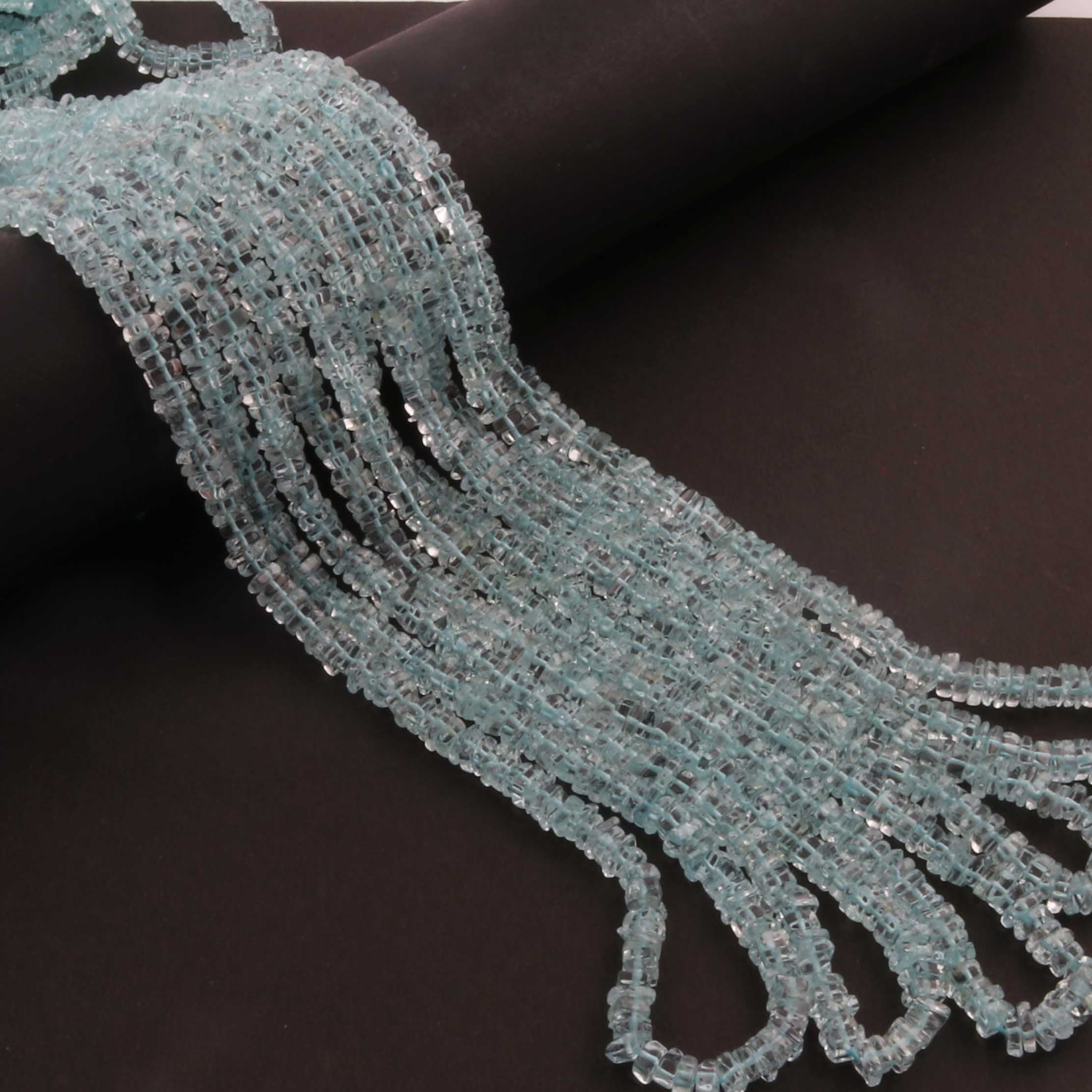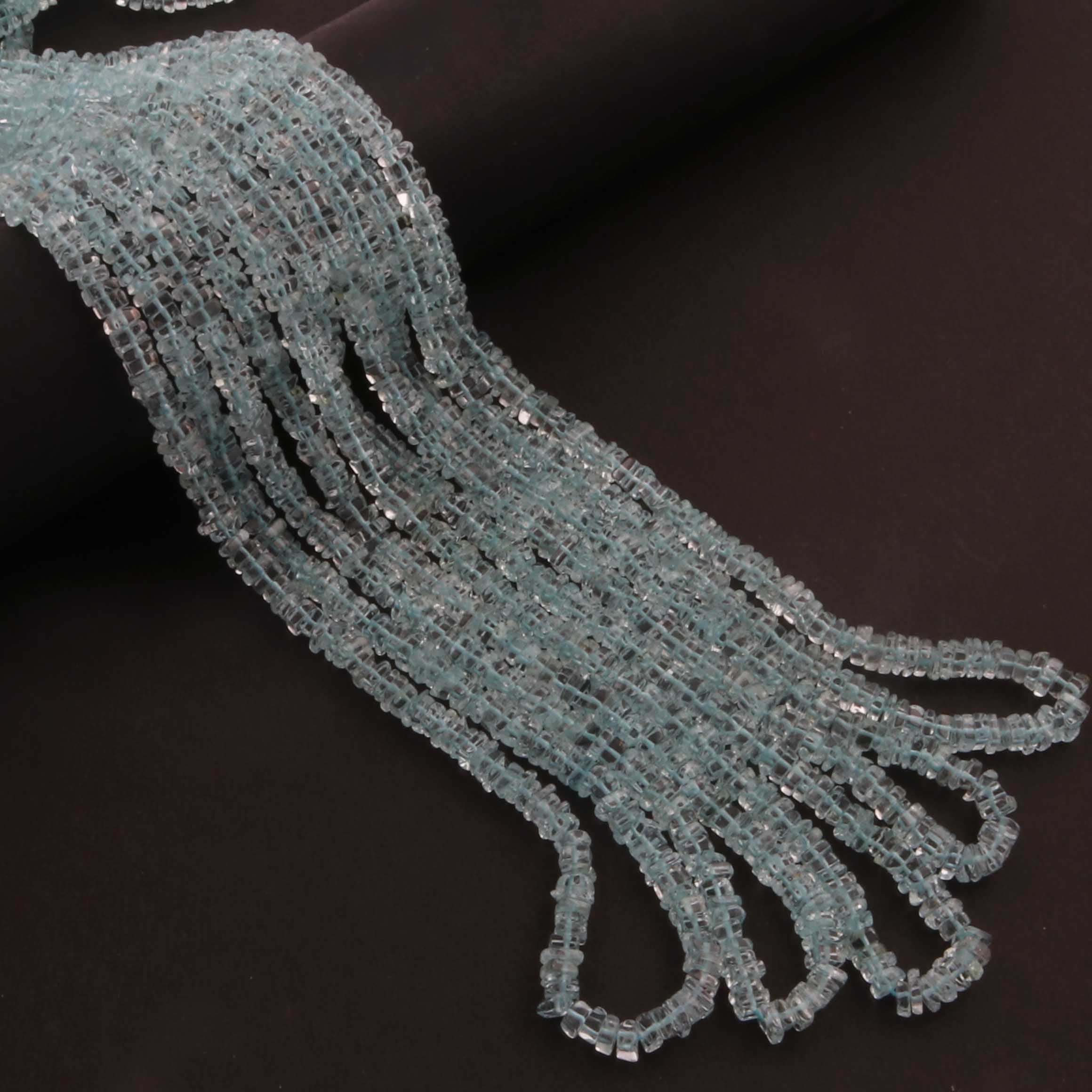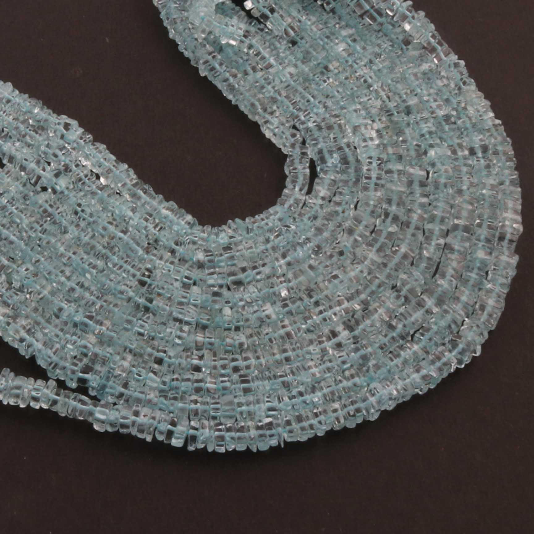1 Strand AAA+ Aquamarine Smooth Tyre, Wheel Shape Beads - Square Heishi Shape Gemstone Beads 4mm-16 Inches BR03927