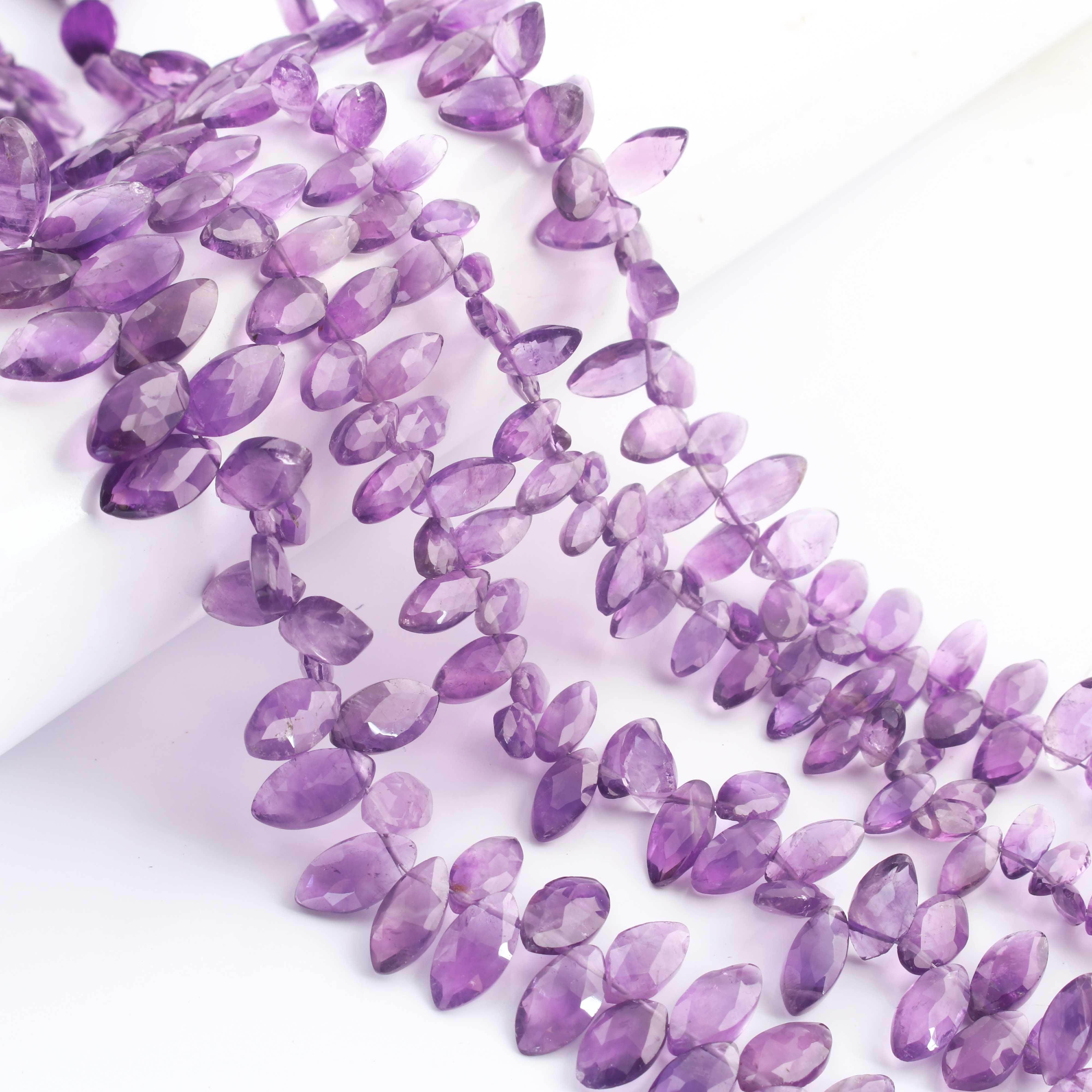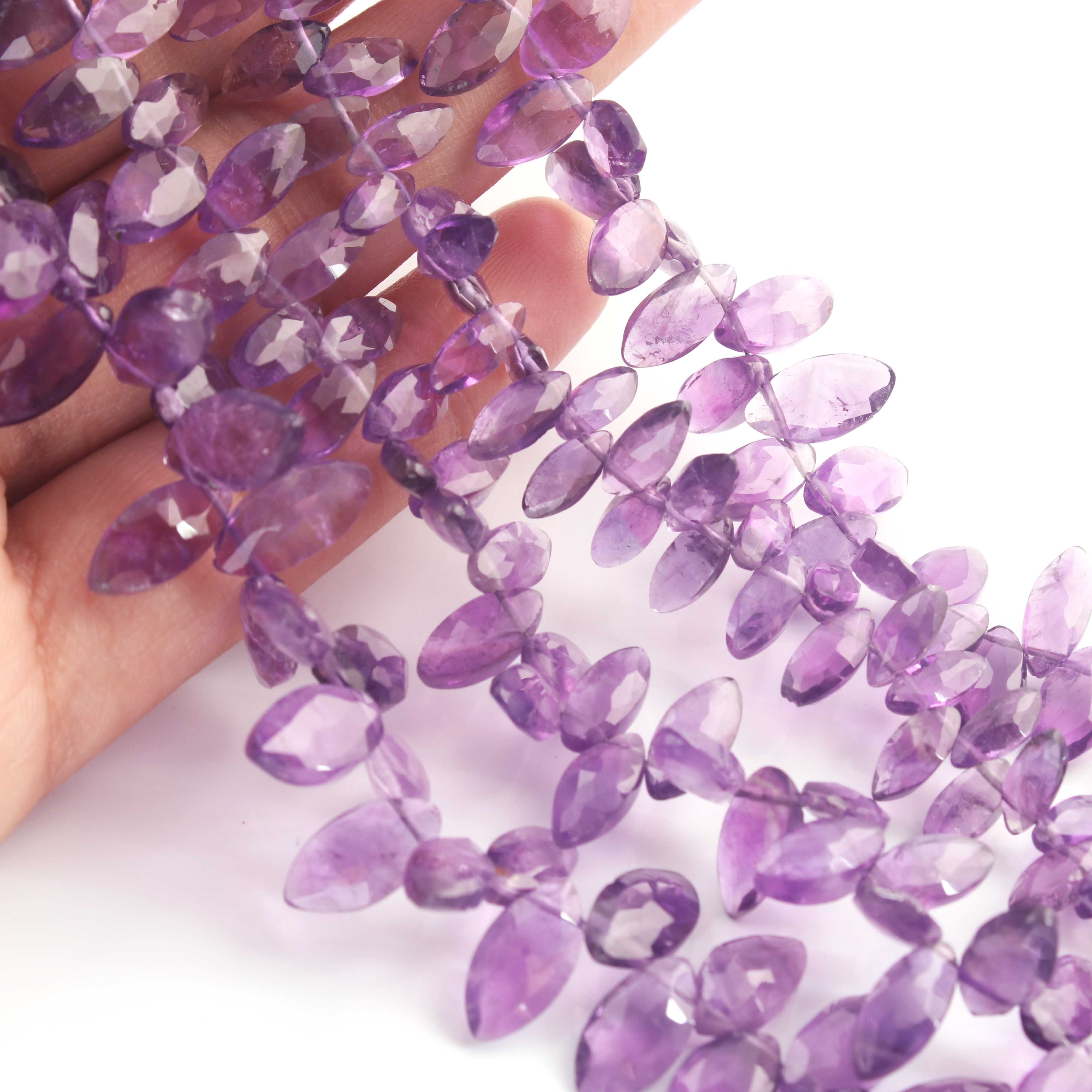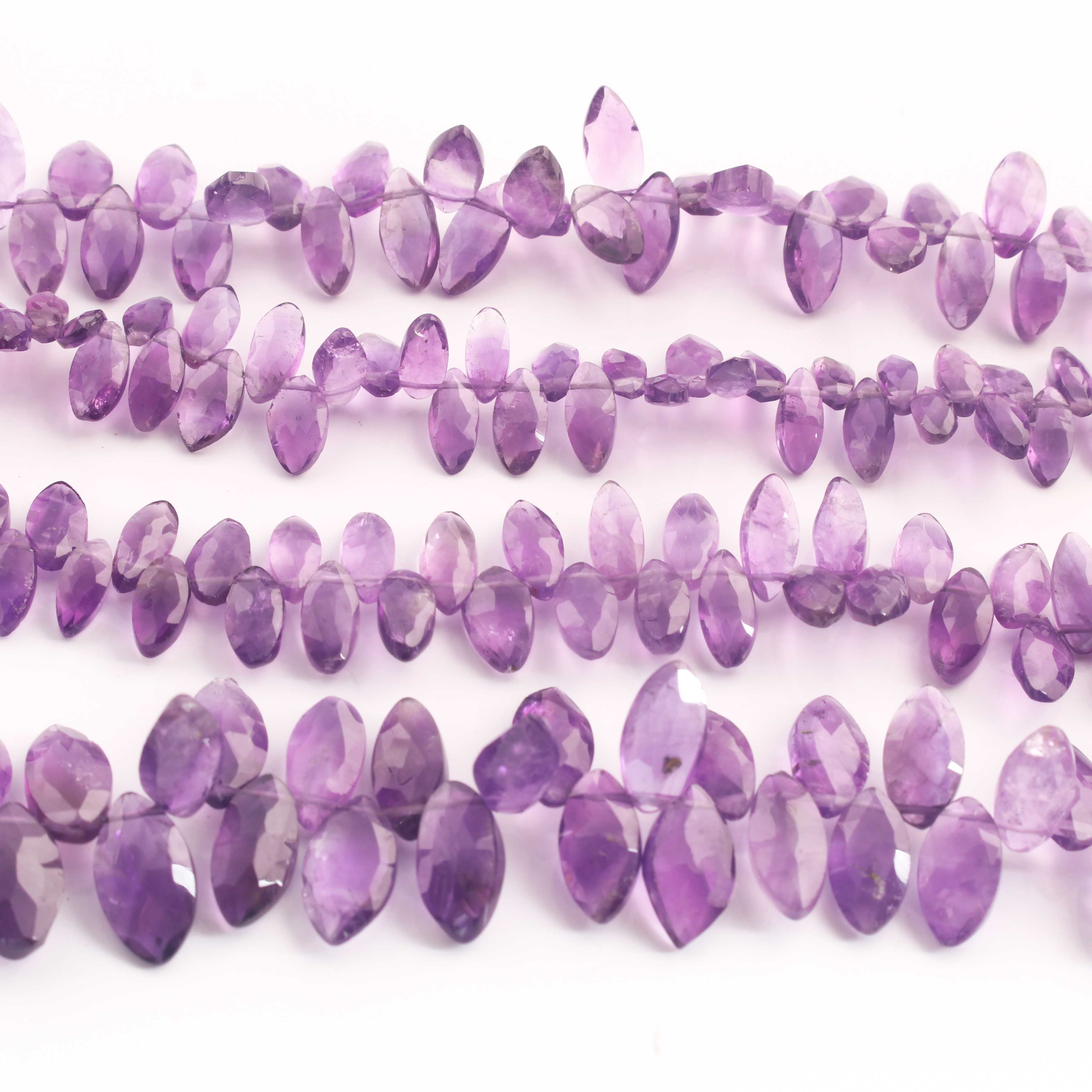 1 Strand Amethyst Faceted Briolettes - Marquise Shape Briolettes -8mmx4mm-14mmx7mm - 8 Inches BR02746