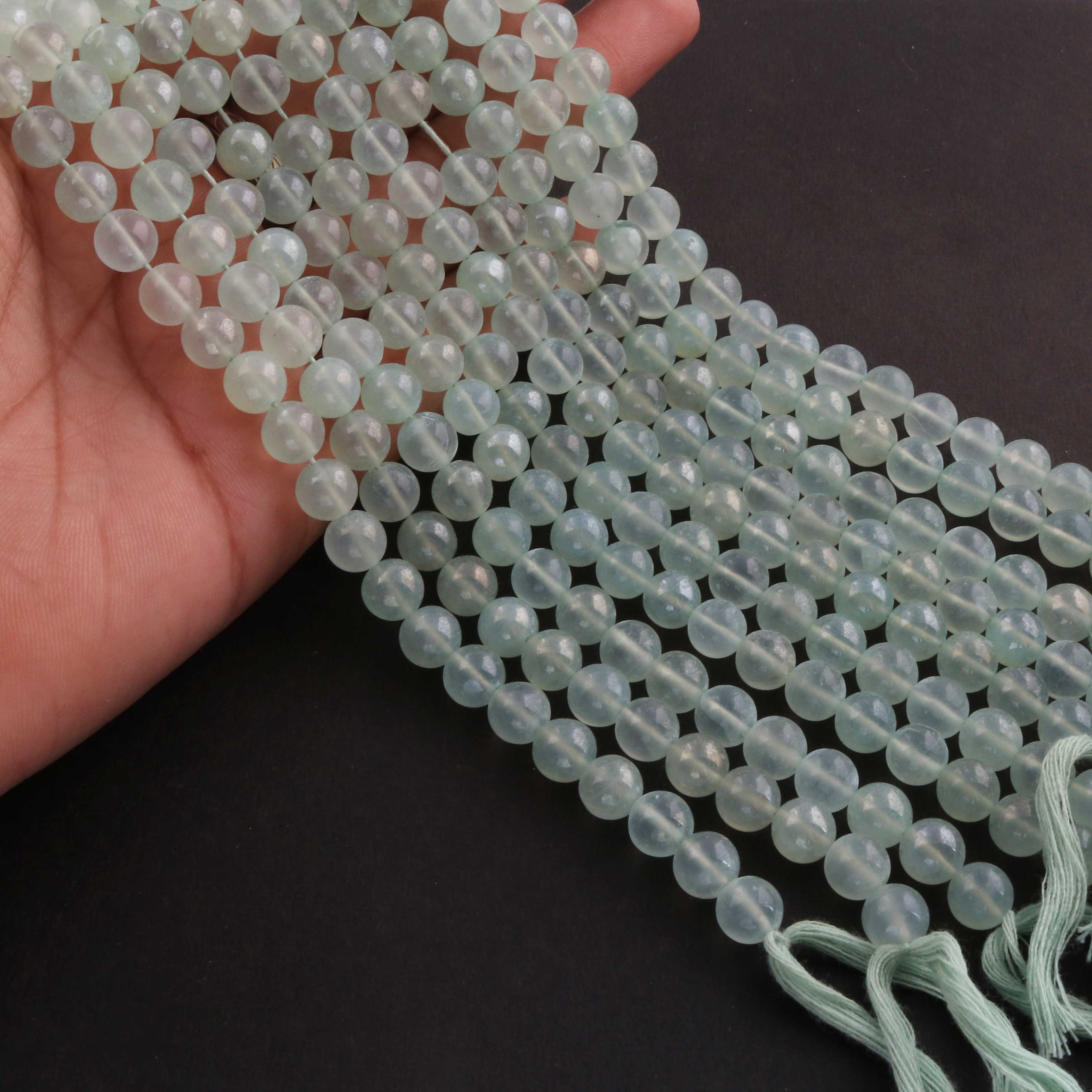 1 Strand Aqua Chalcedony Smooth Rondelles -Gemstone Beads 7mm - 8 Inches BR2223