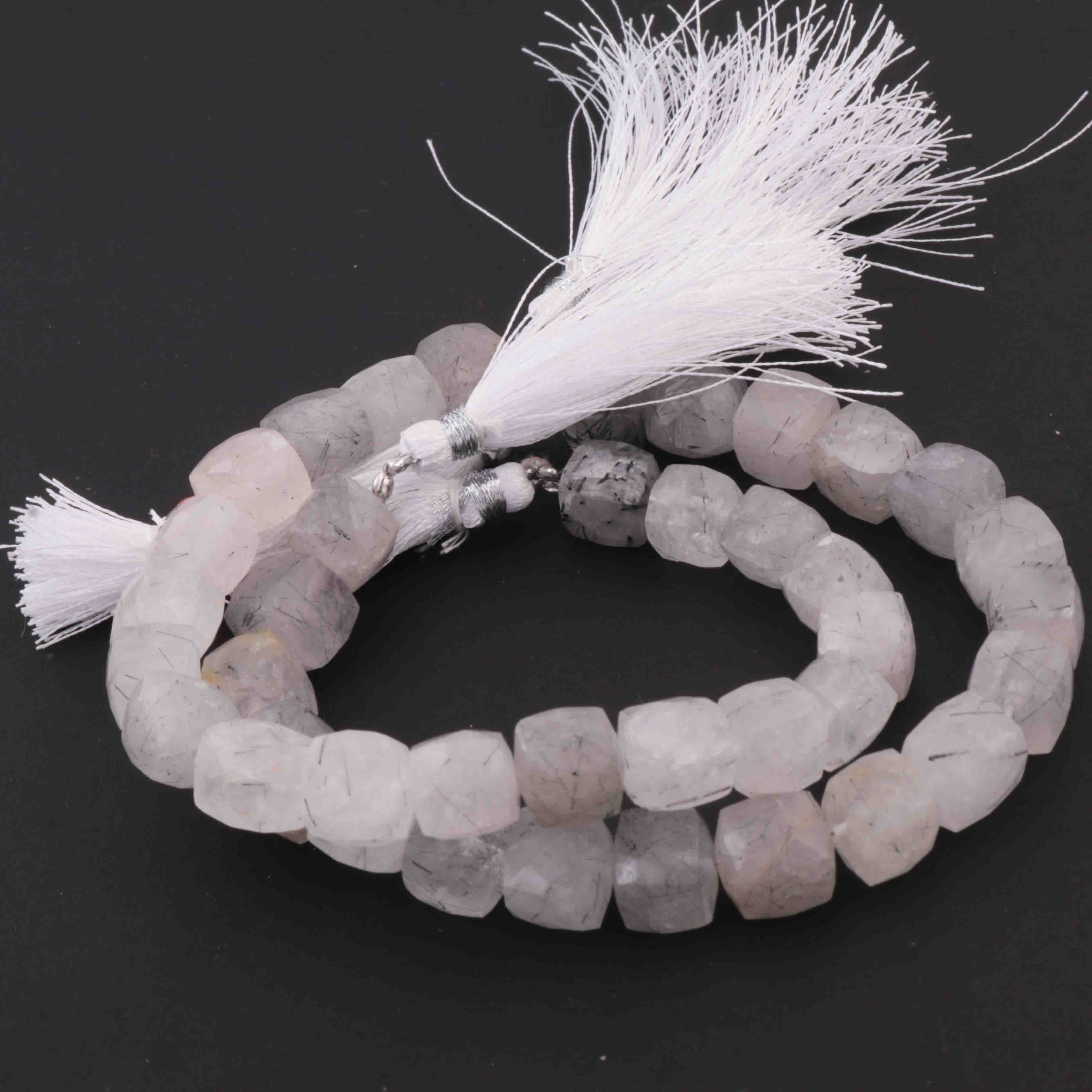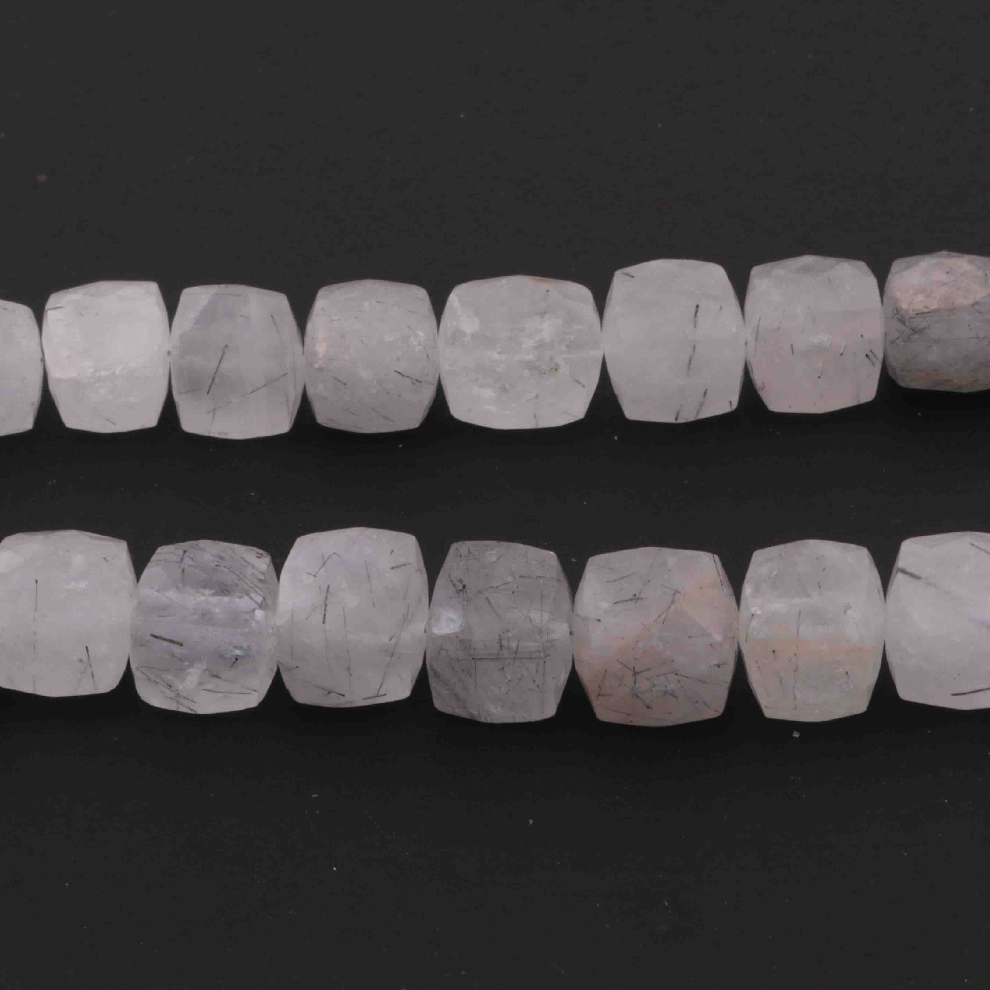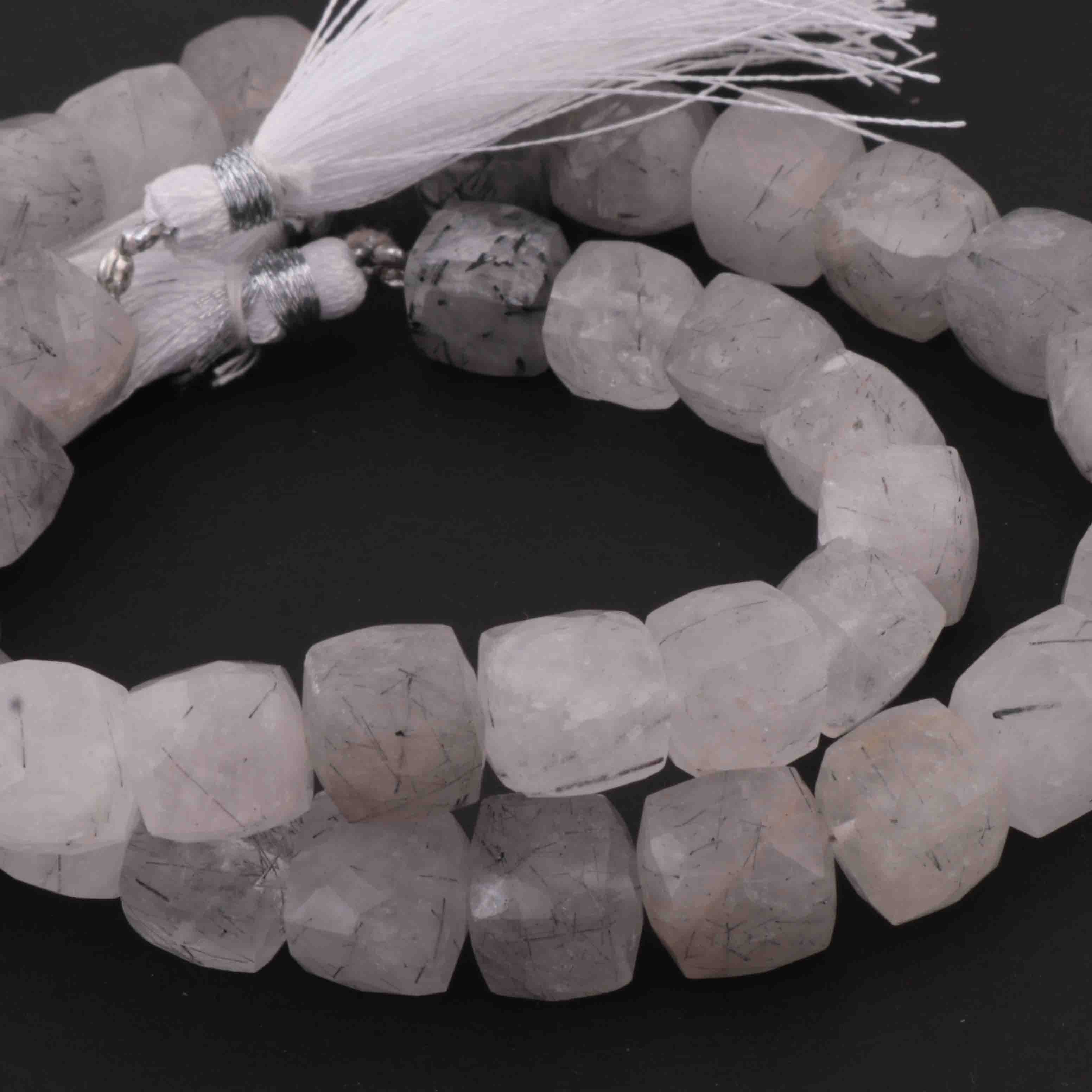 1 Strand Black Rutile Faceted Briolettes -Cube Shape Briolettes 10mm-9mm-7.5 Inches BR2652