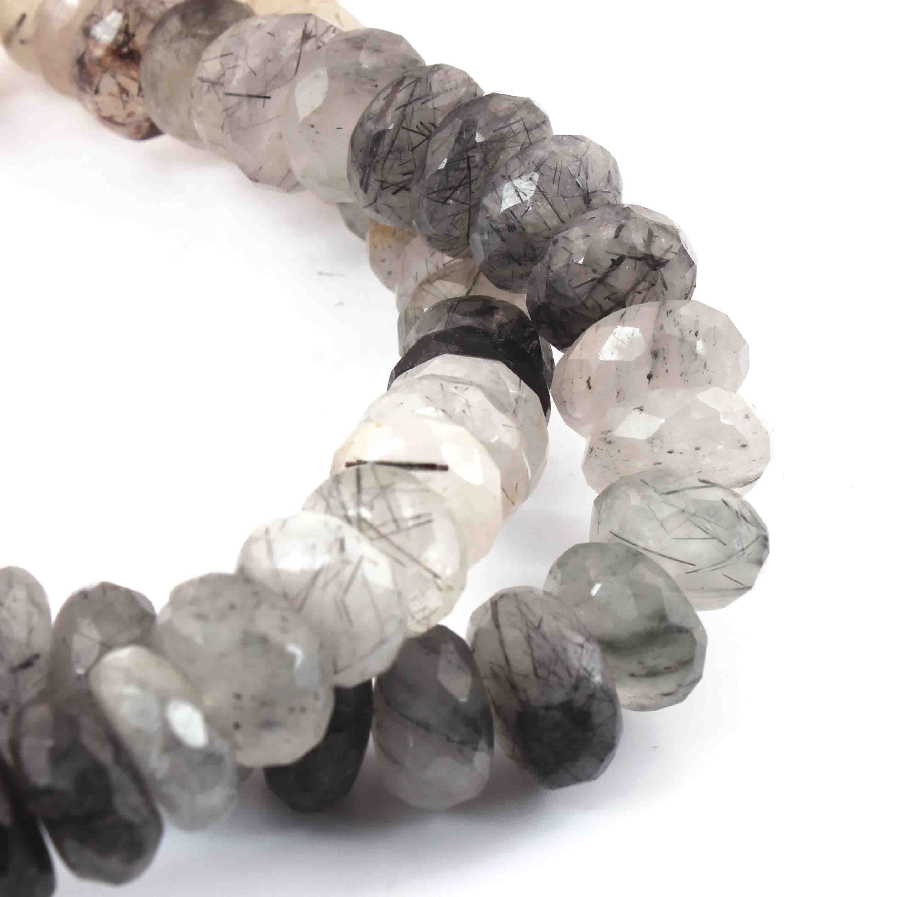 1 Strand Black Rutile Faceted Rondelles - 14mmx11mm -10.5 Inches BR3860