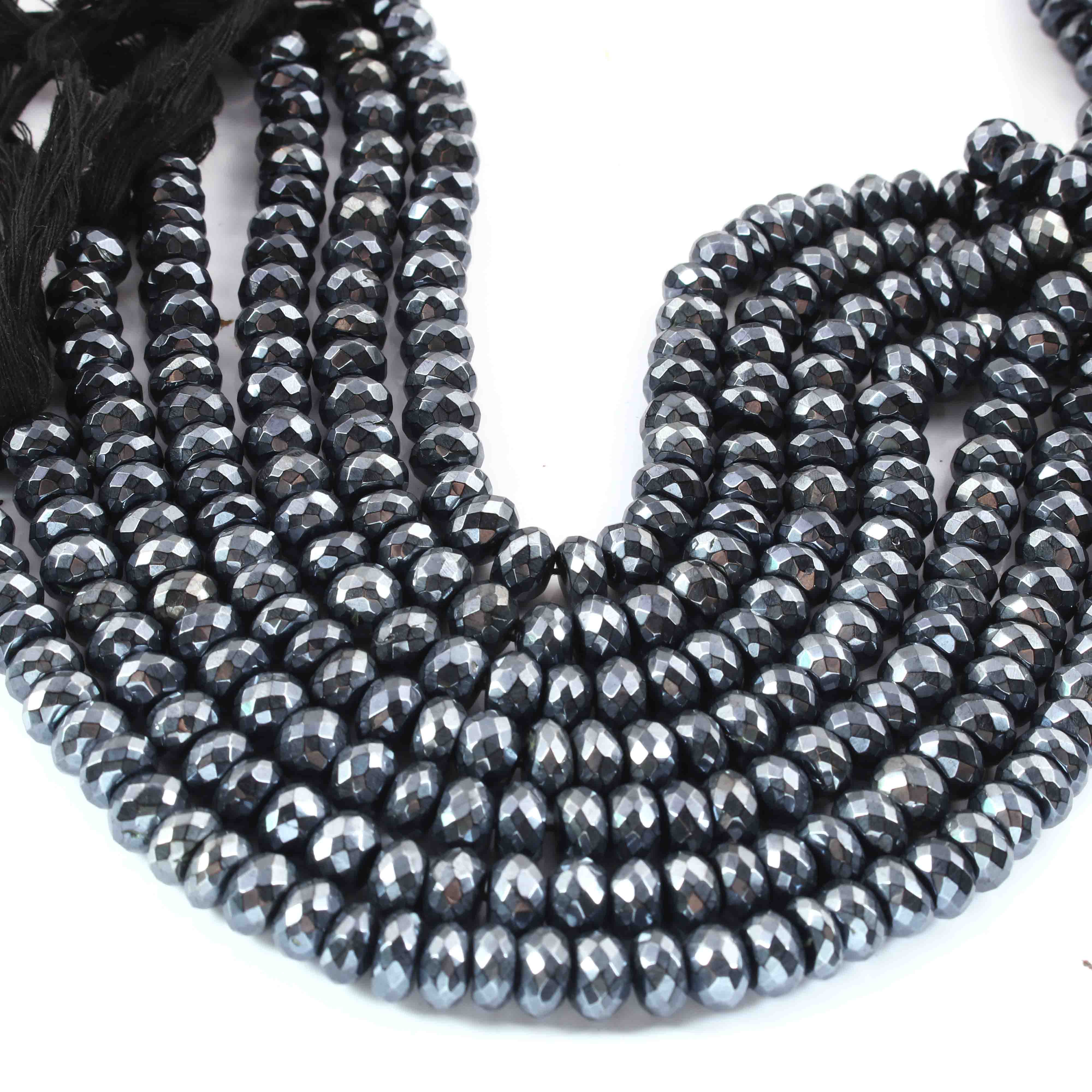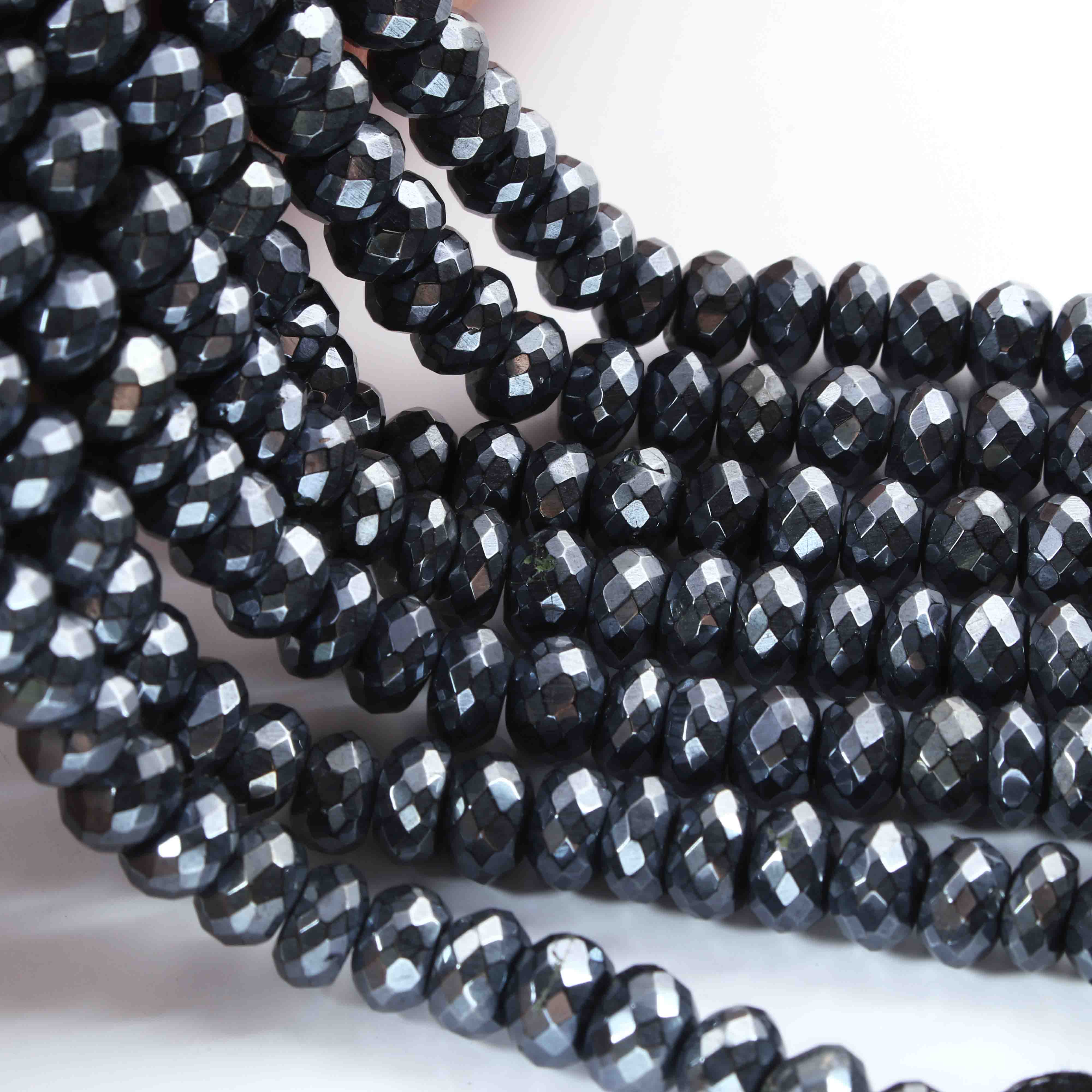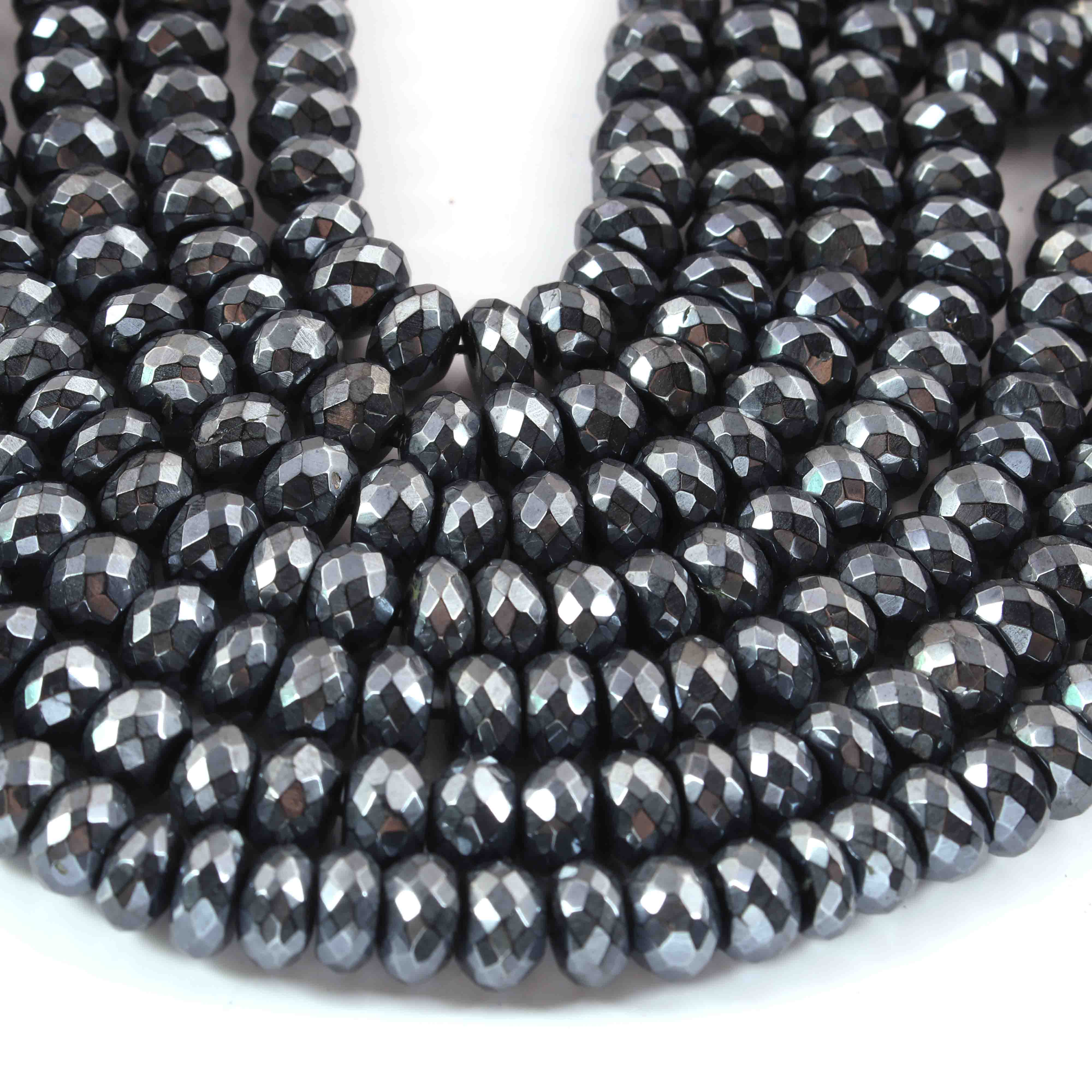 1 Strand Black Spinel Silver Coated Faceted Rondelles -Gemstone Rondelles Beads -8mm-8 Inches BR01912