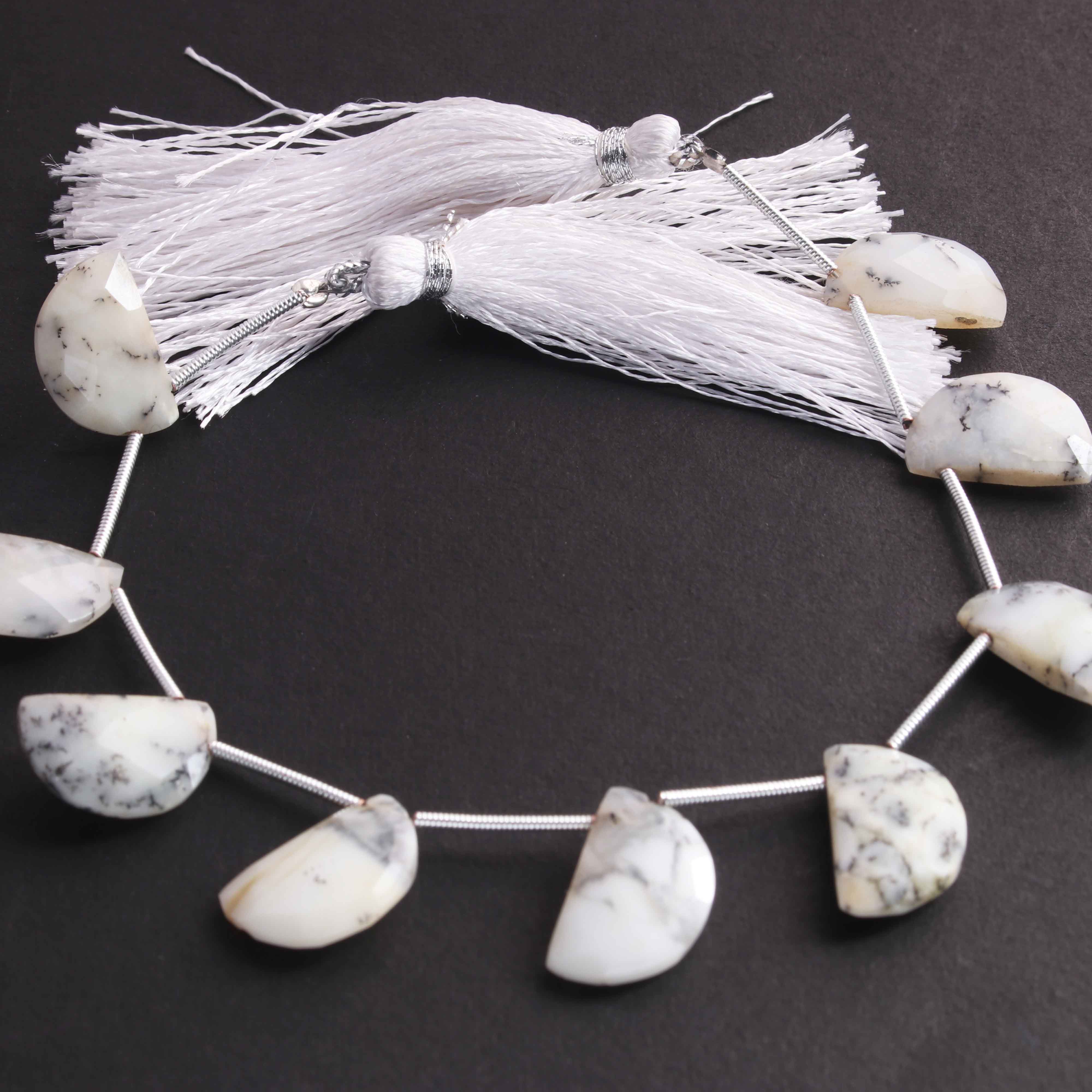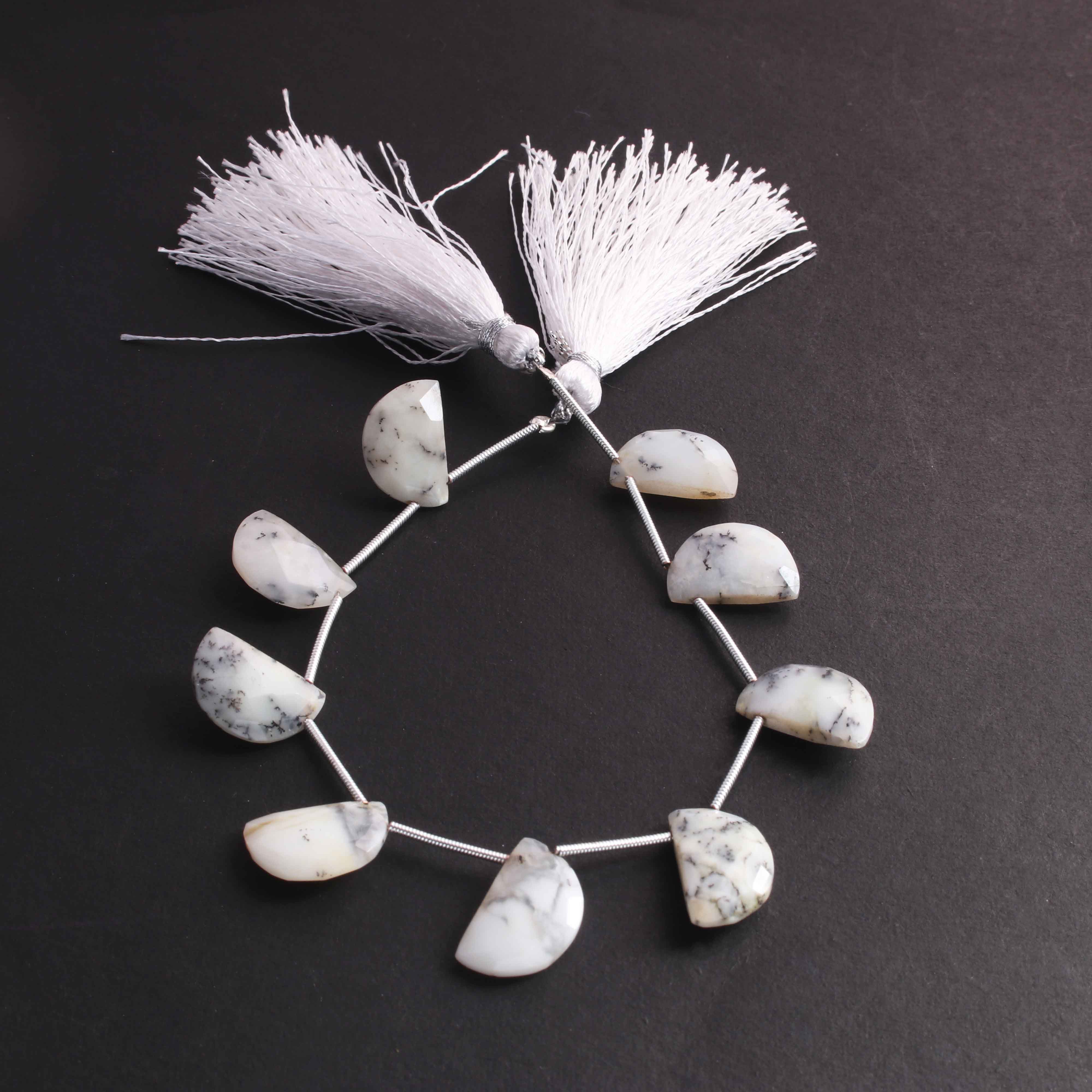 1 Strand Dendrite Opal Faceted Briolettes D Shape Briolettes 16mmx10mm -7 Inches BR1152