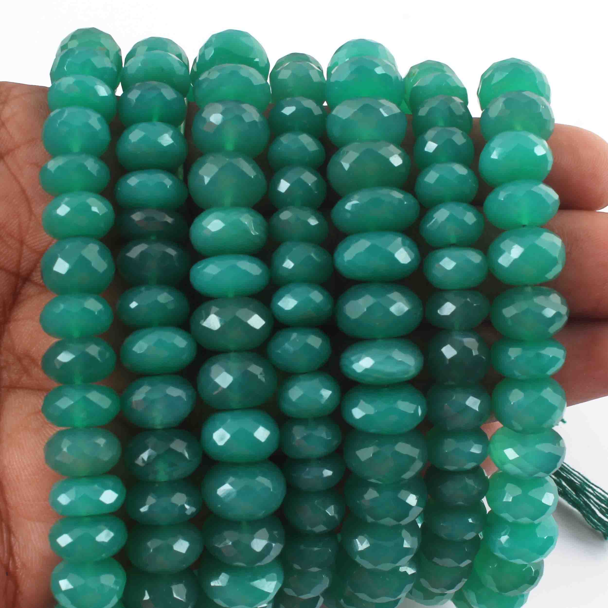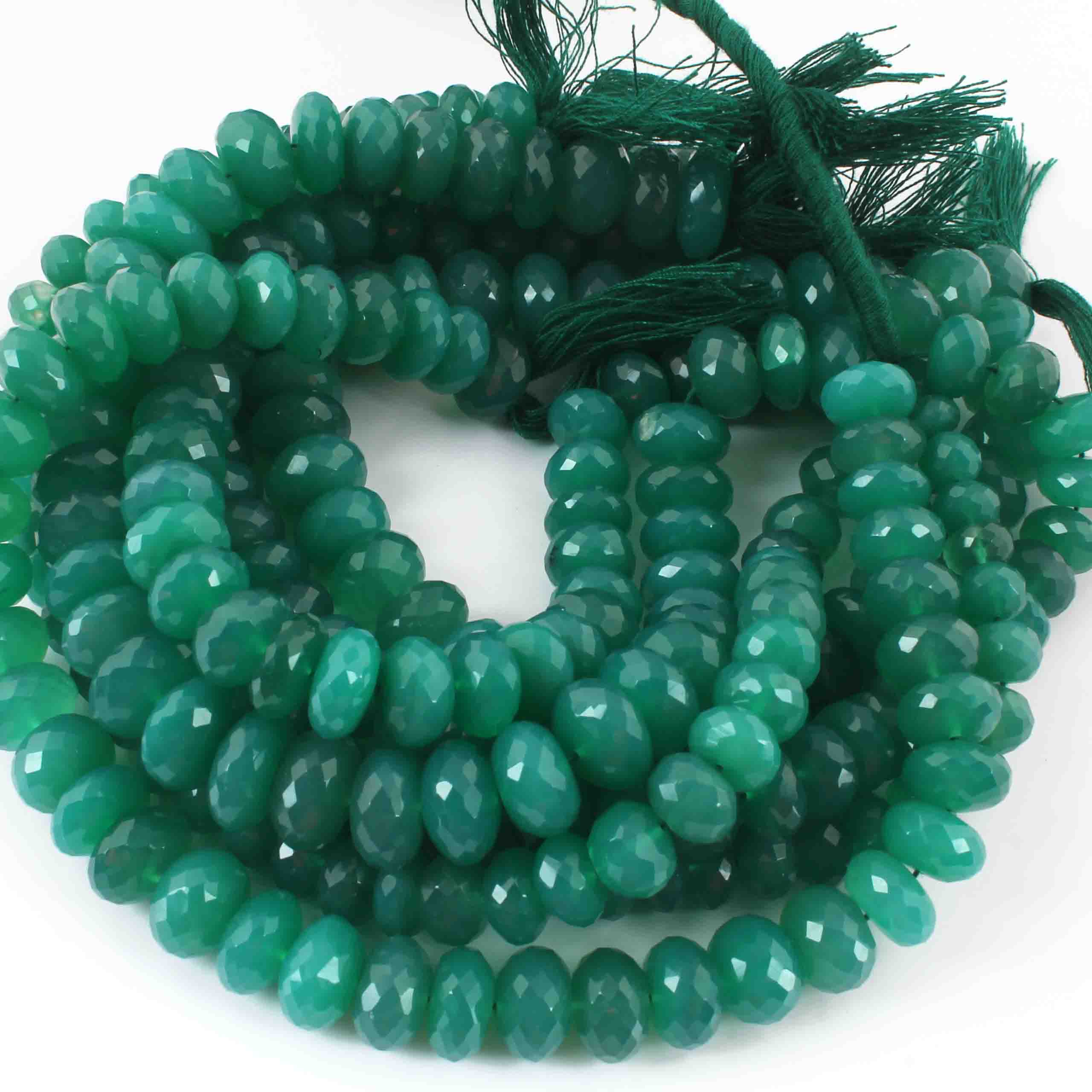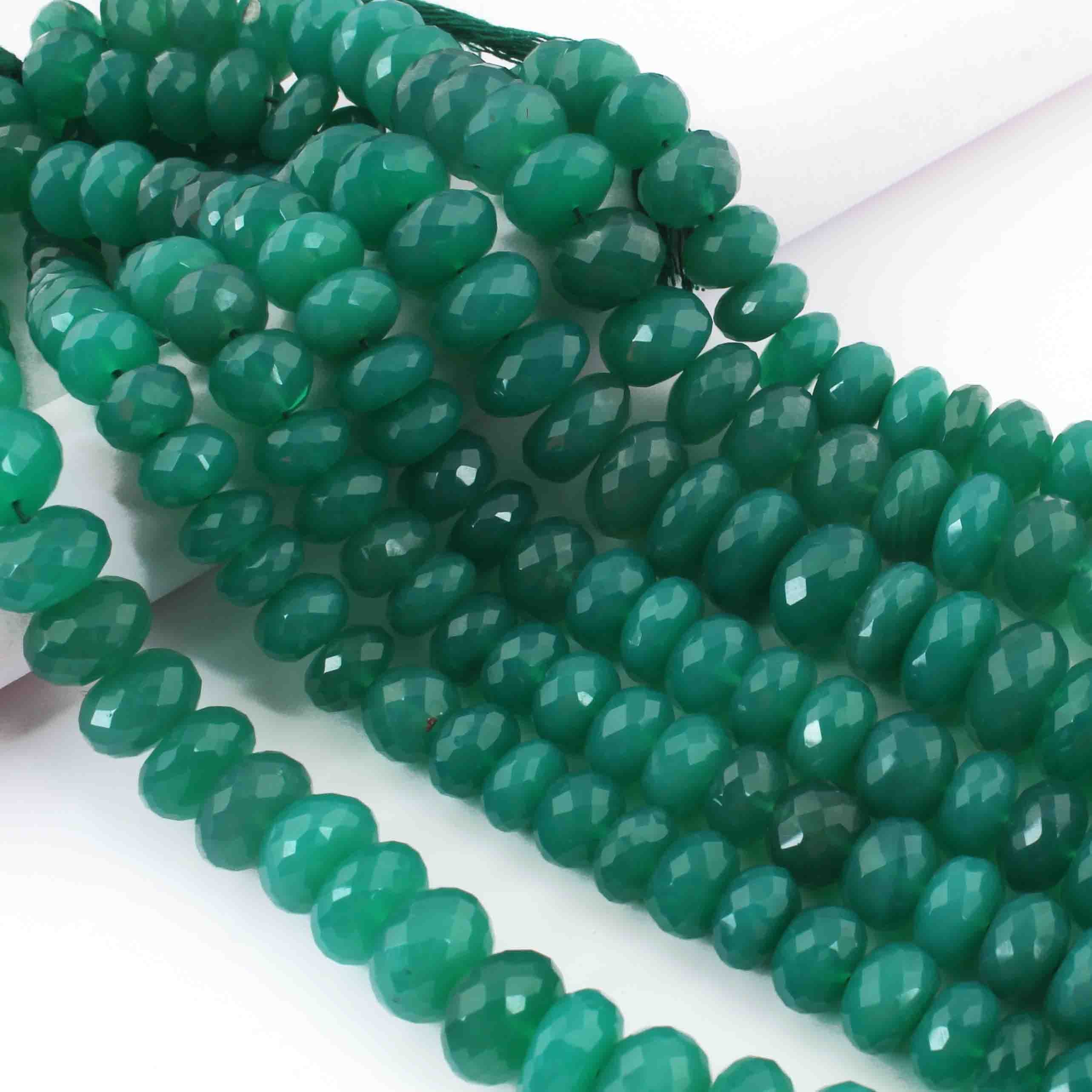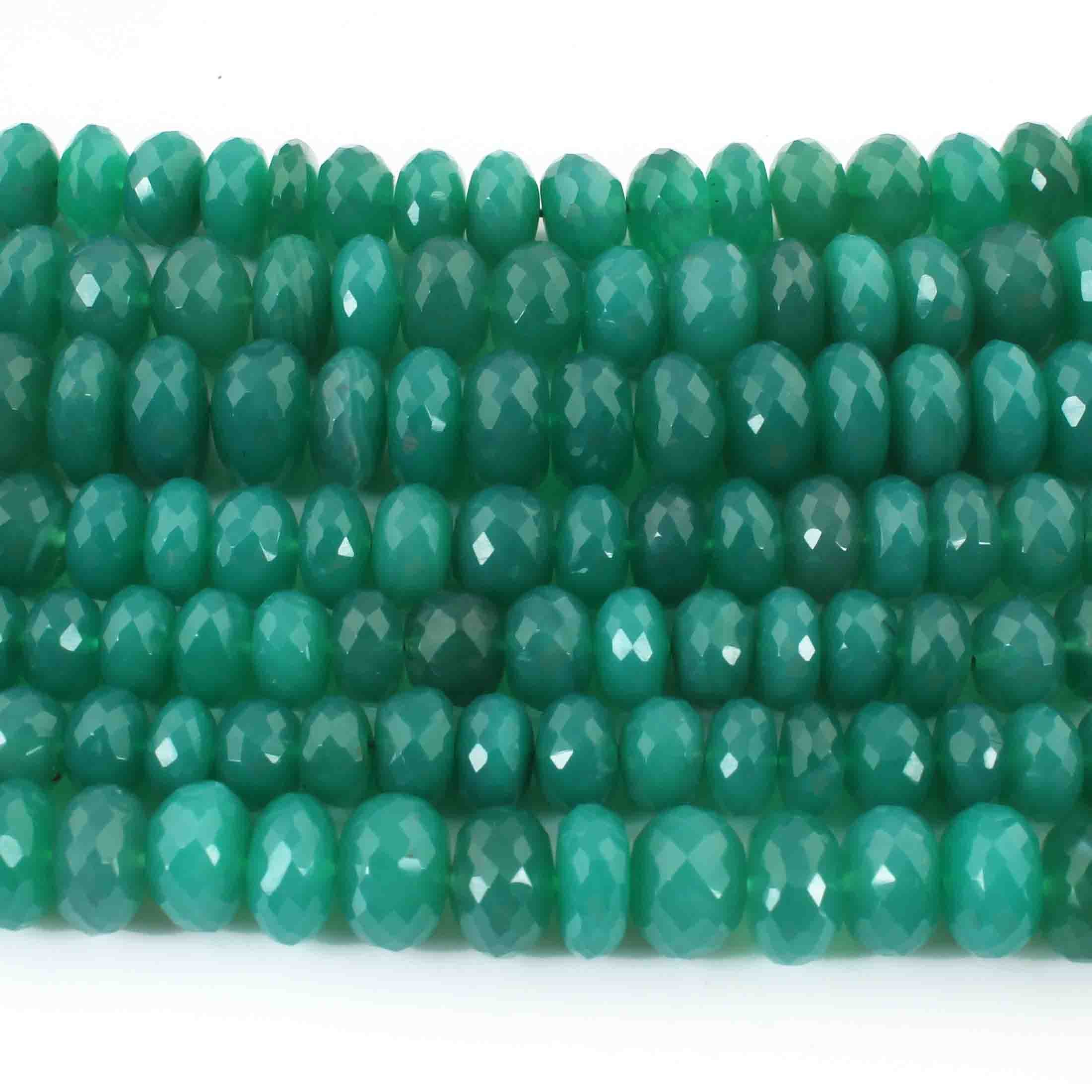 1 Strand Green Onyx Faceted Rondelles - 7mm-11mm - 9.5 Inches BR0548