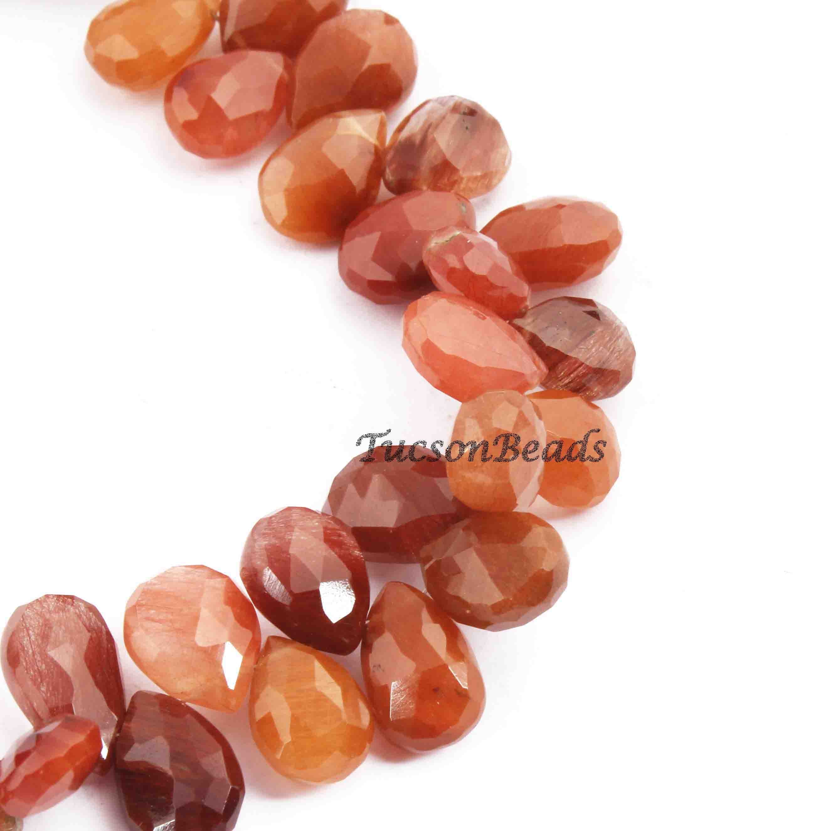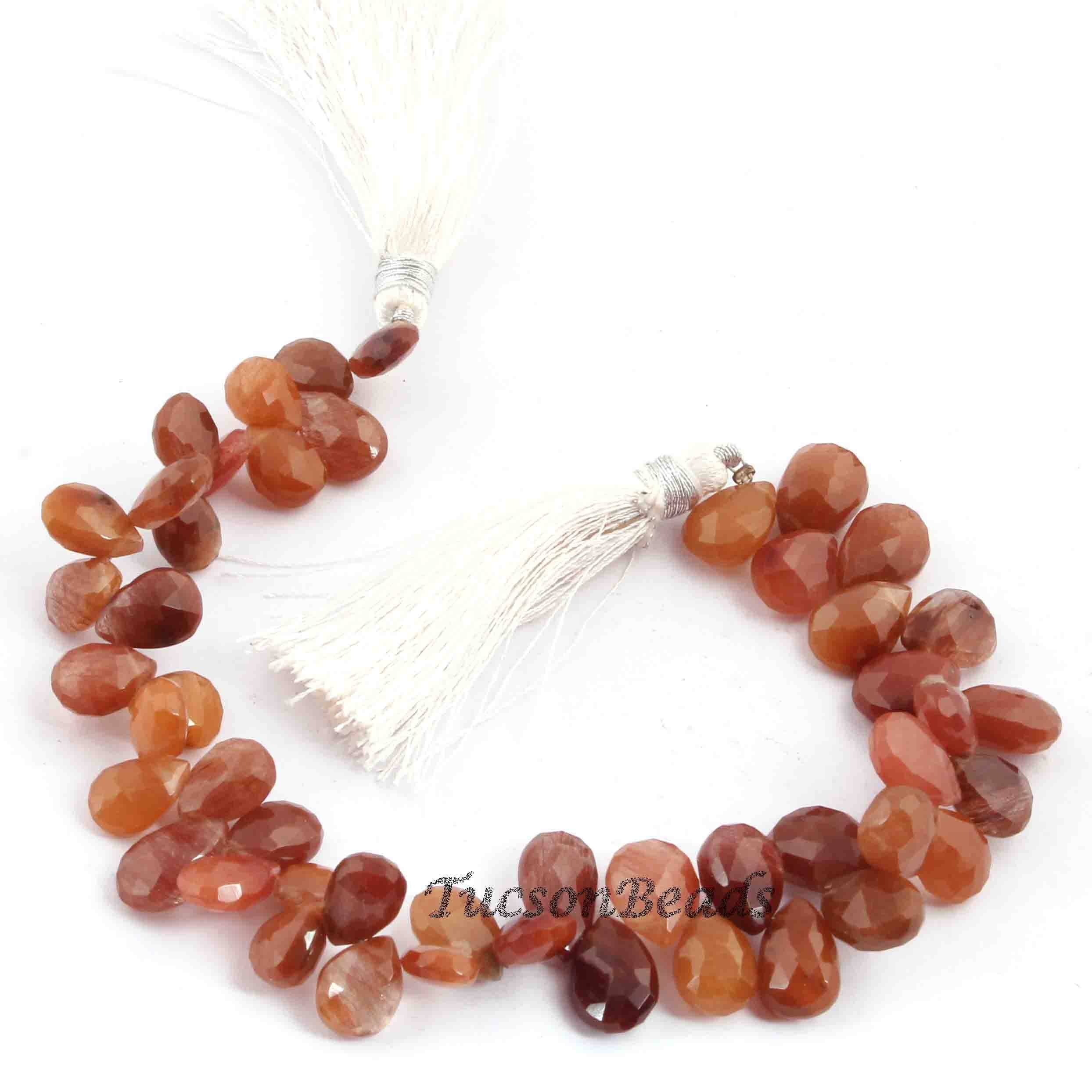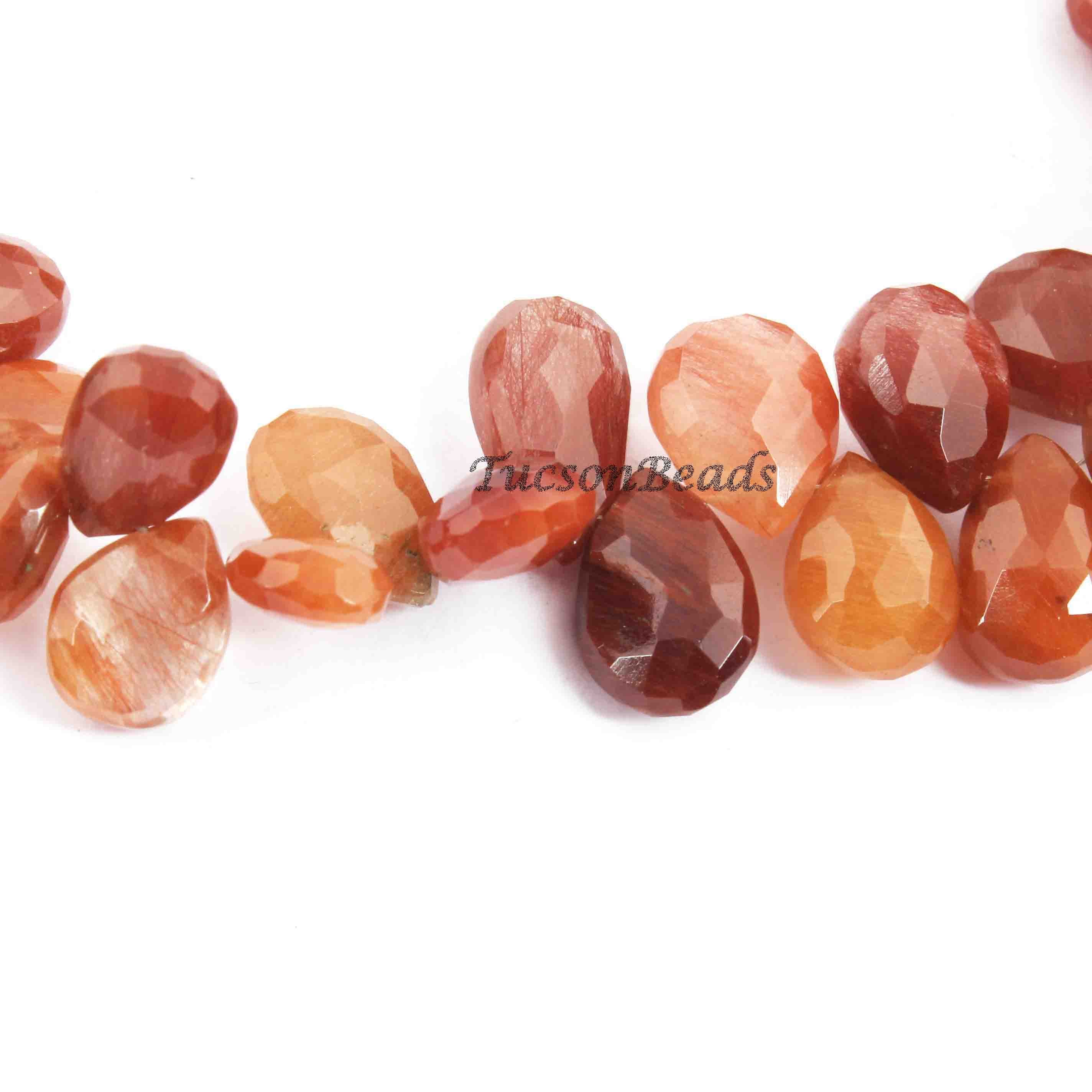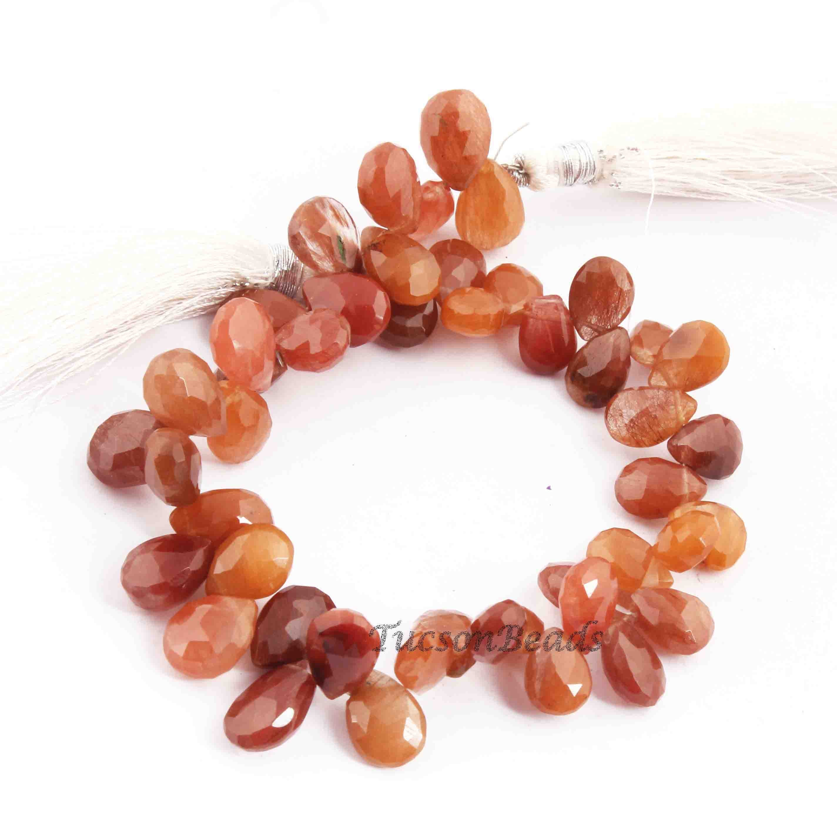 1 Strand Natural Hessonite Garnet Briolette Layout Pear Shape Faceted Beads 13mmx6mm-10mmx6mm 7.5 Inches BR2780