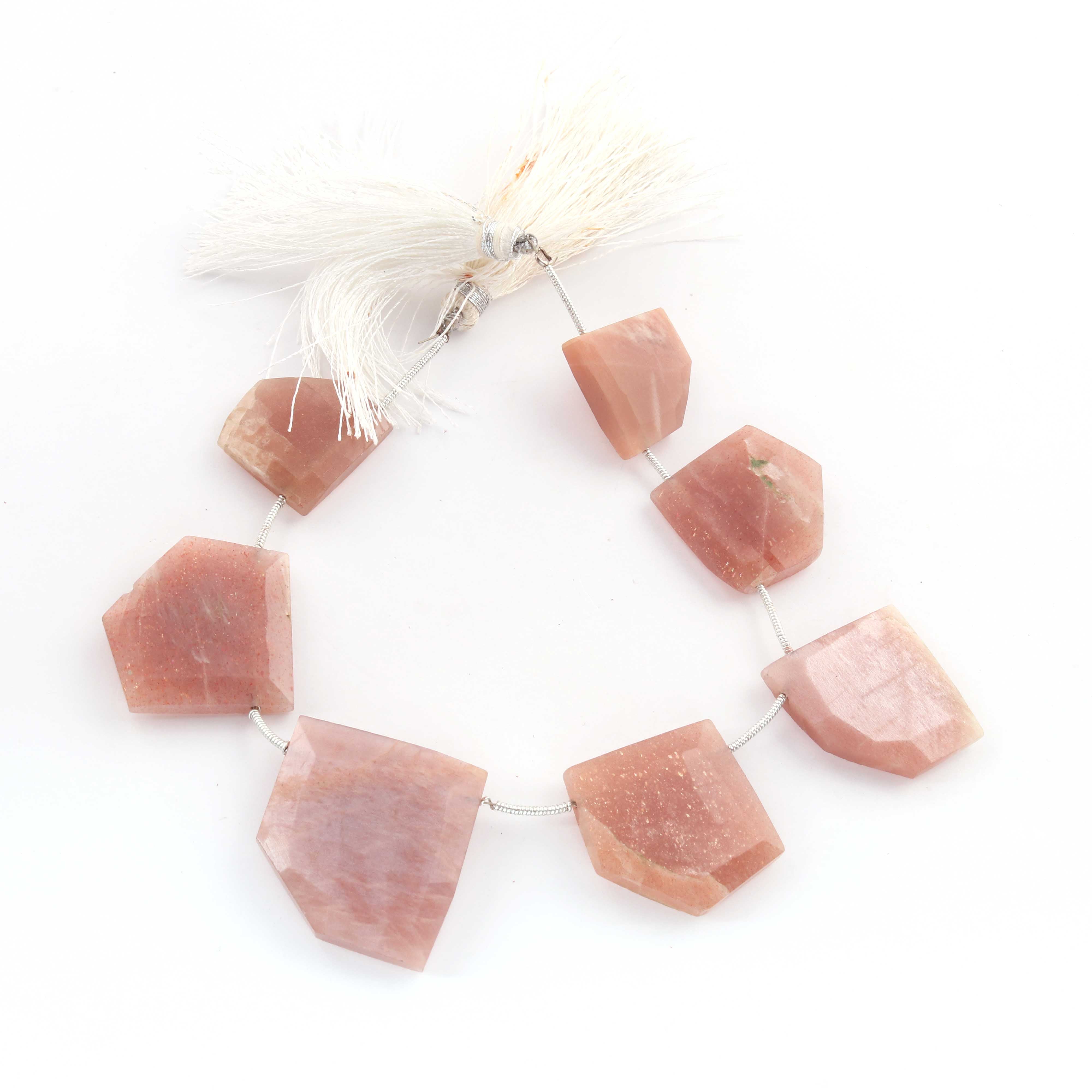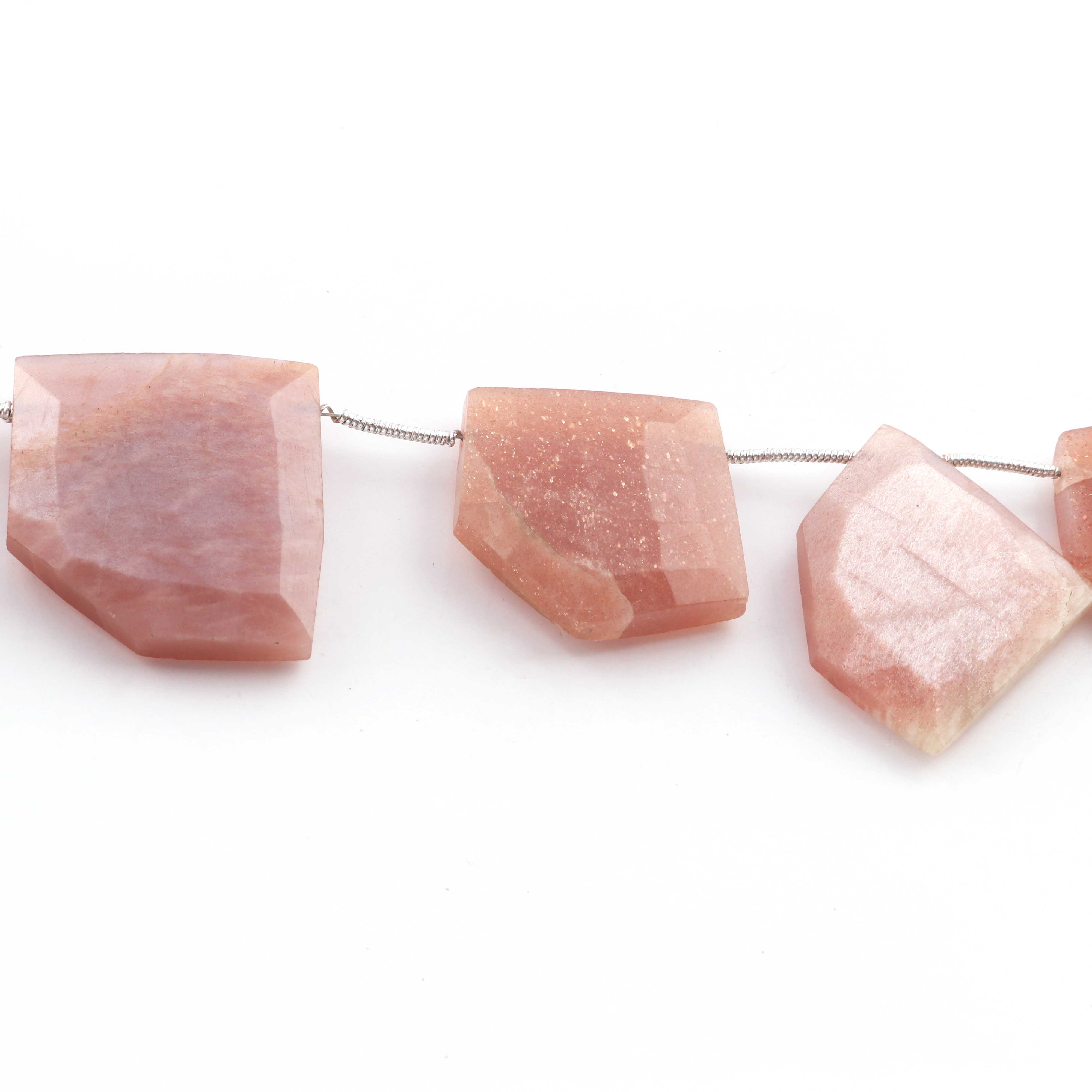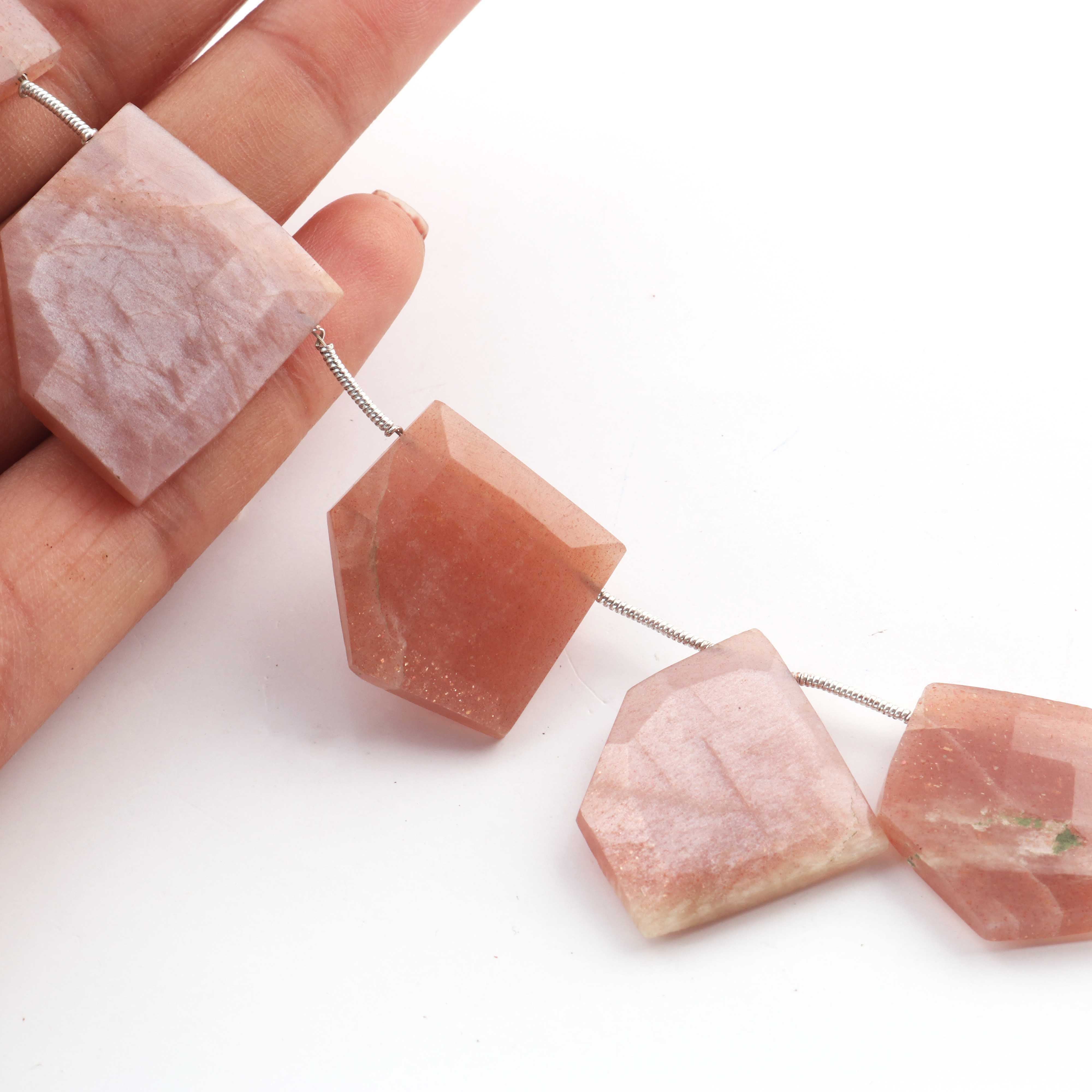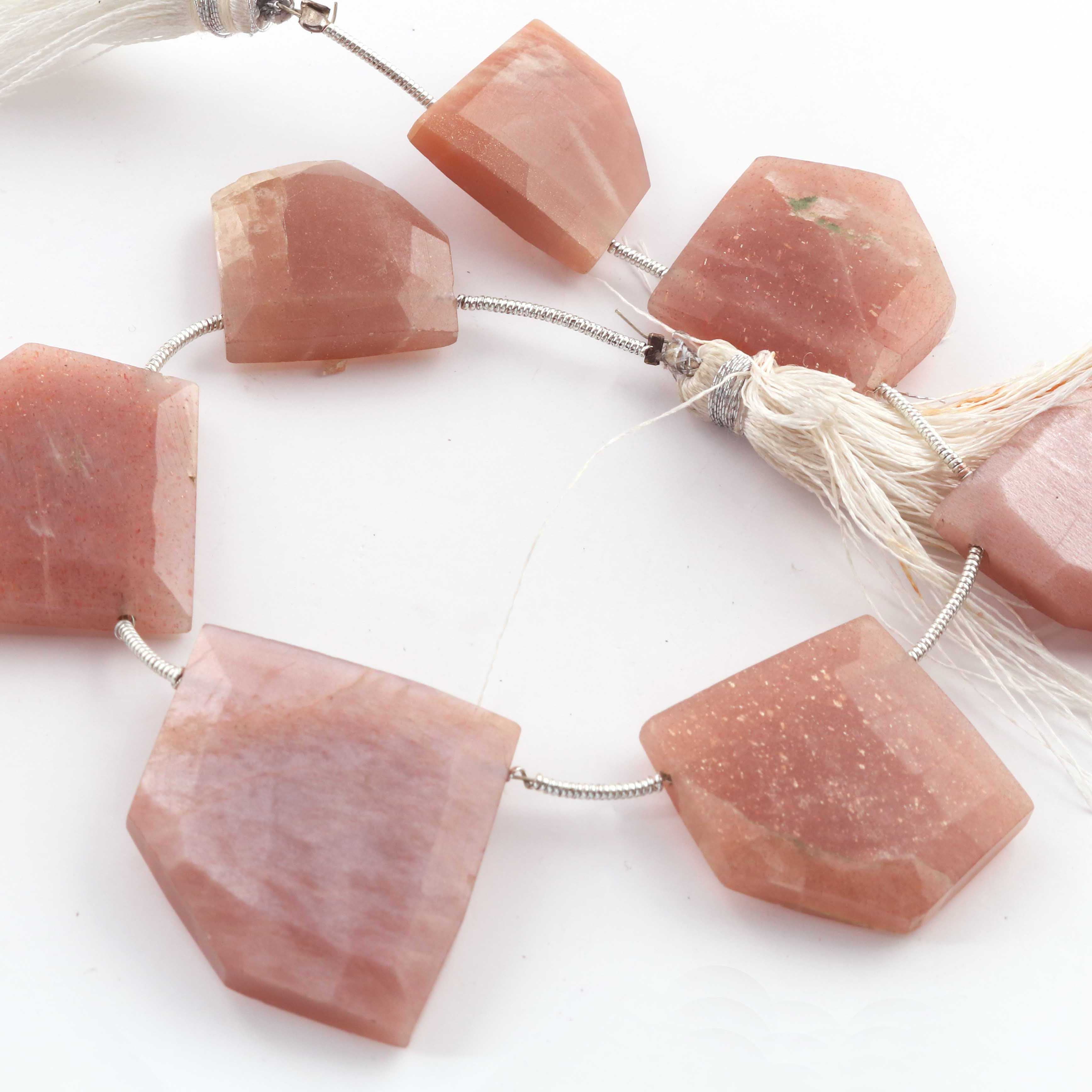 1 Strand Peach Moonstone Faceted Briolette -Fancy Shape Briolette 14mmx15mm- 25mmx26mm - 8.5 Inches BR3943
