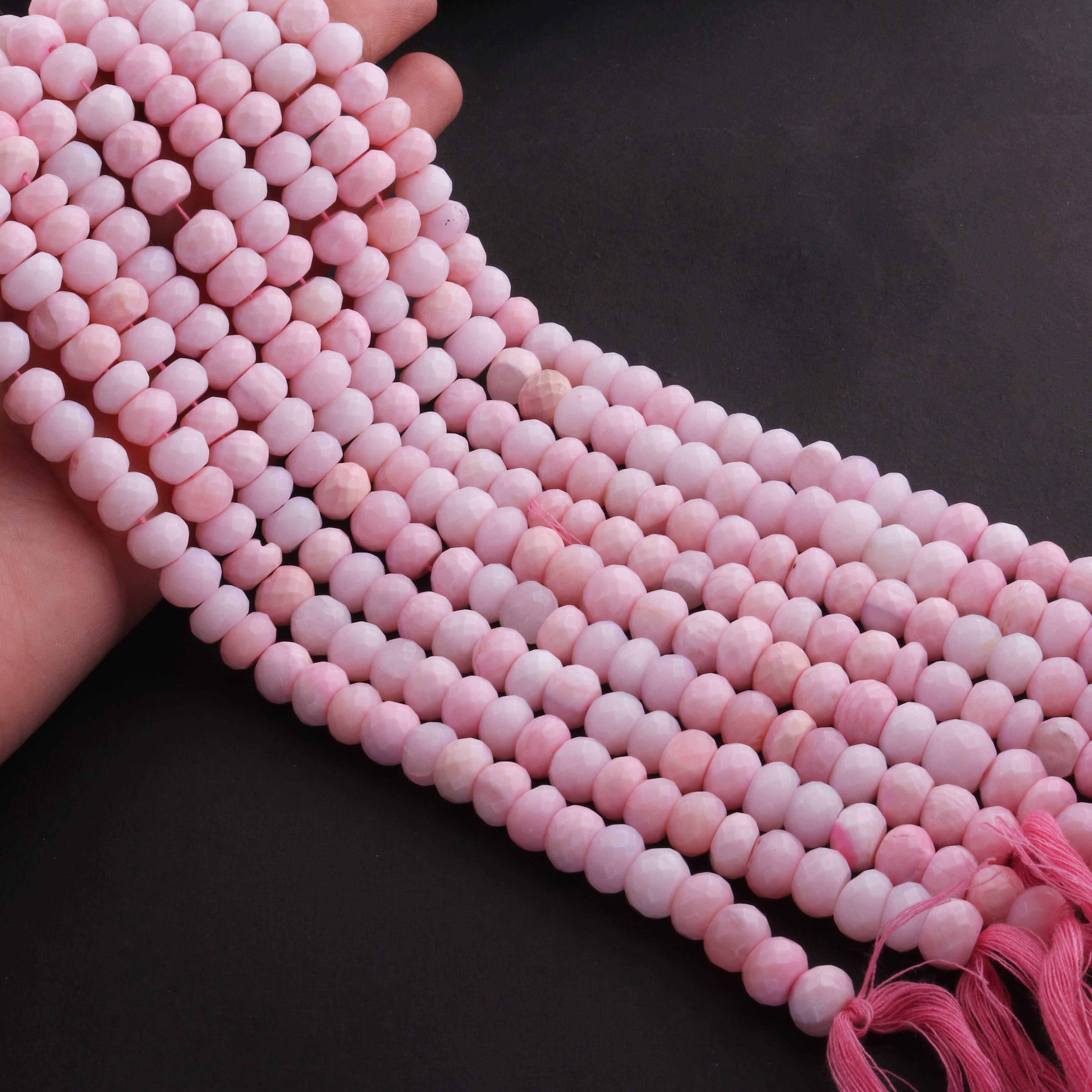 1 Strand Pink Opal Faceted Rondelles Beads - Semi Precious Gemstone Pink Opal Beads- 9mm-10mm-12.5 Inches BR02468