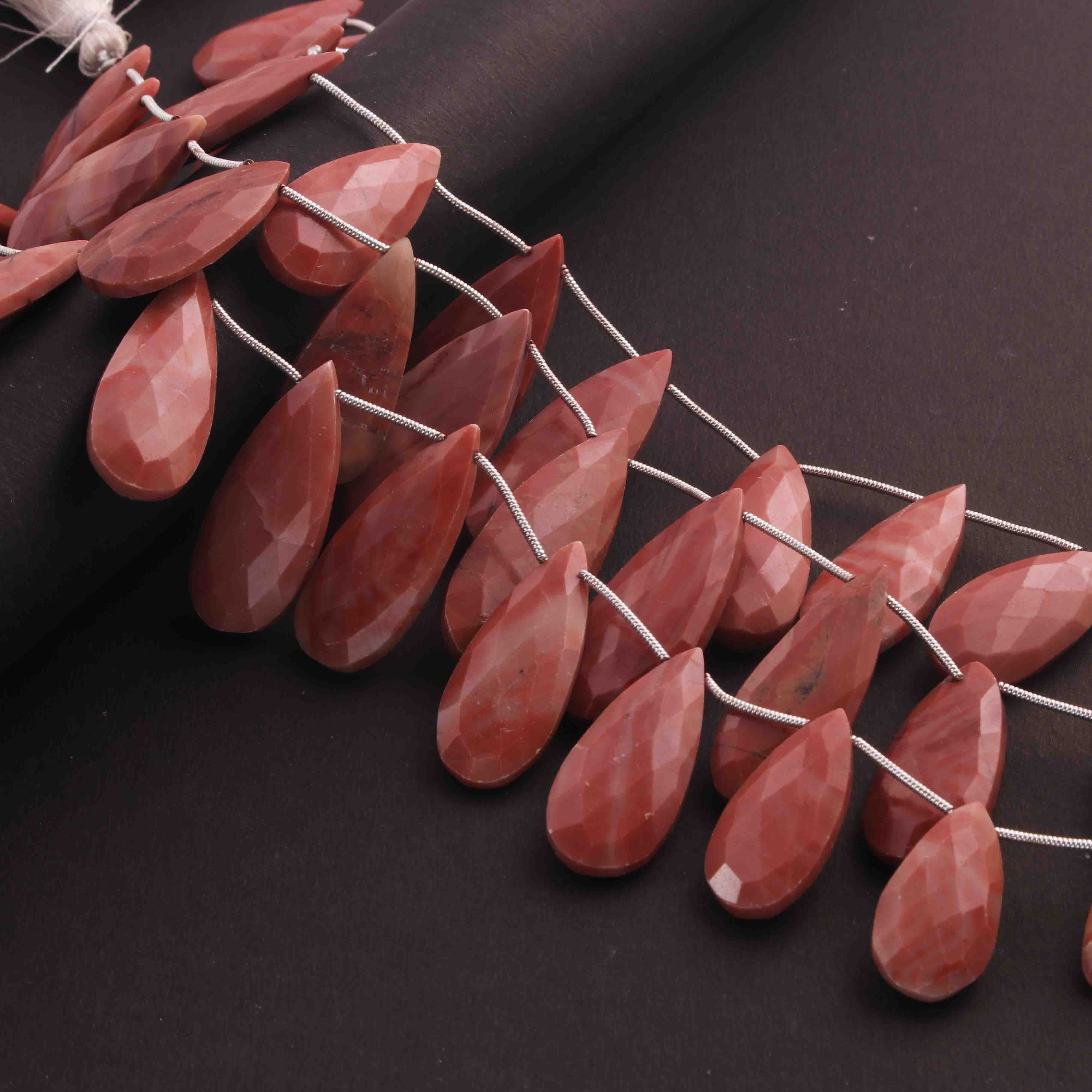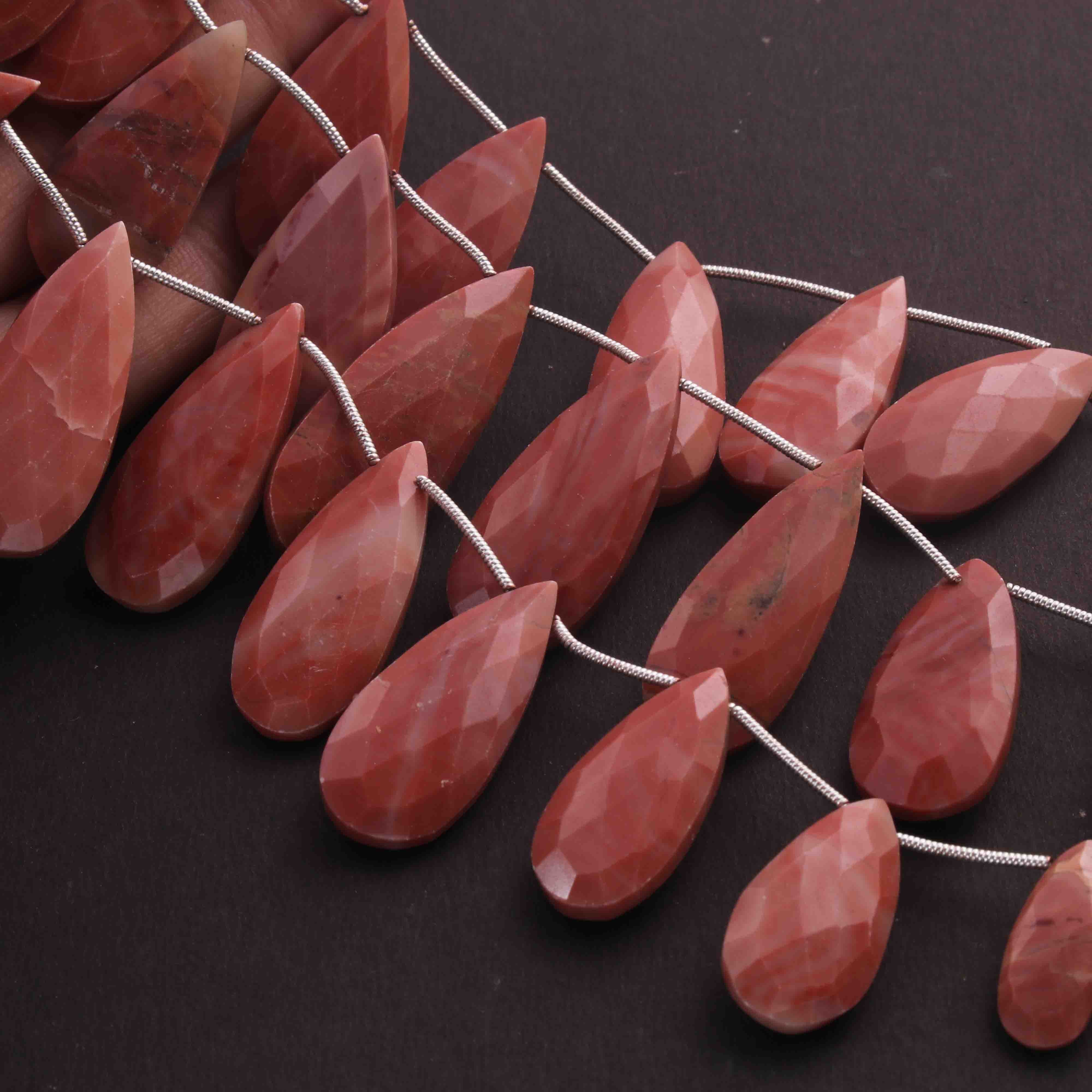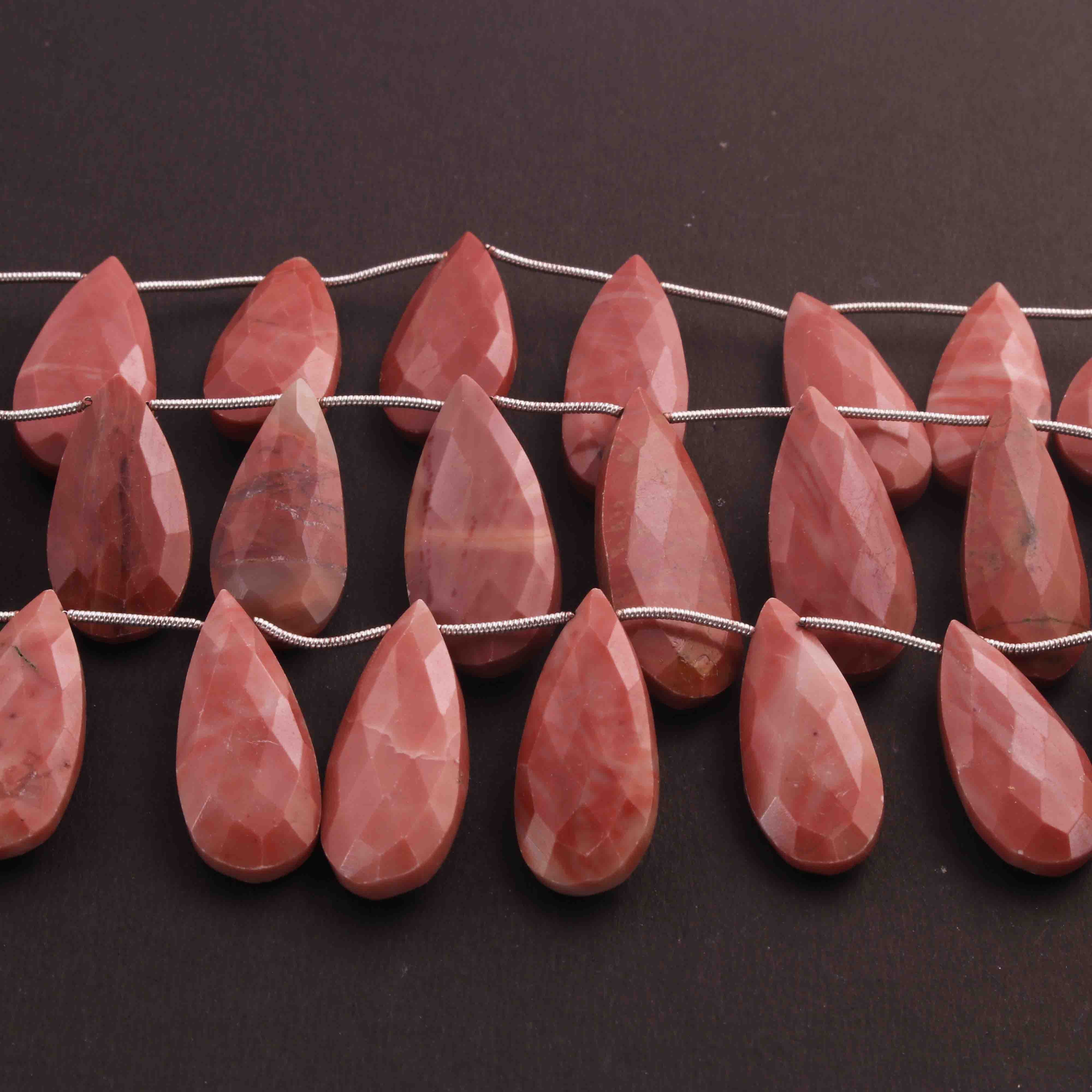 1 Strand Rhodochrosite Faceted Pear Shape Briolettes - Gemstone Pear Briolettes Beads - 20mmx12mm -37mmx14mm - 9.5 Inches BR01541