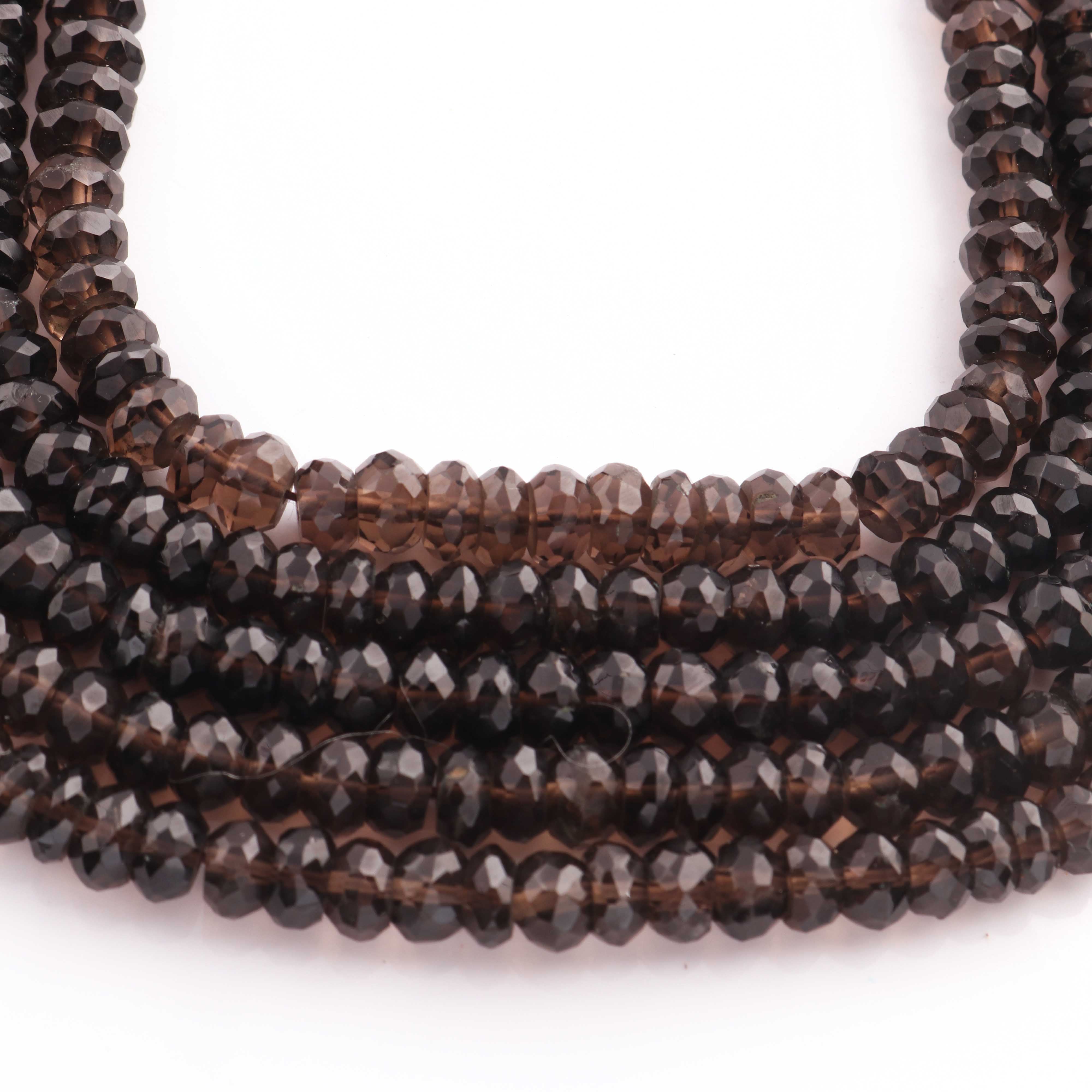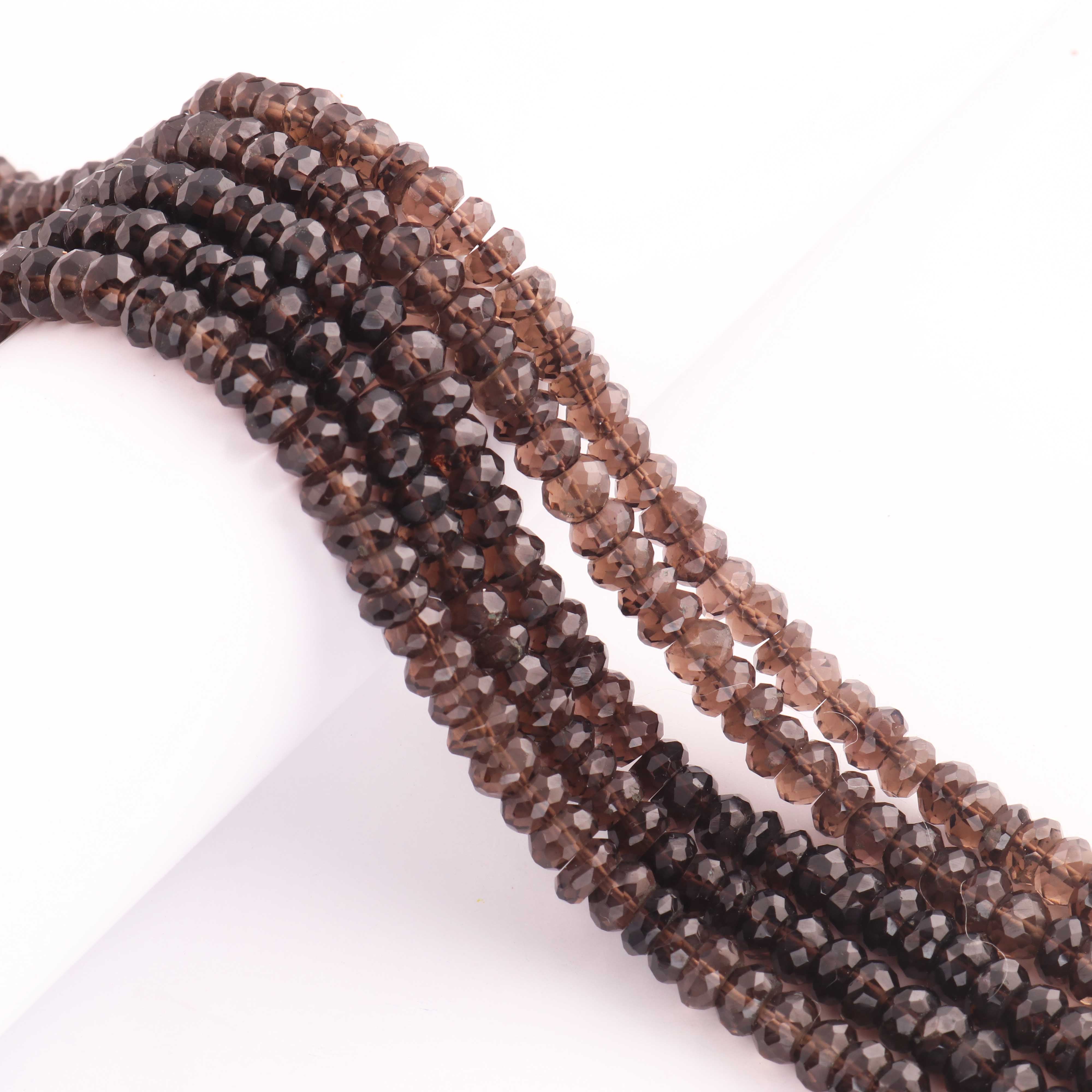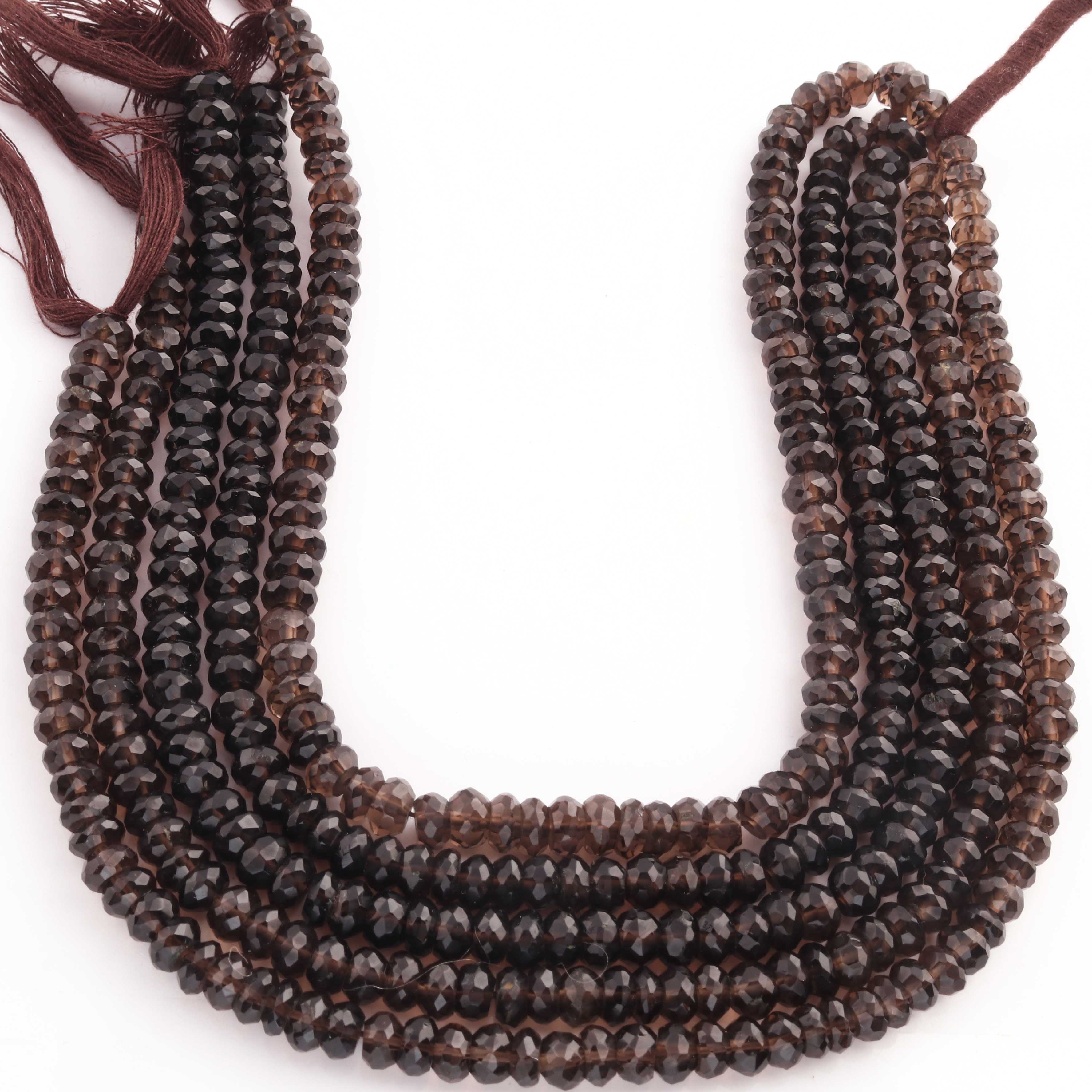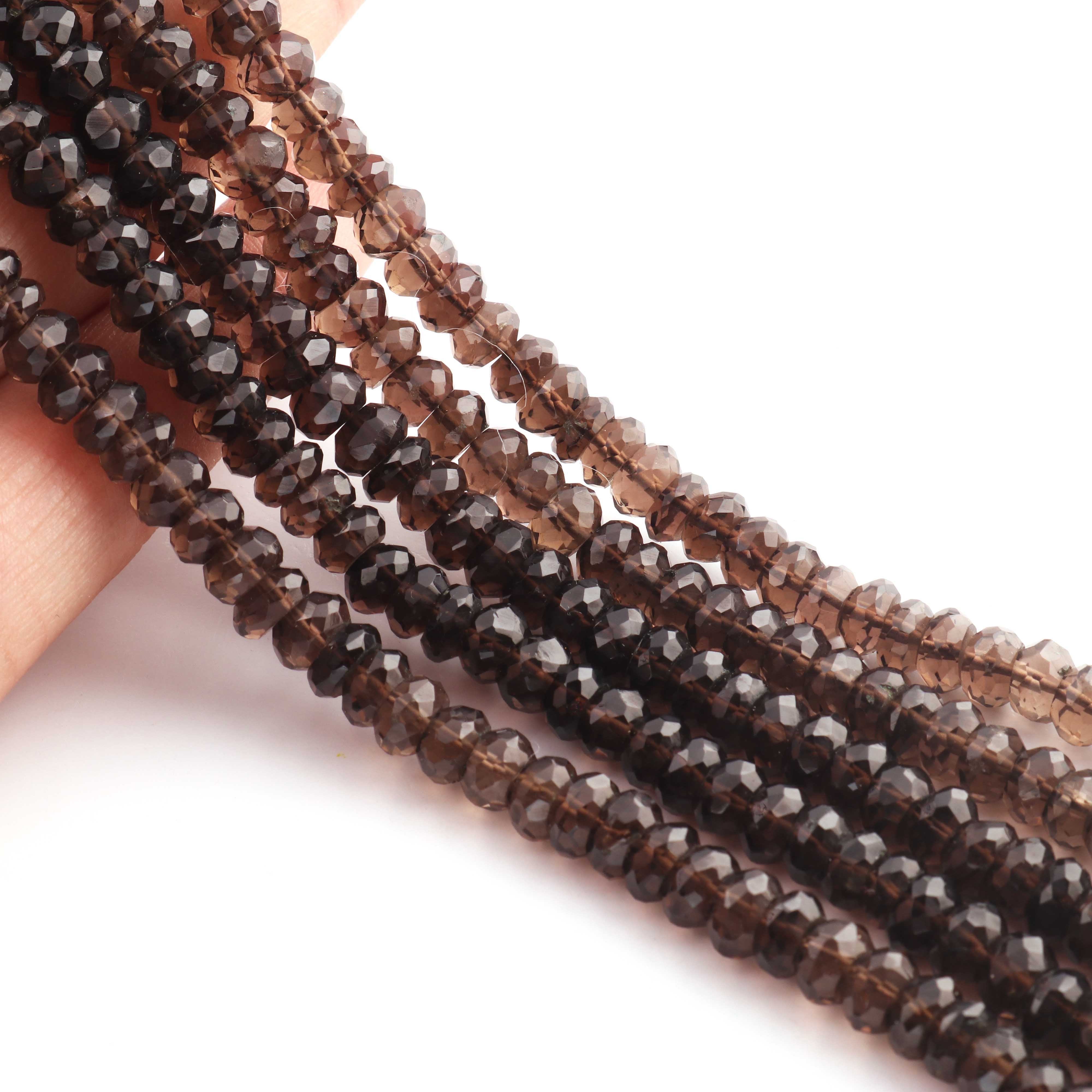 1 Strand Smoky Quartz Faceted Rondelles Shape Beads - Semi Precious Gemstone Smoky Quartz Faceted Rondelles Beads- 6mm - 10.5 Inches BR0547