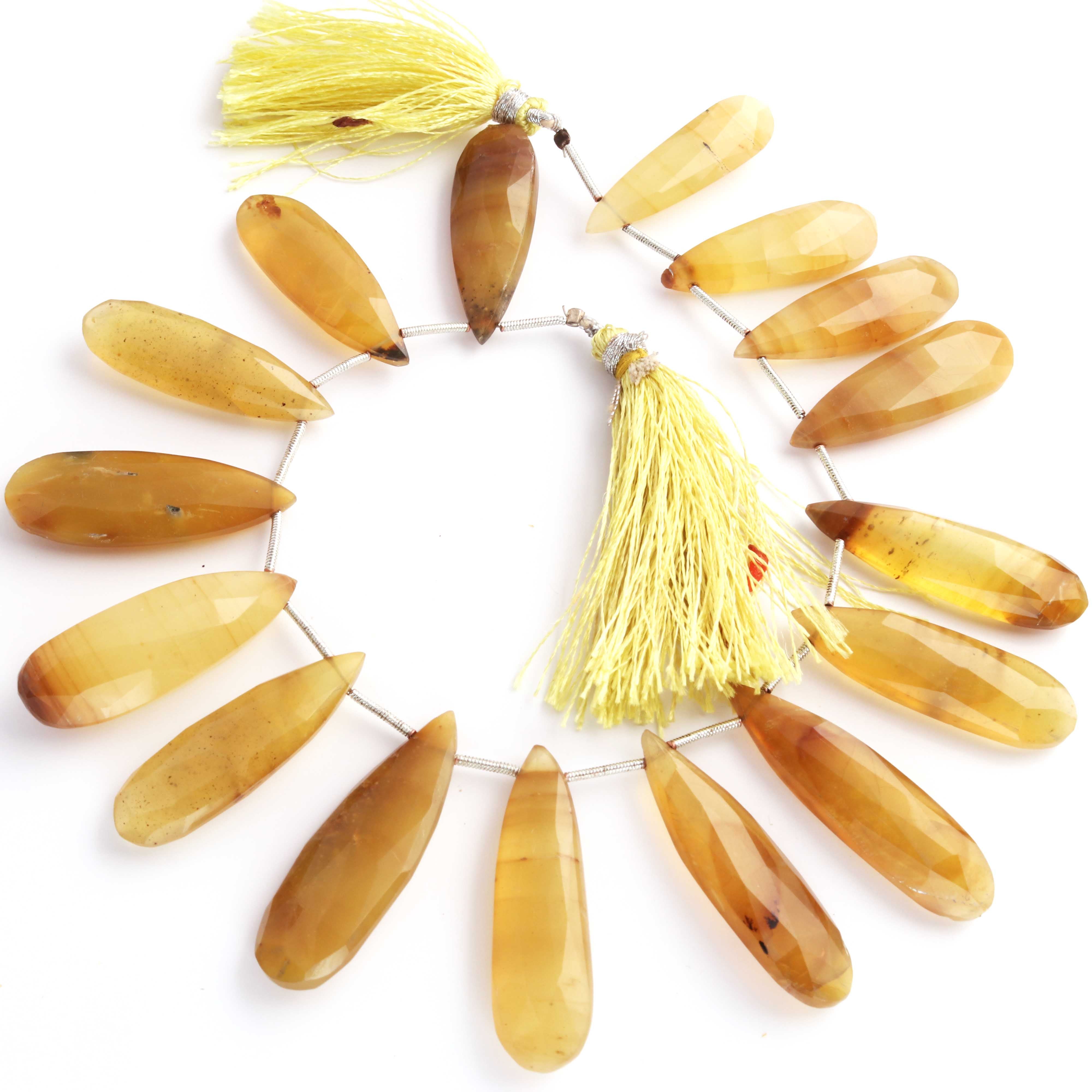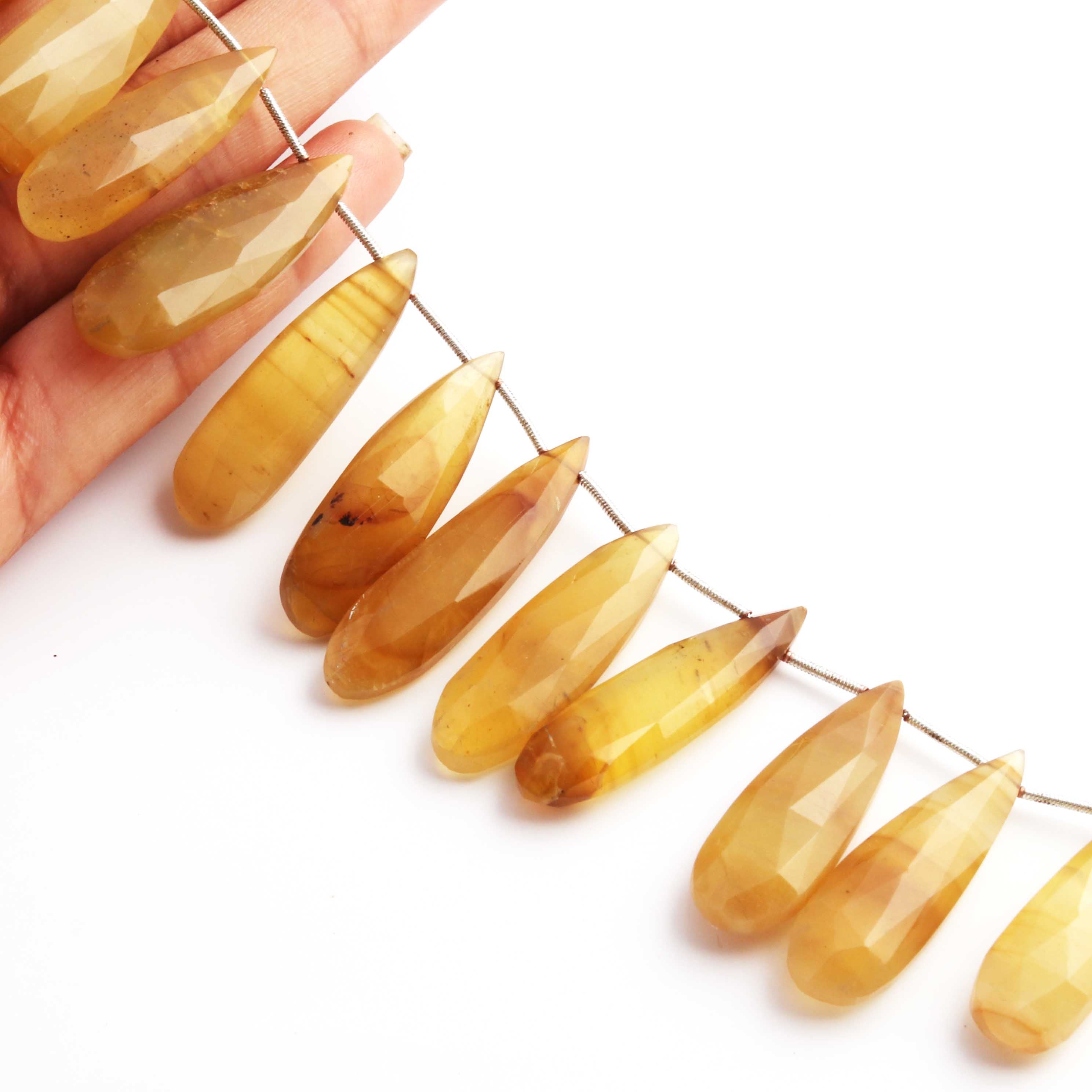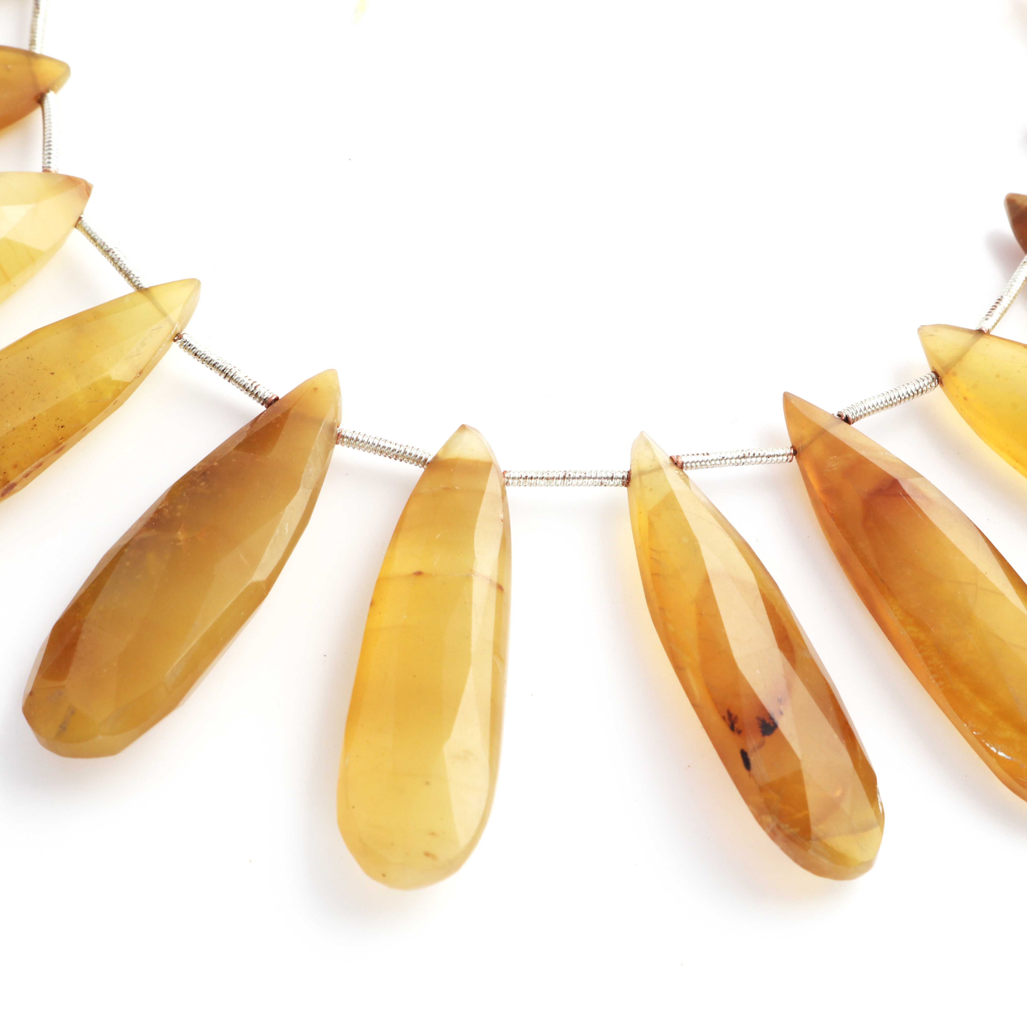 1 Strand Yellow Chalcedony Faceted Briolettes - Long Pear Shape Briolettes 32mmx10mm-38mmx13mm- 9 Inches BR2469