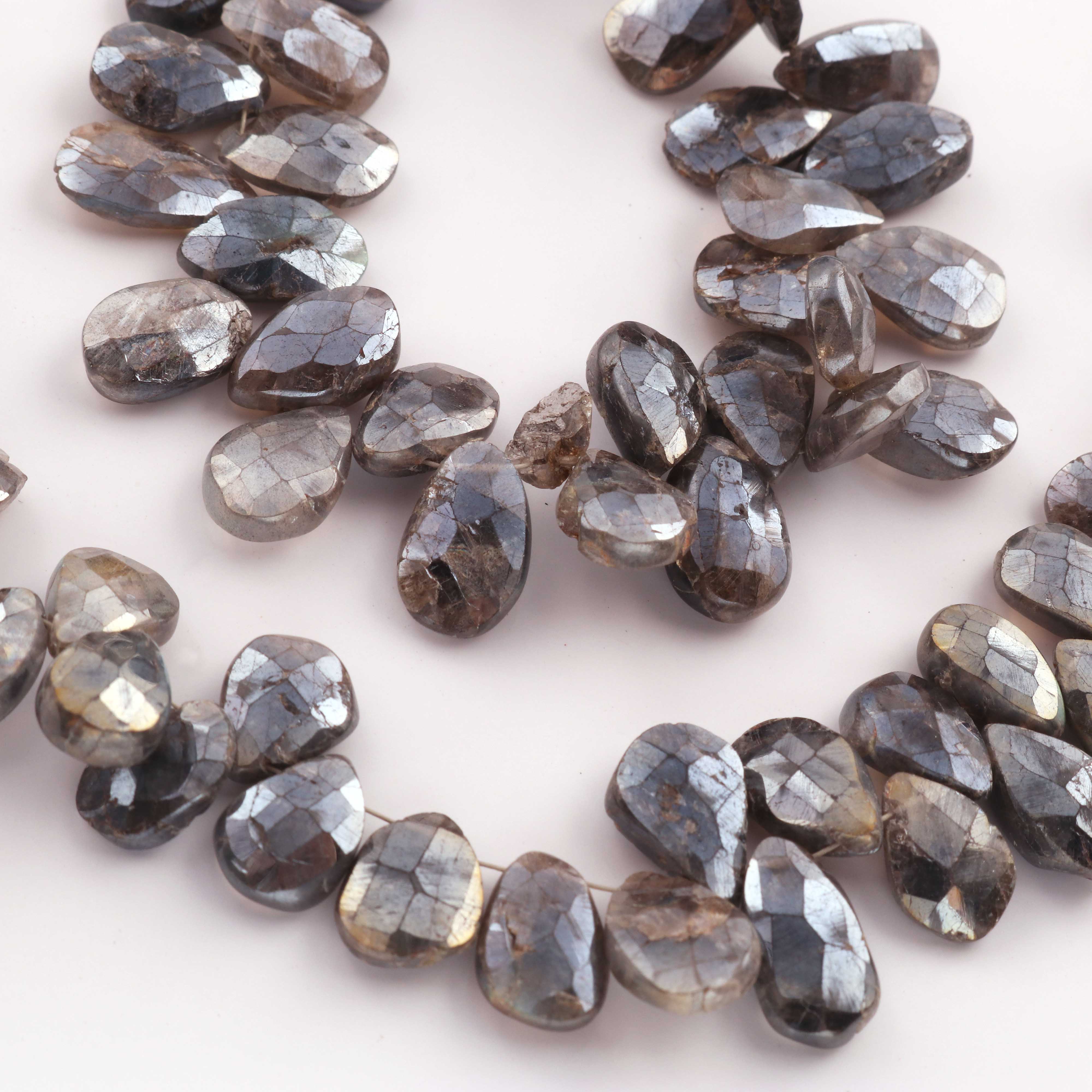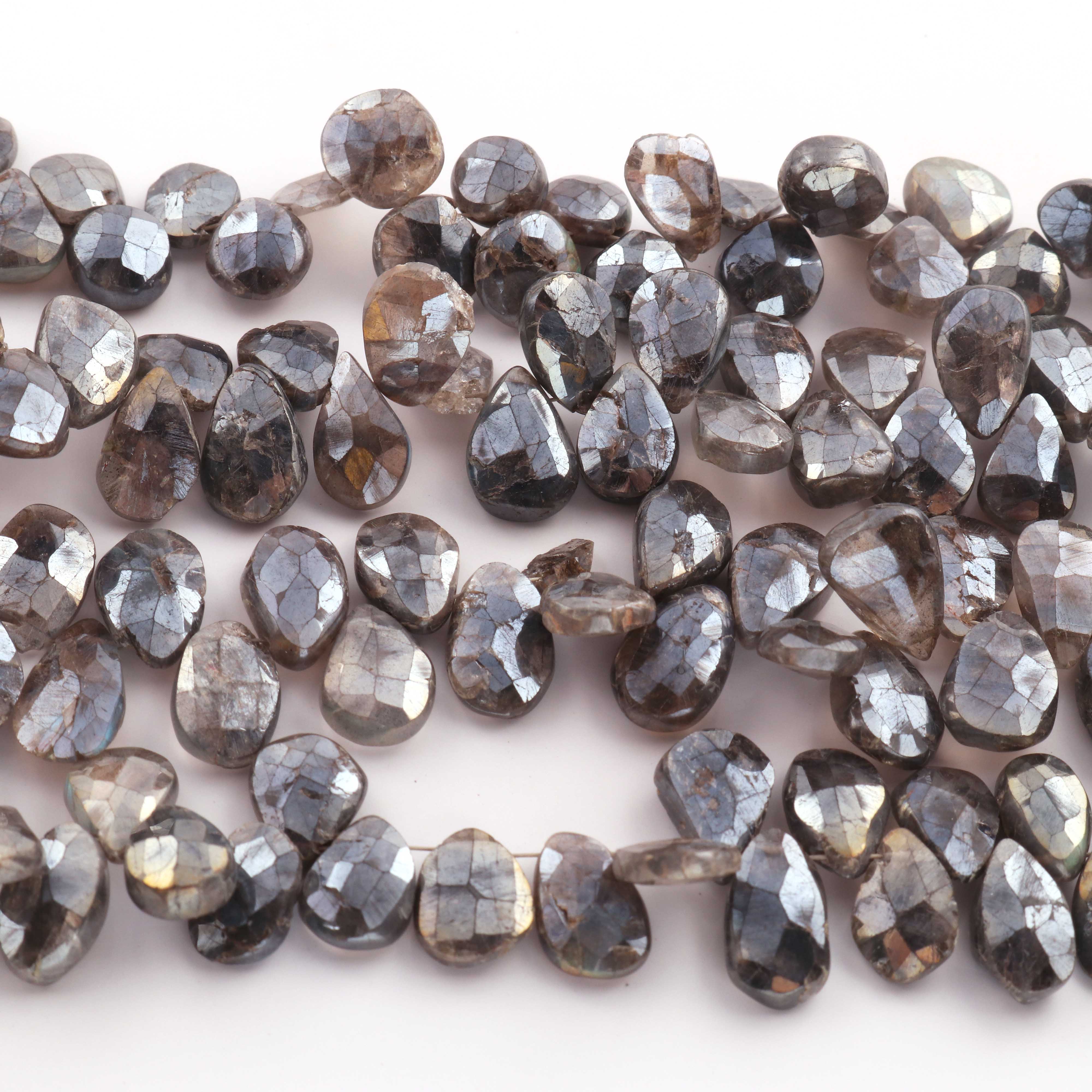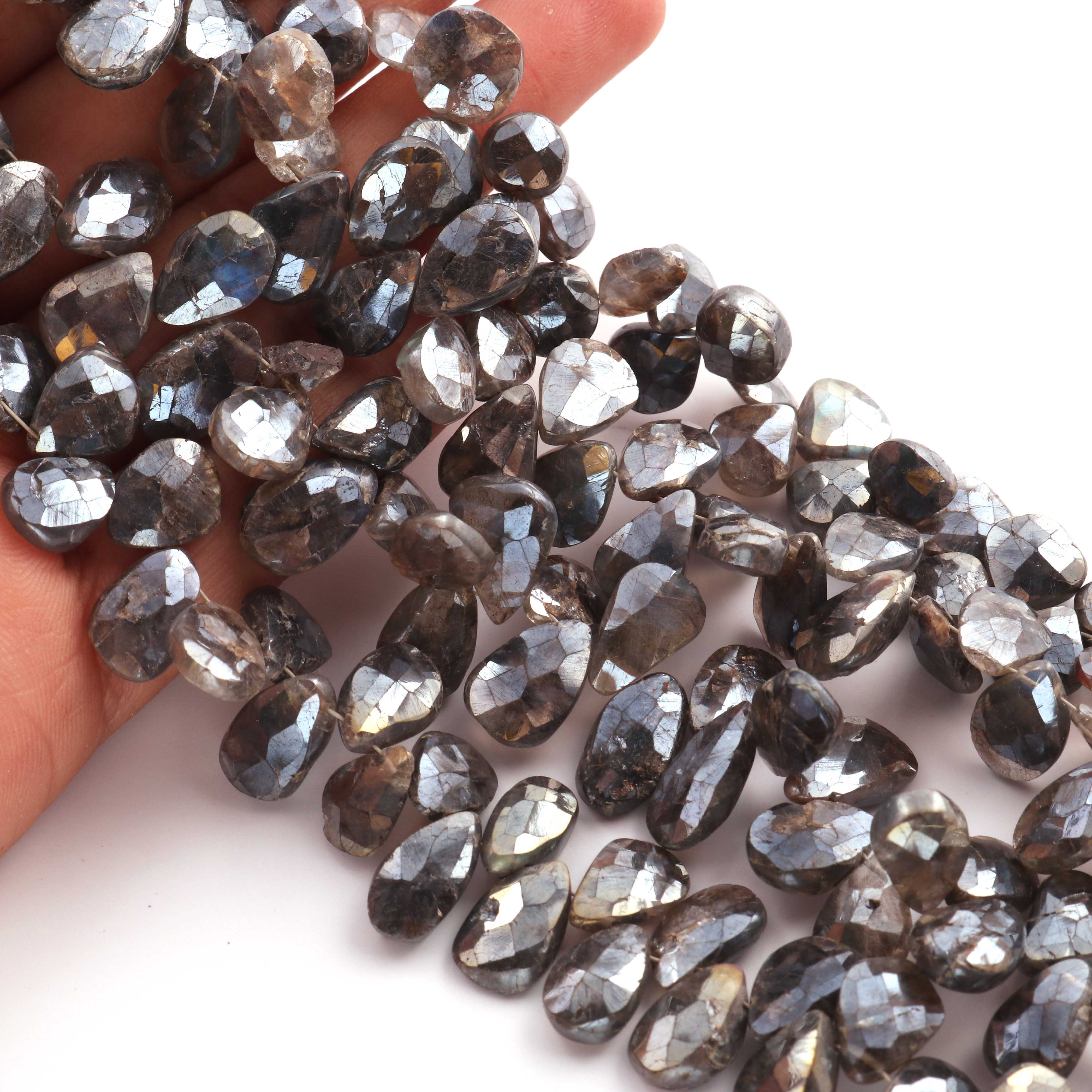 1 Strands Labradorite Silver Coated Briolettes - Pear Drop Shape Briolettes 12mx10mm-17mmx11mm 8 Inches BR2390