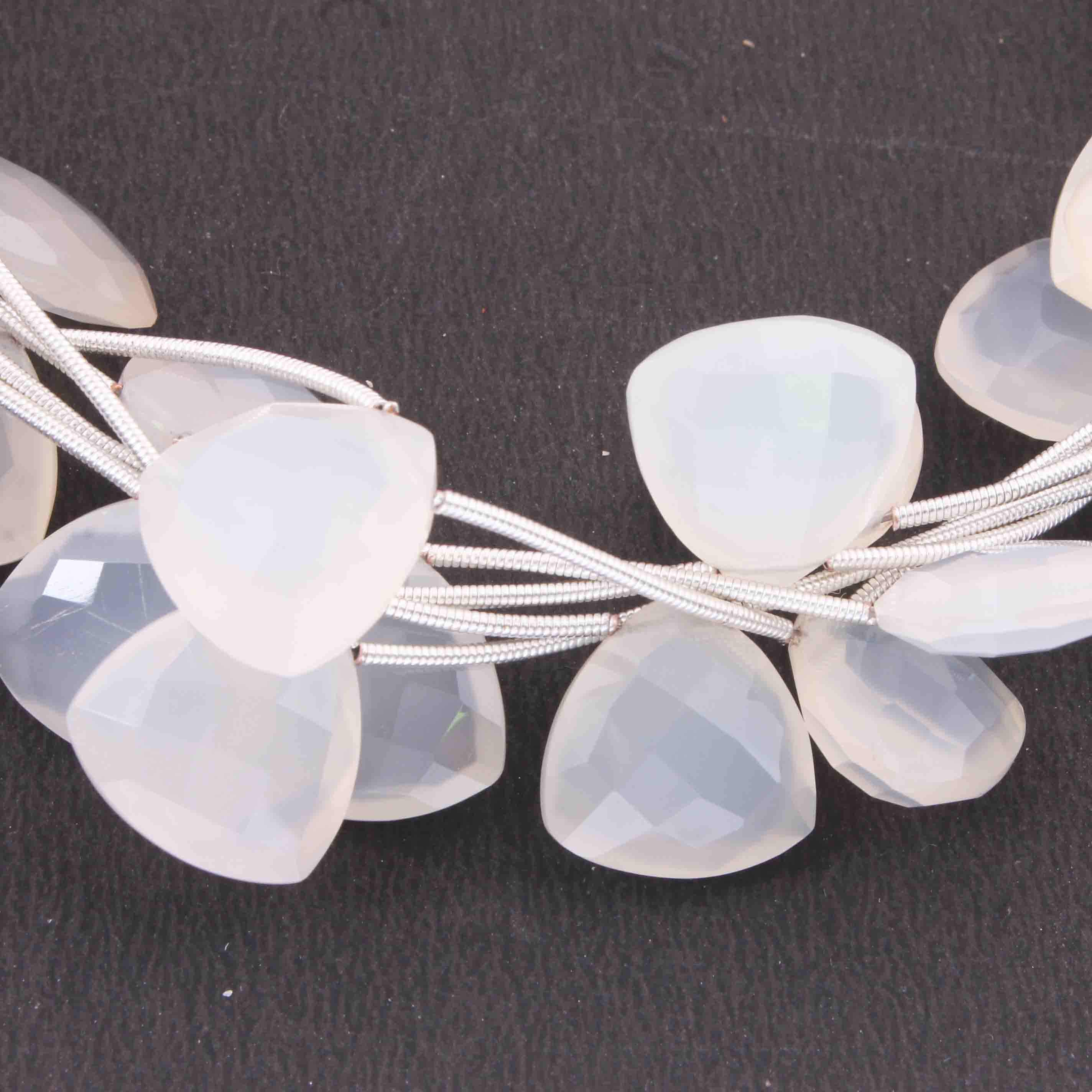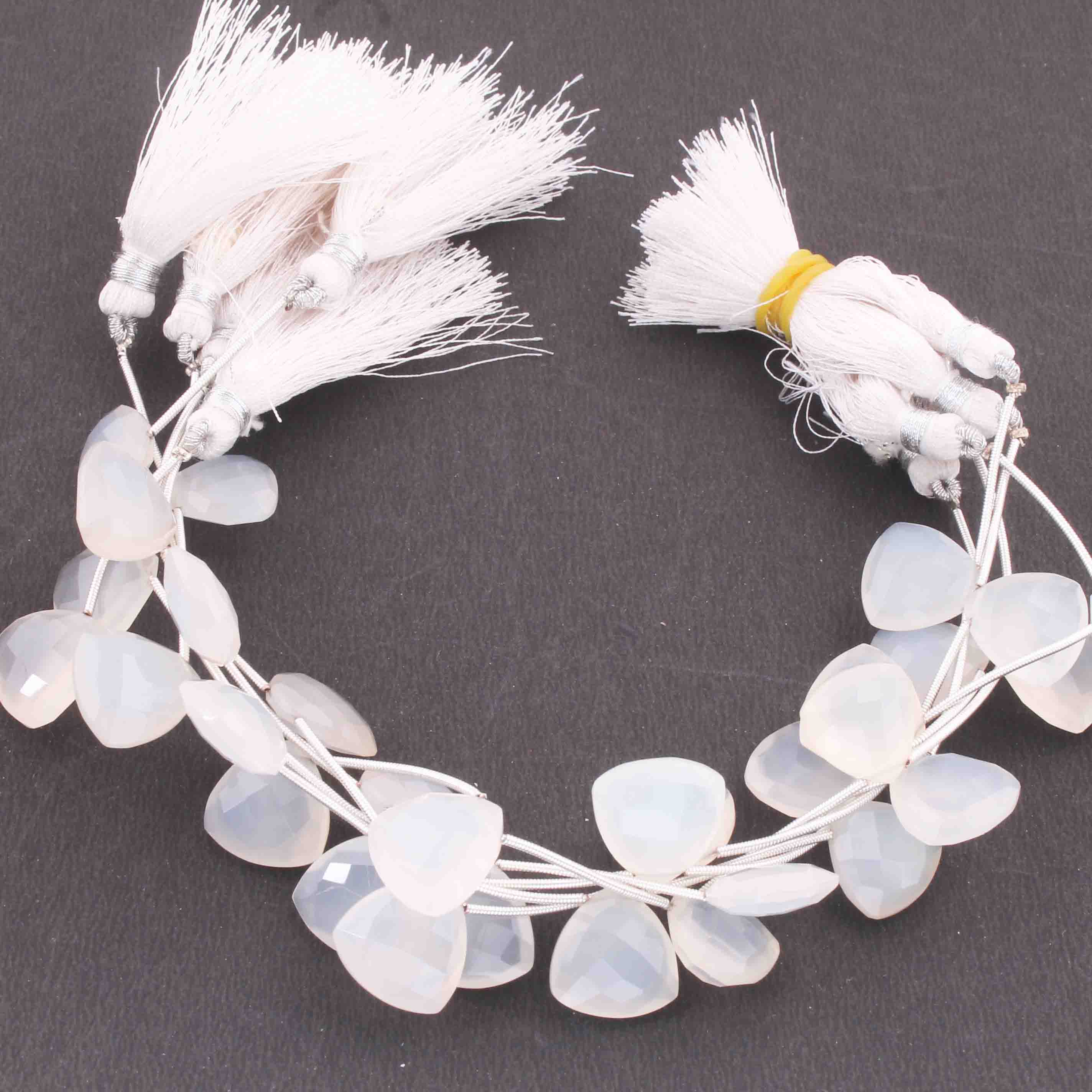 1 Strands White chalcedony Faceted Briolettes - Trillion Shape Briolettes 13mm-15mm-8 inches BR615