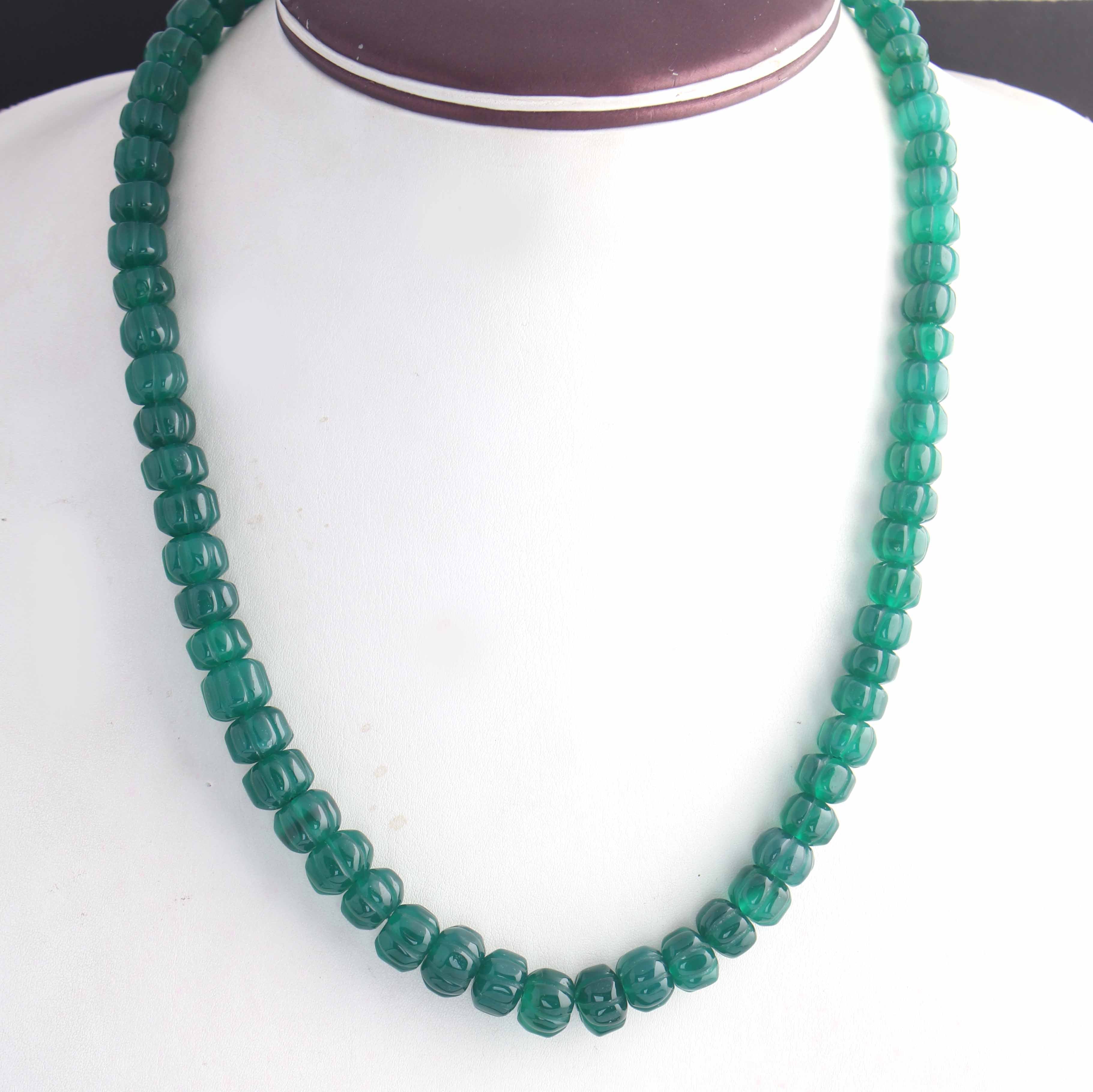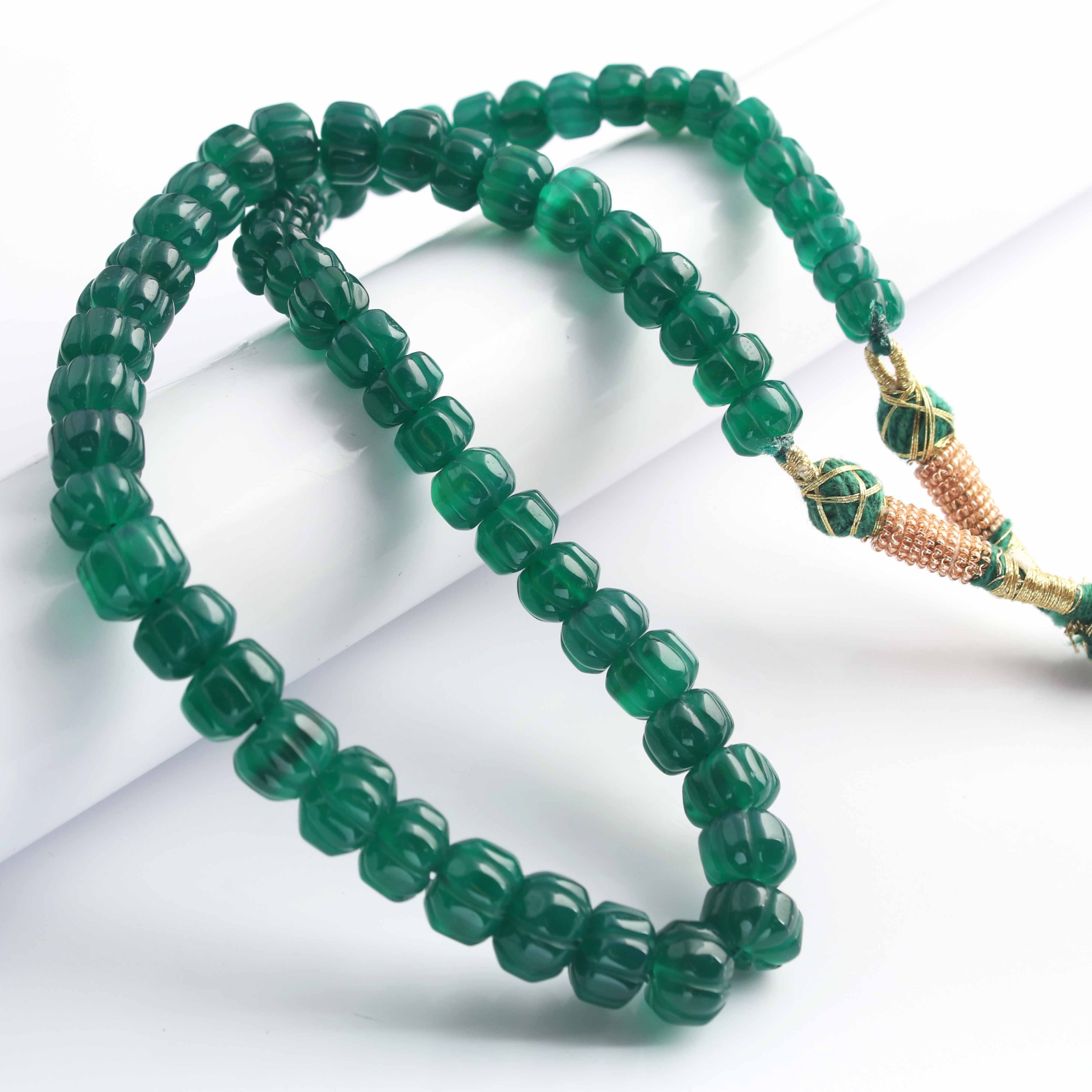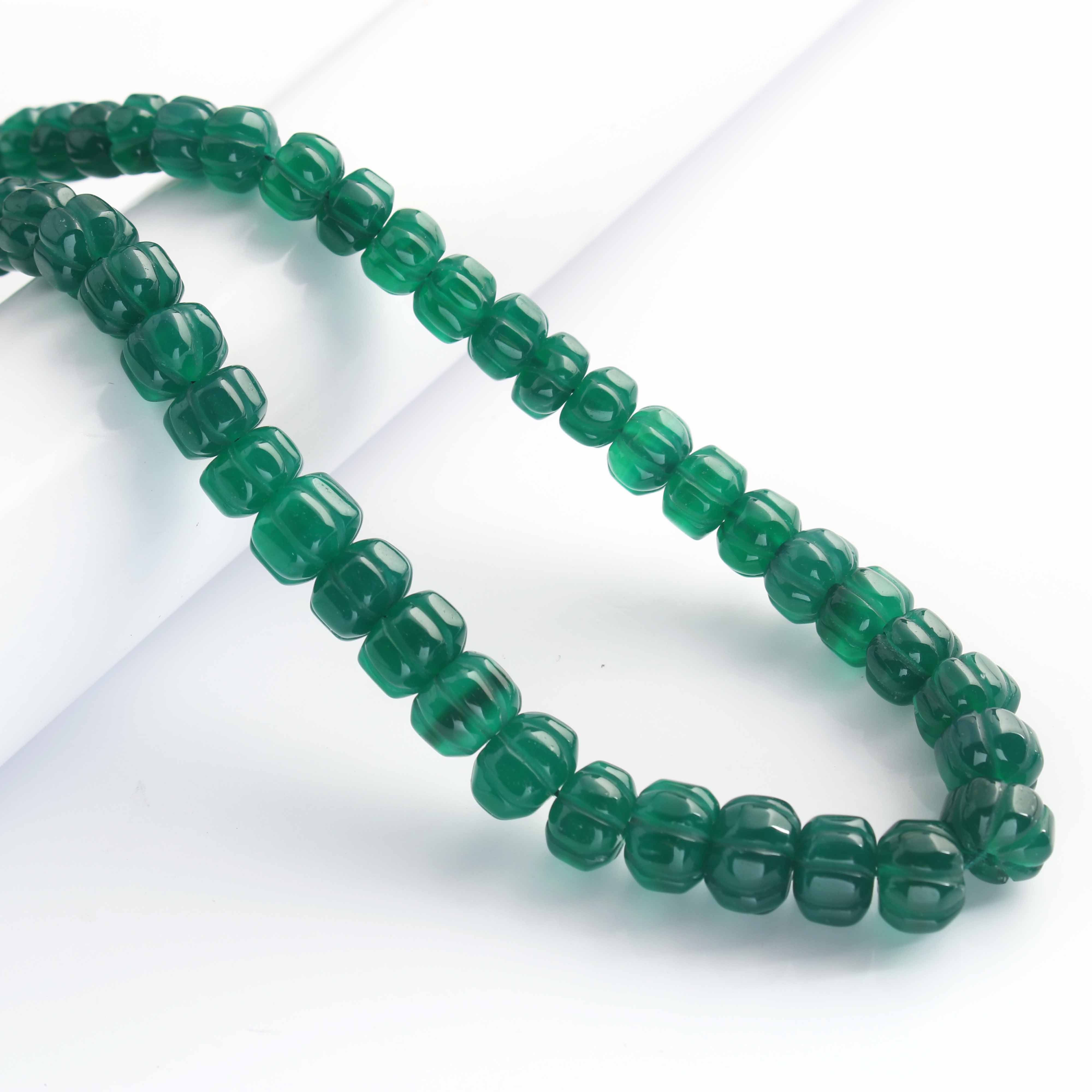 285 Carats 1 Strand Genuine Green Onyx Carved Watermelon Beads, Pumpkin Beads Necklace - Kharbuja Shape Beads - Jewelry DIY Necklace SPB0225