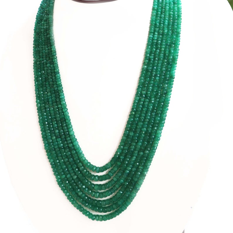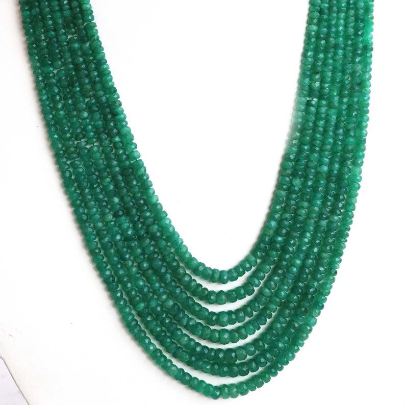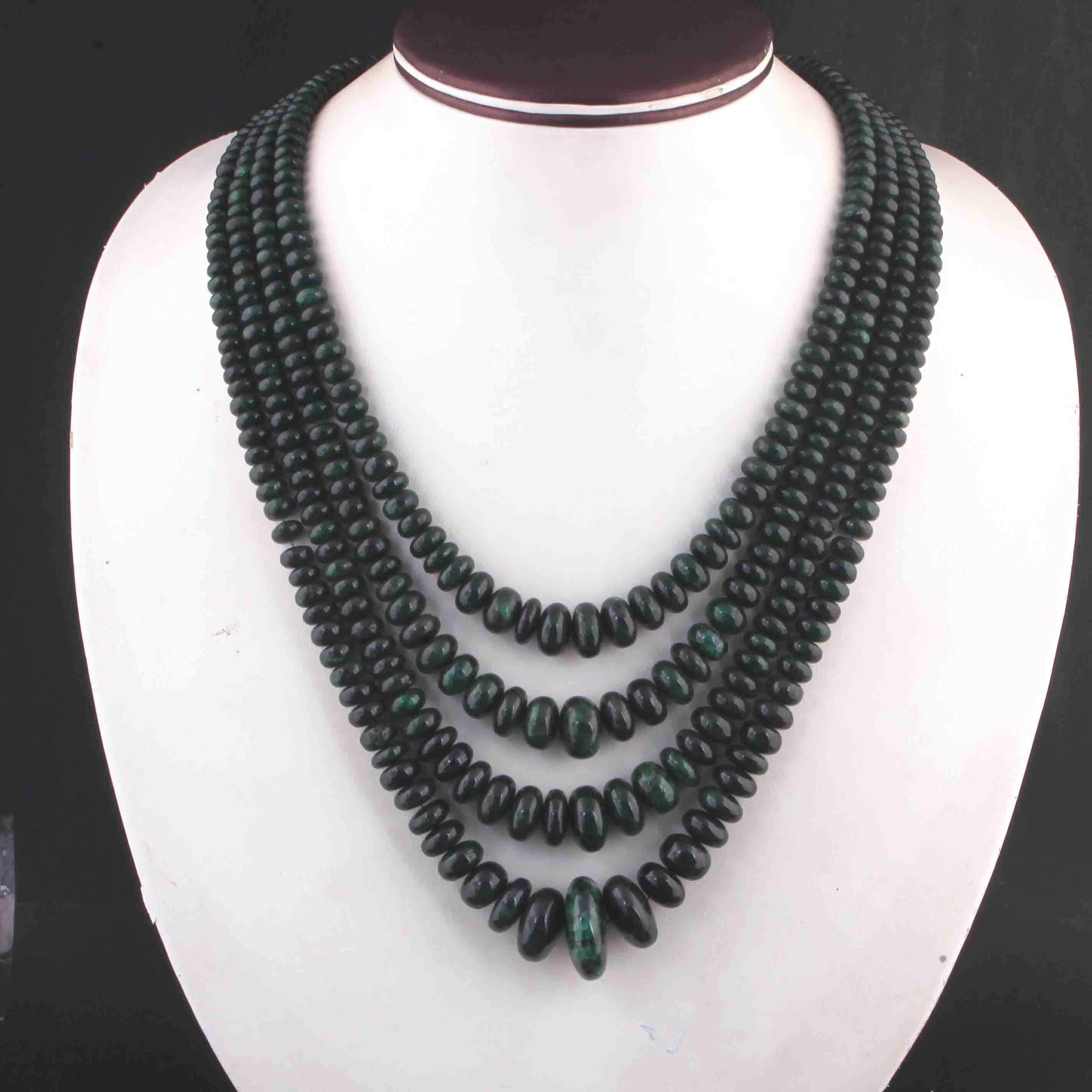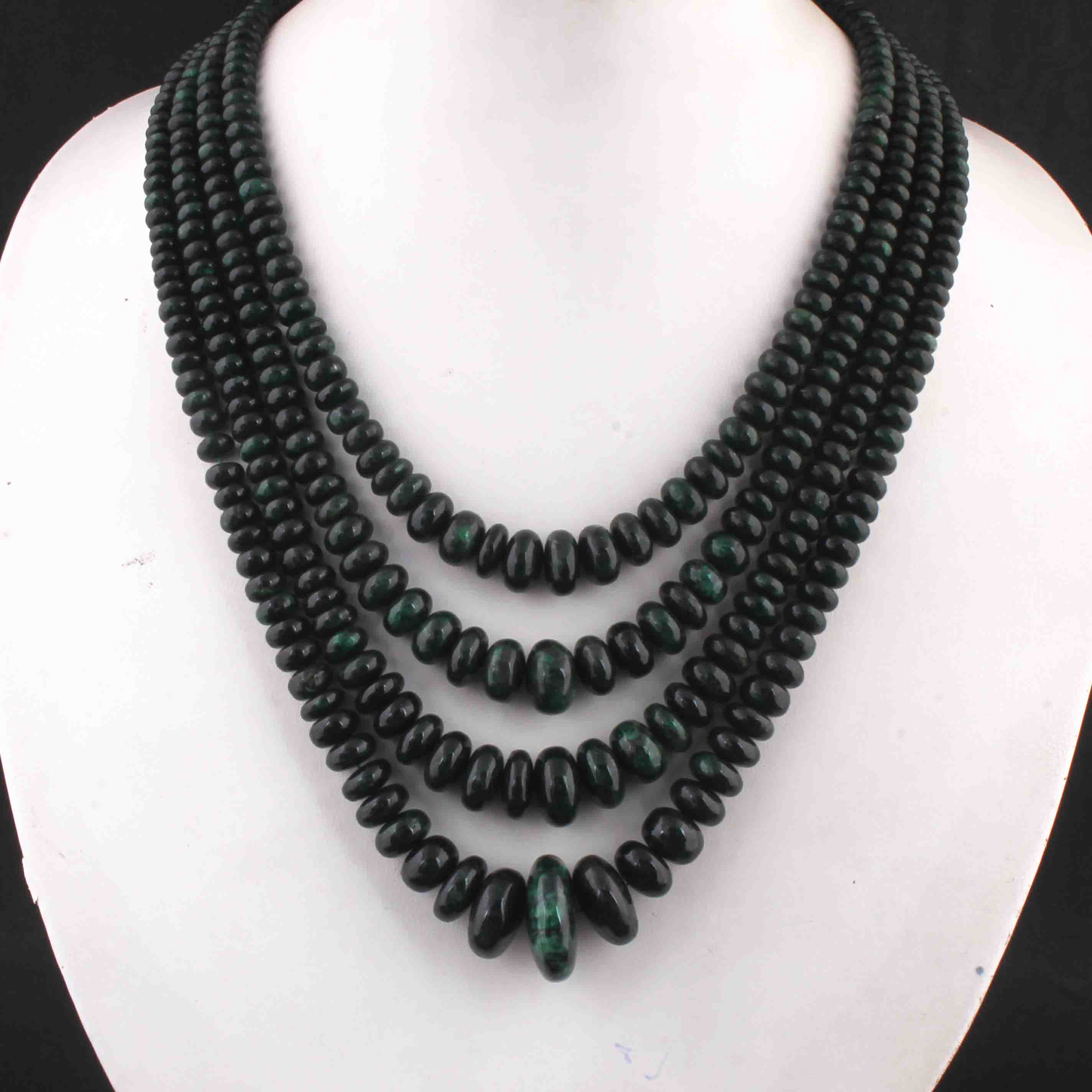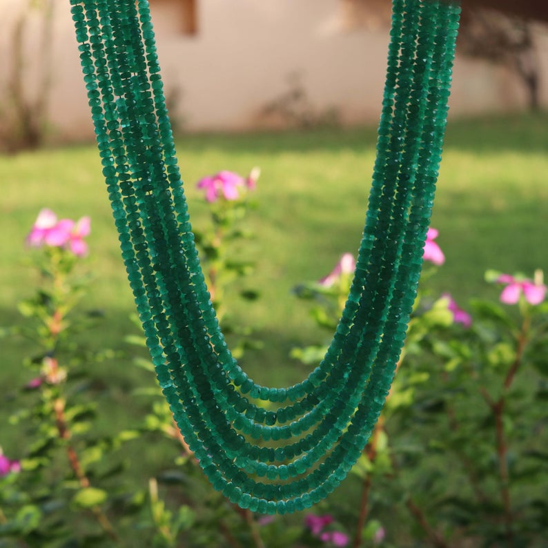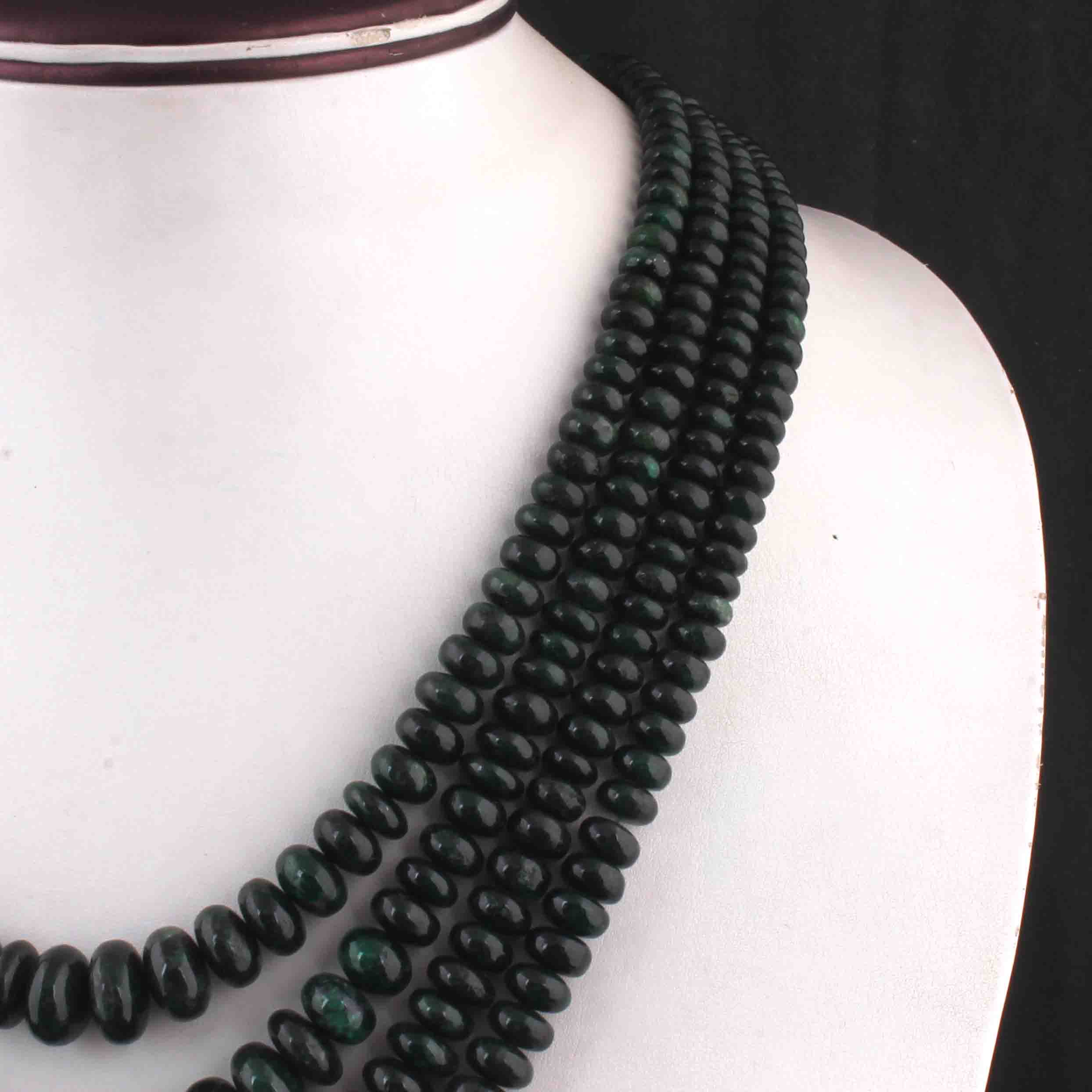 4 Strands Of Genuine Emerald Necklace - Smooth Rondelle Beads - Rare & Natural Necklace - Stunning Elegant Necklace - BRU122