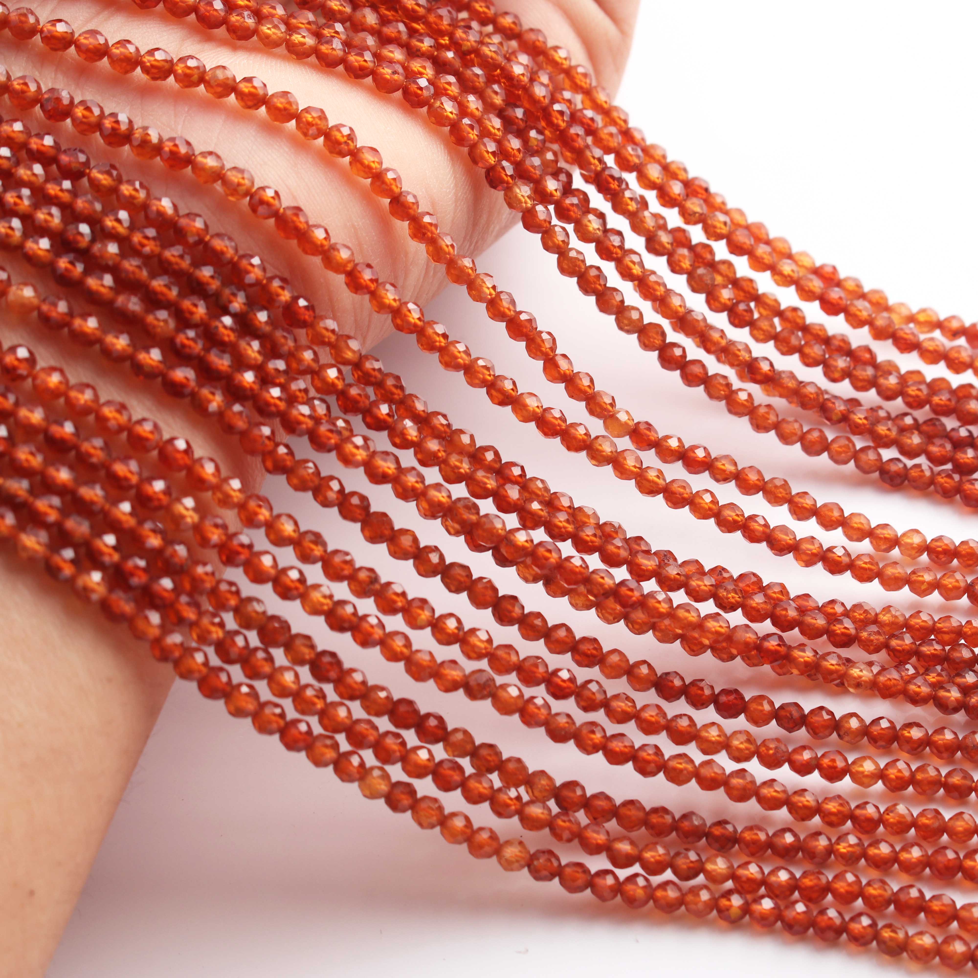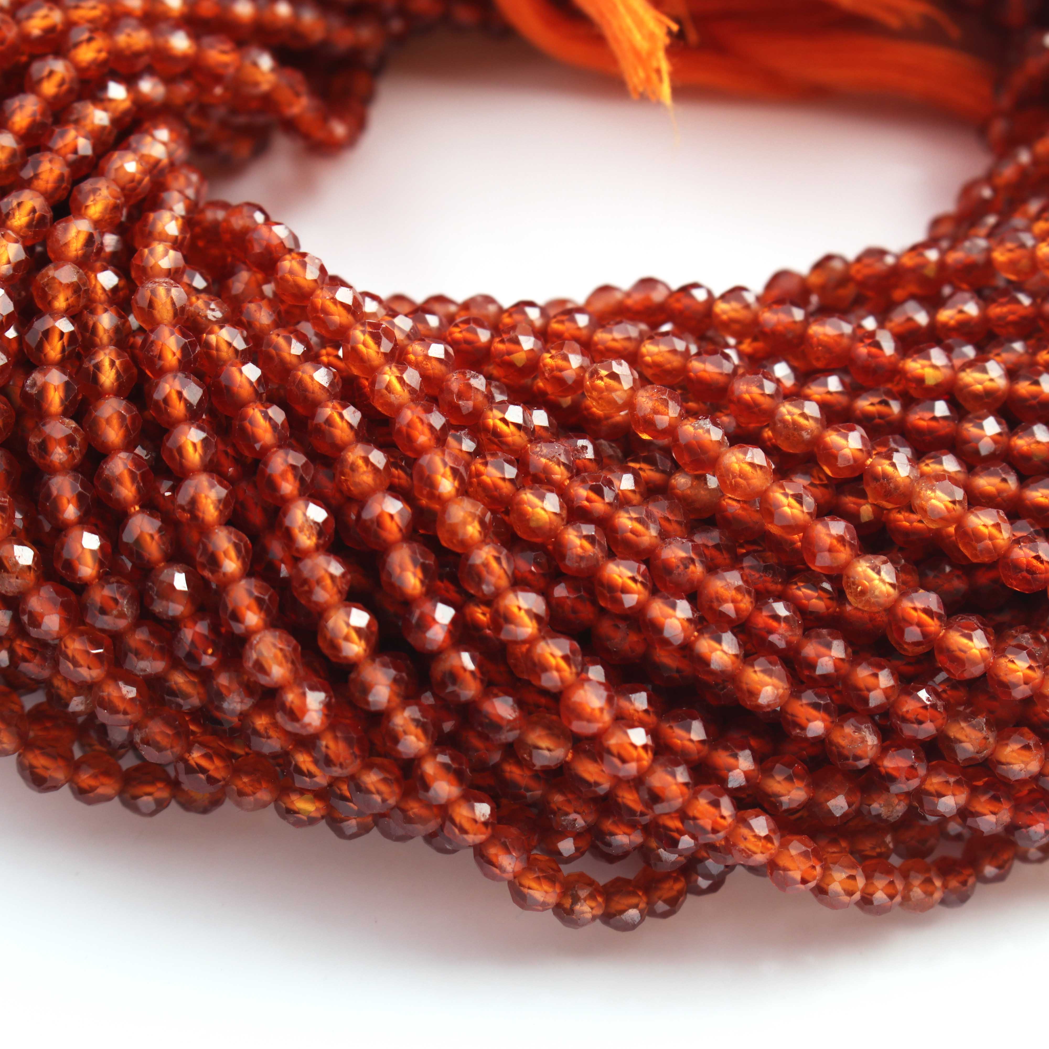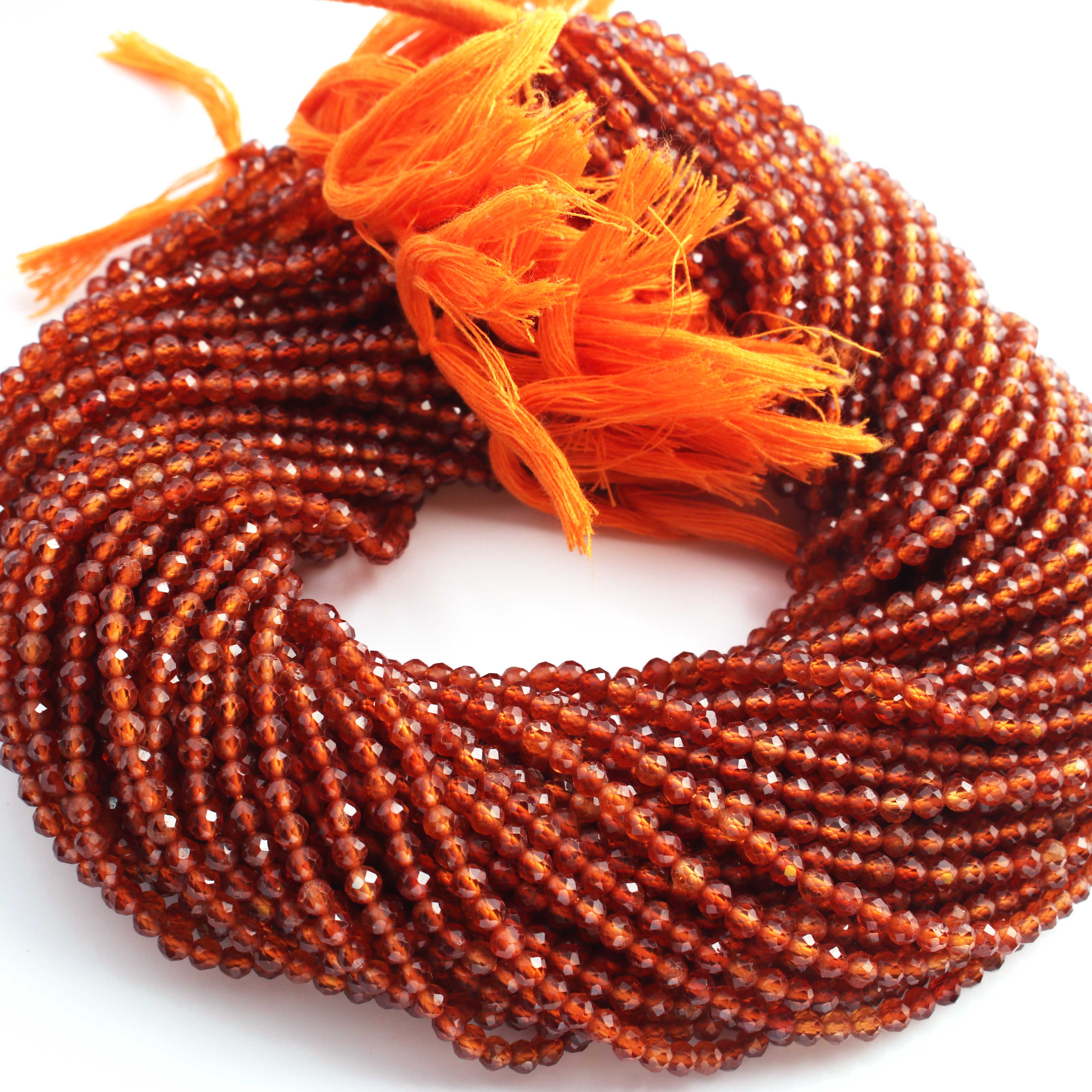 5 Strands Hessonite Faceted Balls - Semi Percious Stone Ball Beads Gemstone Beads - 3mm -13 Inche RB0269