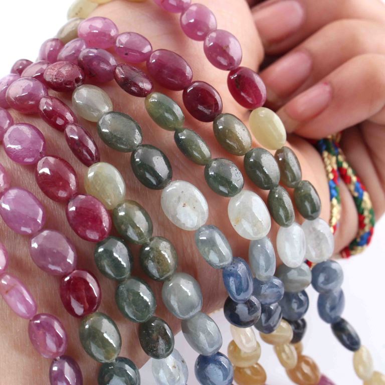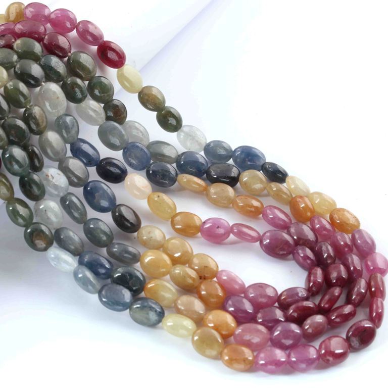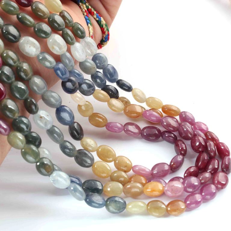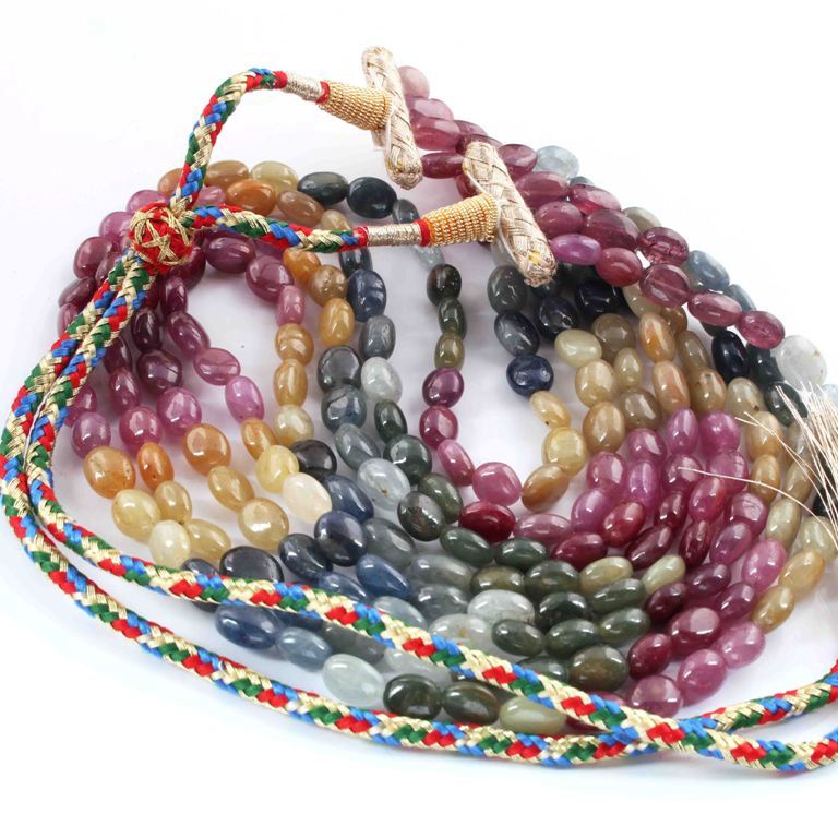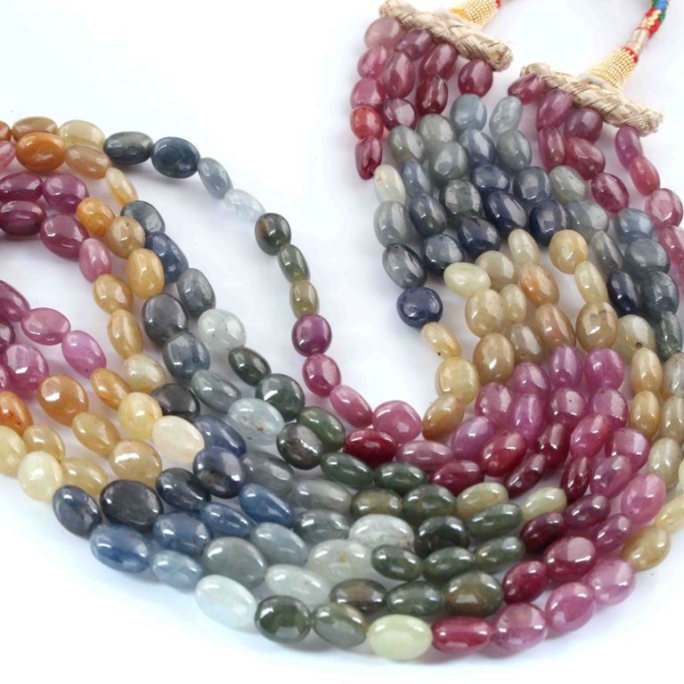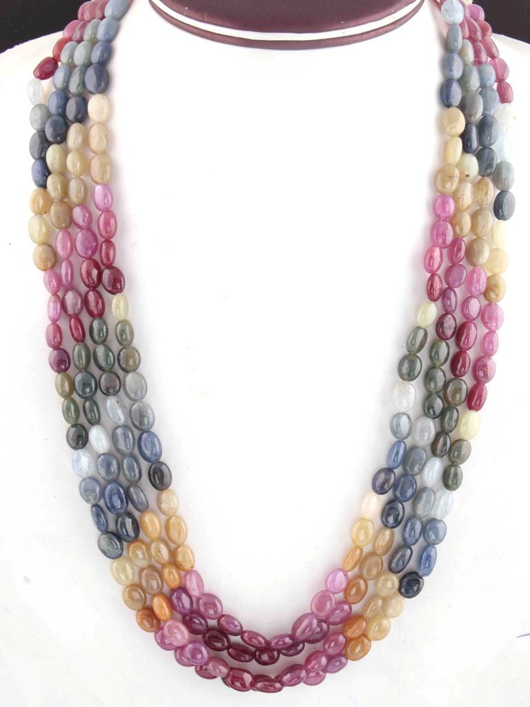 760 Ct. 4 Strands Of Genuine Multi Sapphire Necklace - Smooth Oval Beads - Rare & Natural Necklace - Stunning Elegant Necklace SPB0183