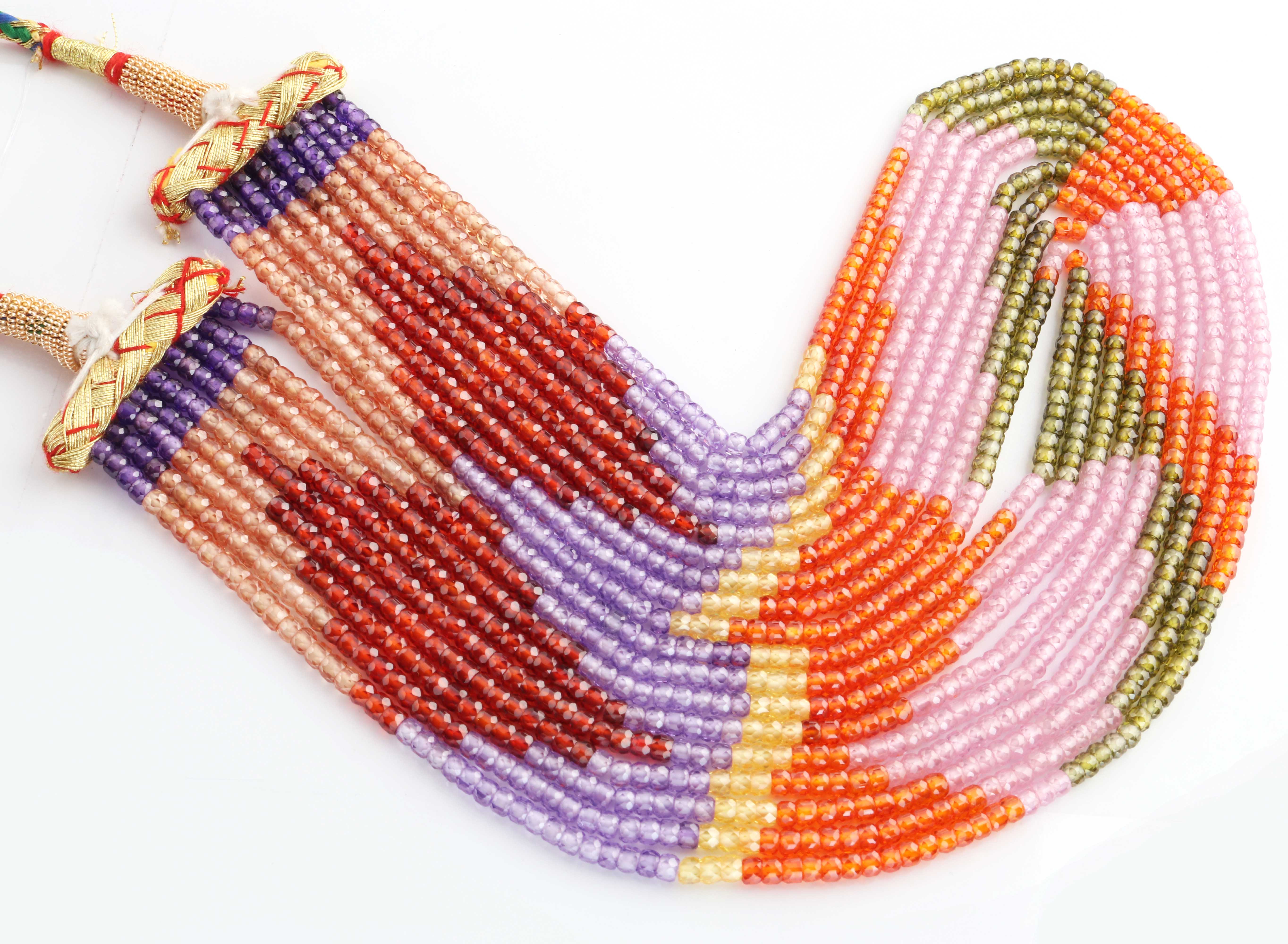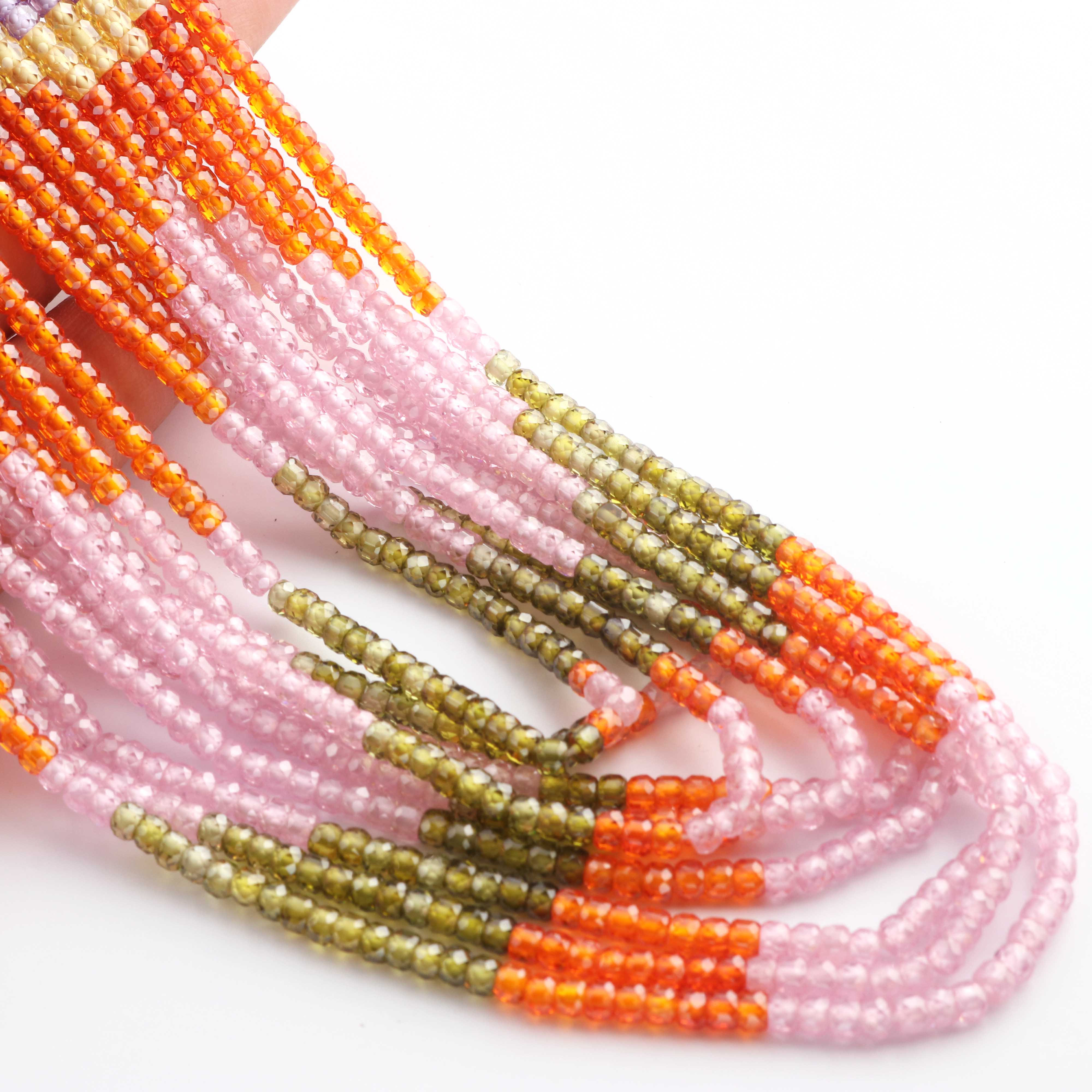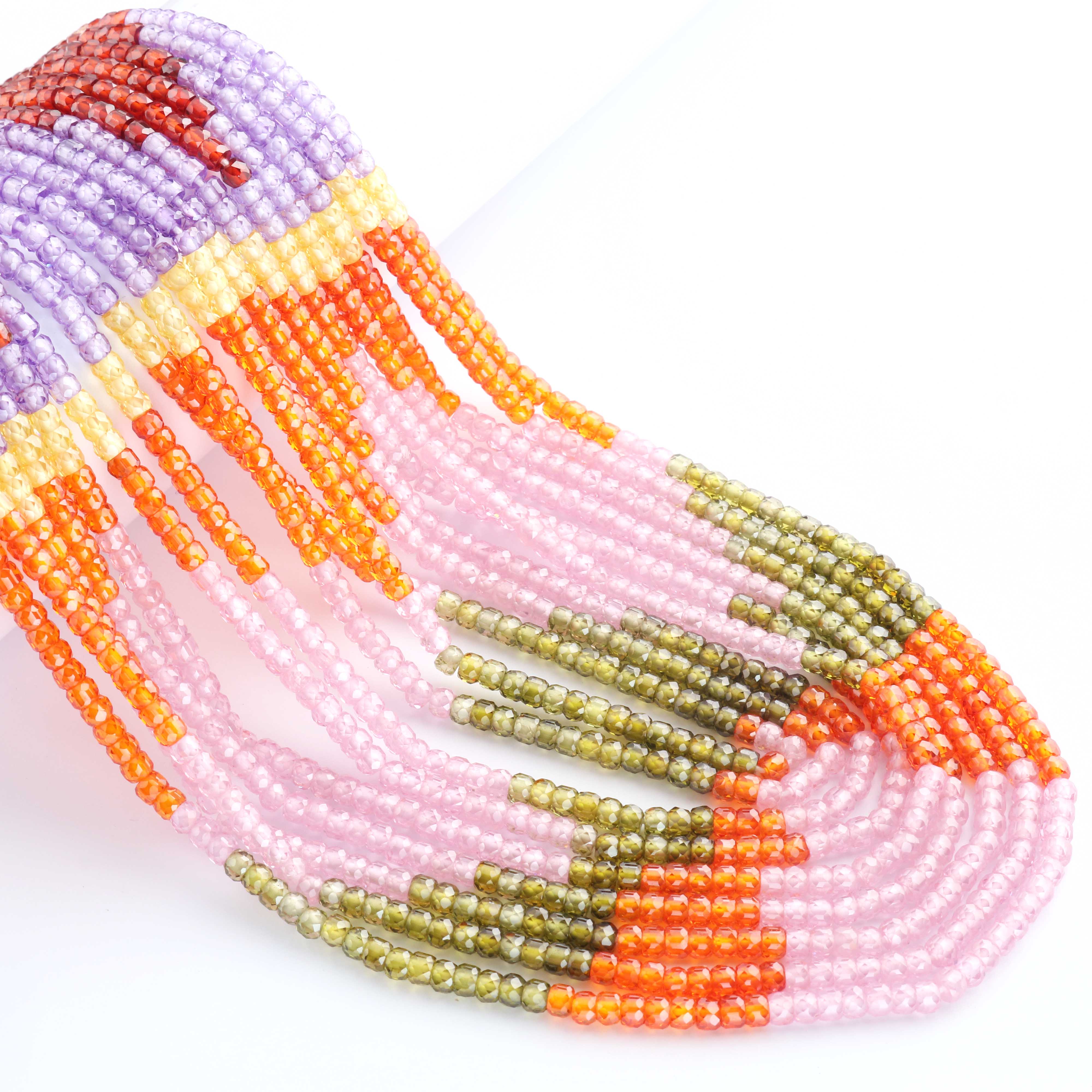 9 Strands Multi Zircon CZ Necklace , Gemstone Faceted Rondelles Ready To Wear Necklace - 3mm 16.5 Inches BR03688