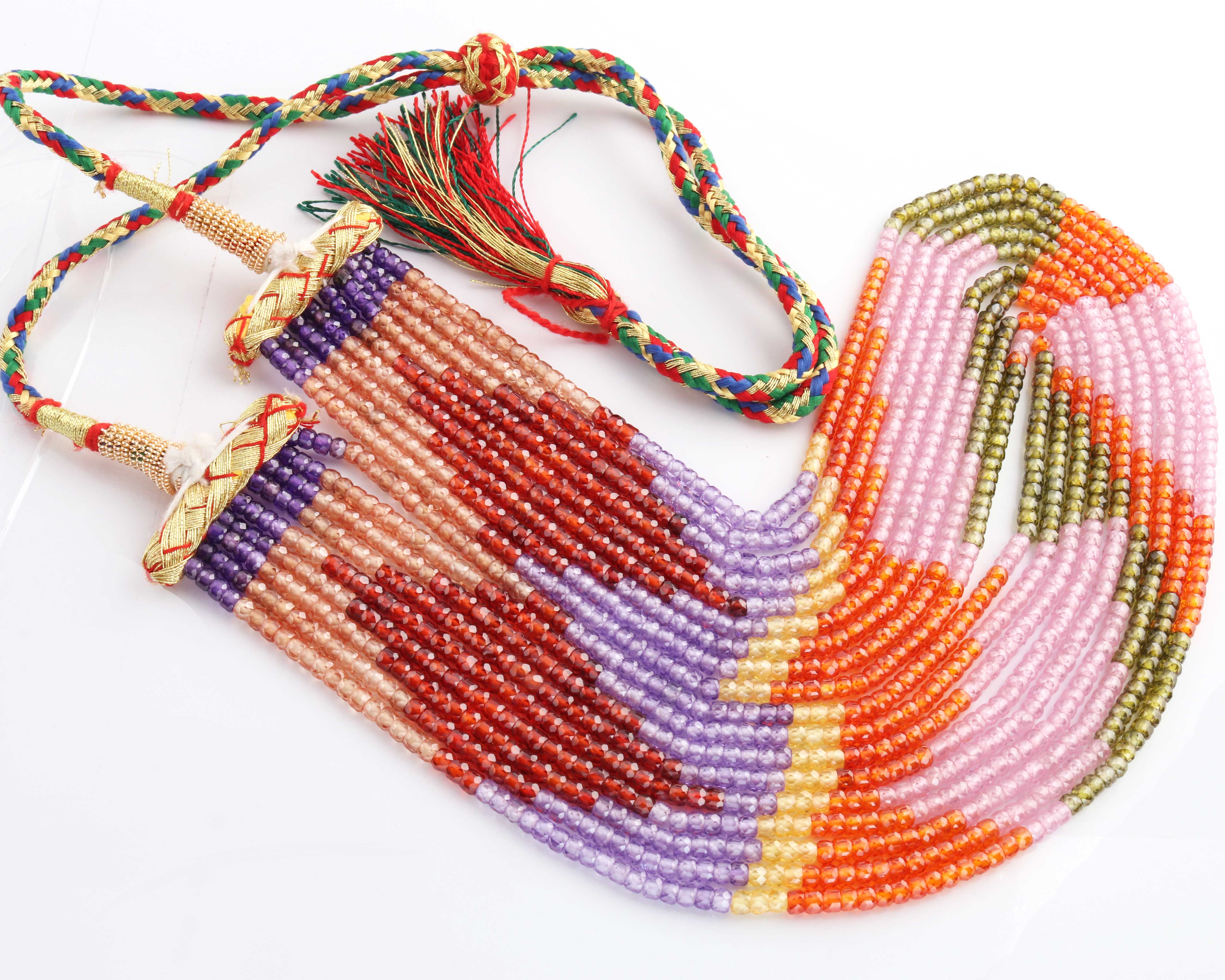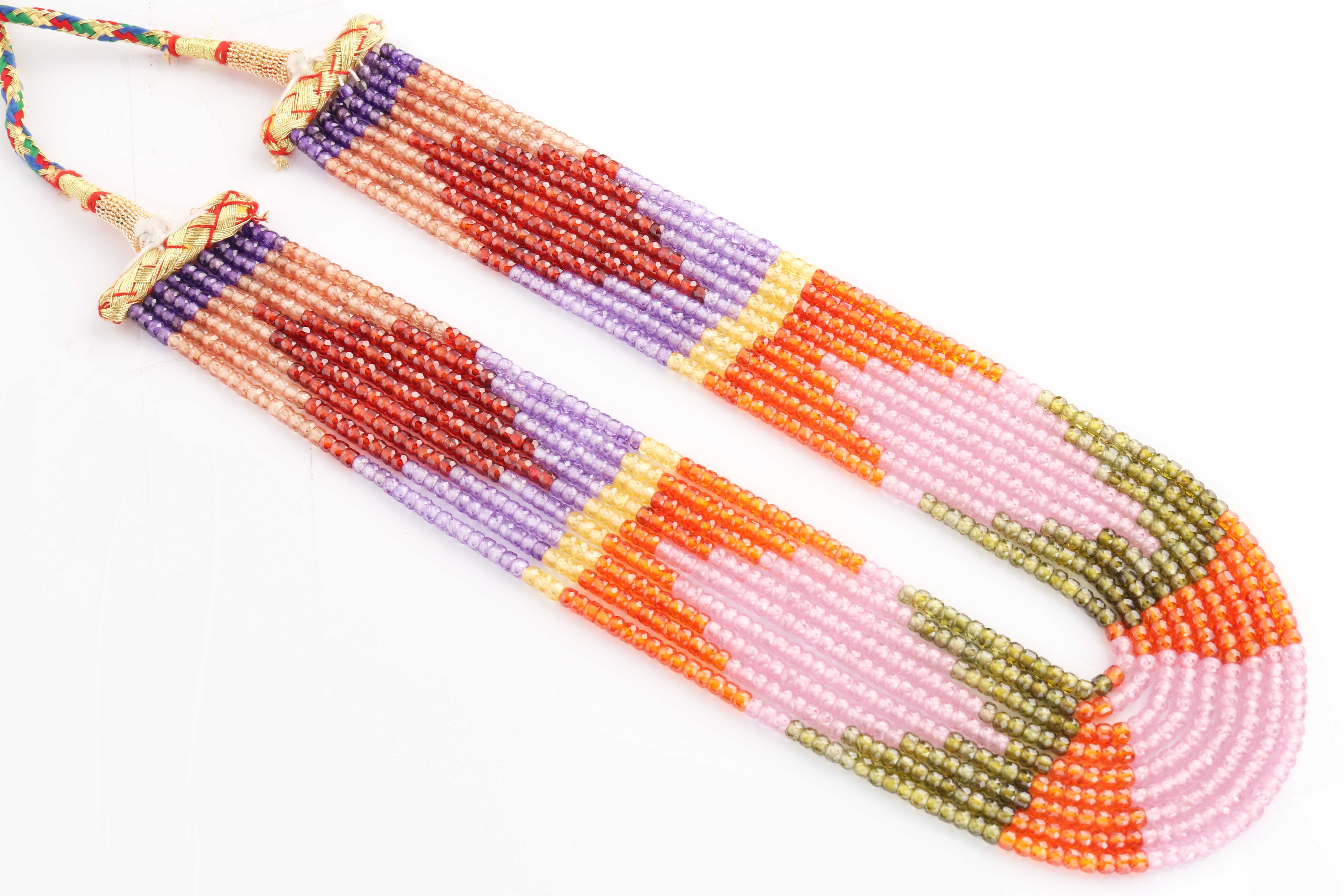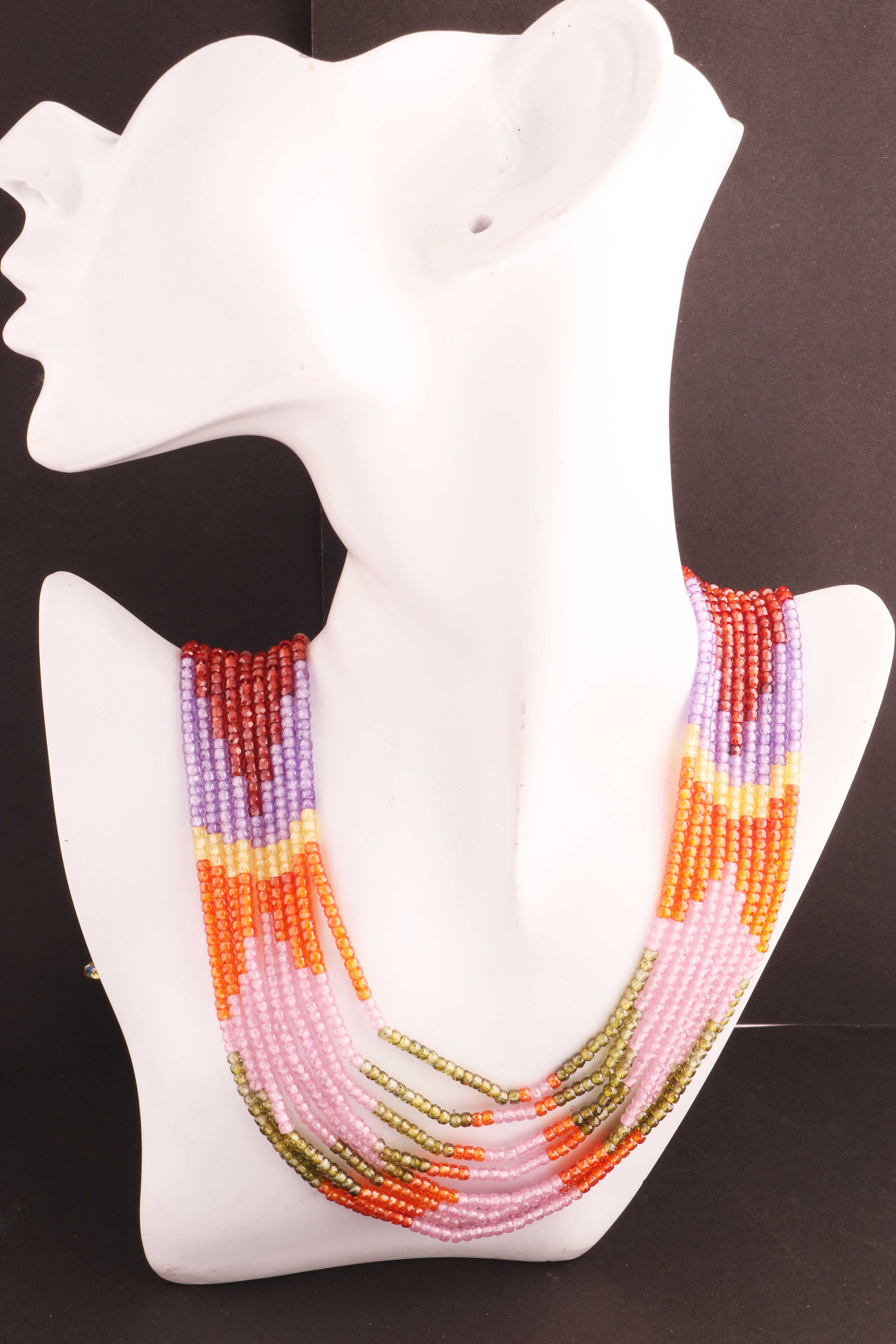 9 Strands Multi Zircon CZ Necklace , Gemstone Faceted Rondelles Ready To Wear Necklace - 3mm 16.5 Inches BR03688