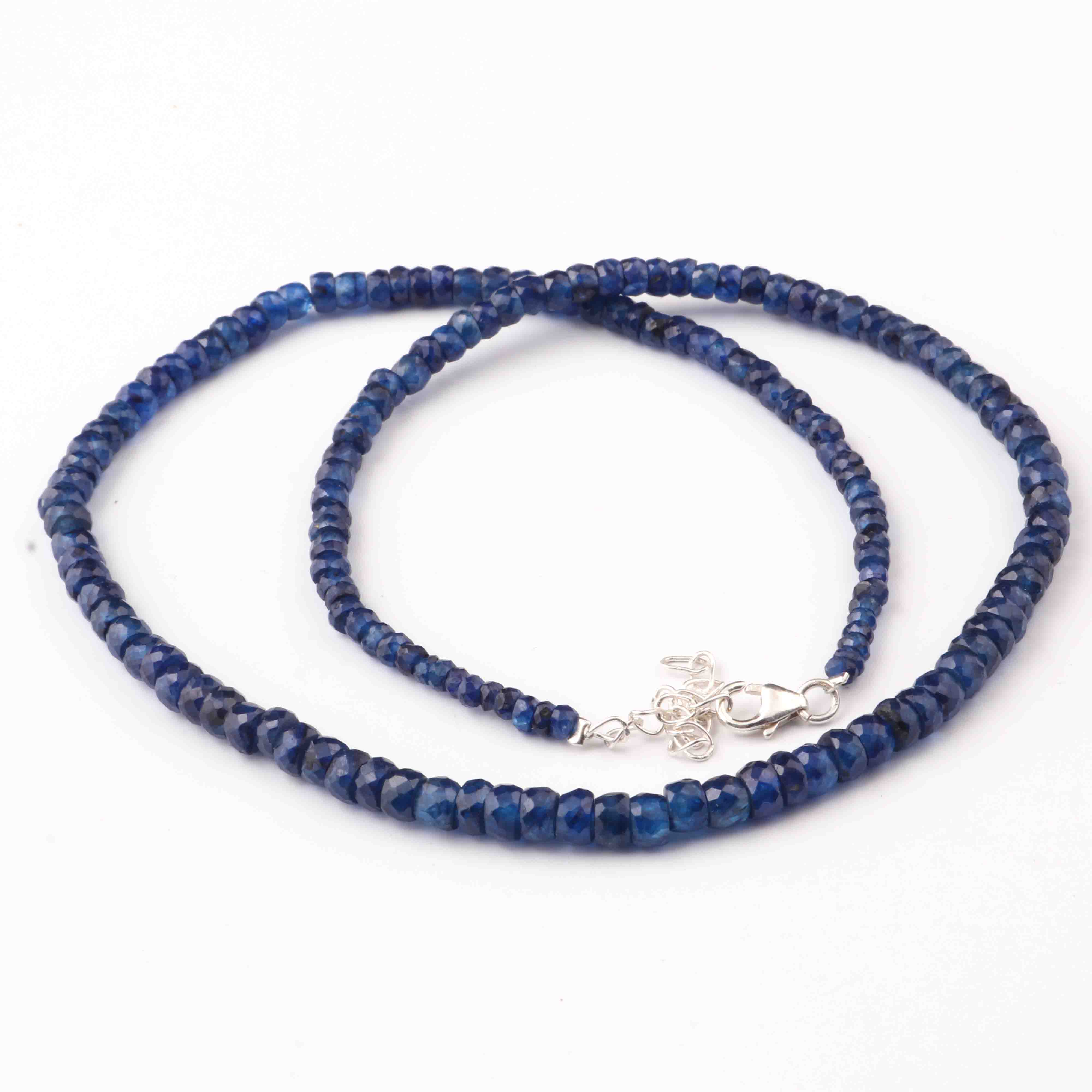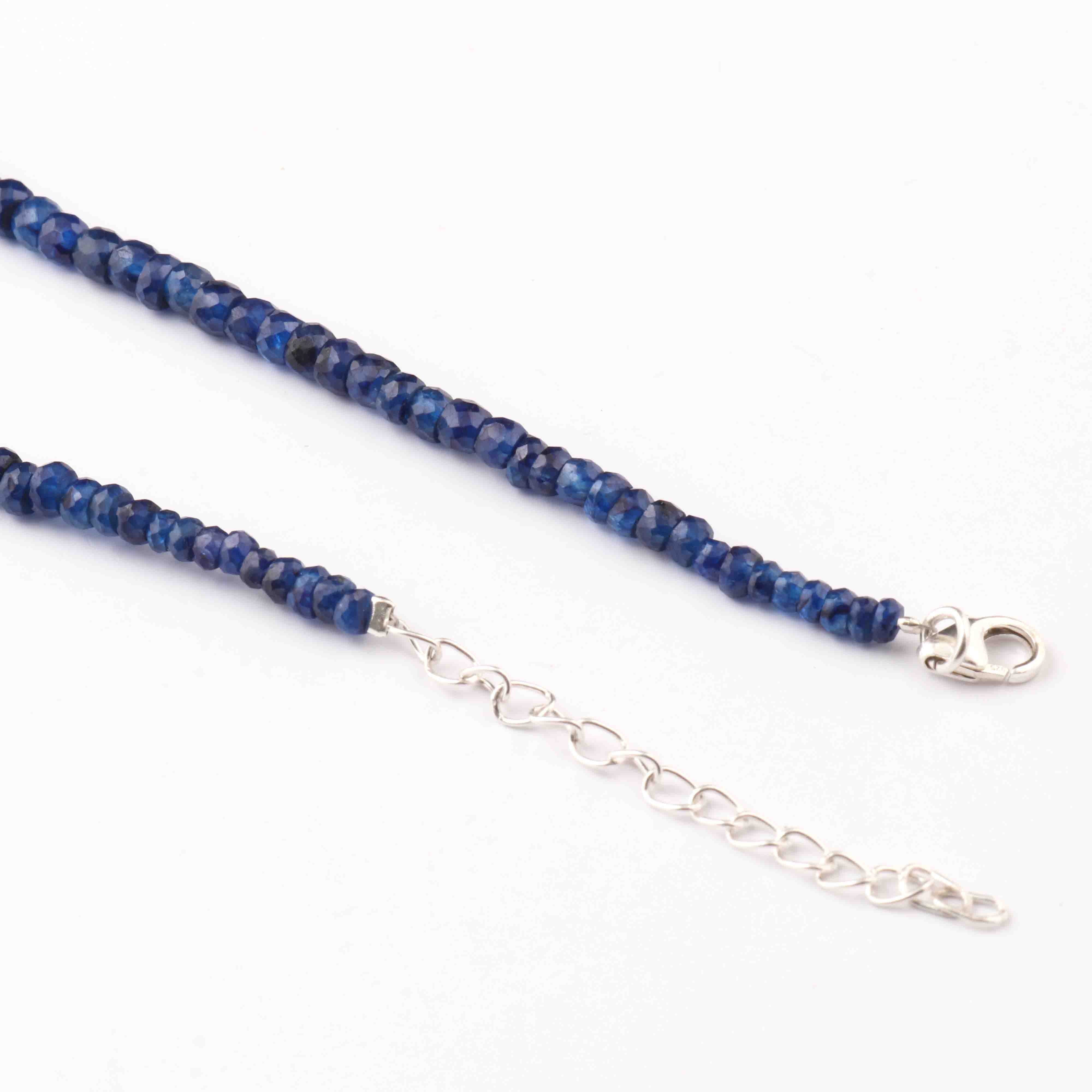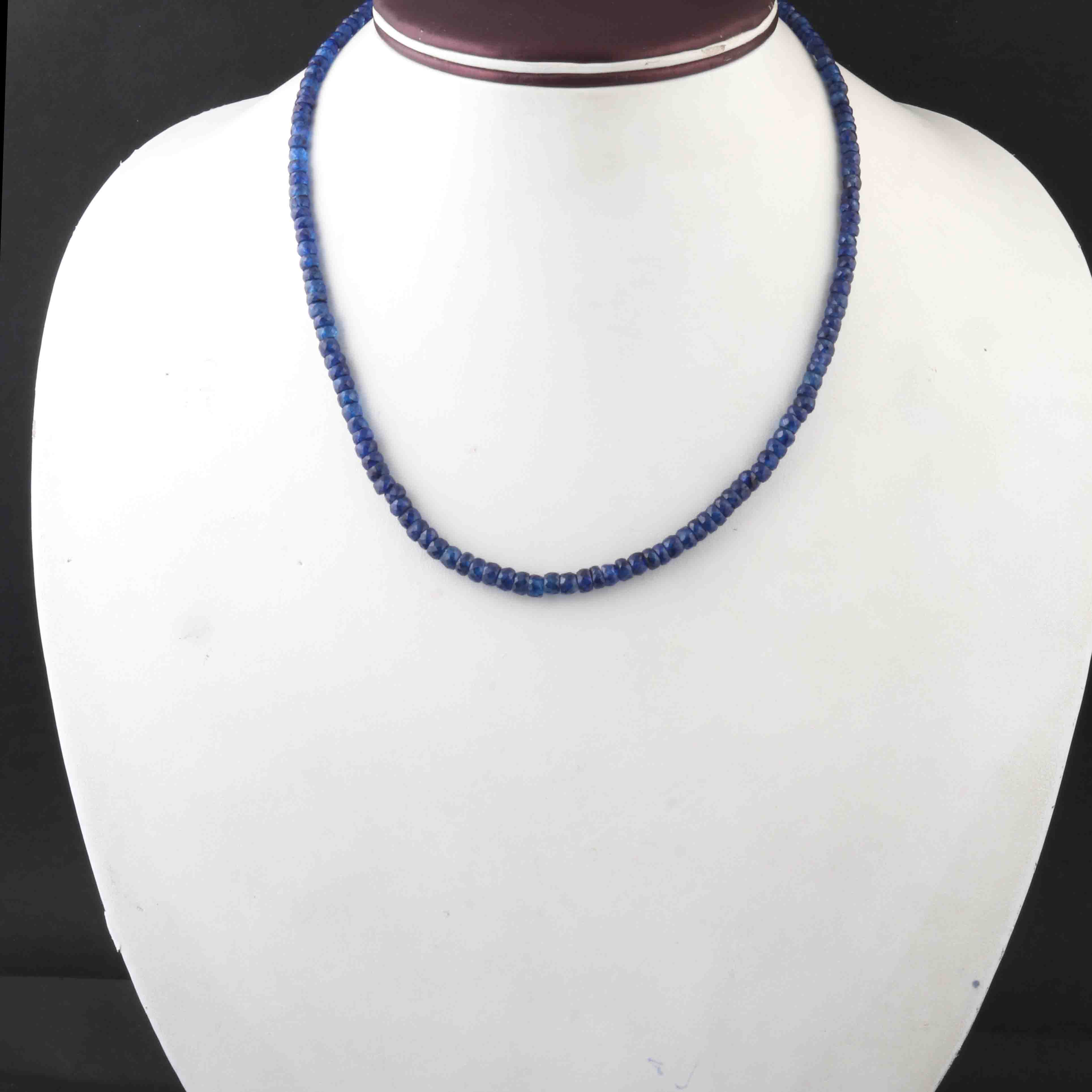 Blue Sapphire Smooth Beaded Necklace - Necklace With Lock - Long Knotted Beads Necklace -Single Wrap Necklace - BR-0394