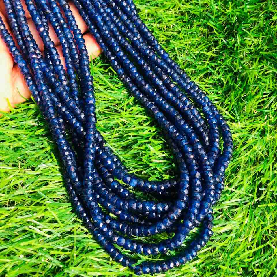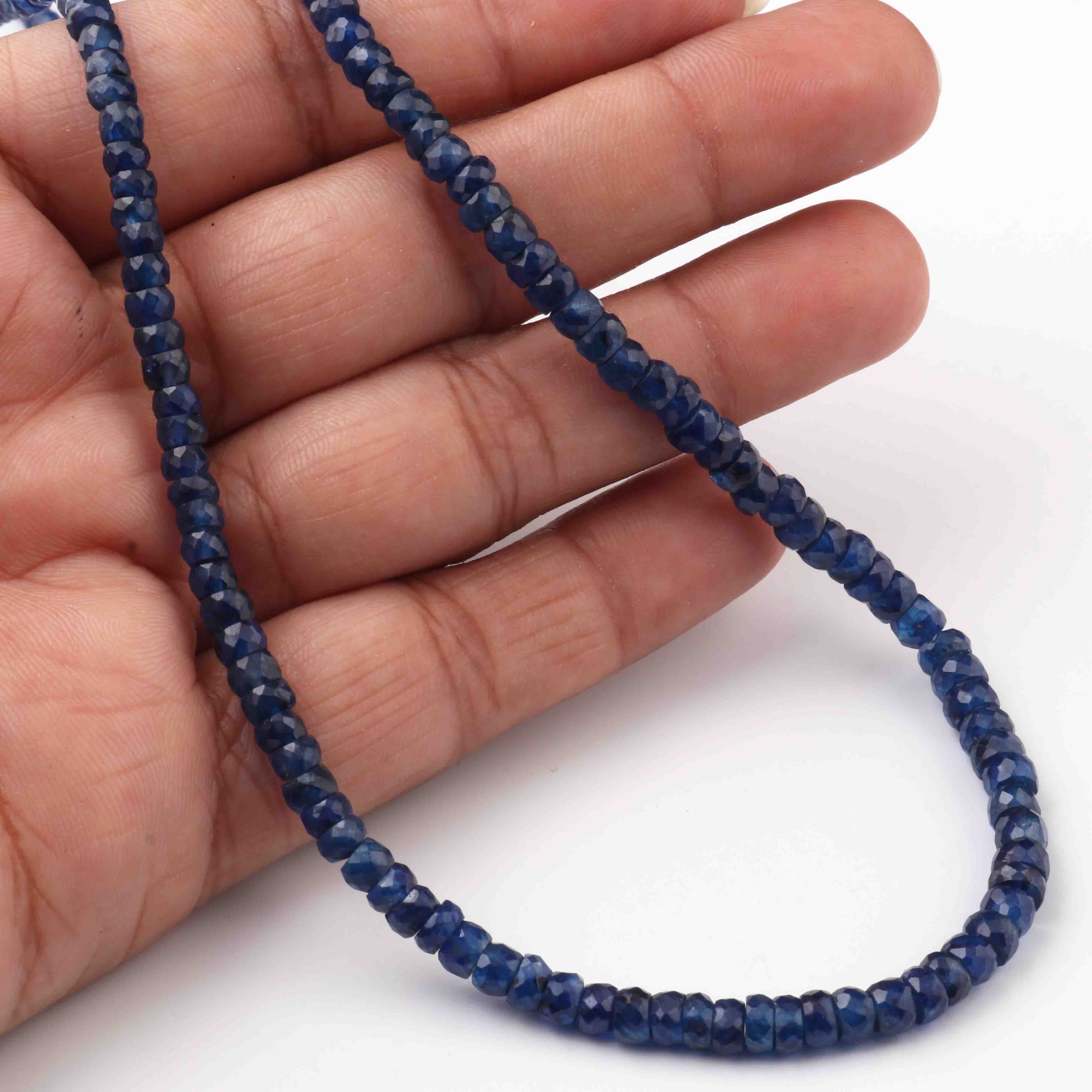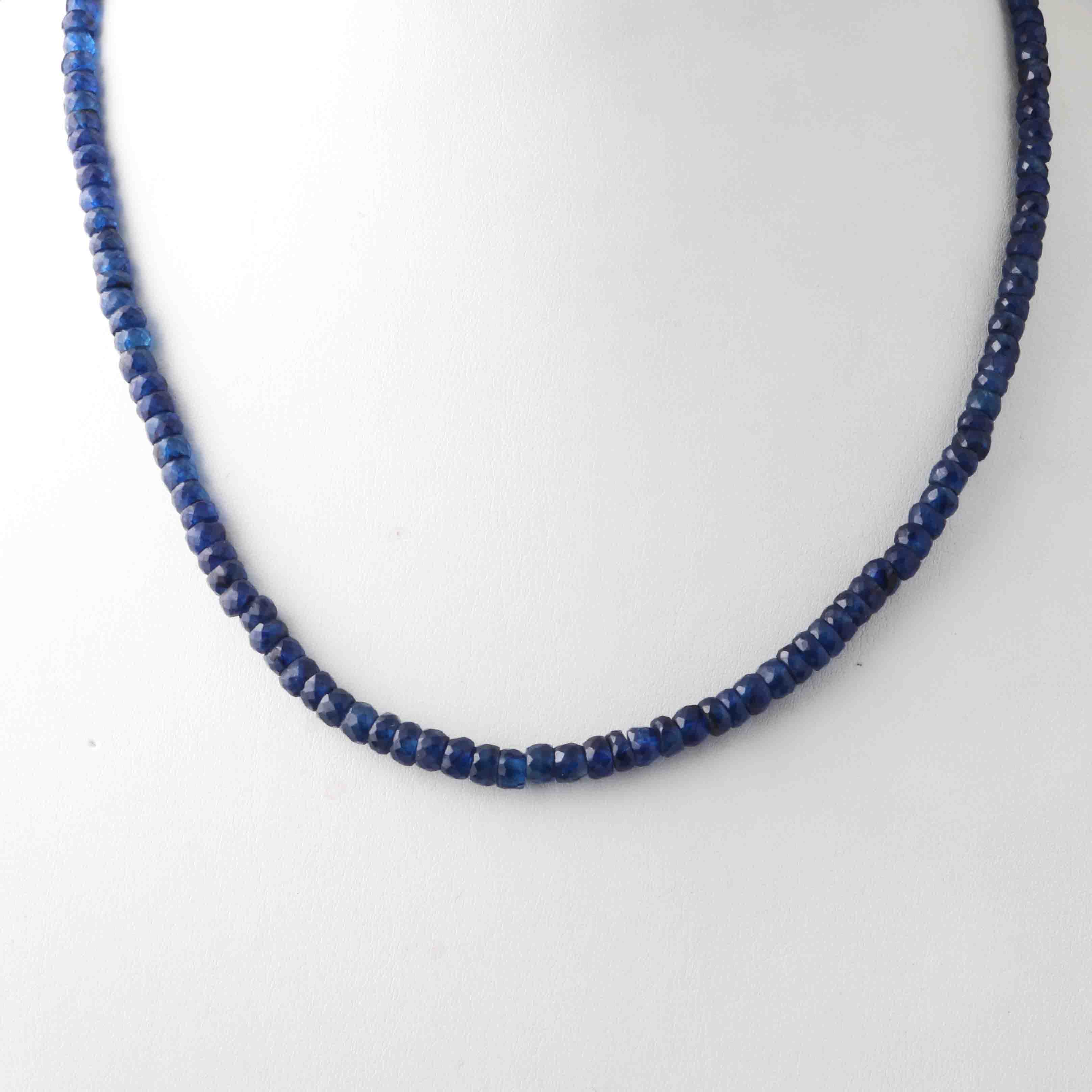 Blue Sapphire Smooth Beaded Necklace - Necklace With Lock - Long Knotted Beads Necklace -Single Wrap Necklace - BR-0394