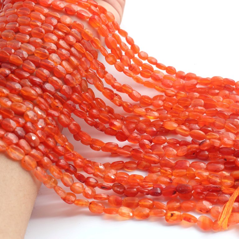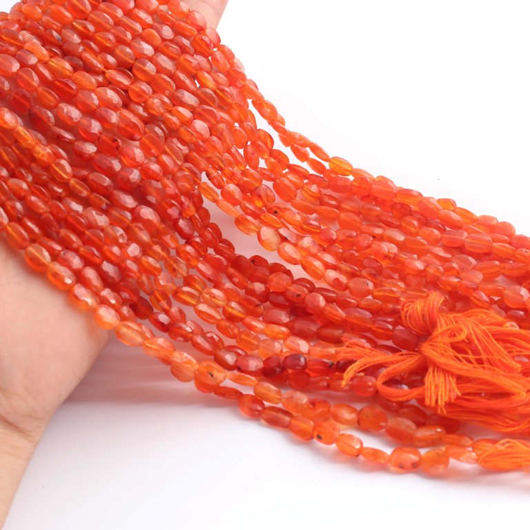 1 Strand Carnelian Faceted Oval Shape Briolettes - Oval Shape Briolette 5mm-7mm 12 Inches BR02407