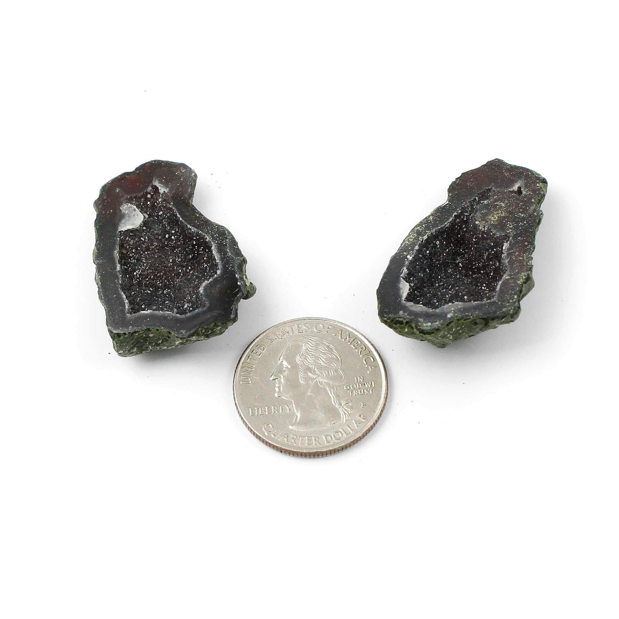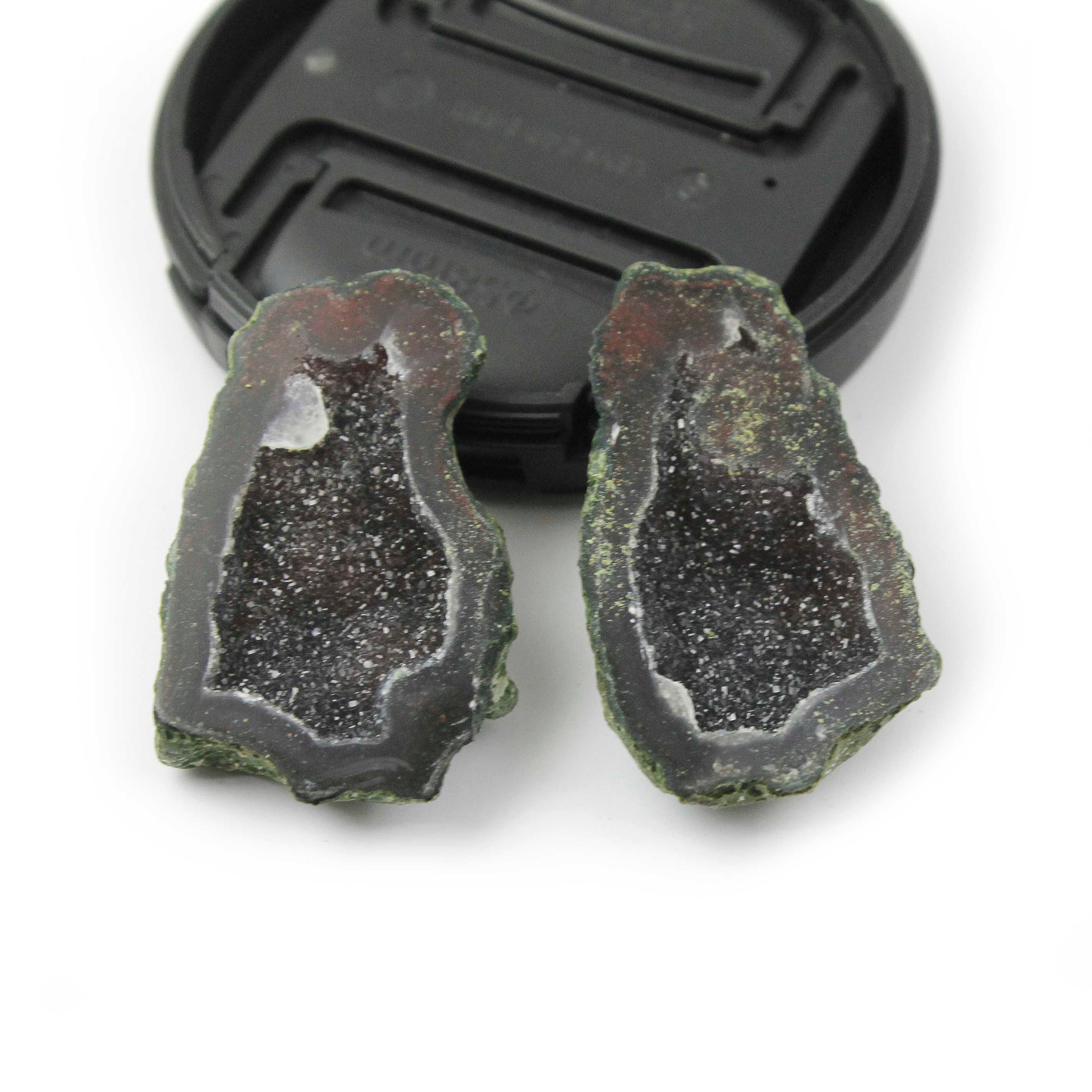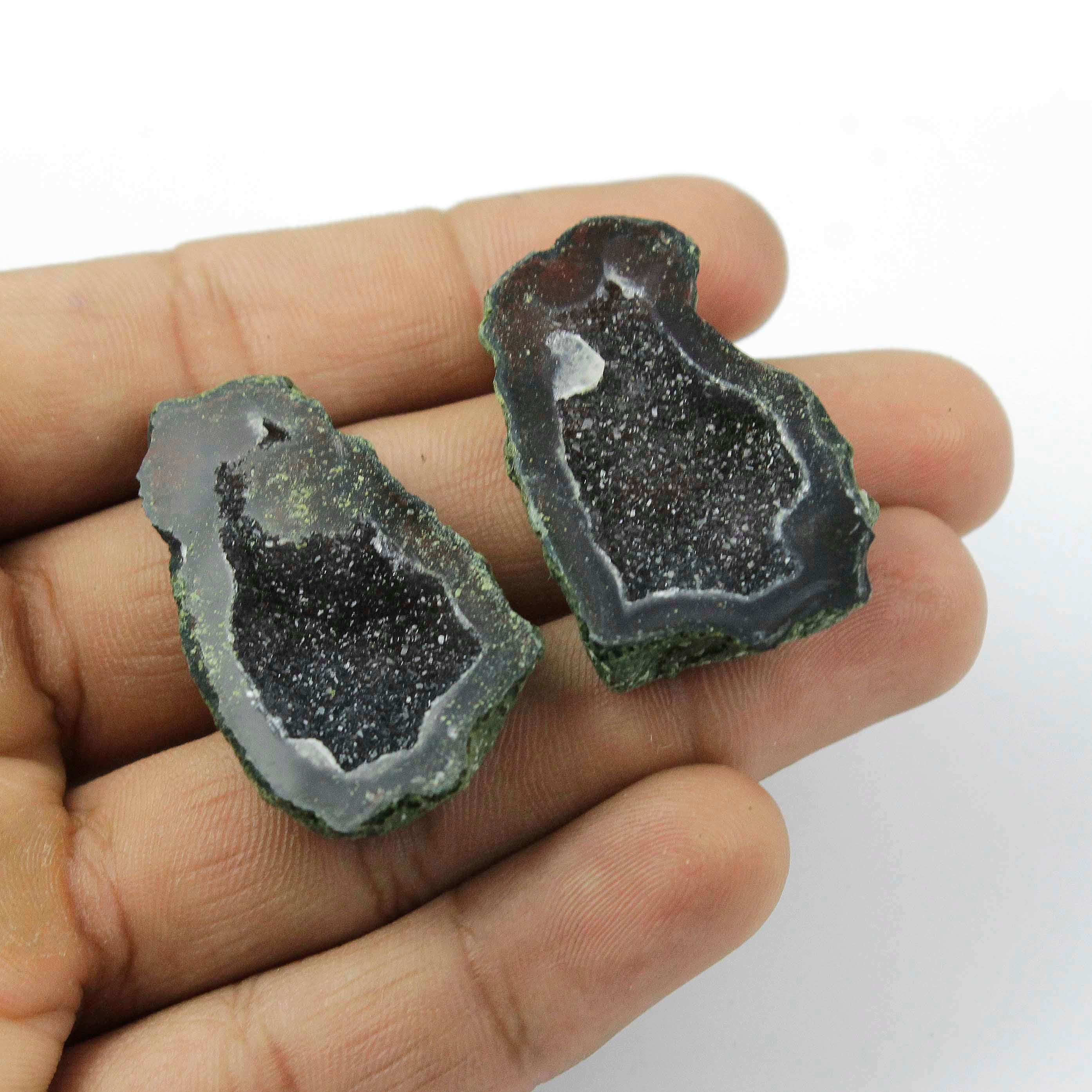 Natural Big Tabasco Geode With Agate Druzy - Geode Split In Half Rare Banded 39mmx23mm Matching Pair #274 Pair Size - 39mmx23mm This is a Love Birds Tabasco geode cut in half. They are polished on the front face and backside is green rock. The backs are left natural and rounded, as shown in the last picture. Size is earring will vary. Please refer for photo with quartz for better sizing. Great Quality for making Necklace, earrings, Bracelet or any other jewelry. 100% natural & genuine CLICK BELOW TO CHECK ALL OUR BEAUTIFUL TABASCO BABY GEODE https://www.etsy.com/shop/Tucsonbeads?ref=hdr_shop_menu&search_query=tabasco