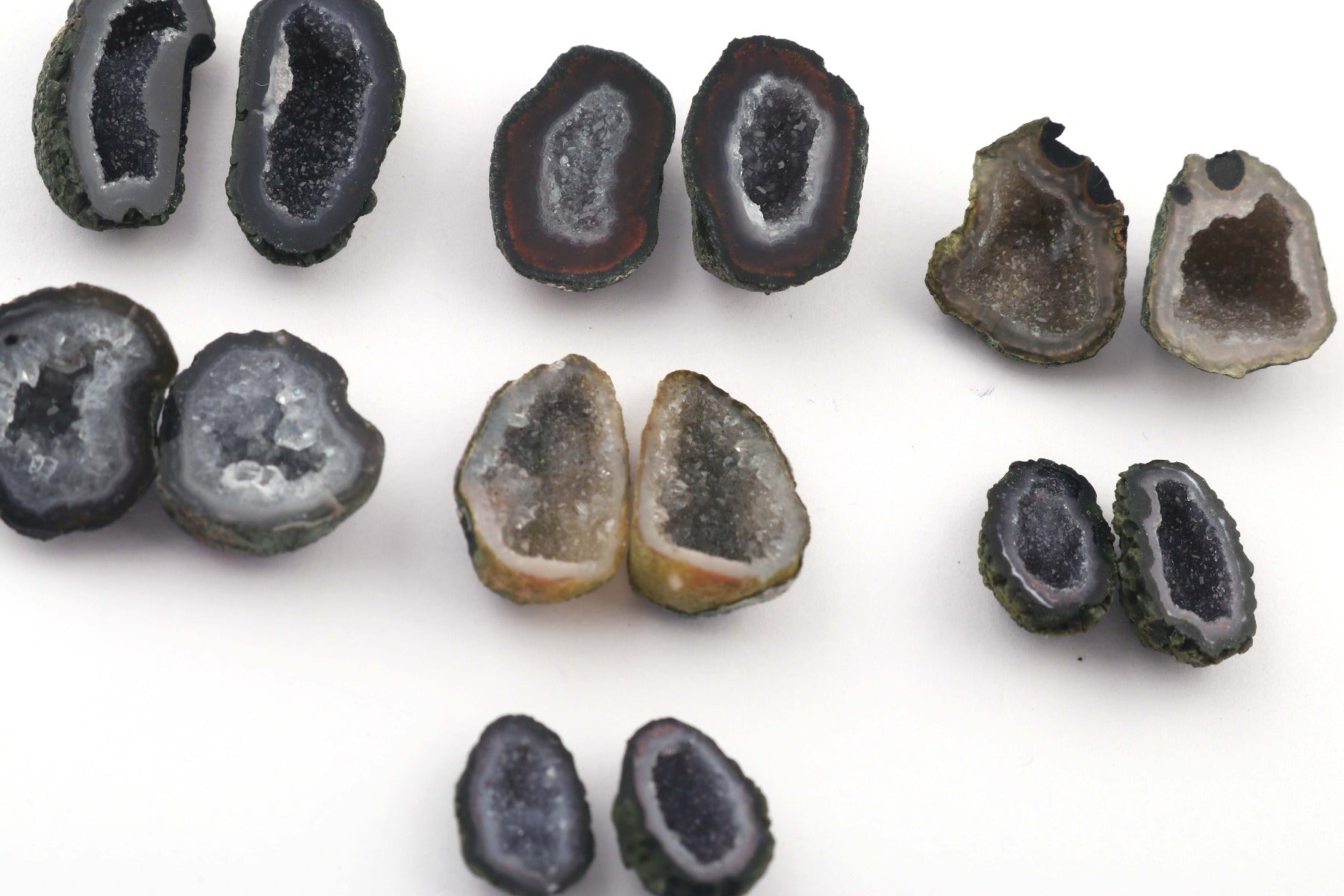 Natural Tabasco Geode Pairs -- With Sparkling Druzy Drusy Cabochon Cab Wholesale For Designer Matching Pair #031