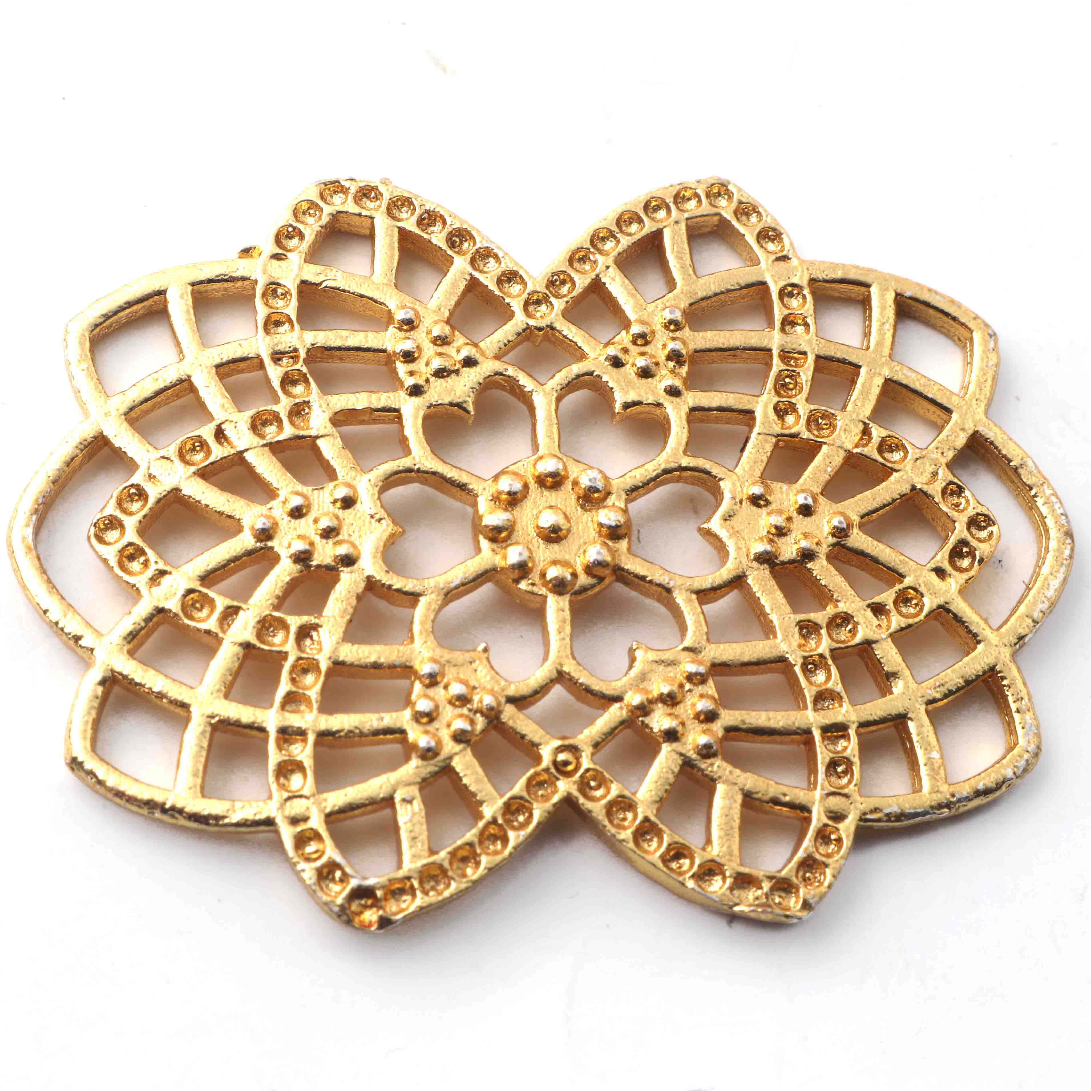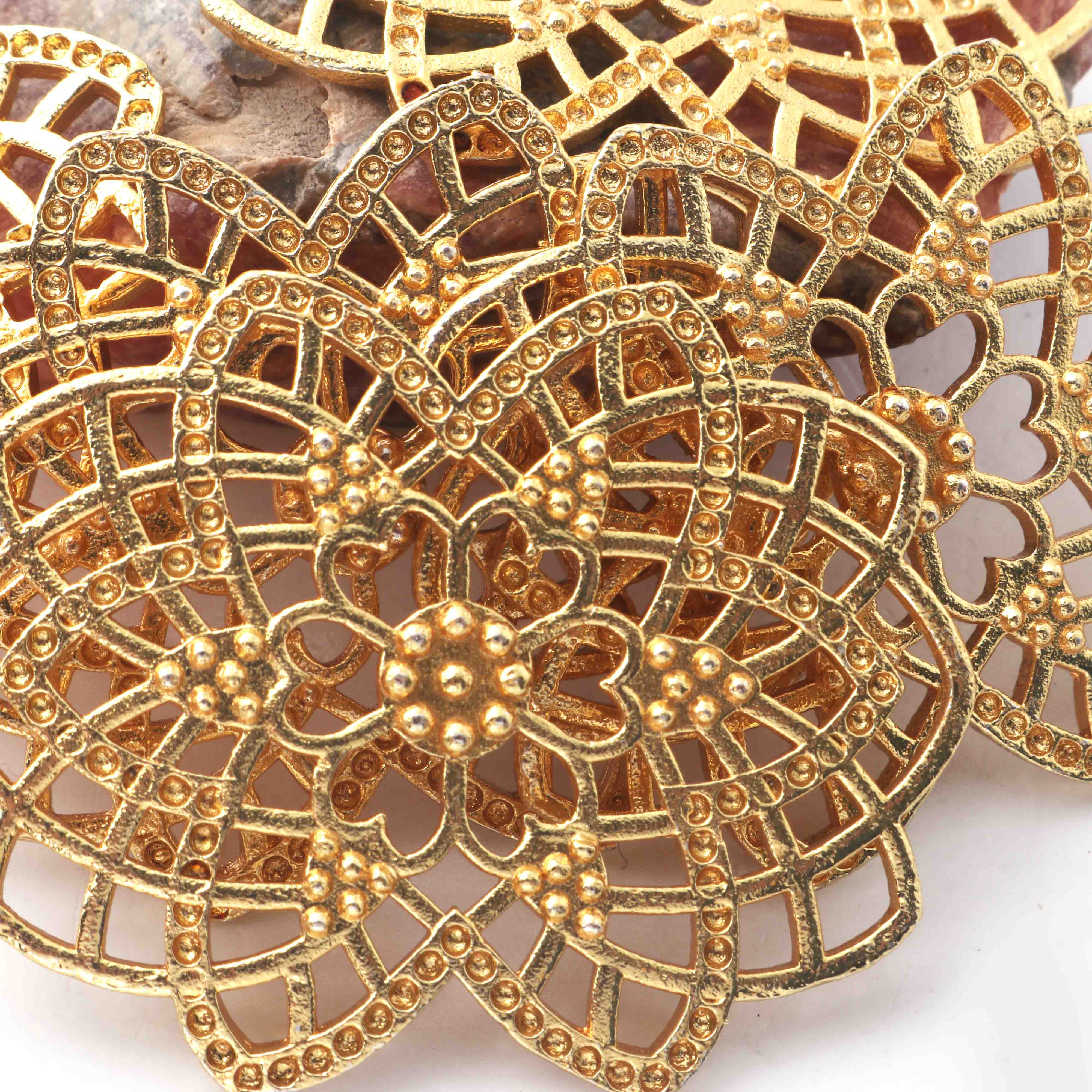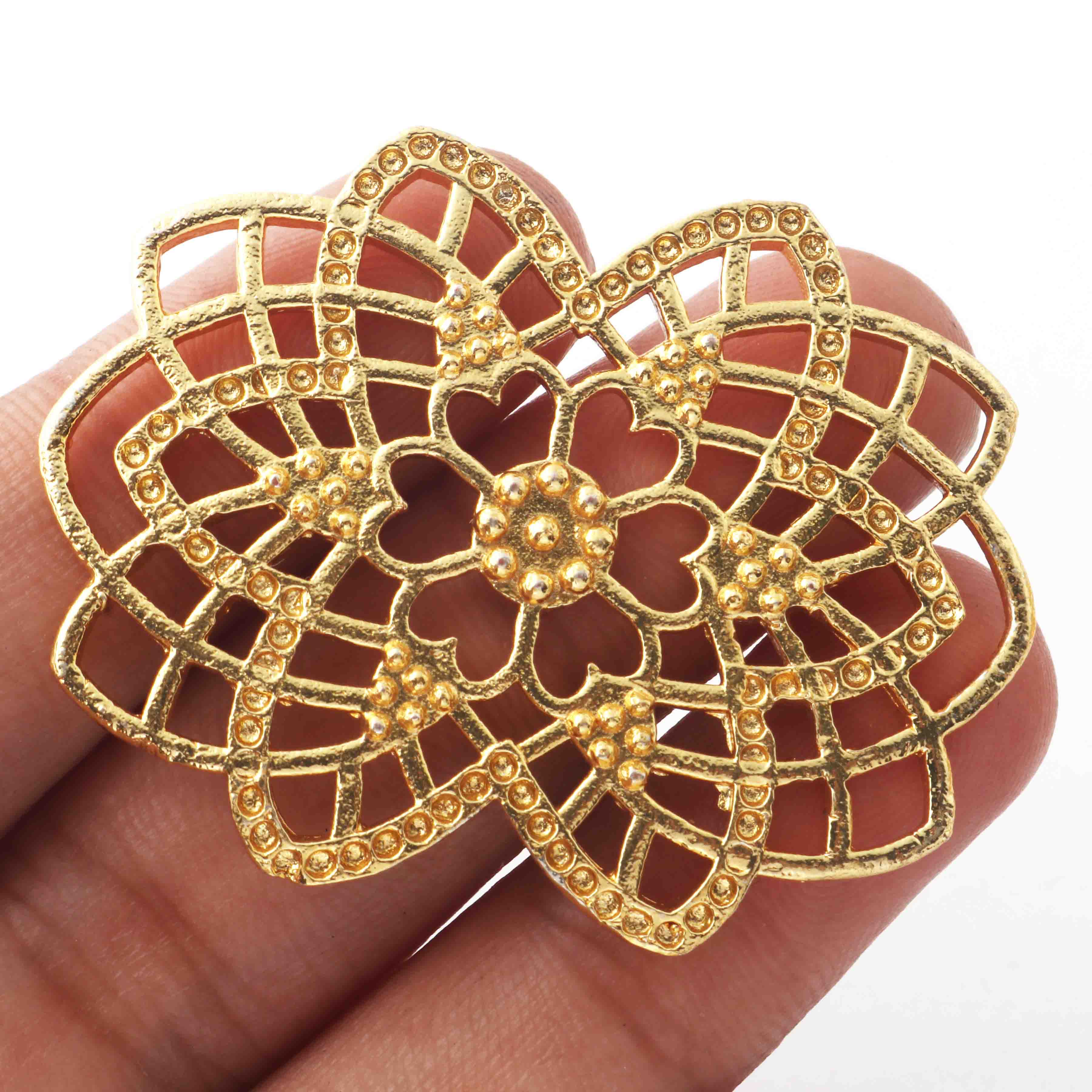 1 Pcs 24k Gold Plated Flower Copper Charm, Designer Flower Charm, Jewelry Making Tools, 46mmx35mm gpc1108