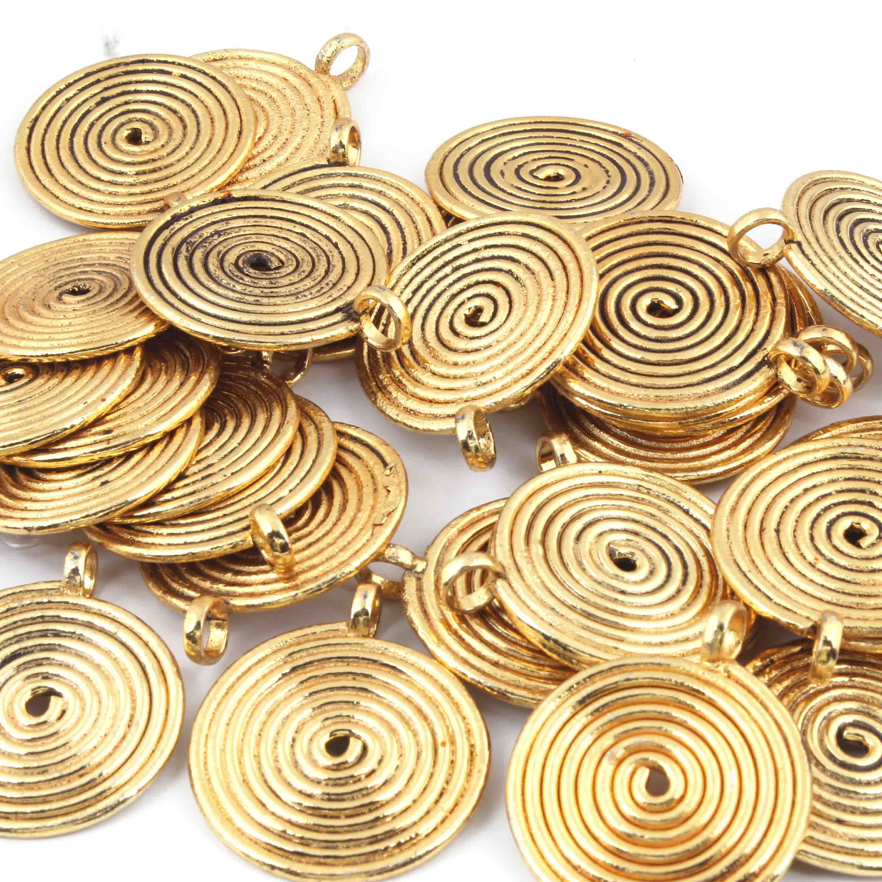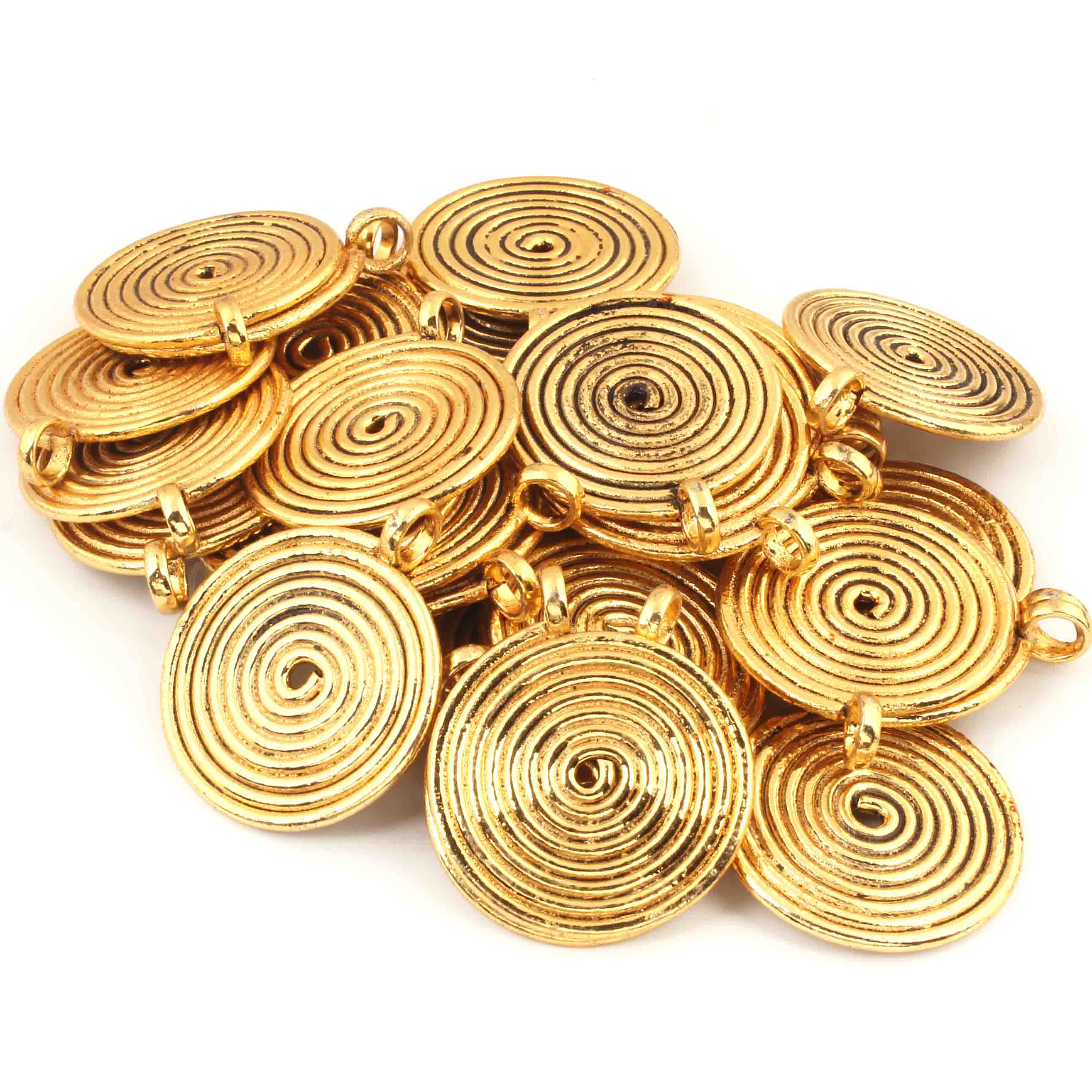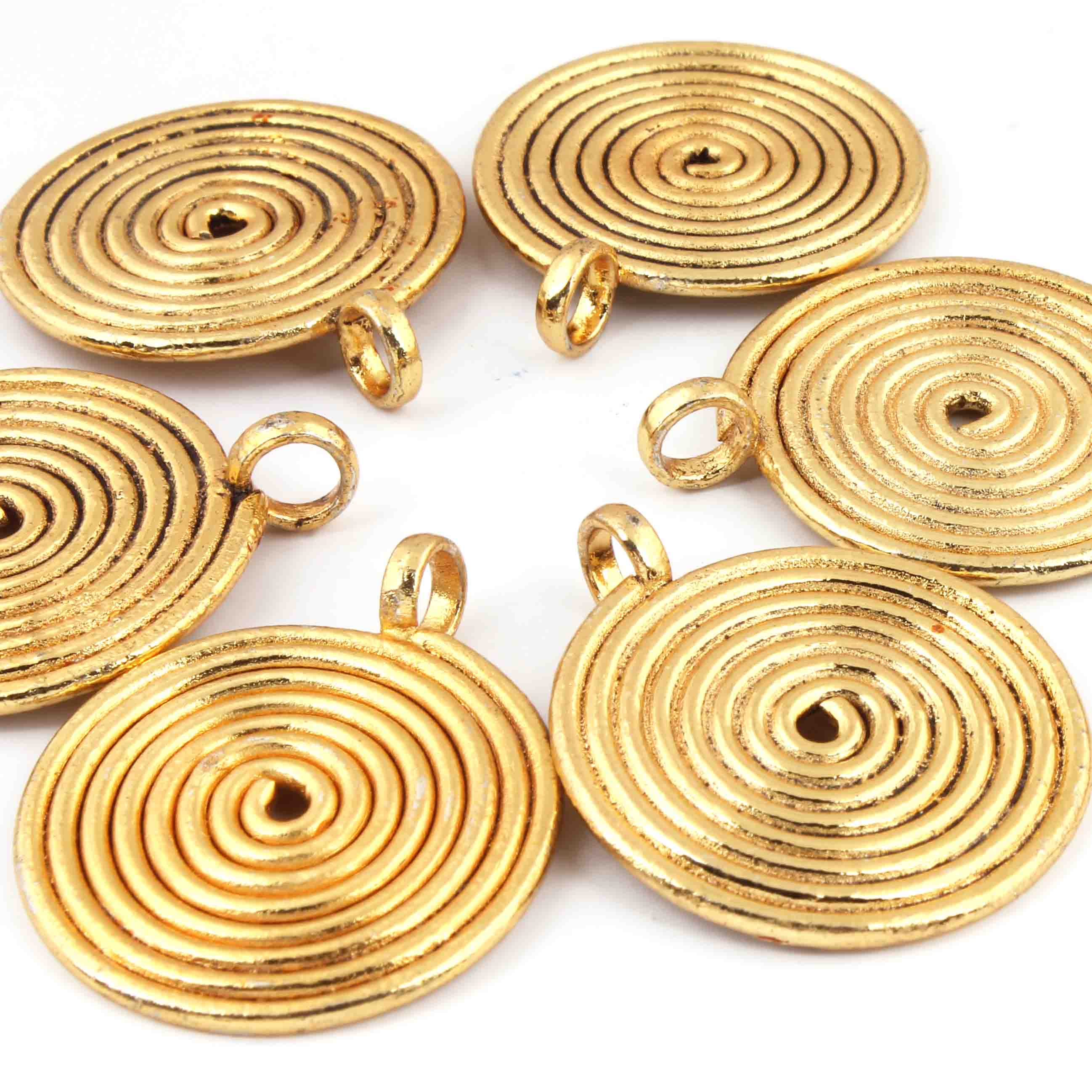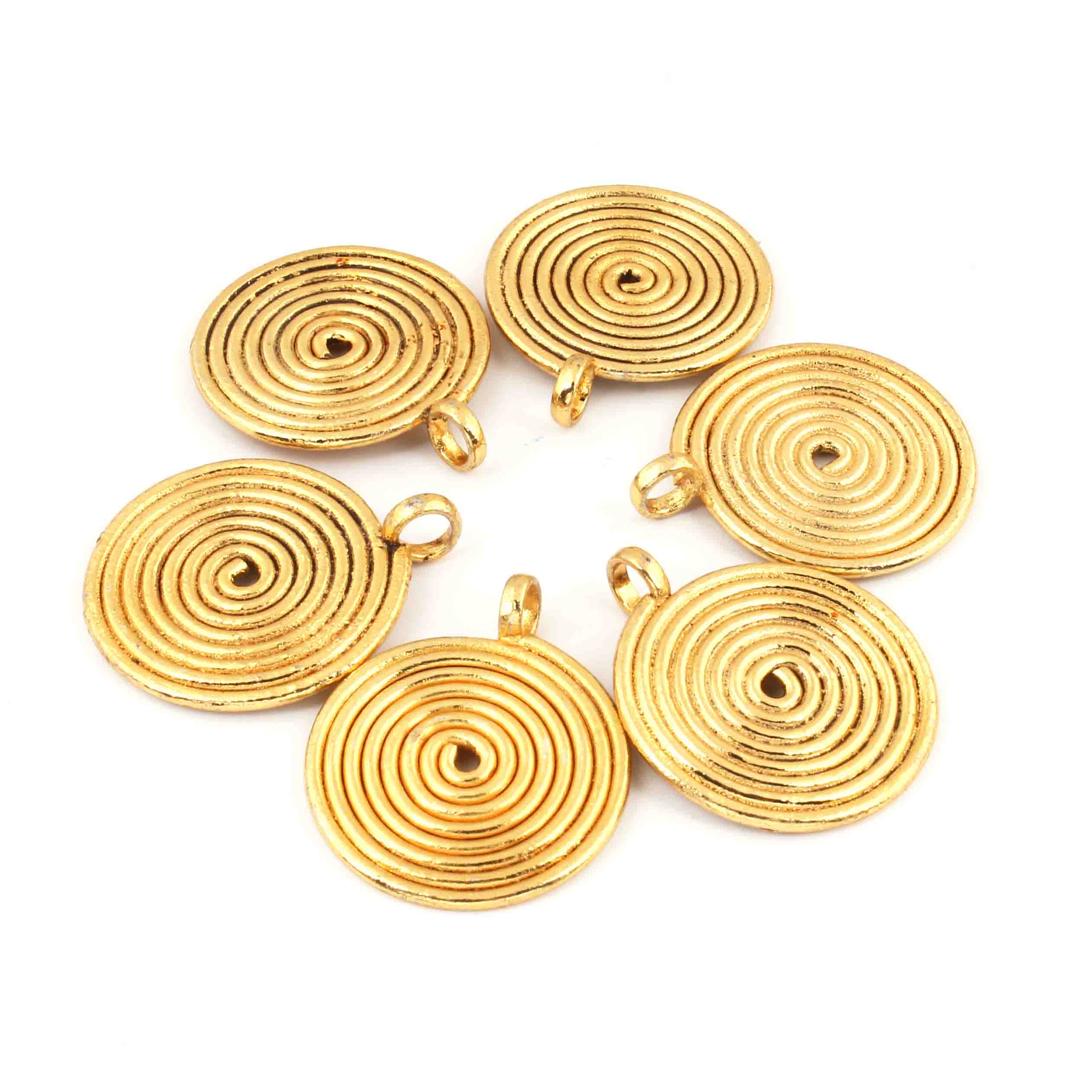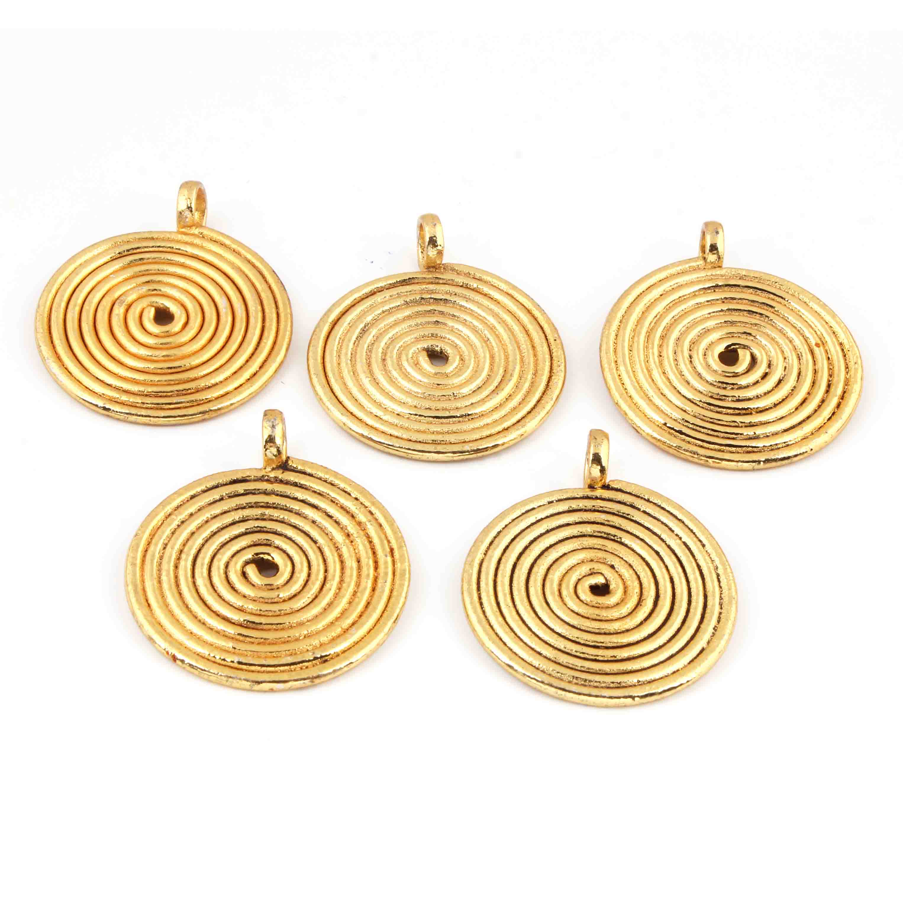 15 Pcs Gold Round Charm Pendant - 24k Gold Plated - Copper Gold Round Pendant 39mmx32mm - GPC1374