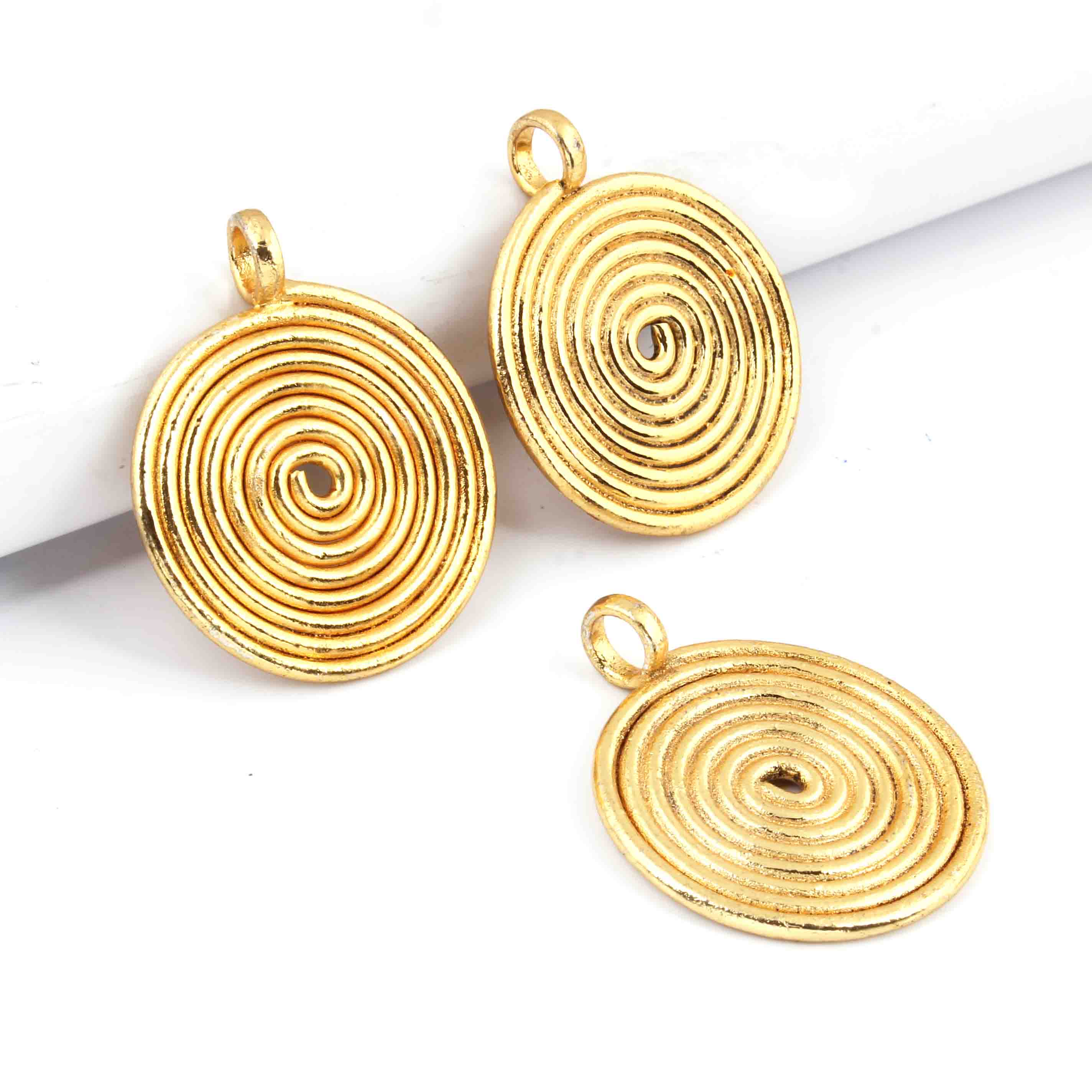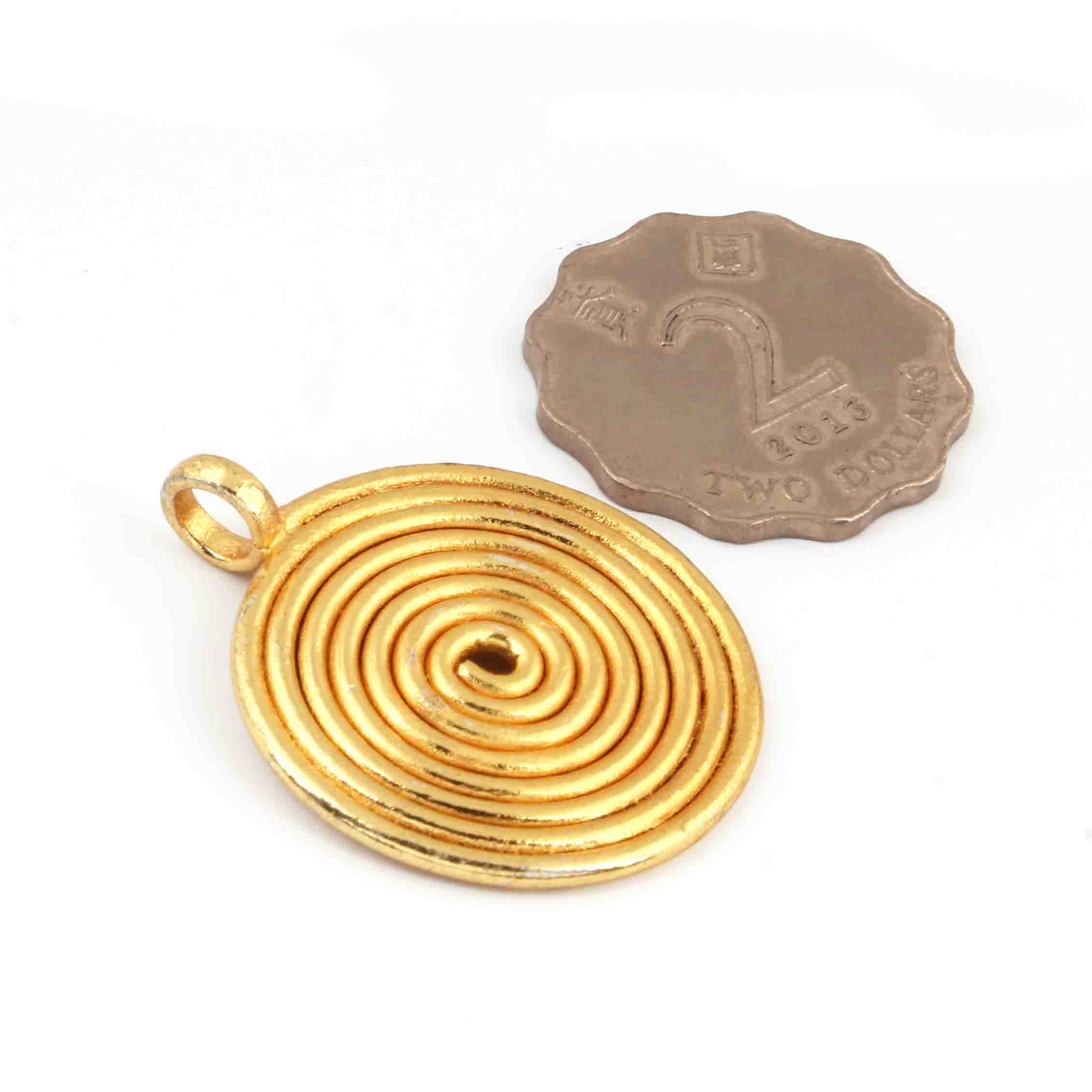 15  Pcs Gold Round Charm Pendant - 24k Gold Plated - Copper Gold Round Pendant 39mmx32mm - GPC1374