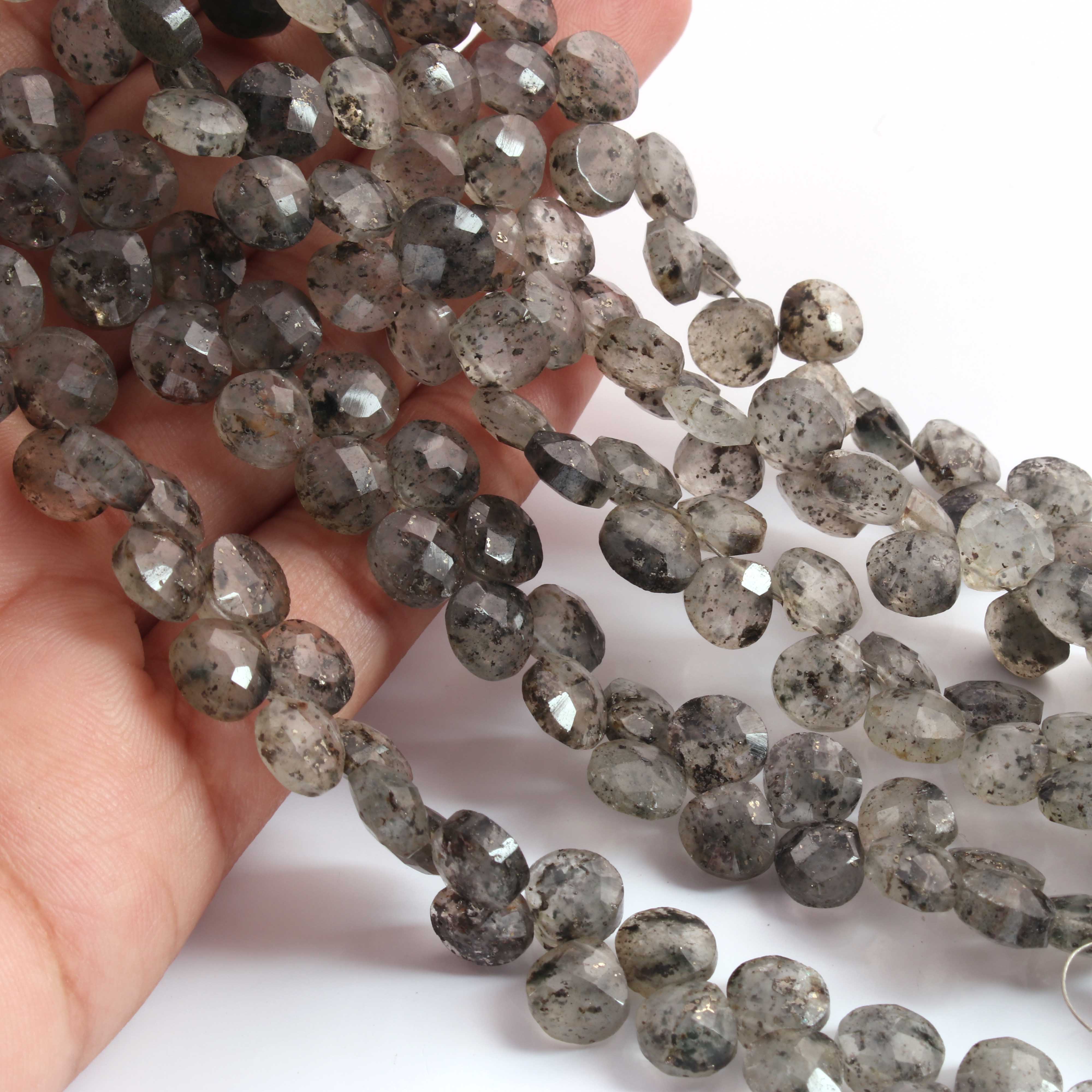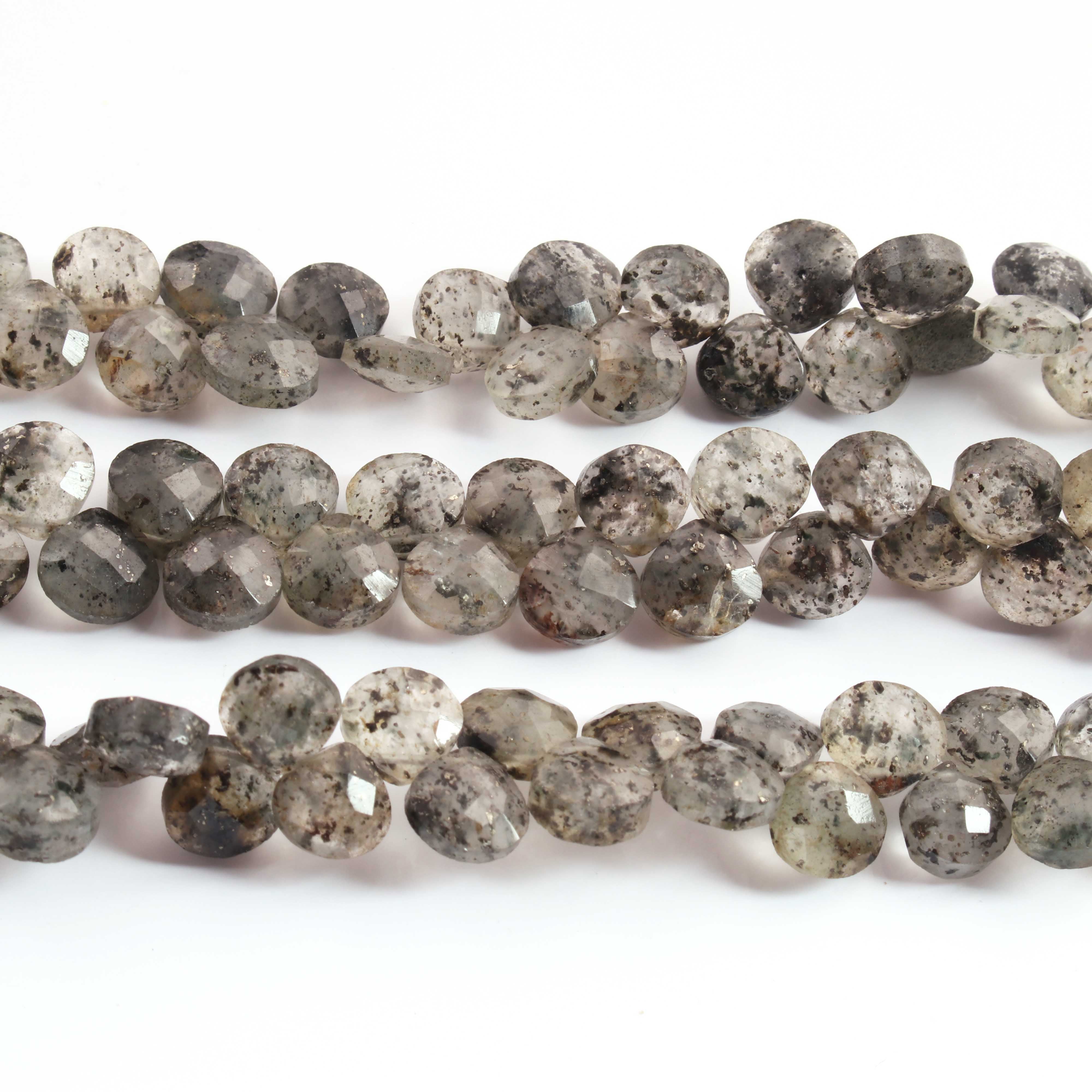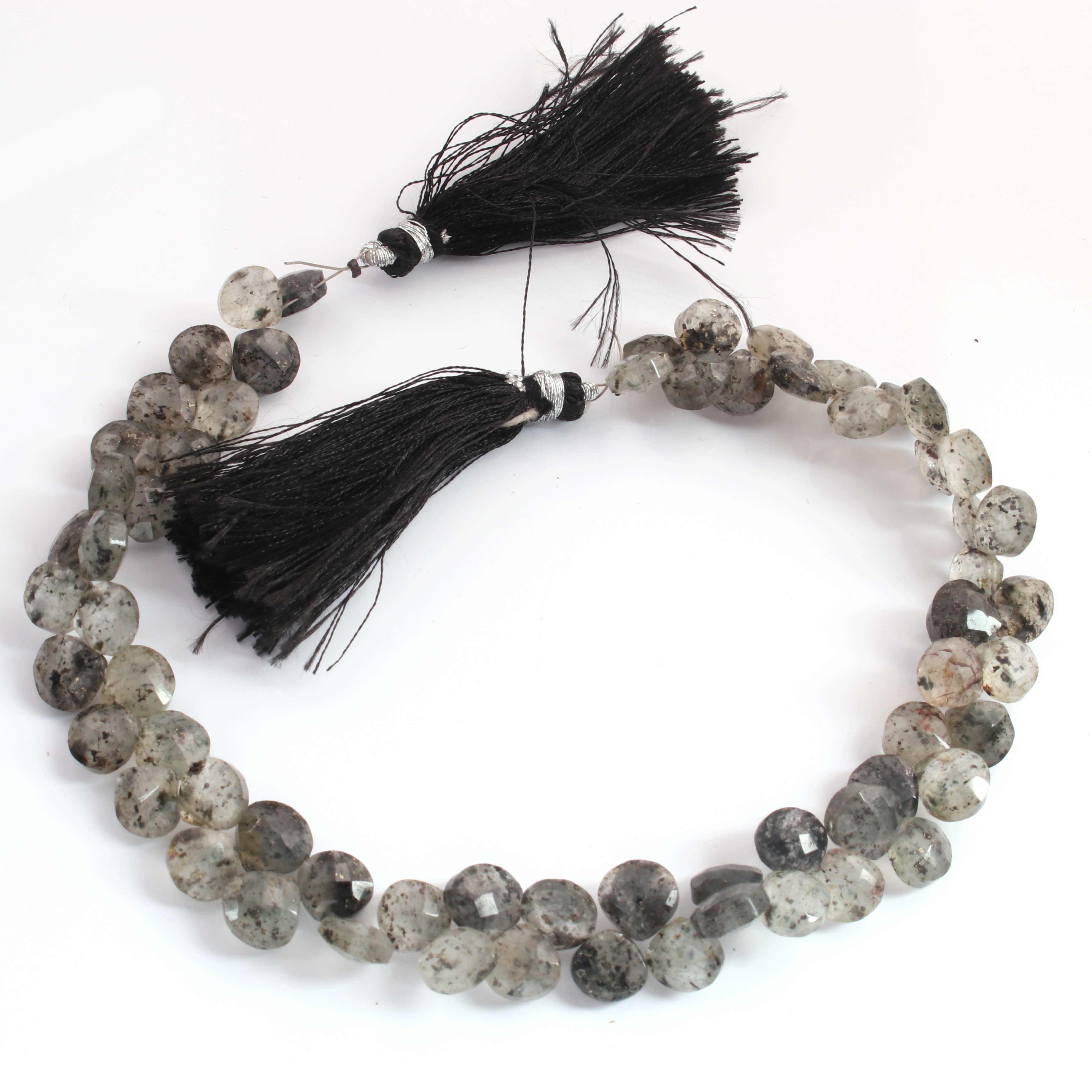 1 Strand Black Rutile Faceted Briolettes -Heart Shape Briolettes 8mm -10 Inches BR1687