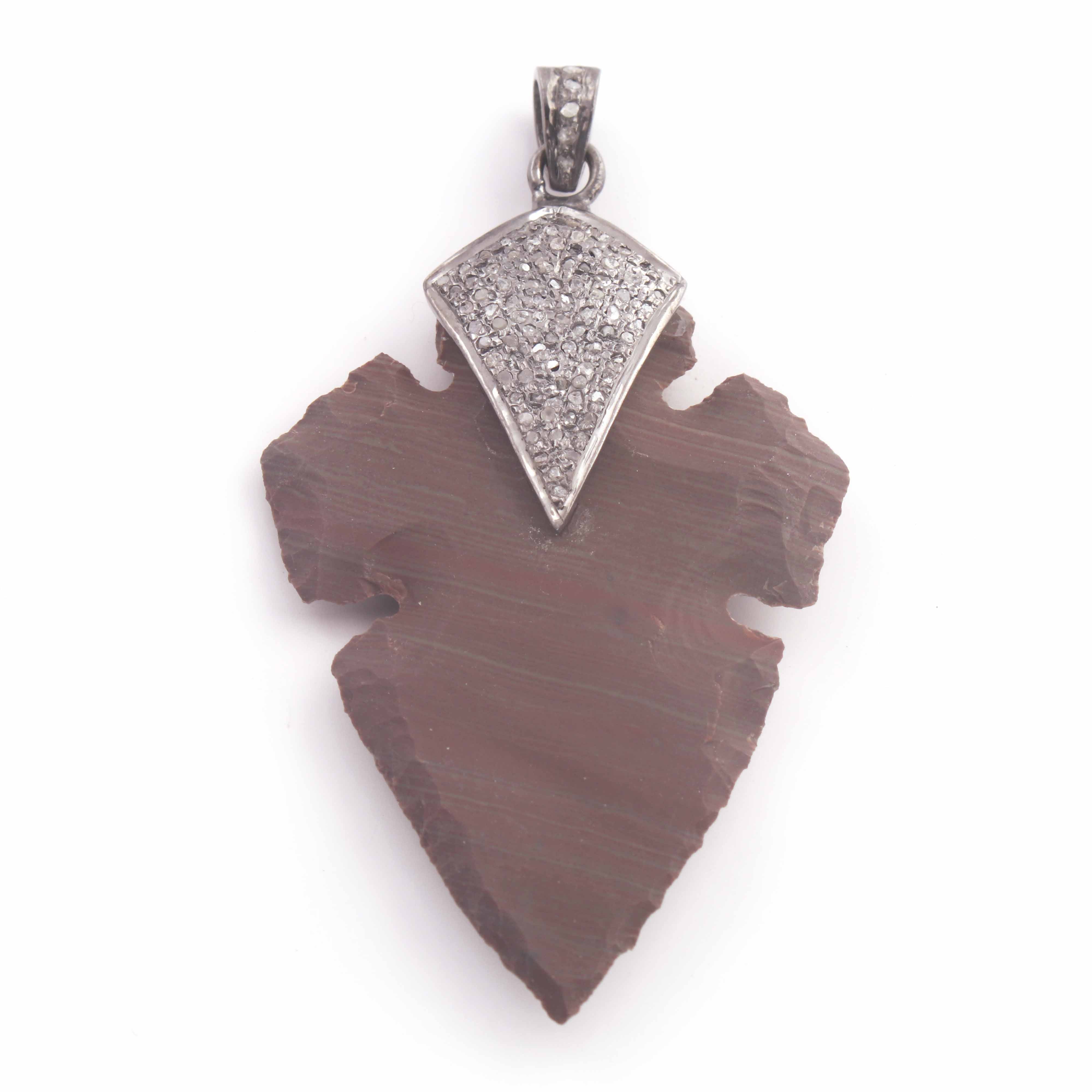 1 Pc Natural Pave Diamond Jasper Arrowhead Charm Pendant -- 925 Sterling Silver 50mmX39mm PDC1470