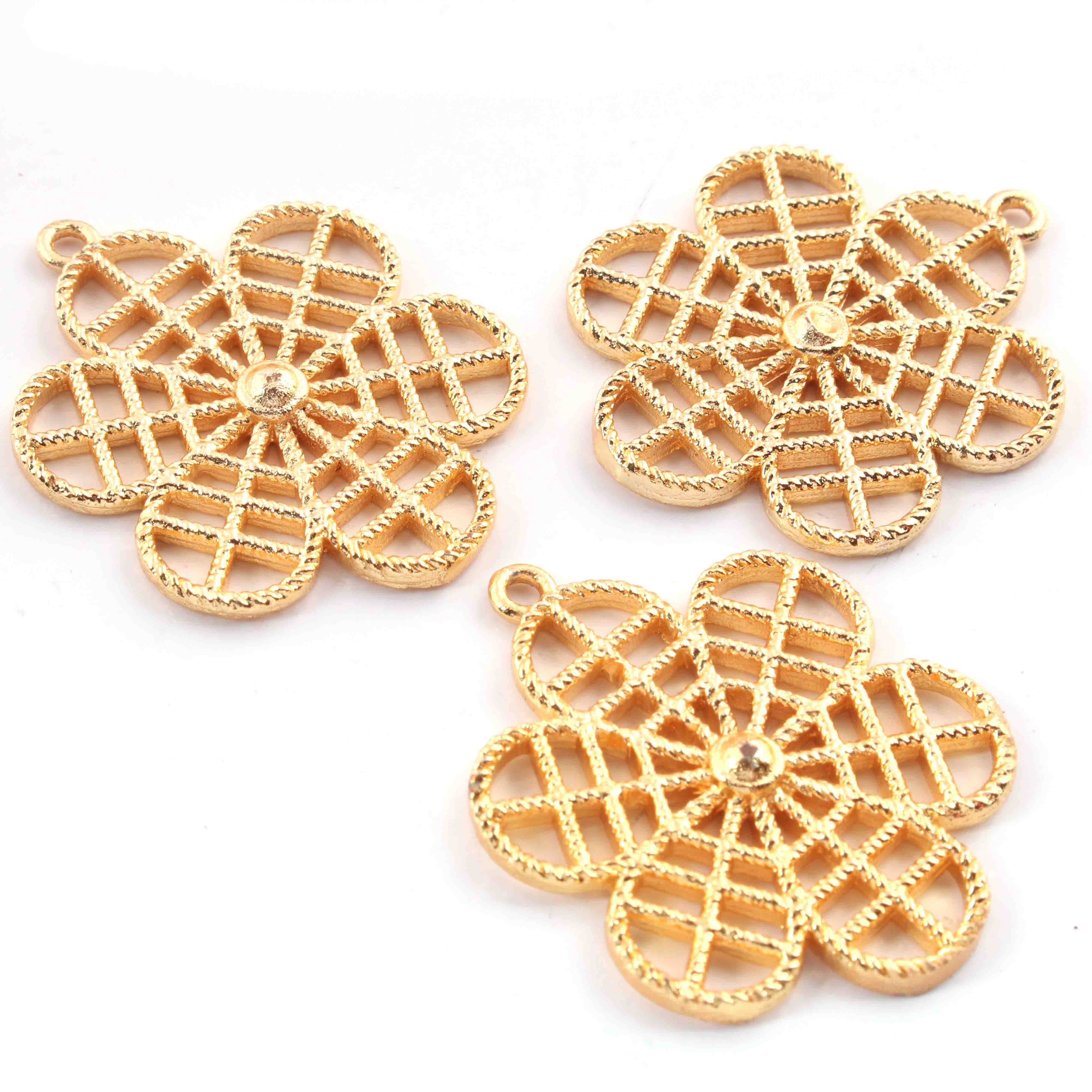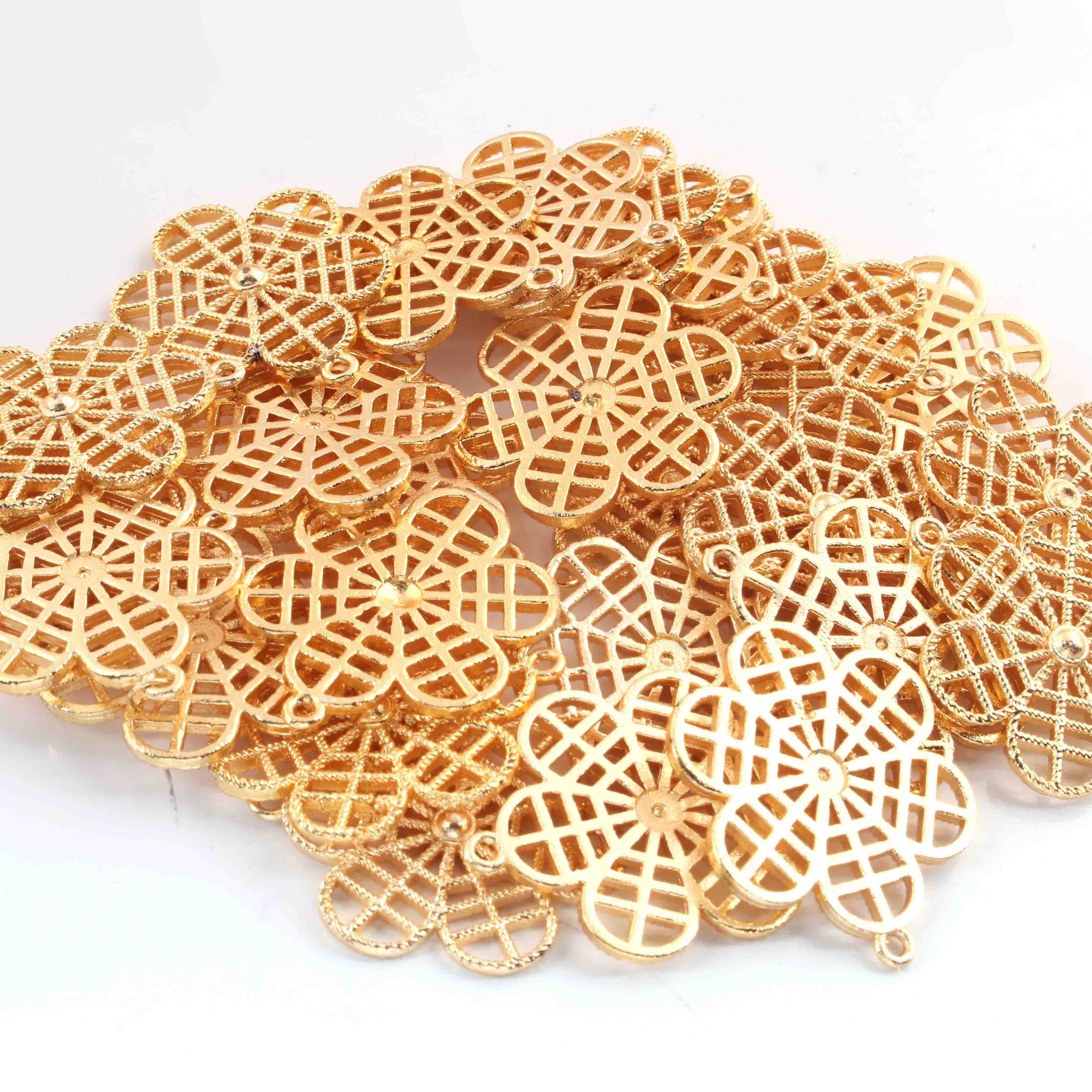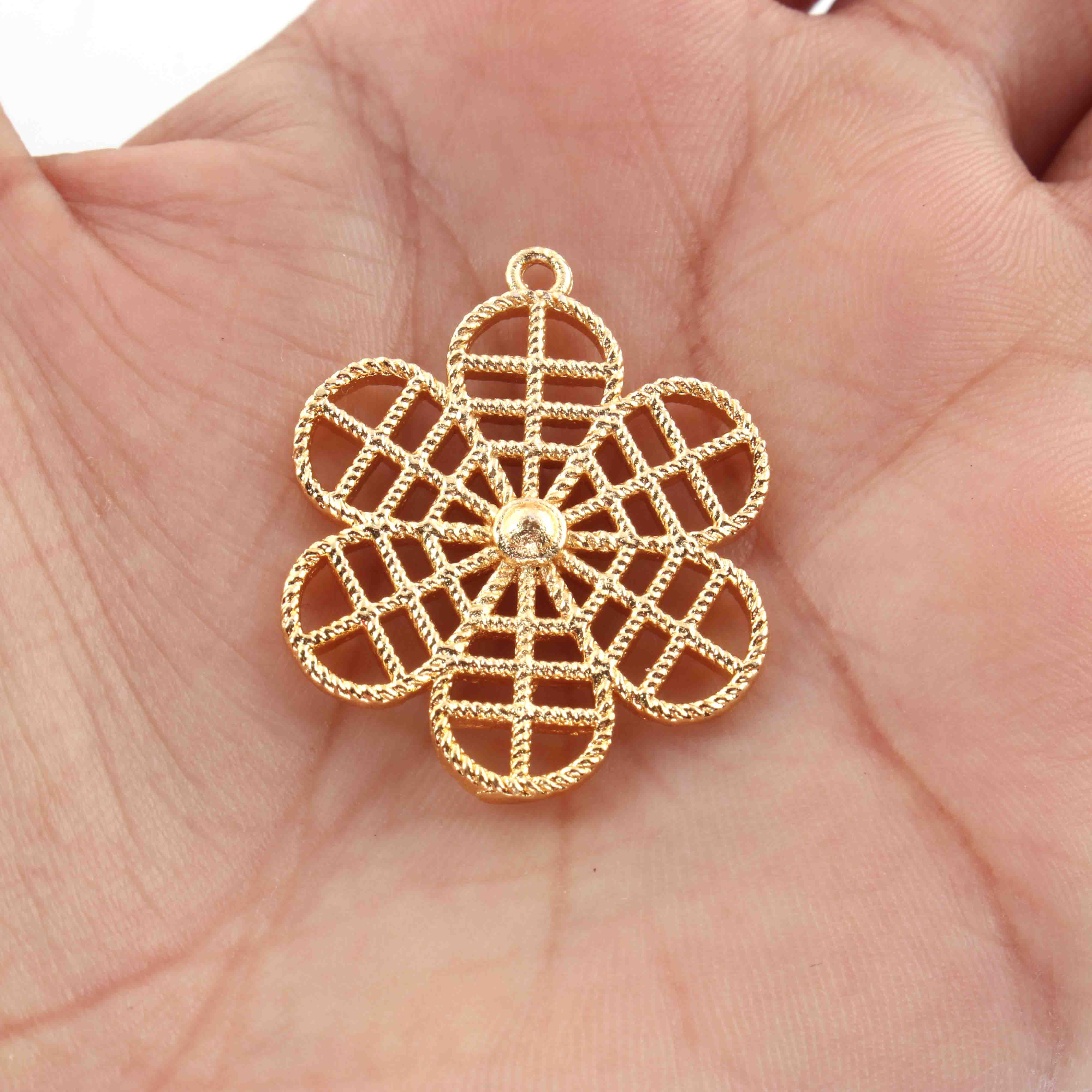 10 Pcs Designer 24k Gold Plated Copper Flower Pendant,Copper Designer Pendant,Copper Beads,Jewelry Making 32mmx28mm BulkLot GPC137