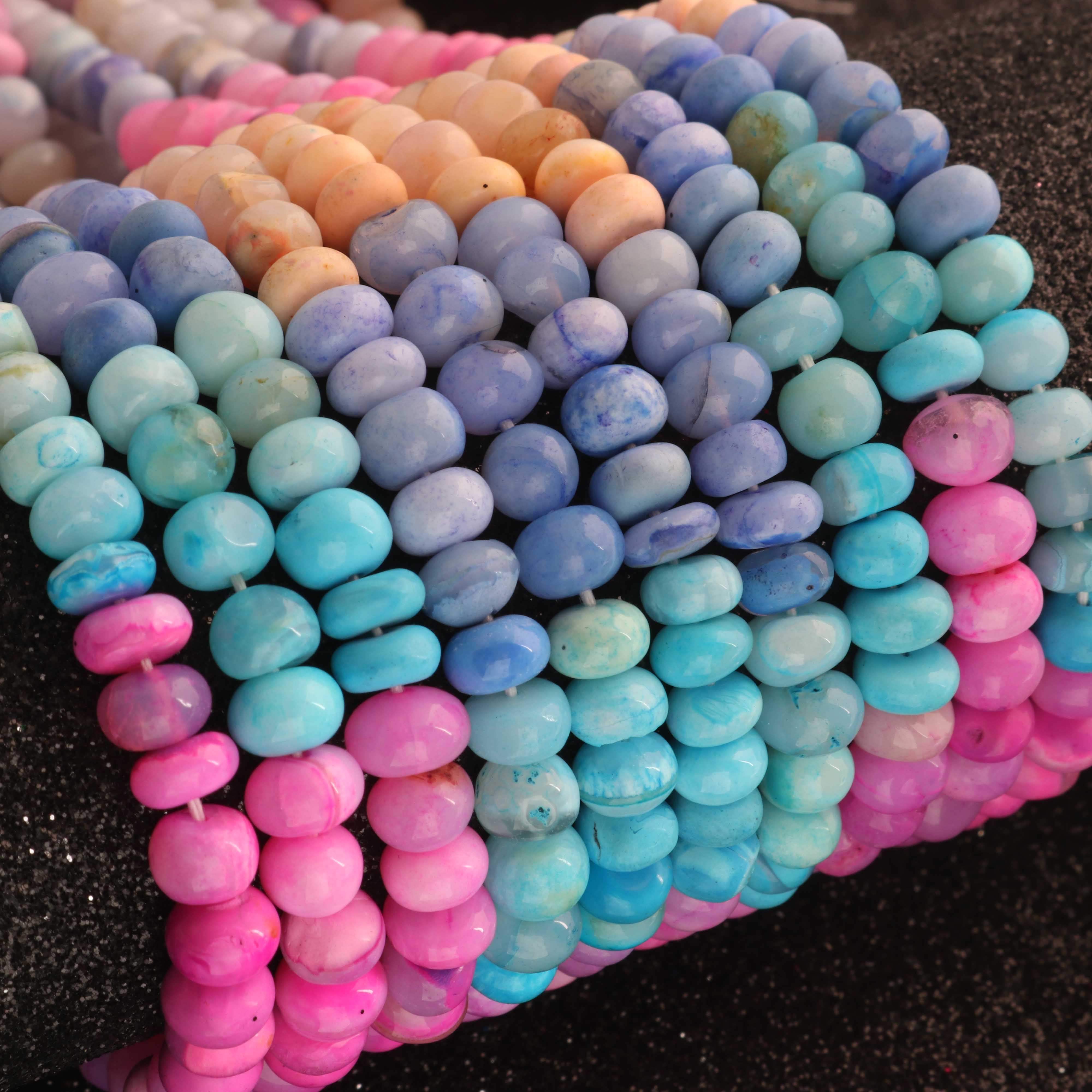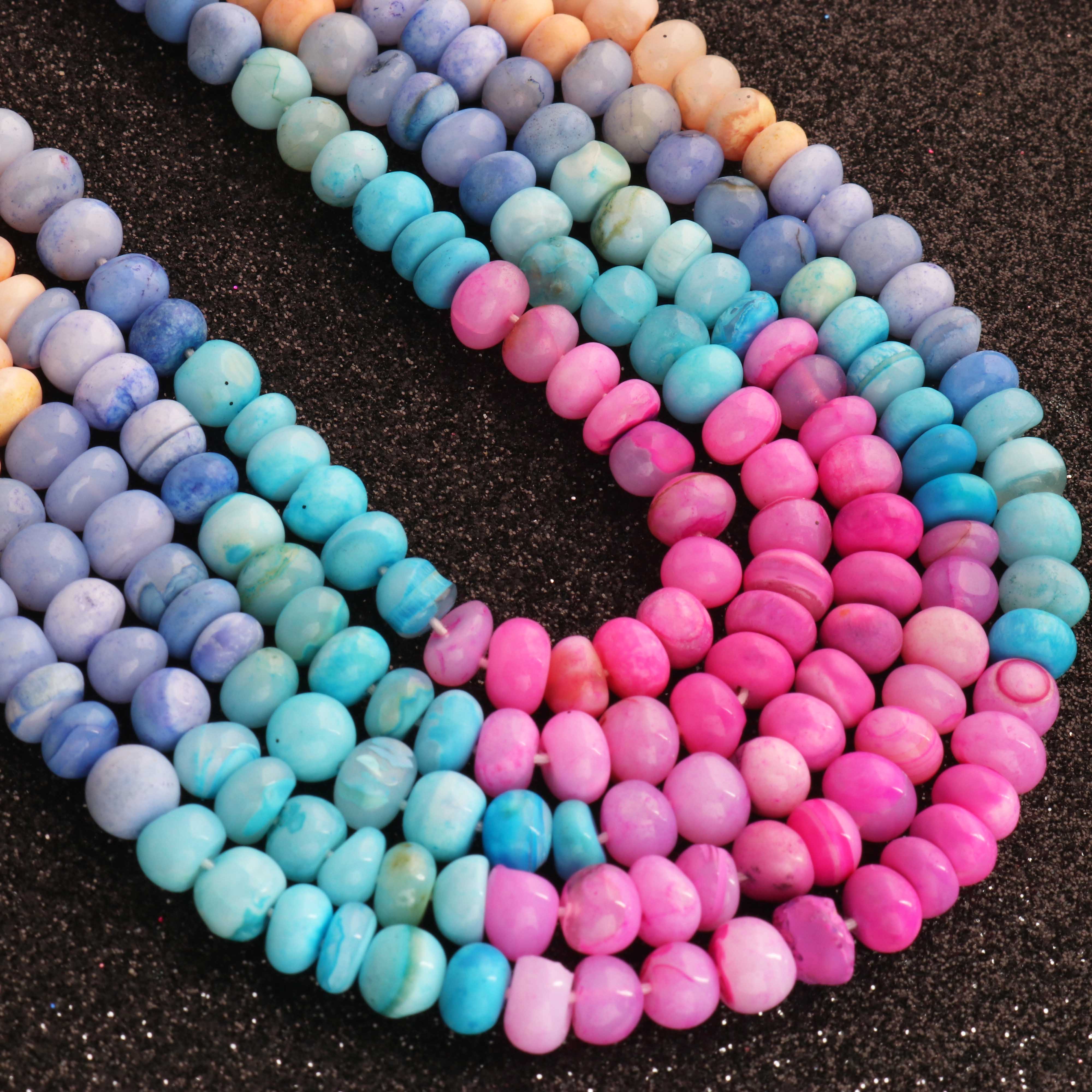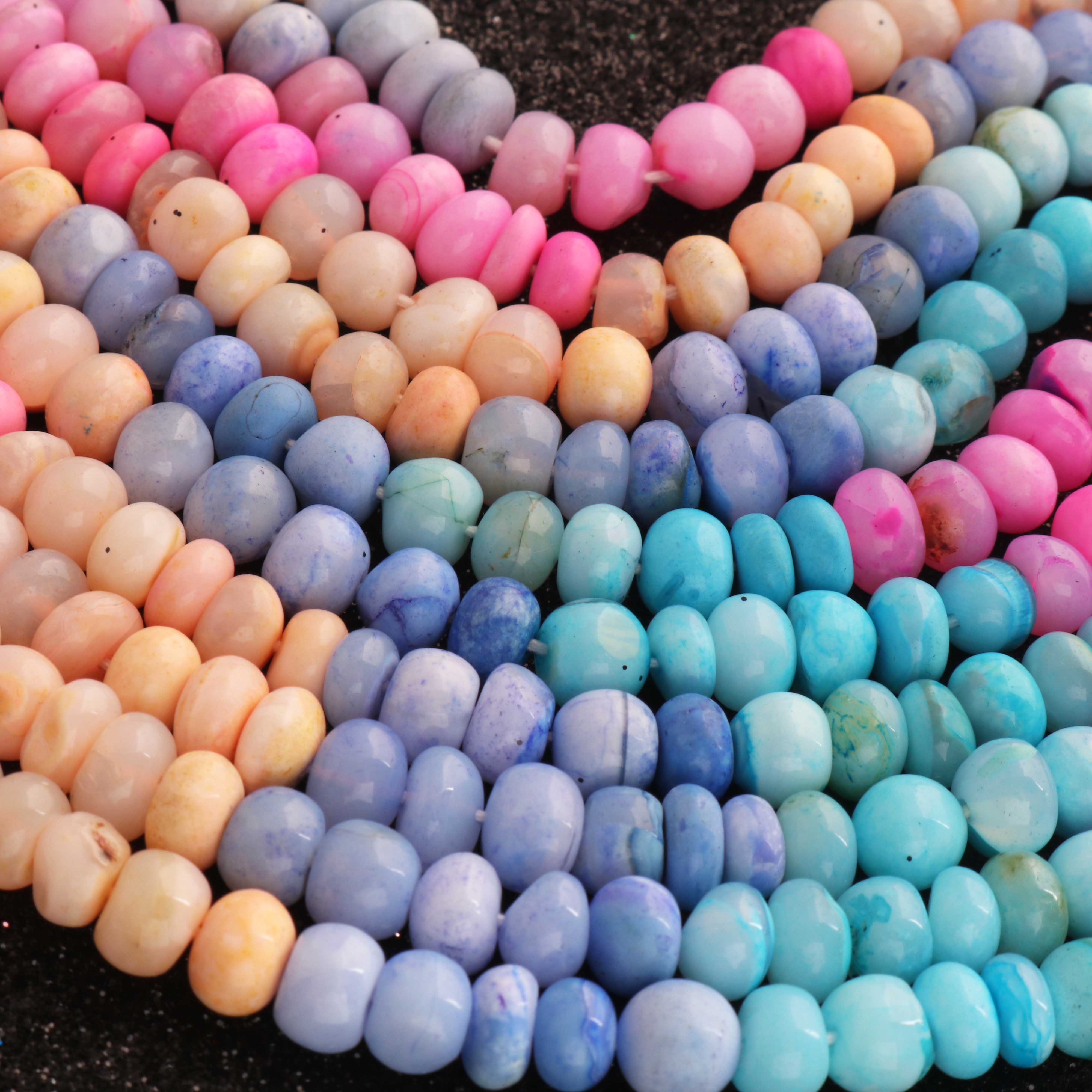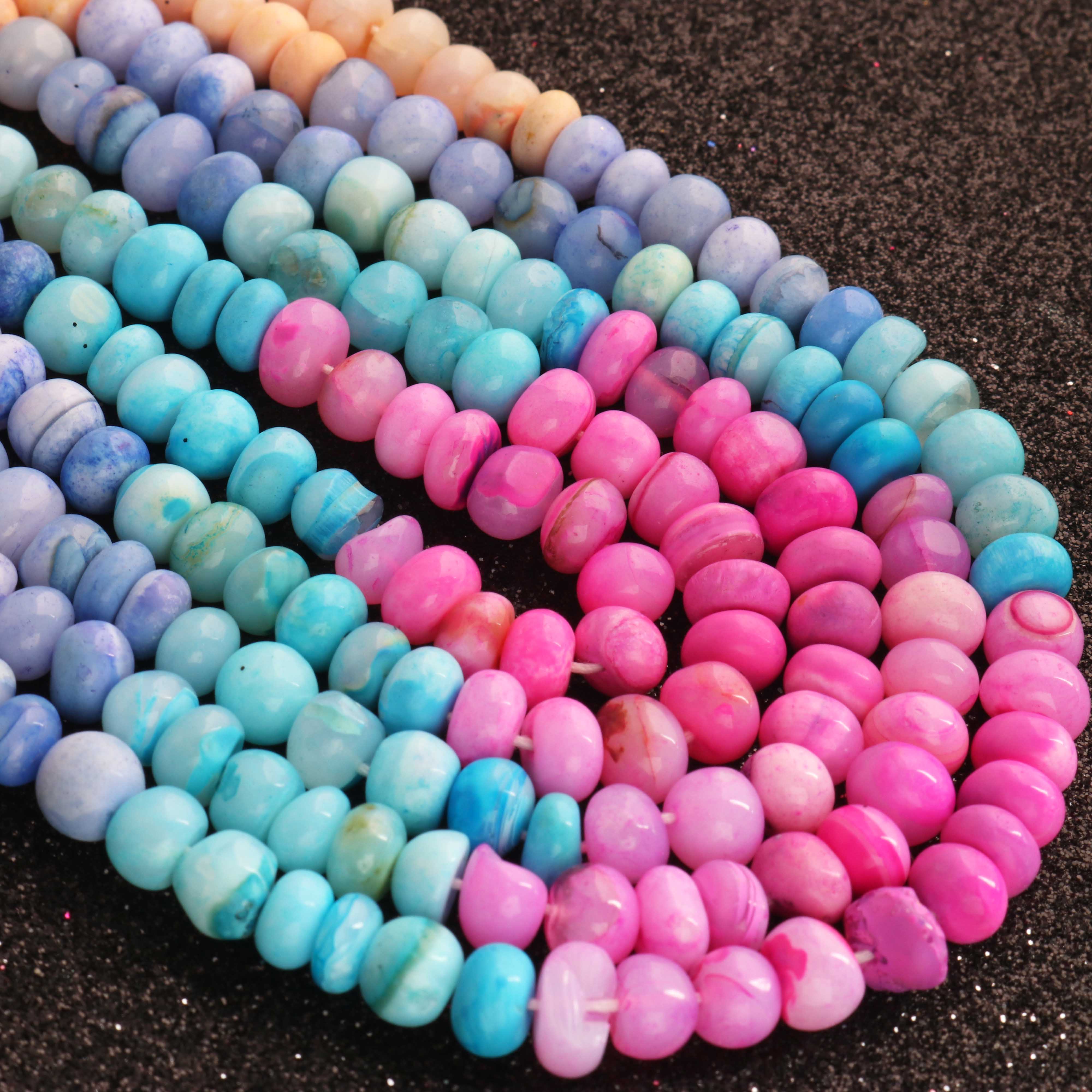 1 Long Strand Beautiful Multi Opal smooth rondelles beads-Semi Precious Gem Stone Multi Plain Opal Beads, - 6mm -7mm -16 Inches BR03742
