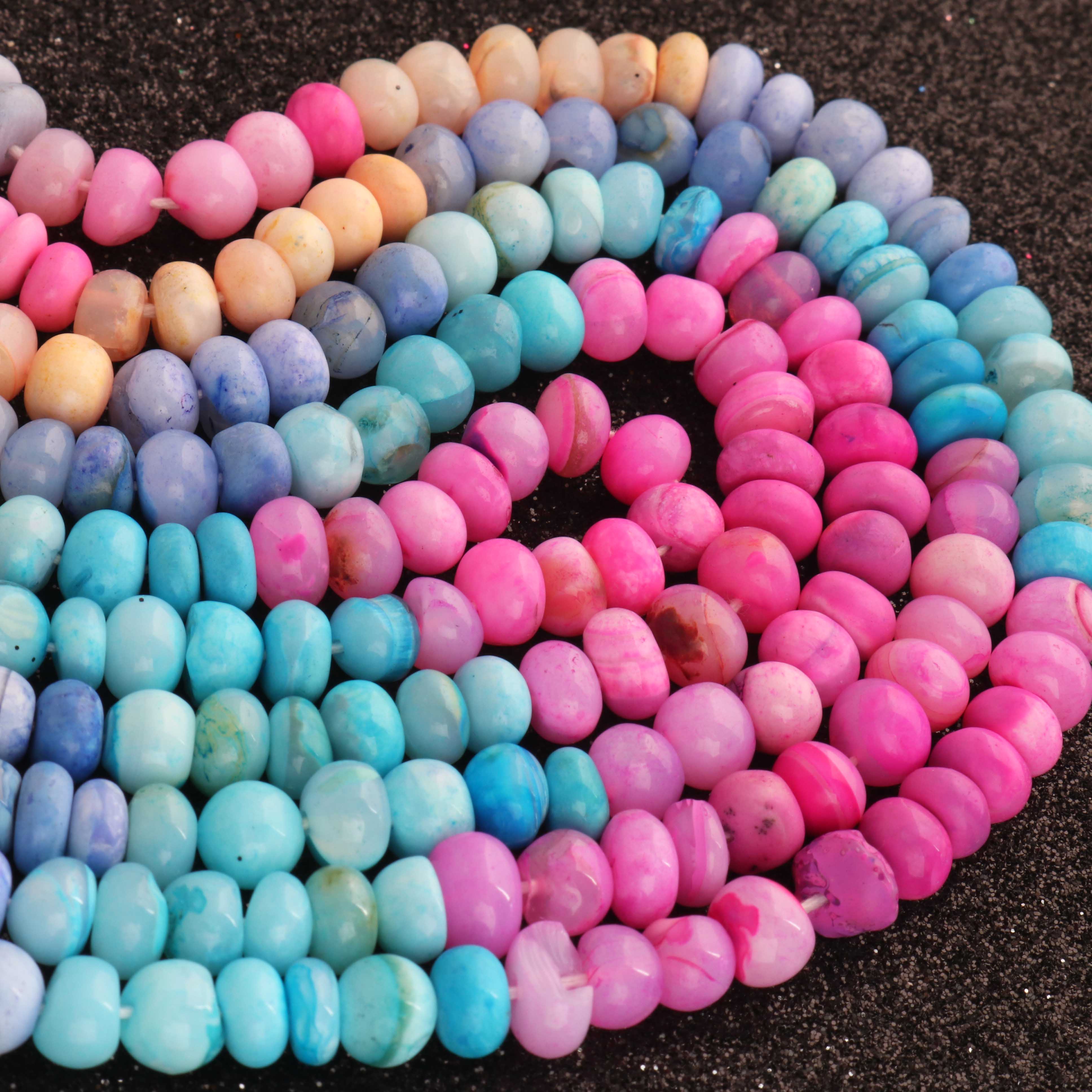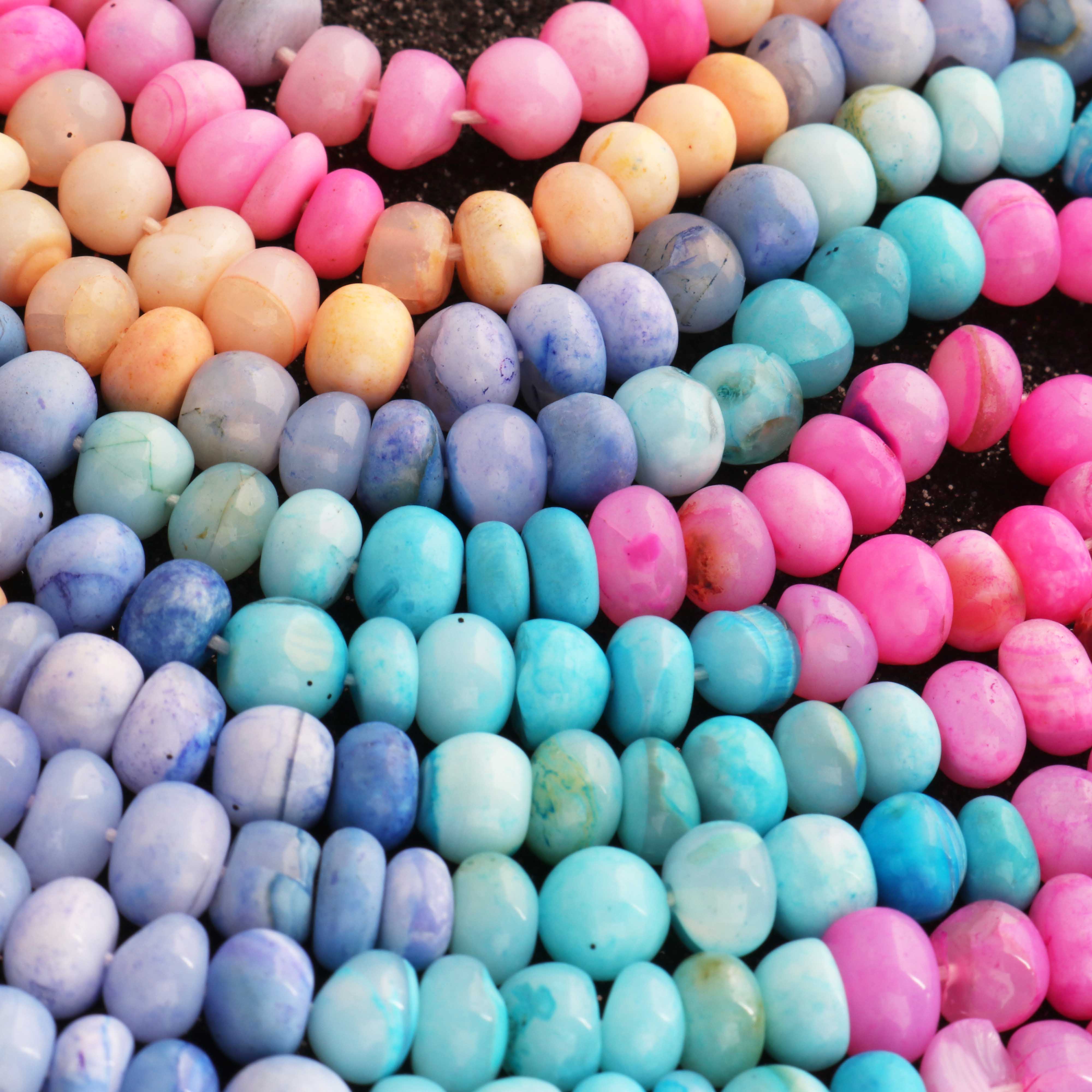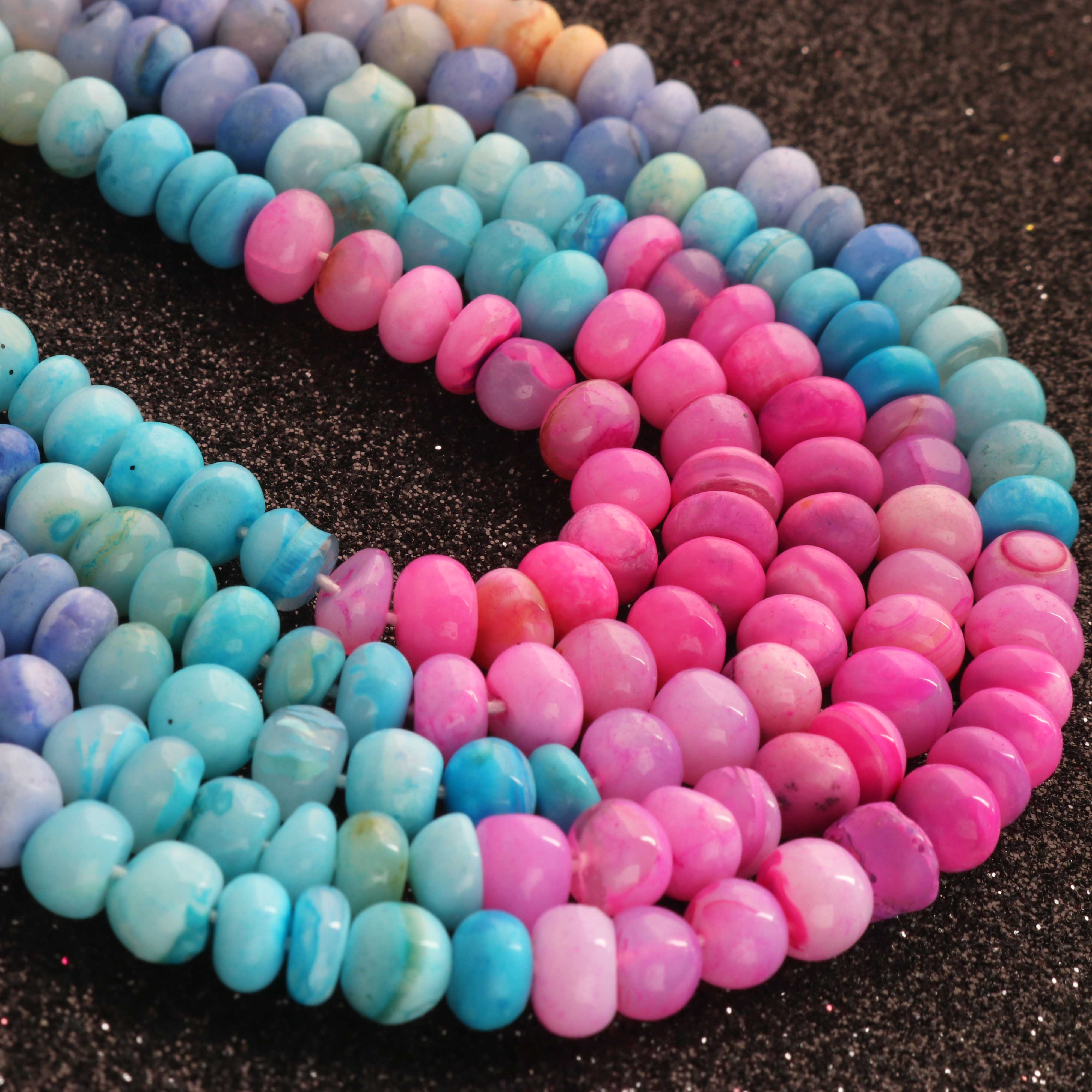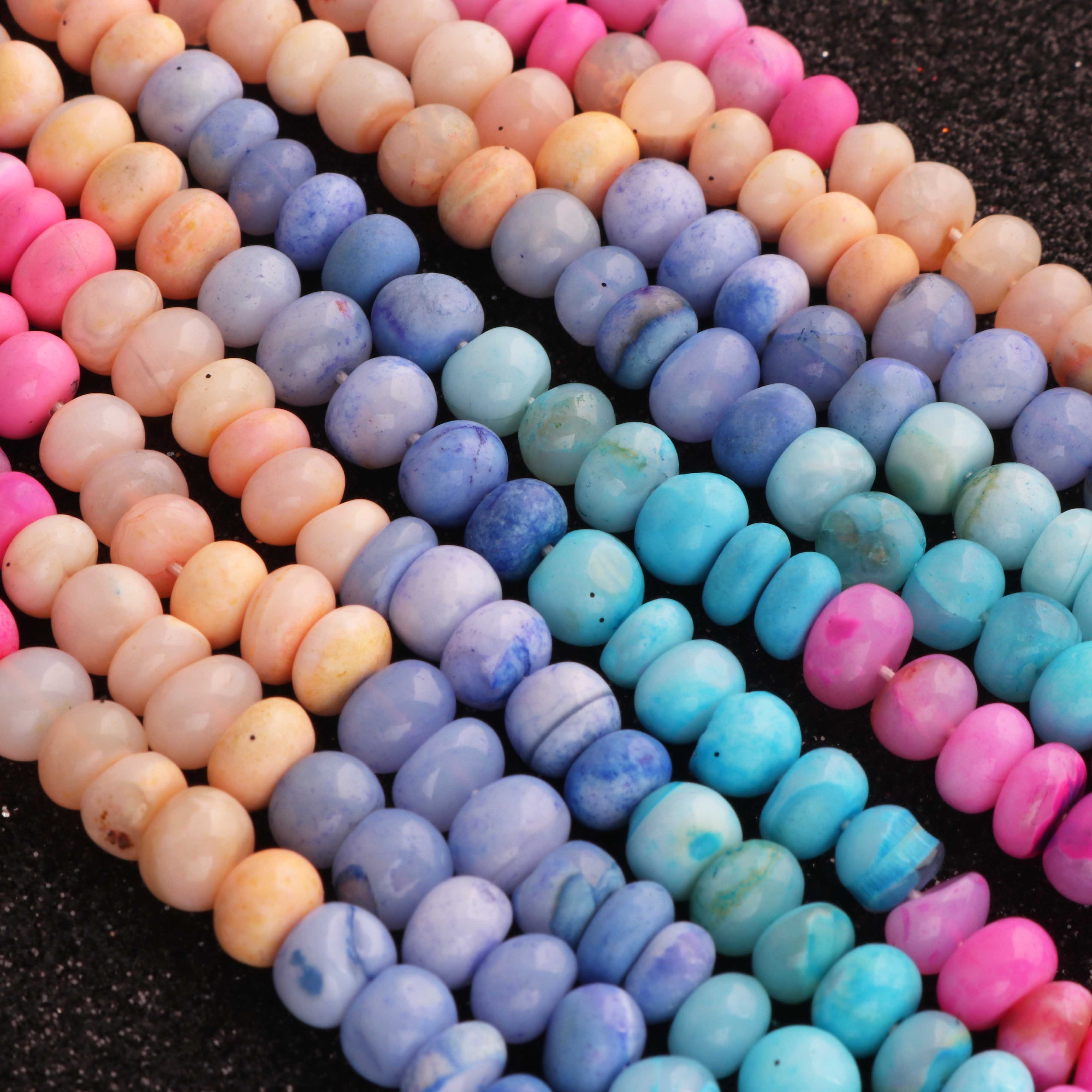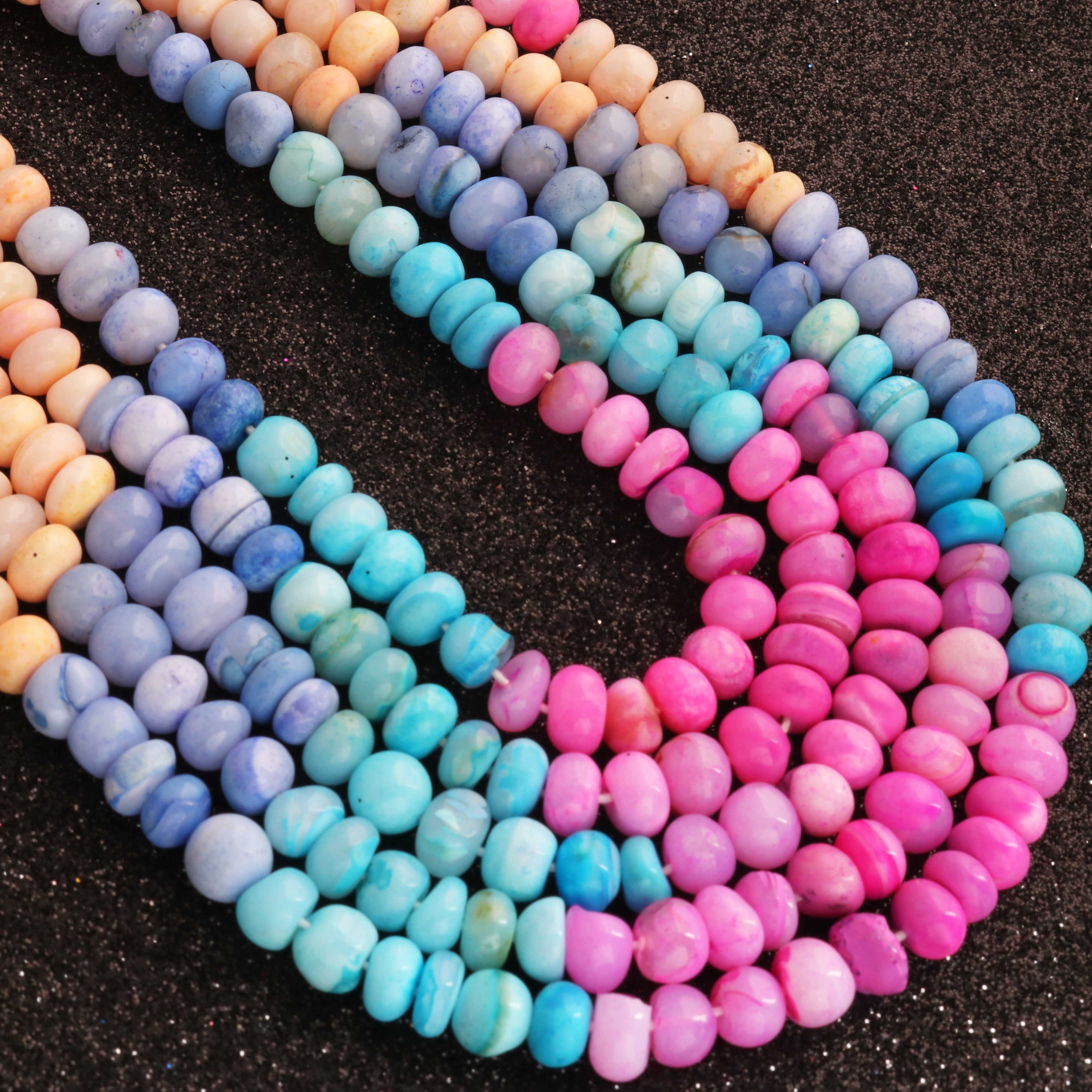 1 Long Strand Beautiful Multi Opal smooth rondelles beads-Semi Precious Gem Stone Multi Plain Opal Beads, - 6mm -7mm -16 Inches BR03742