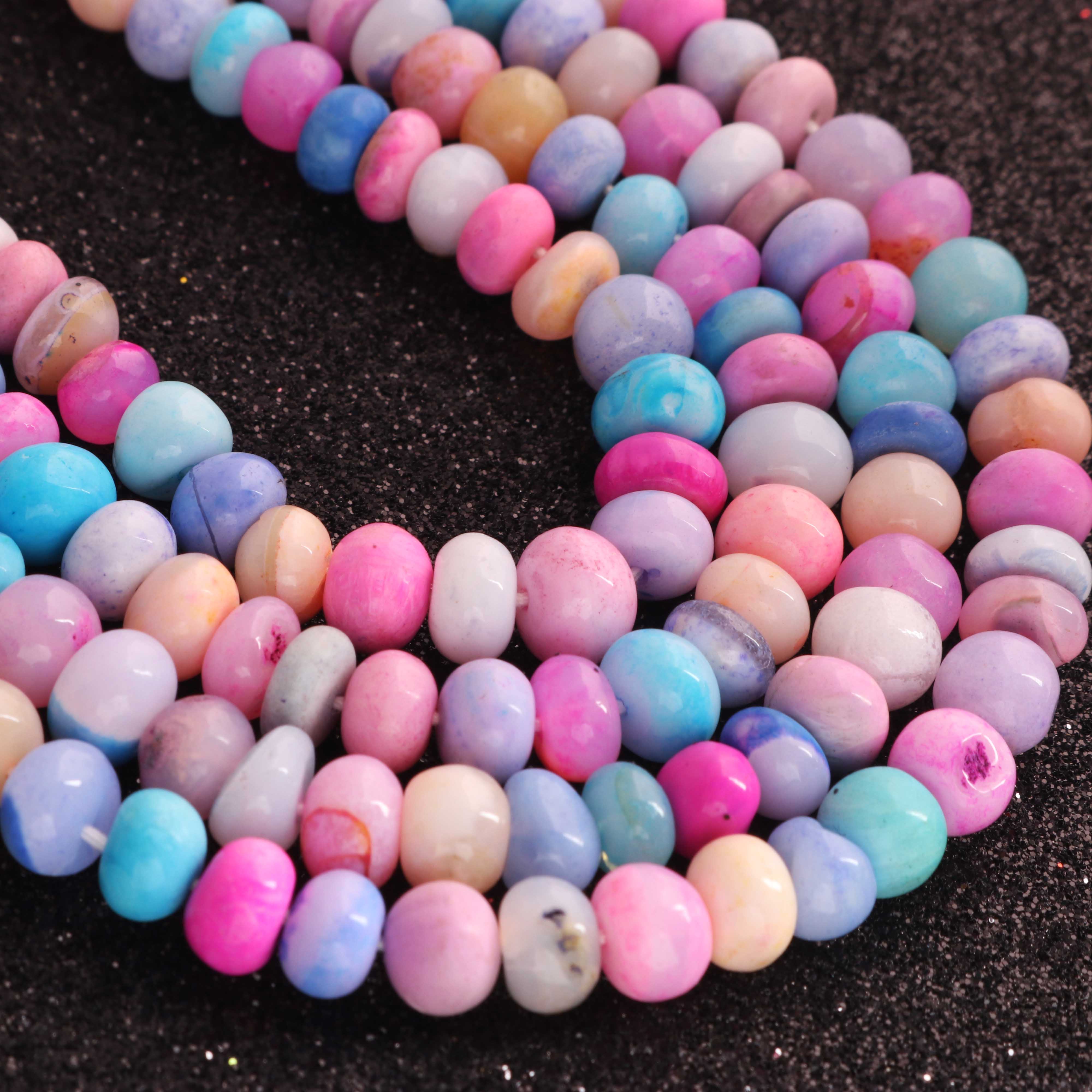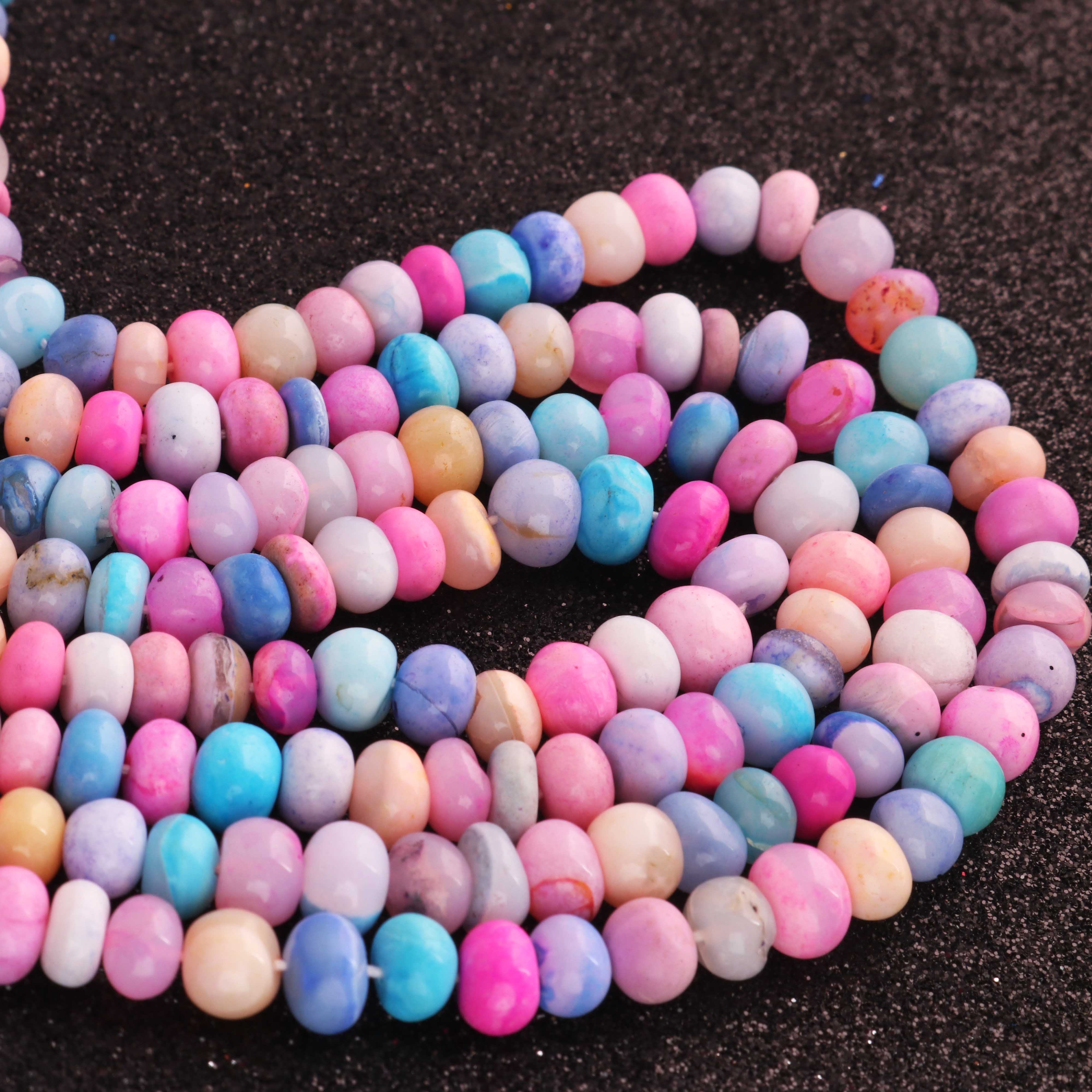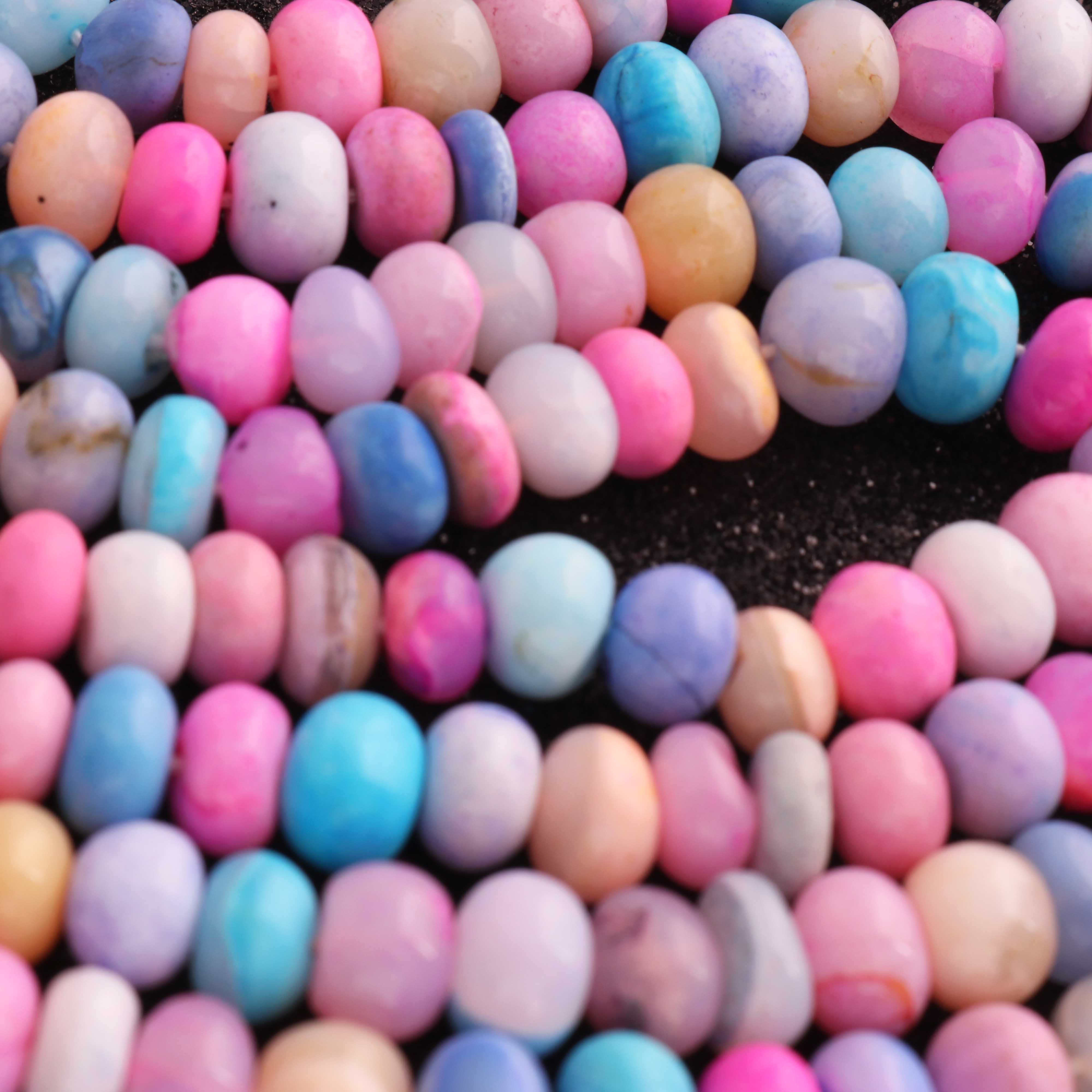 1 Long Strand Beautiful Multi Opal smooth rondelles beads-Semi Precious Gem Stone Multi Plain Opal Beads, -7mm -16 Inches BR03754
