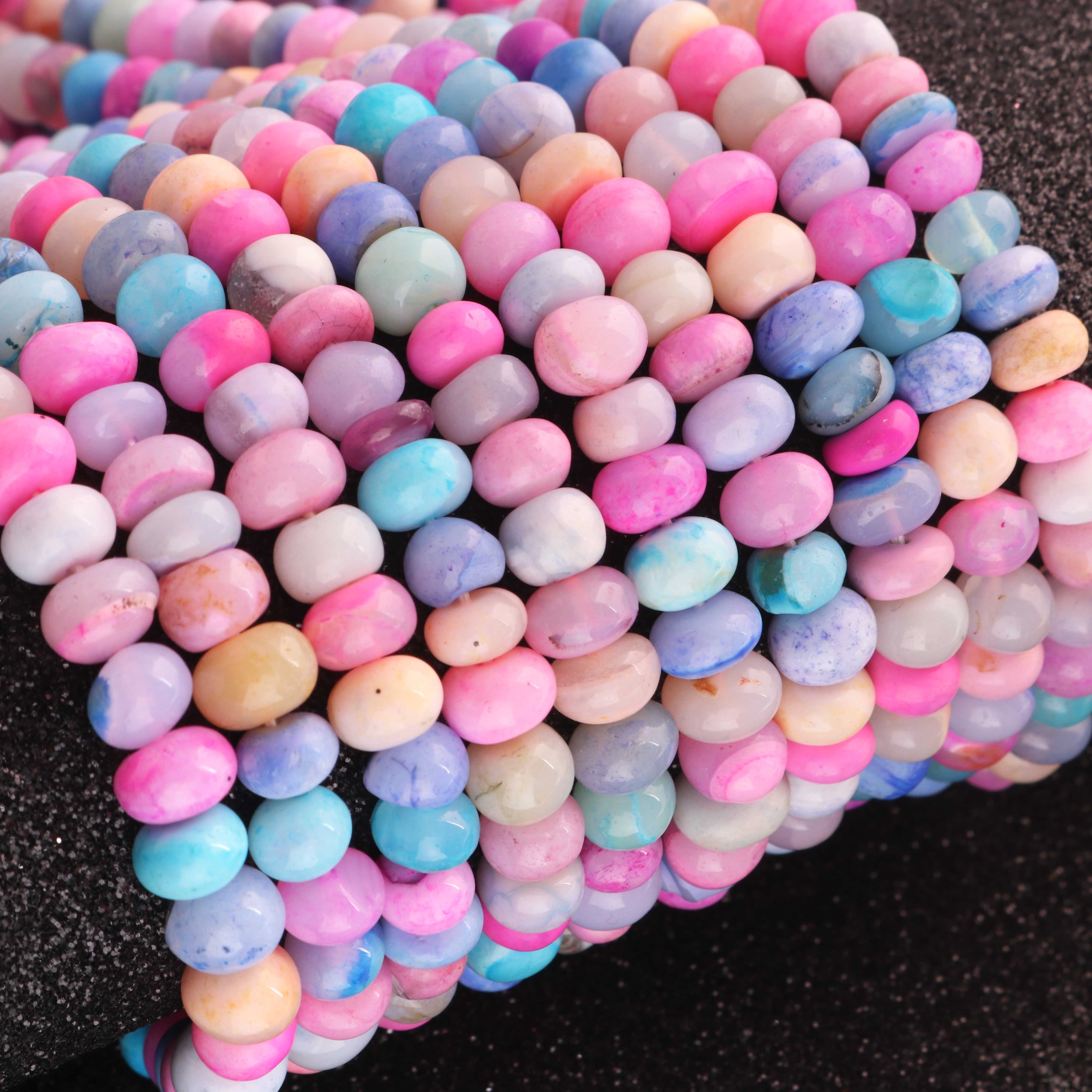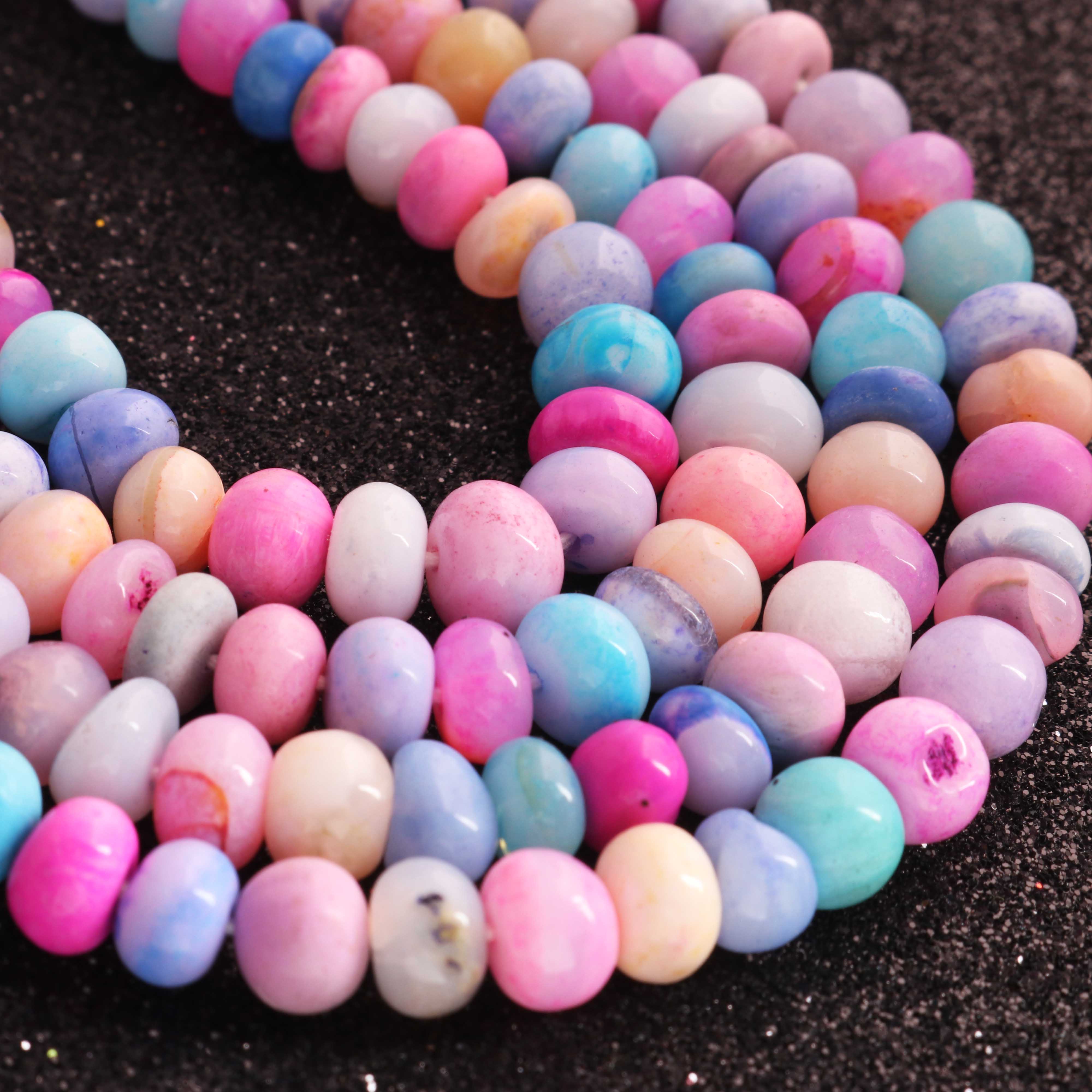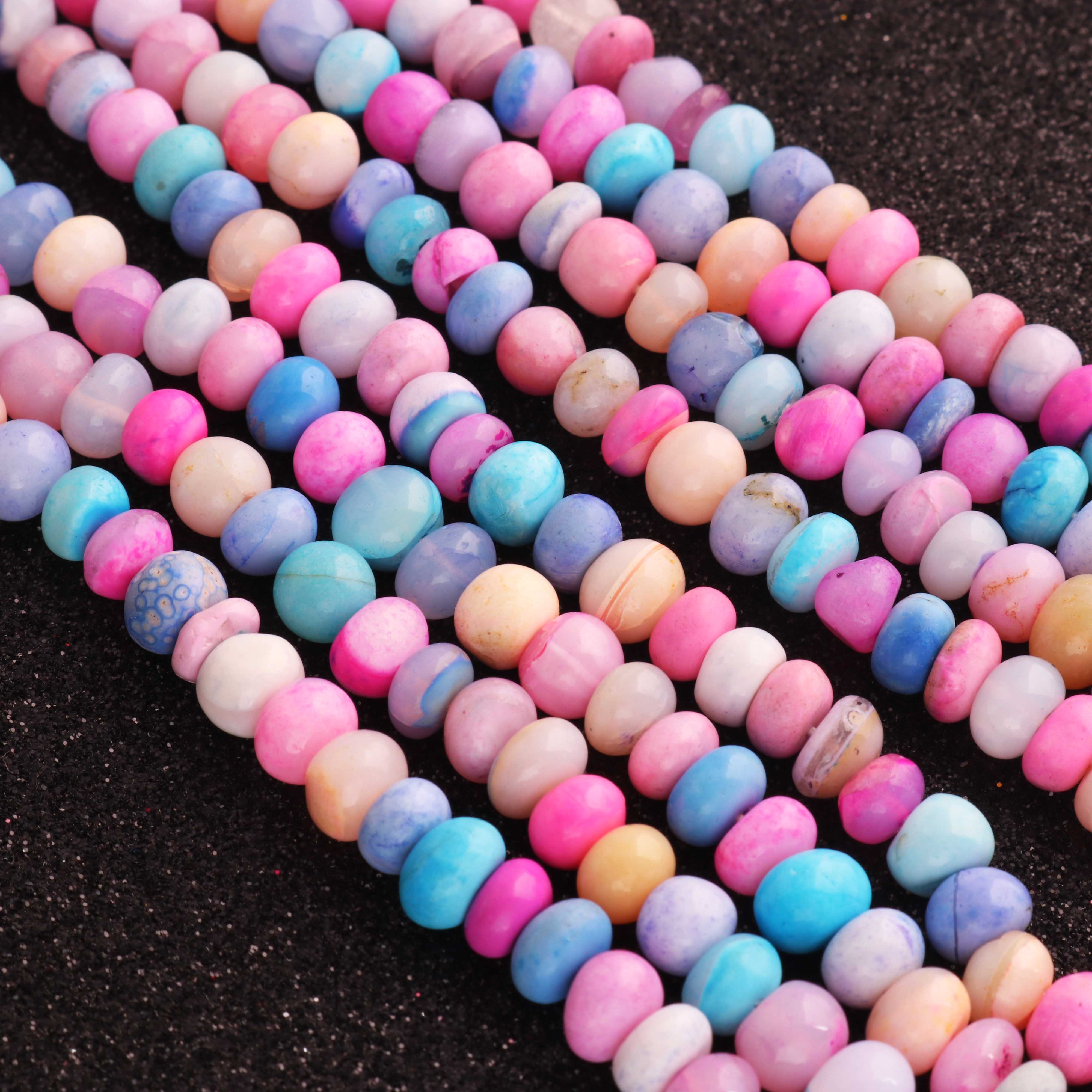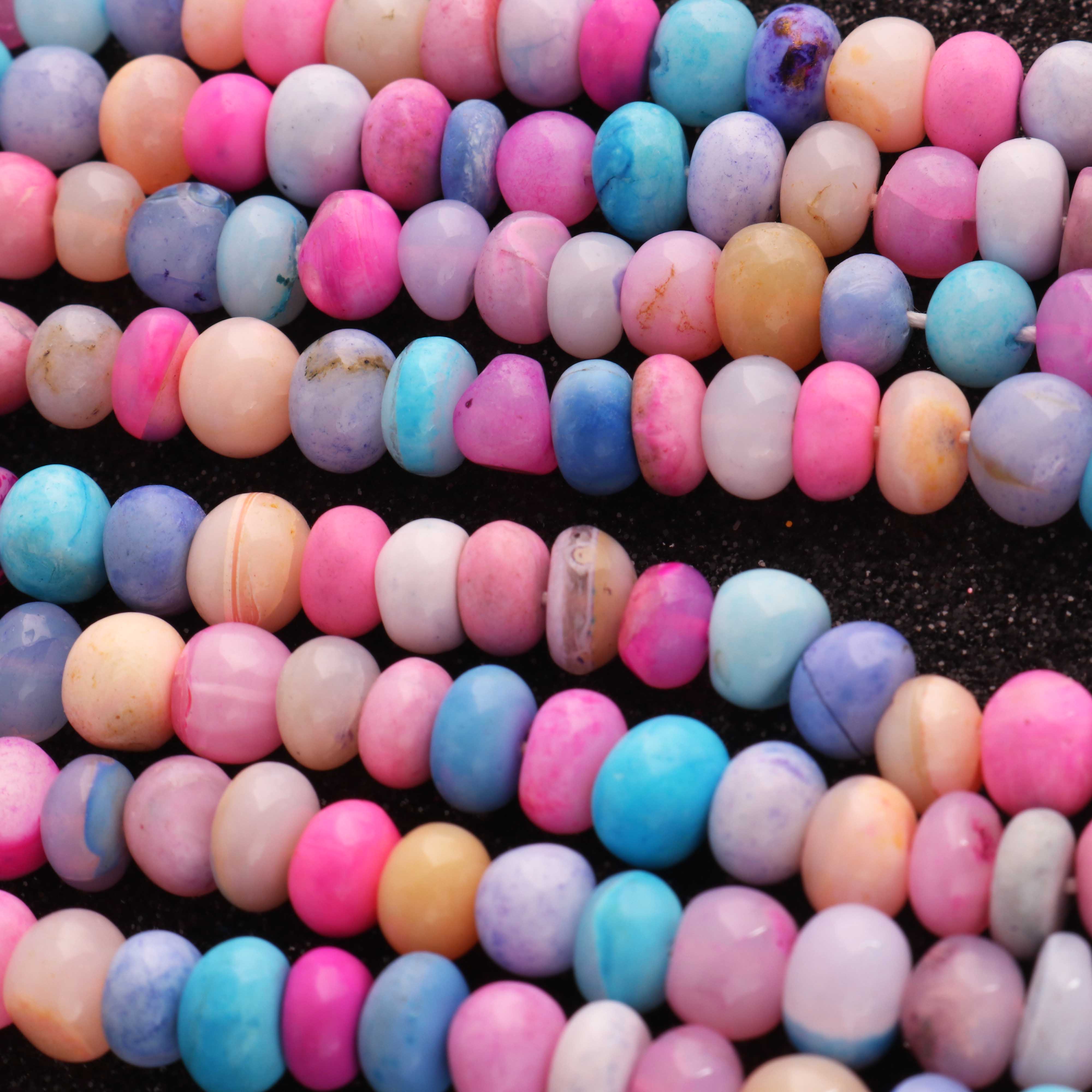 1 Long Strand Beautiful Multi Opal smooth rondelles beads-Semi Precious Gem Stone Multi Plain Opal Beads, -7mm -16 Inches BR03754