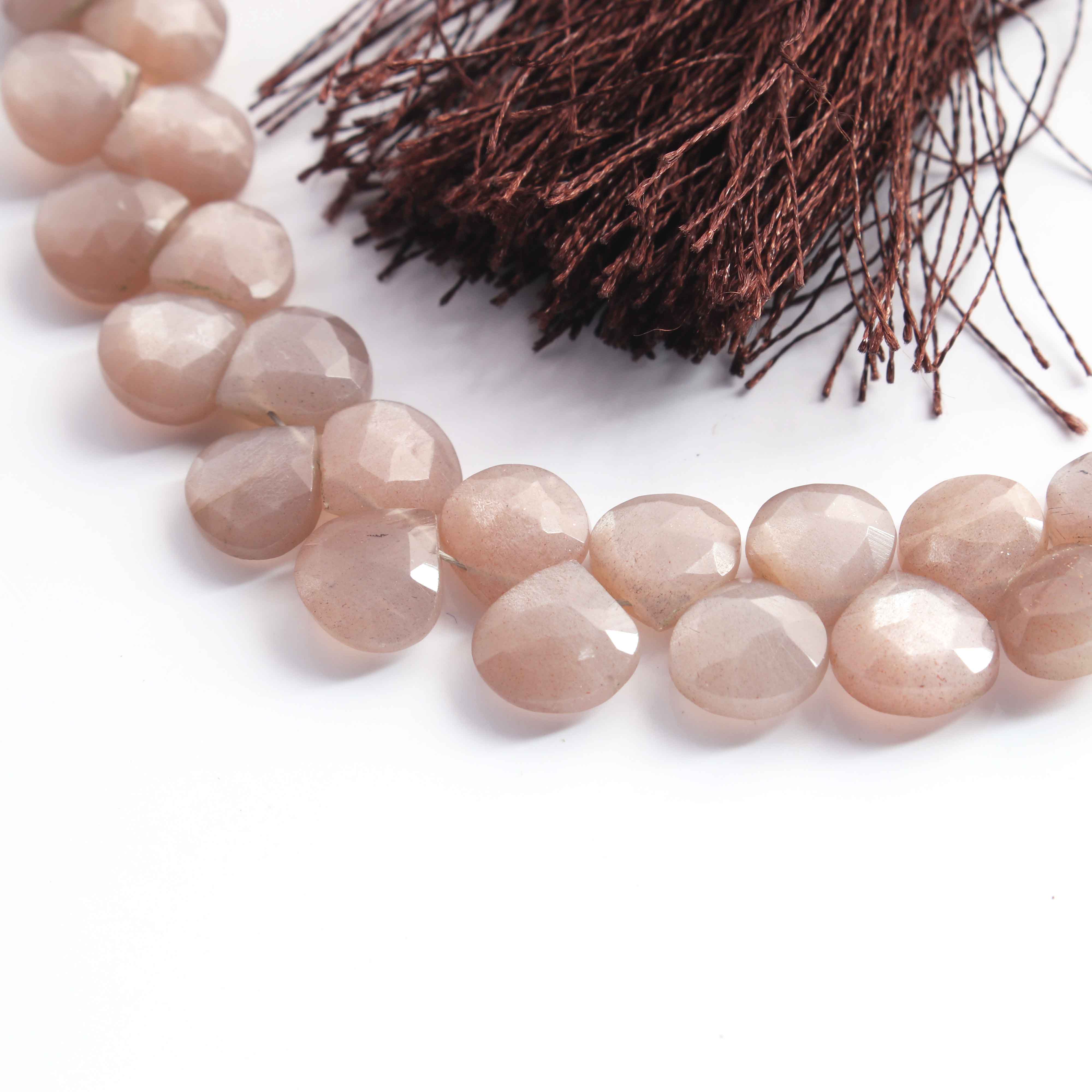 1 Long Strand Chocolate Moonstone Faceted Briolettes - Heart Shape Briolettes - 9mmx10mm-10mmx11mm -8 Inches BR02342